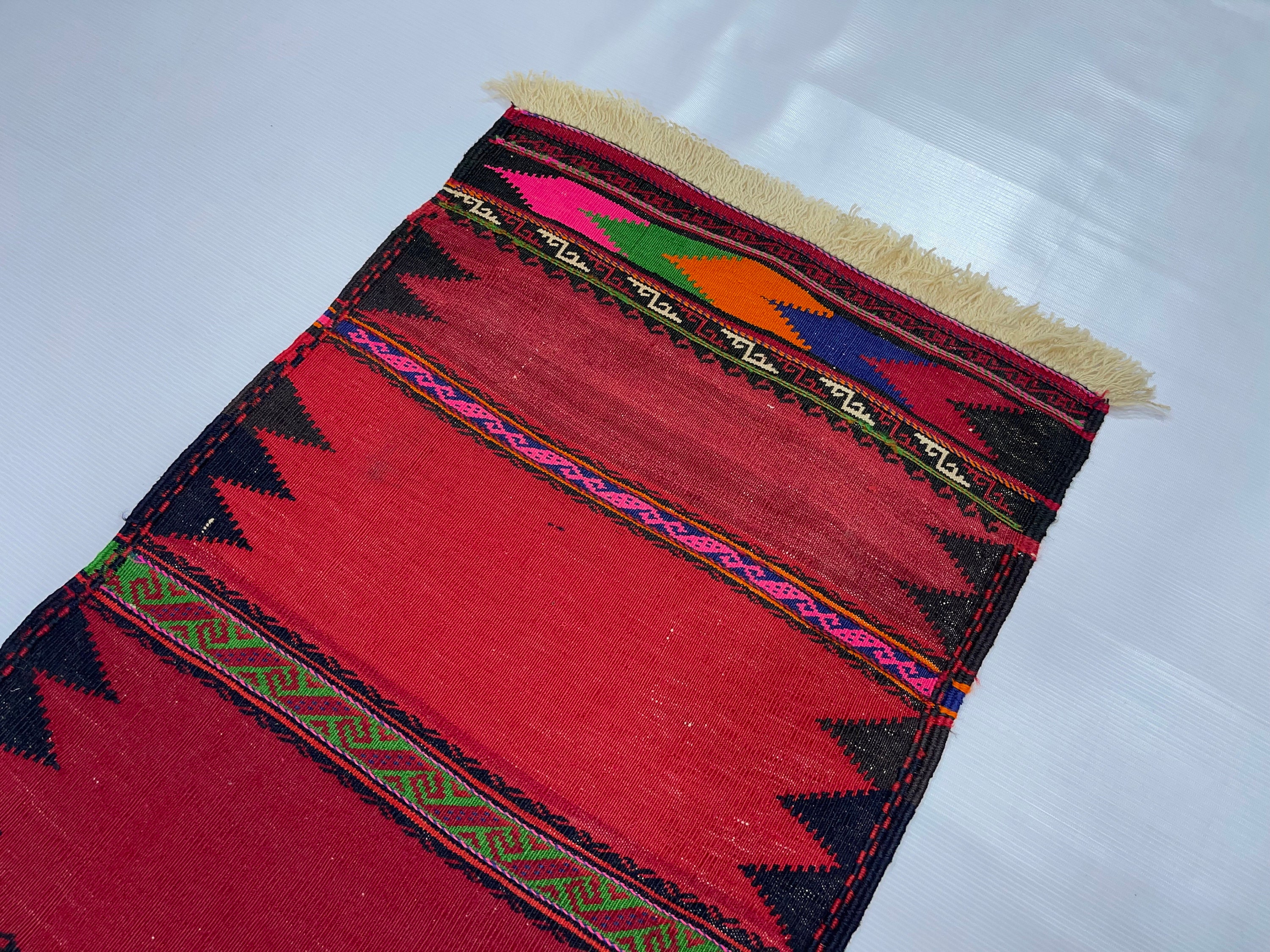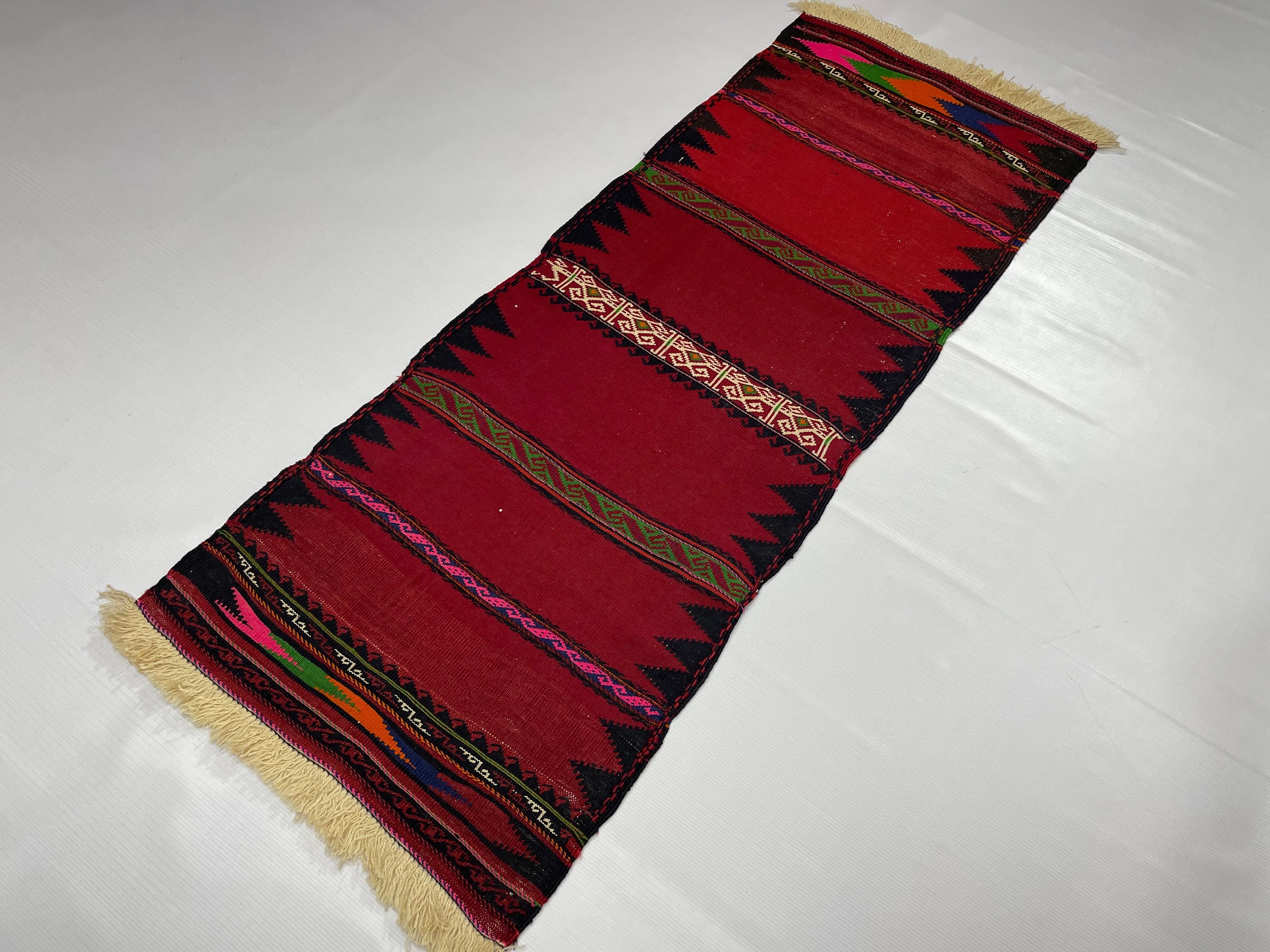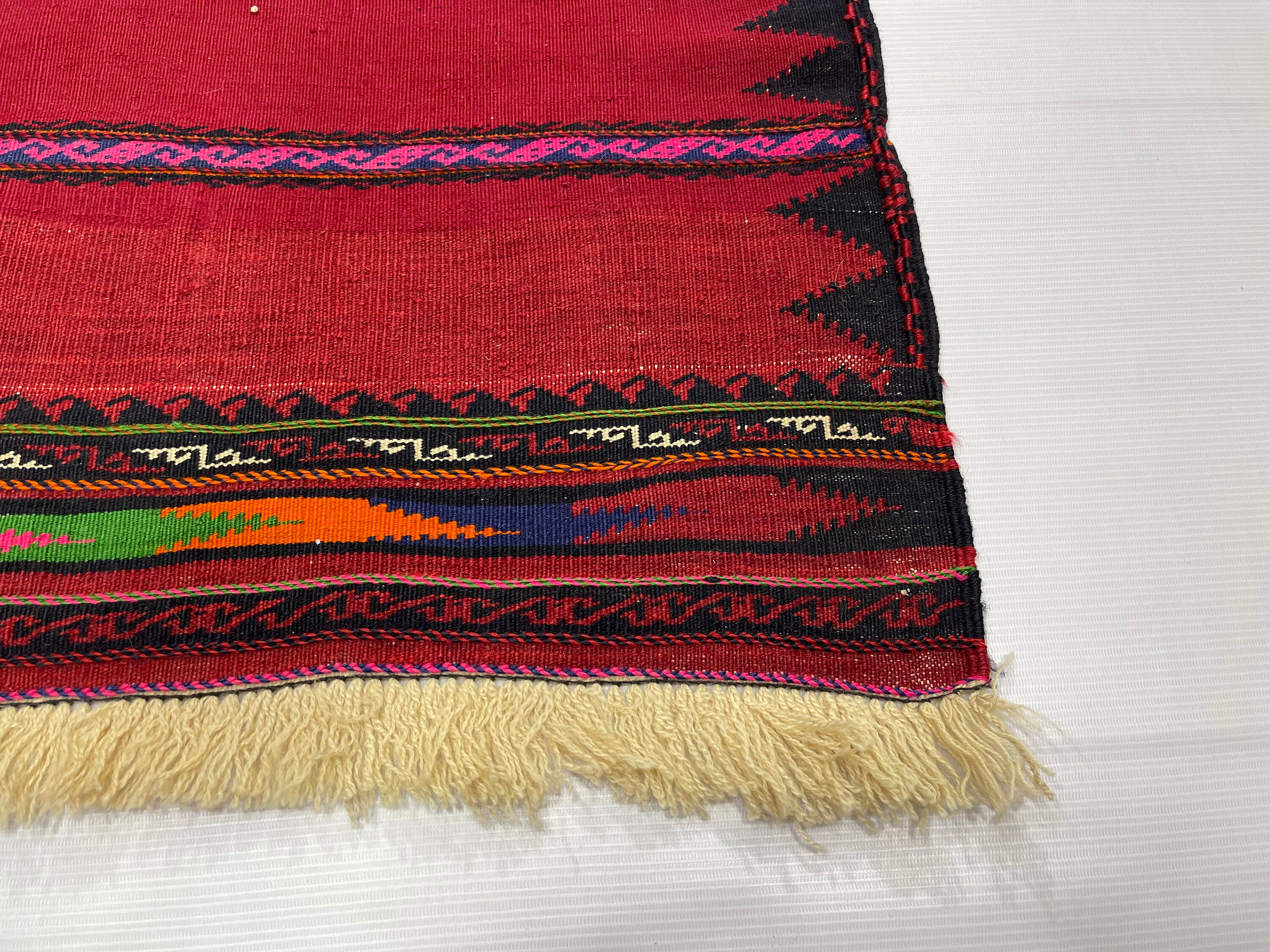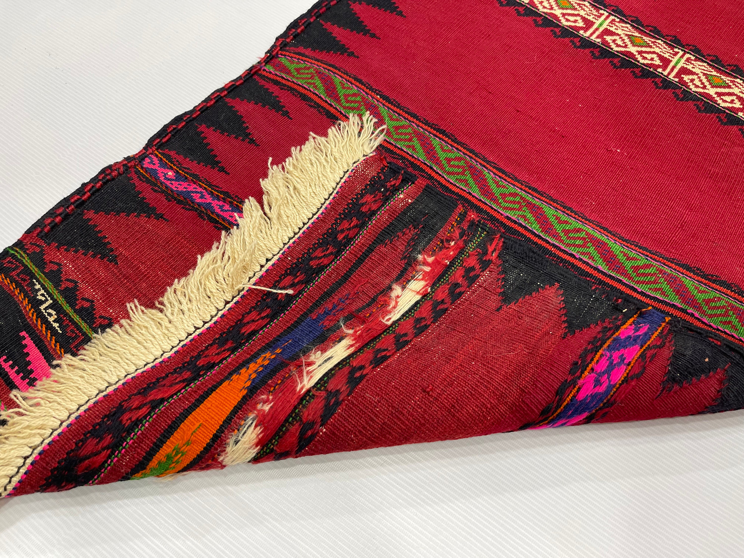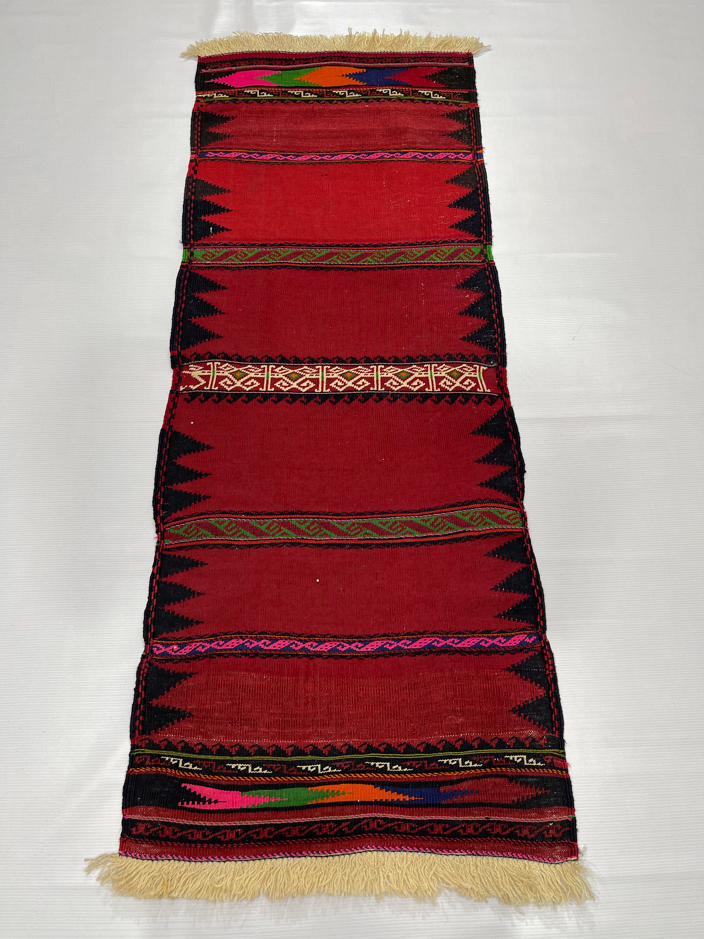 2x5.1 ft Handmade Vintage Kilim Rug, 2x5 Afghan Sofreh Flatweave Small Hallway Rug, Turkmen Tribal Vintage Wool Handwoven Kilim Accent Rug