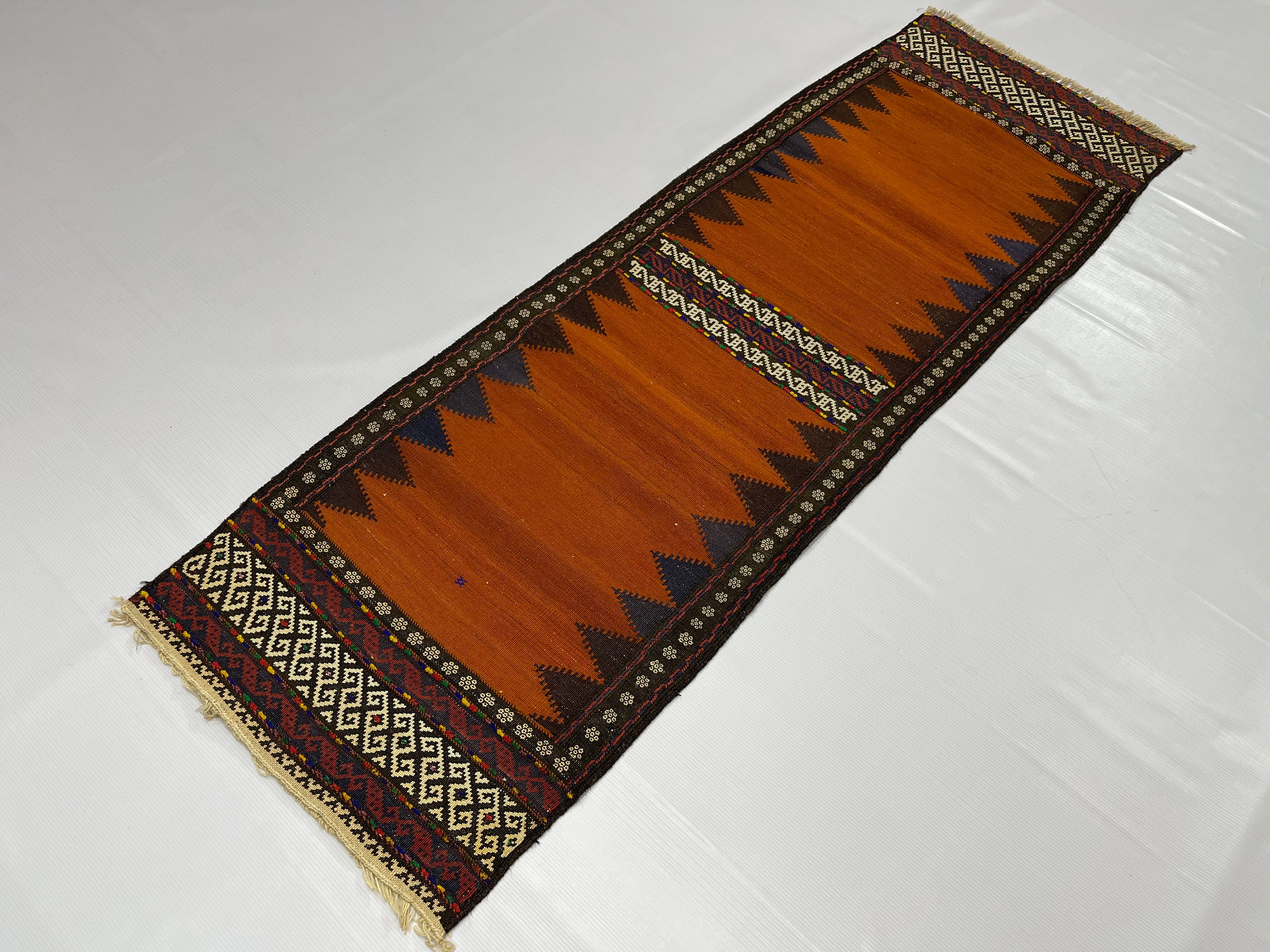 2.1x6.1 ft Vintage Bordered Rug, 2x6 Handmade Tribal Wool Kilim Rug, Flatweave Afghan Traditional Vintage Rug, Oriental Boho Home Decor Rug