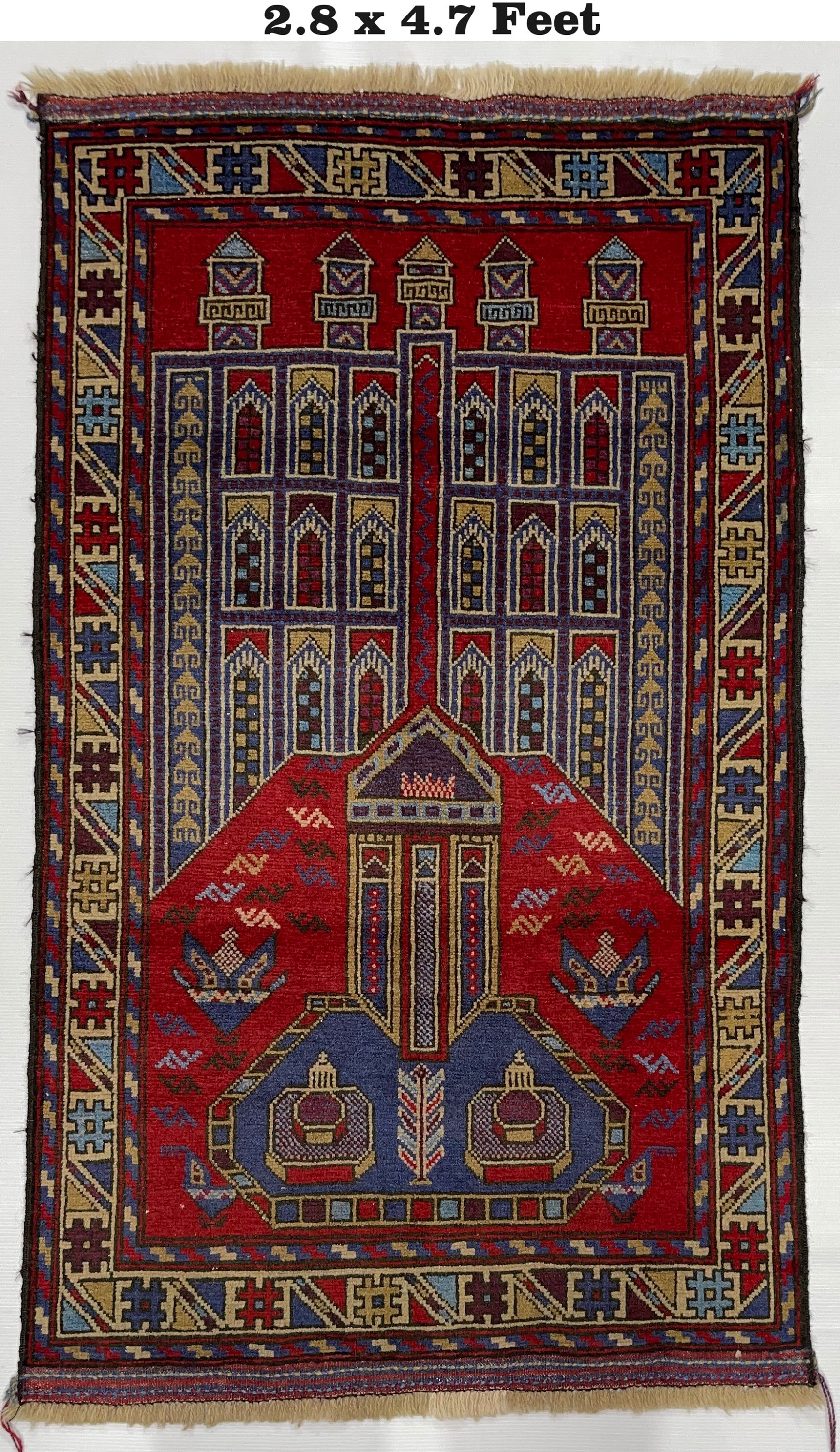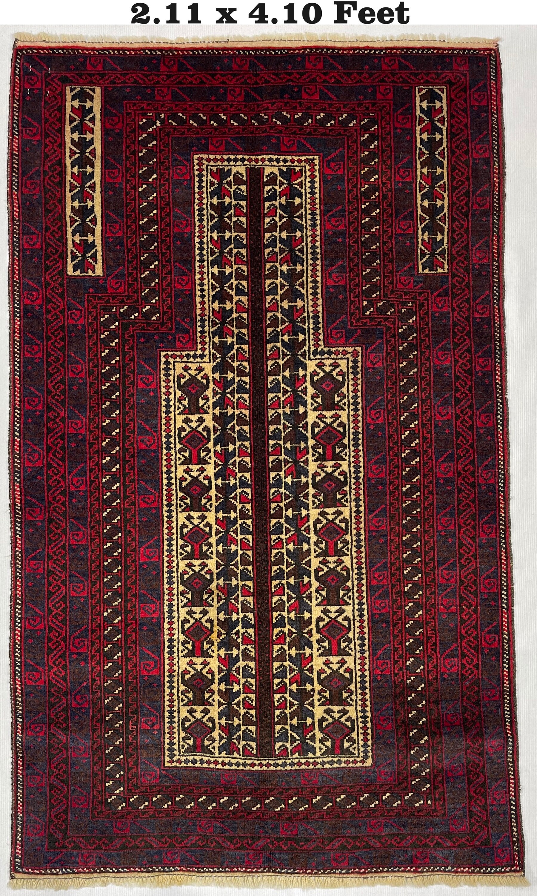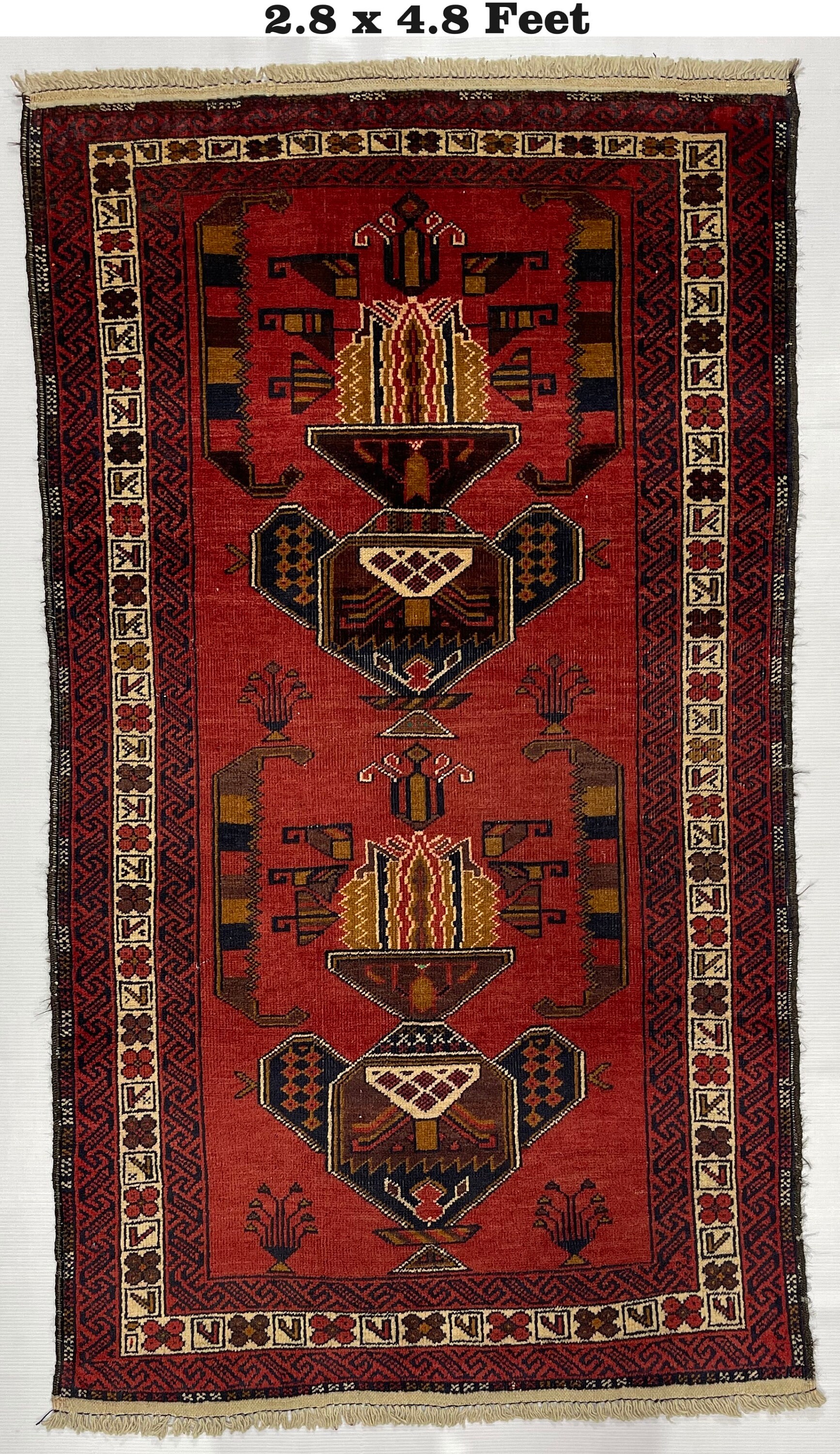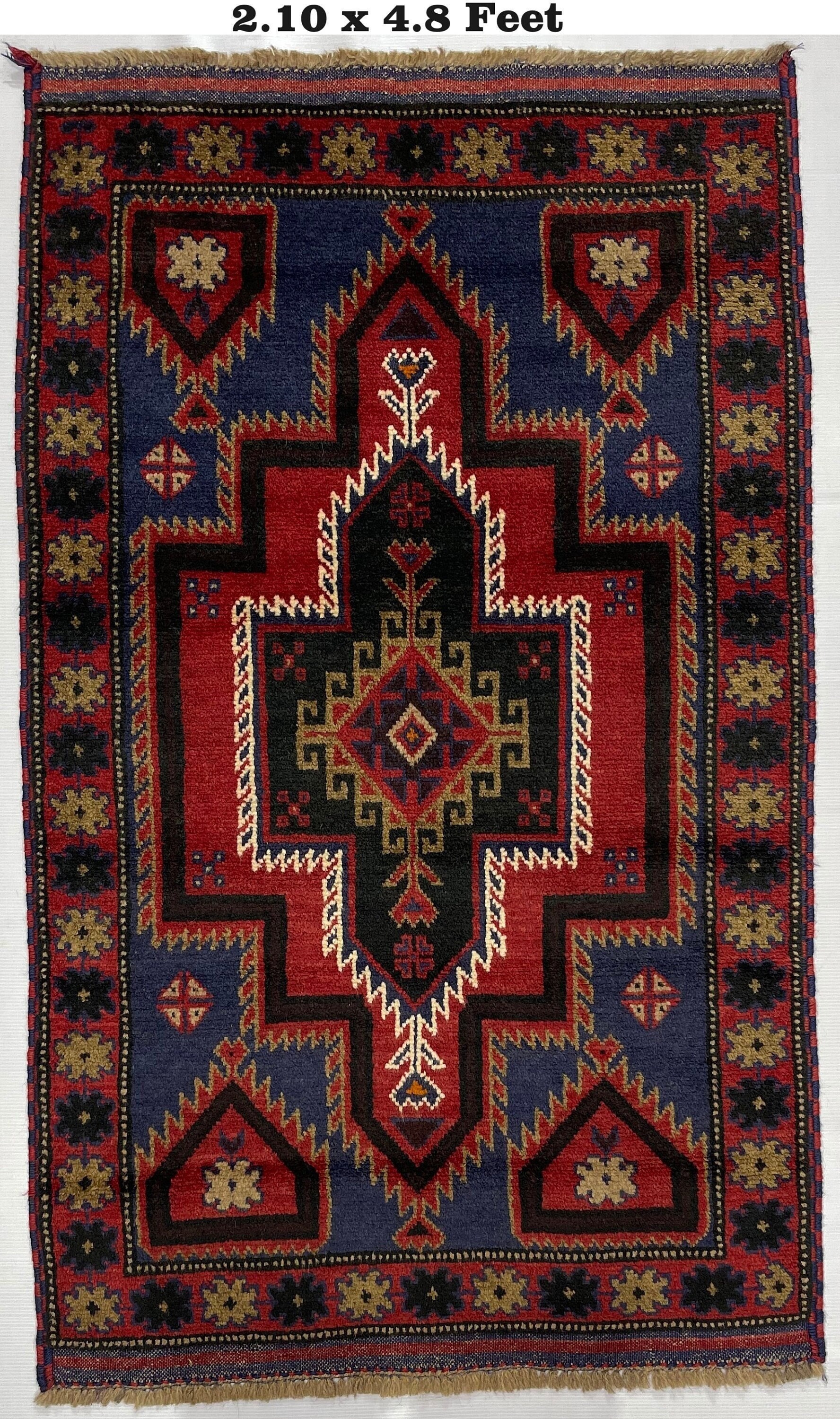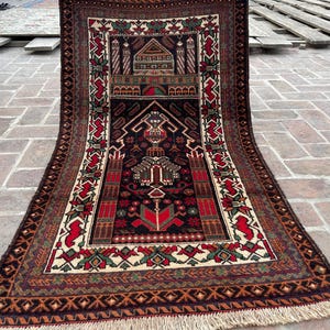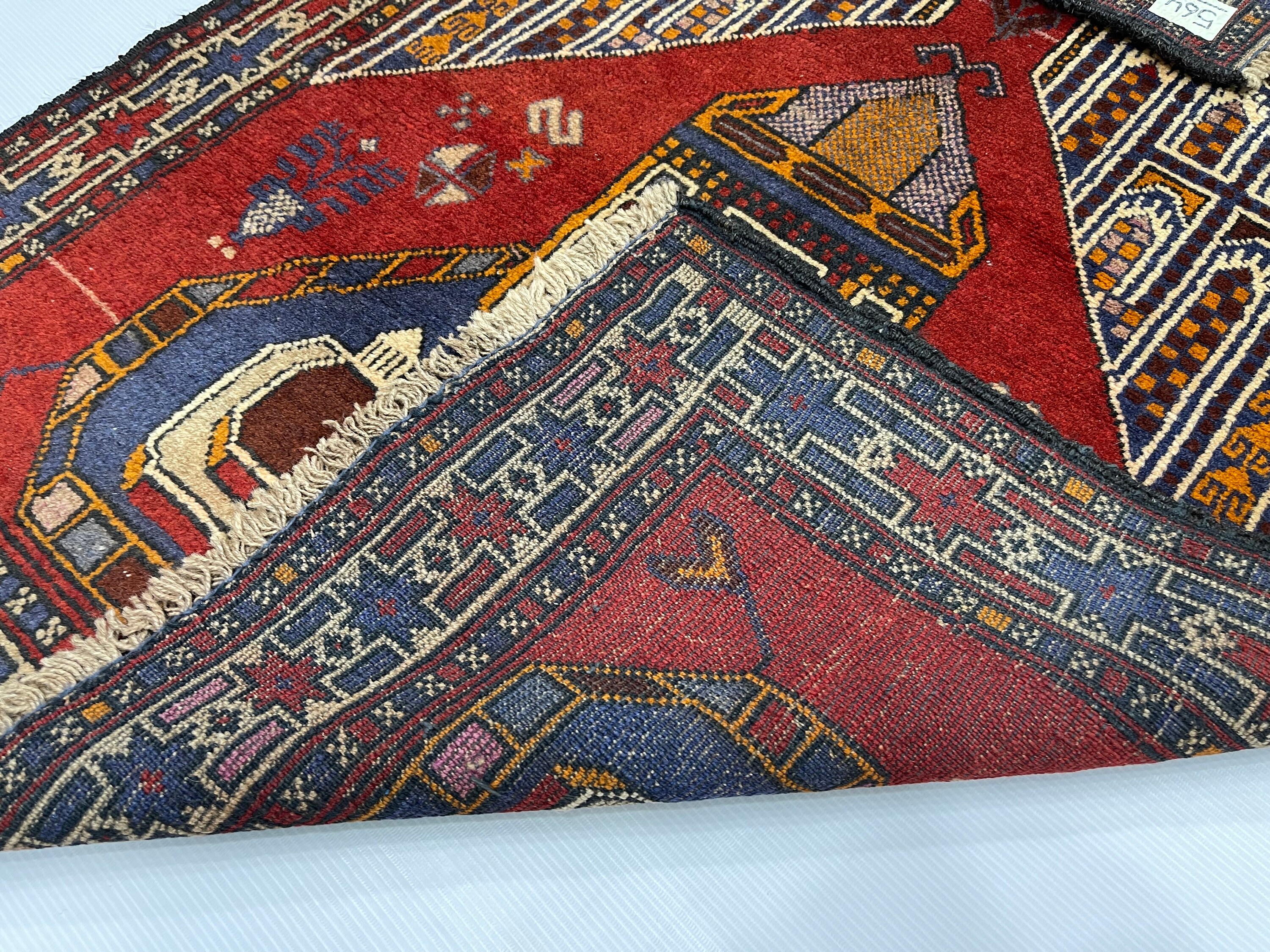 Wholesale Antique Handmade Rug - 3x5 Ft Red Afghan Baluch Soft Wool Rug - Oriental Turkmen Traditional Baluch Rug - Living Room Bedroom Rug