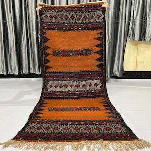 2.5x4.8 ft Vintage Afghan FINE Kilim Rug, Fine Tribal Soumak Rug, 2x5 Afghan Vintage Rug, Handmade Wool Rug, Antique Kilim Rug, Kitchen Rug