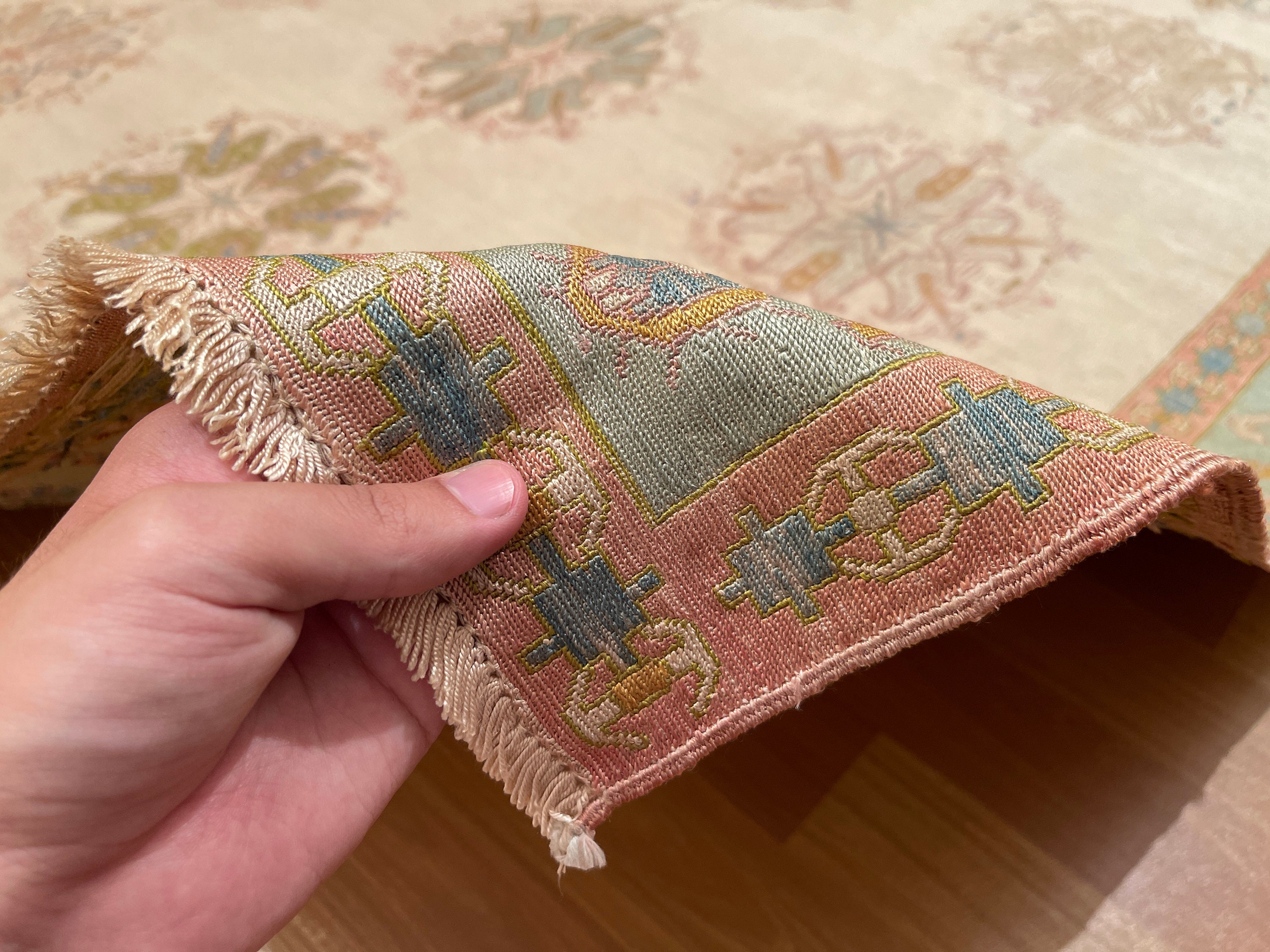 For normal daily care just vacuum it 2-3 times in a week. Keeping the rug dust free and clean enhance its colours and it aged really well.