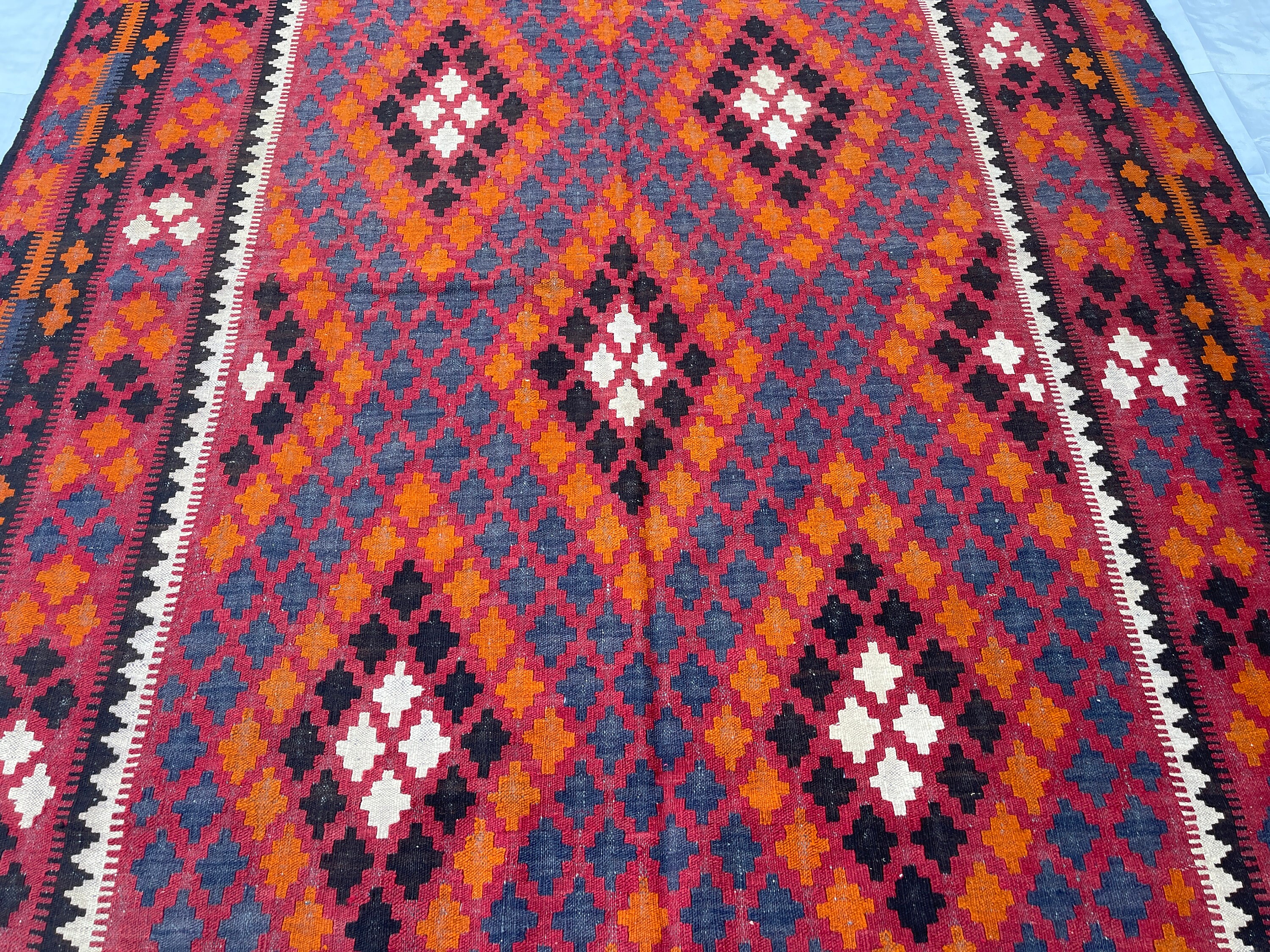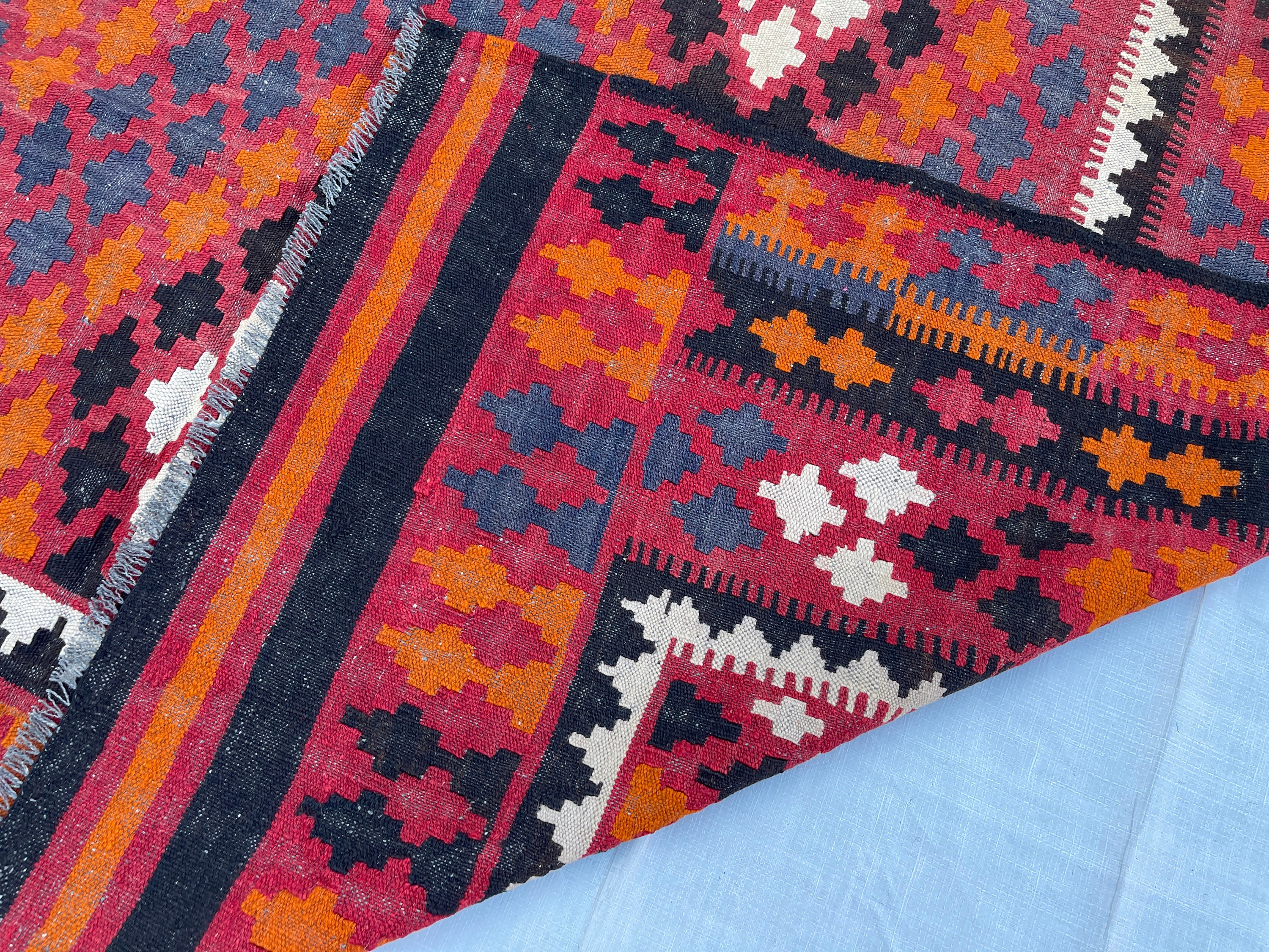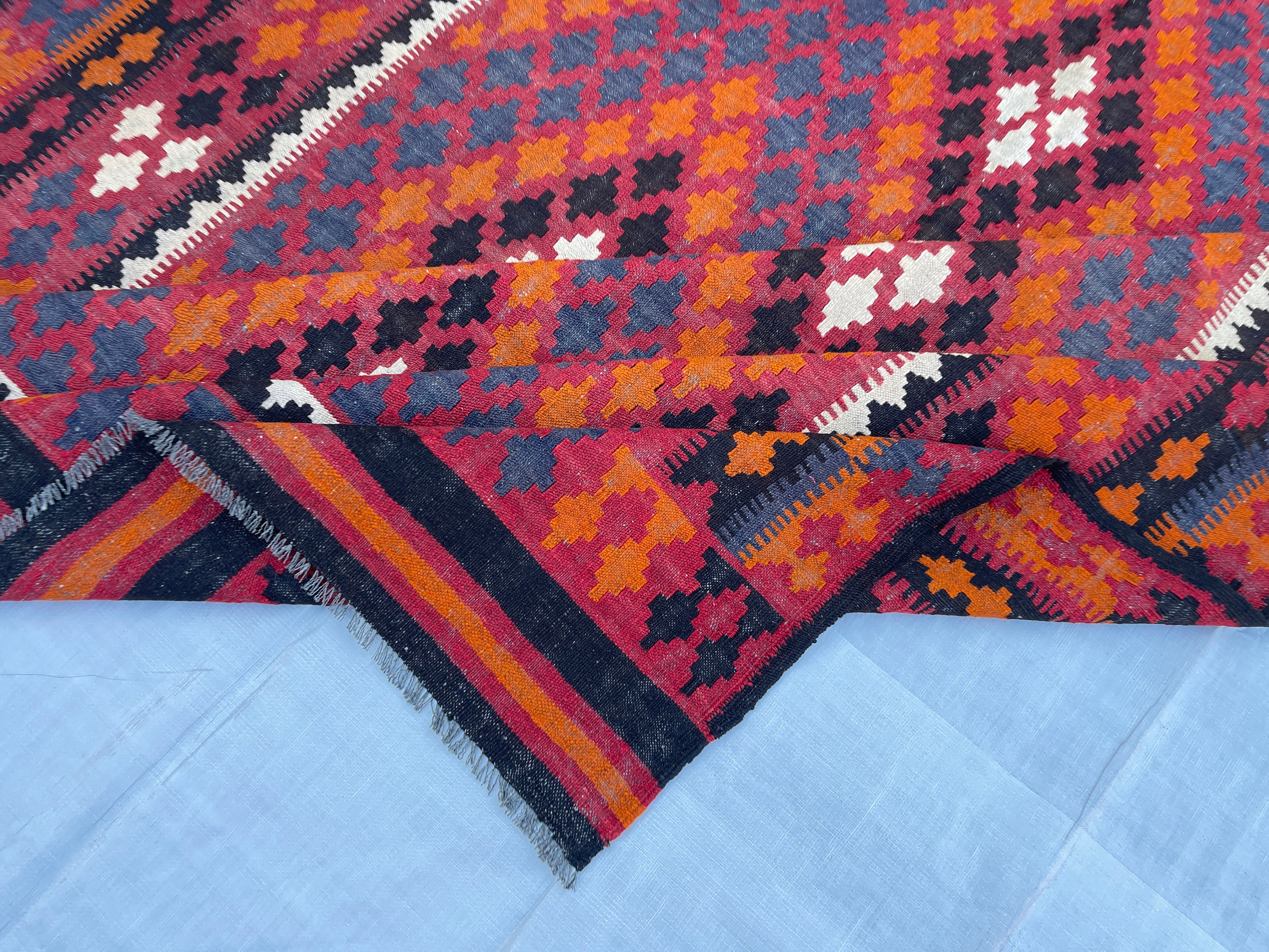 7x10 ft Veg Dyes Afghan Kilim Rug - Turkmen Handwoven Oriental Rug 6.5x9.7 ft - Handmade Medallion Turkish Vintage Rug - Boho Home Decor