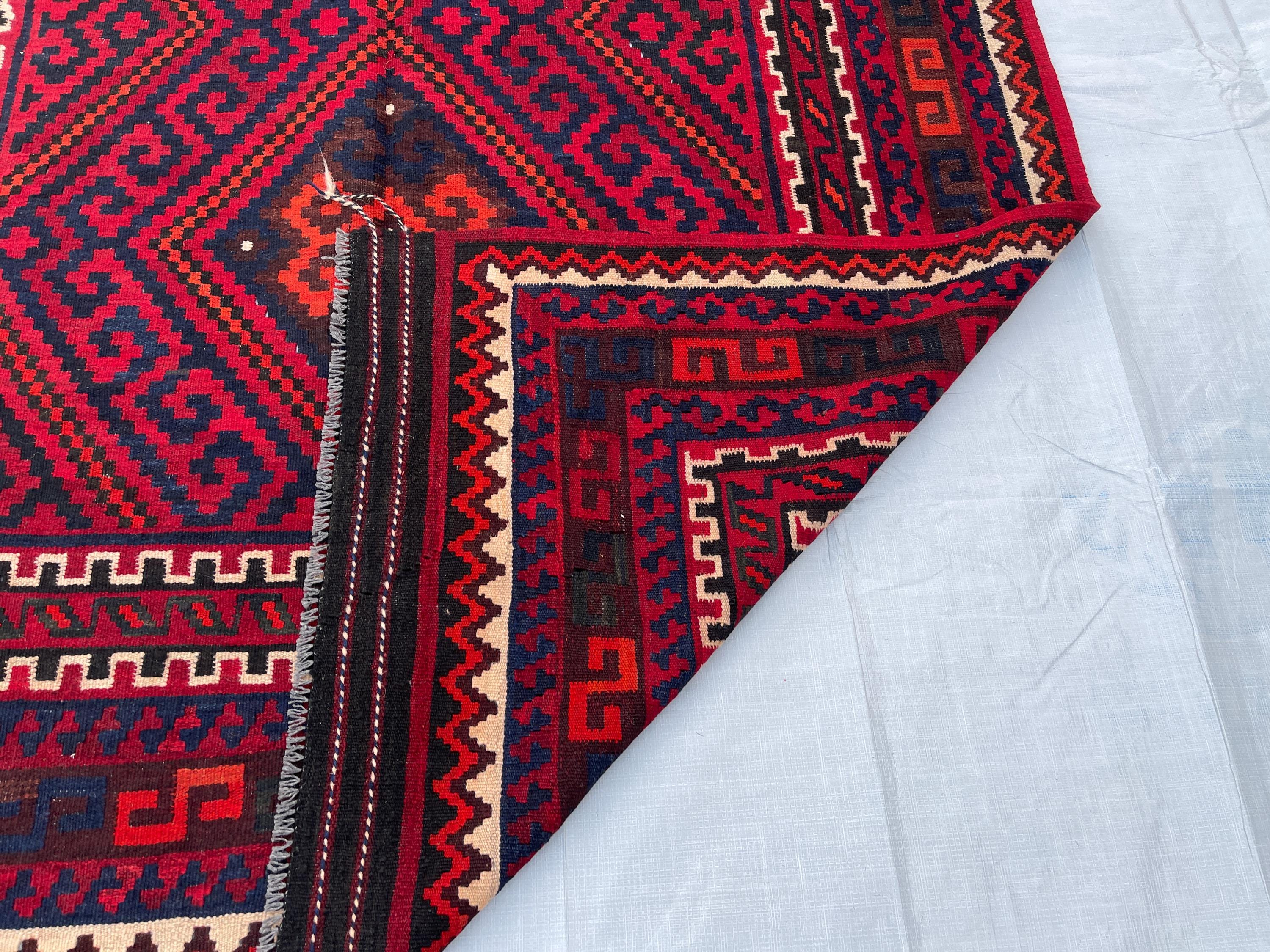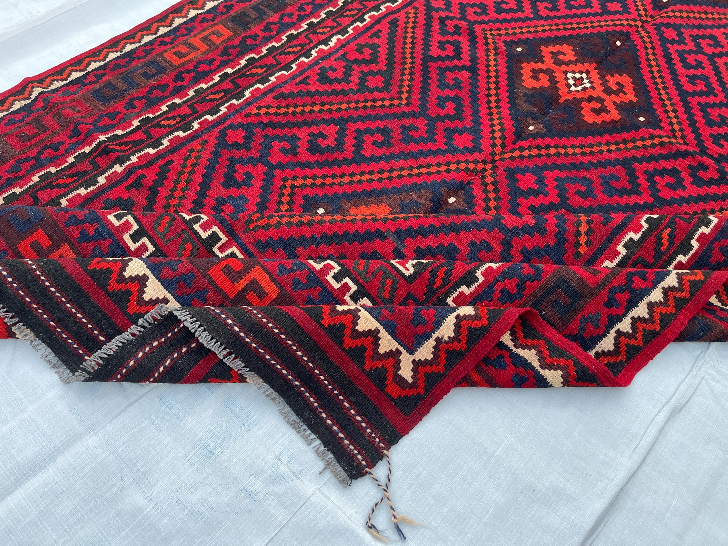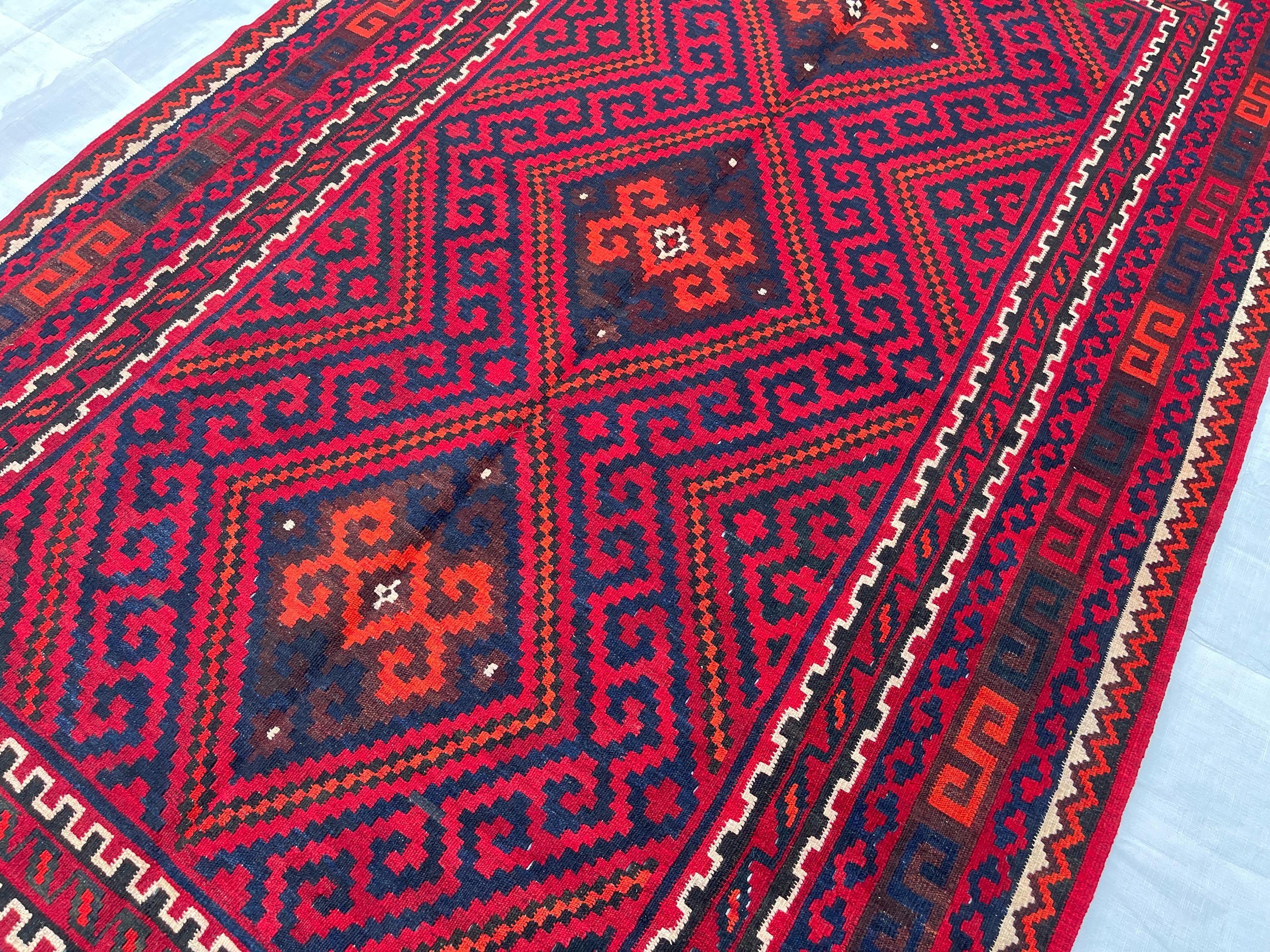 Big Sale Afghan 6x10 Vintage Area Rug - Red Turkmen Handmade Flatweave Geometric Rug 5.4x9.10 - Red Blue Orange White Oriental Medallion Rug