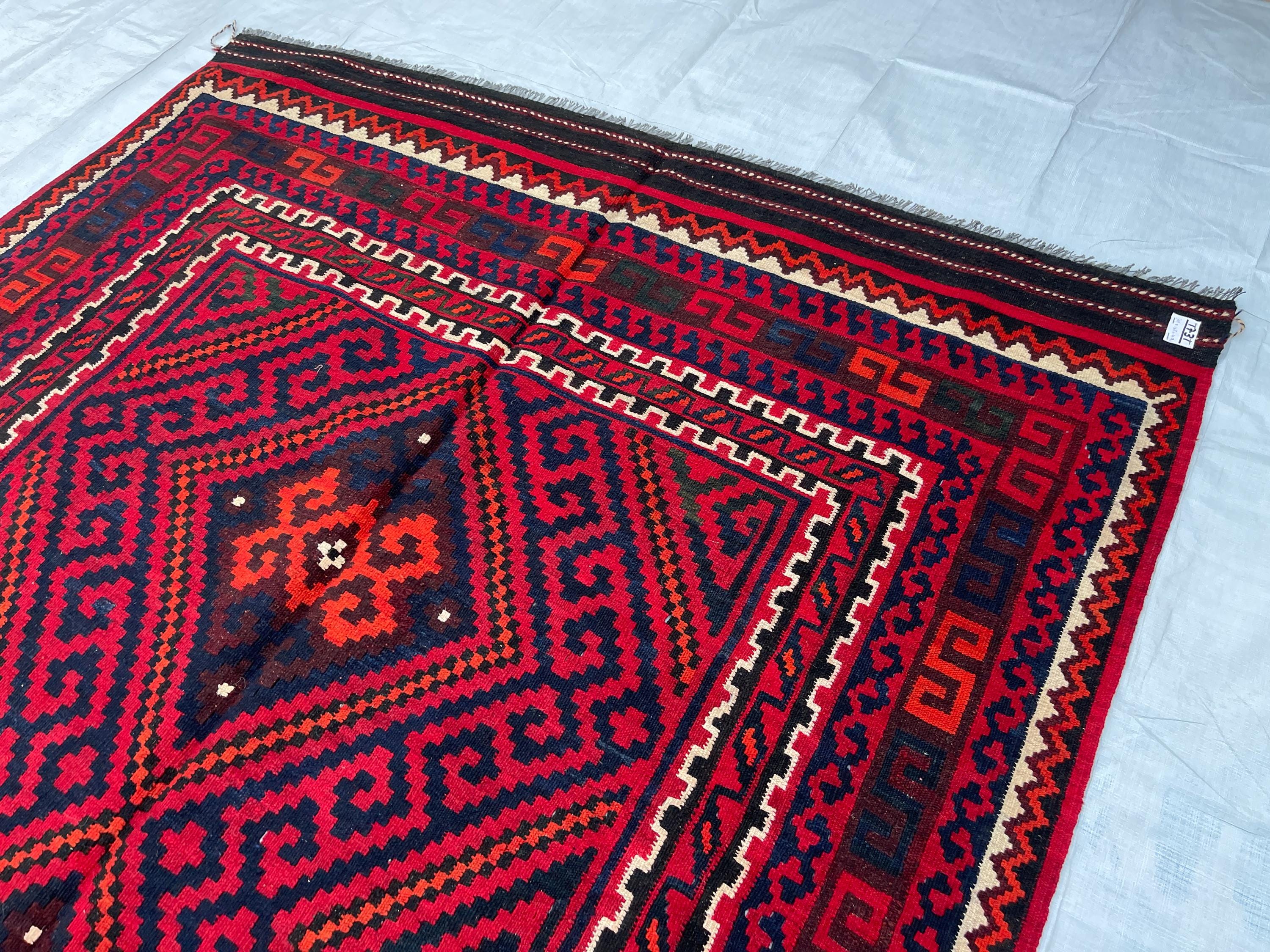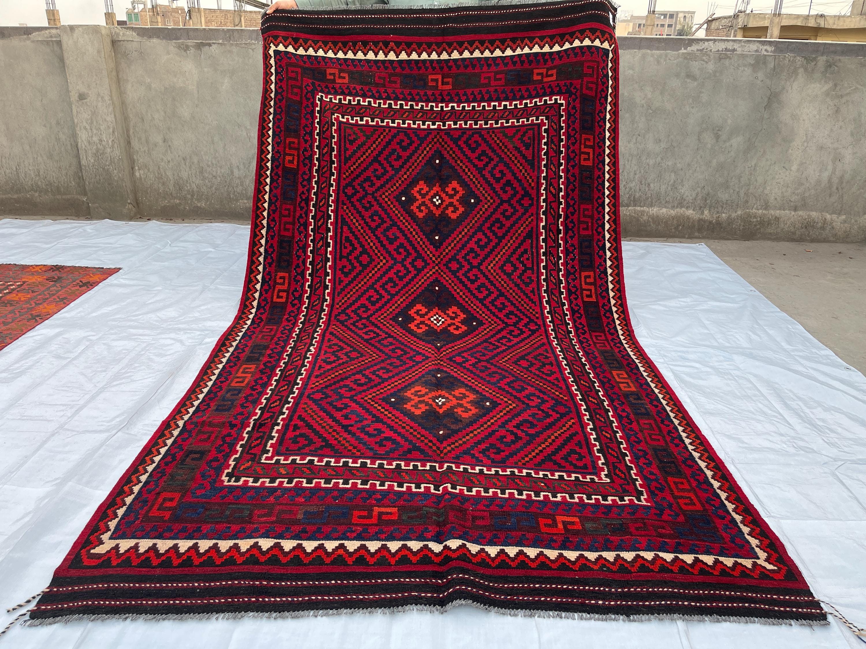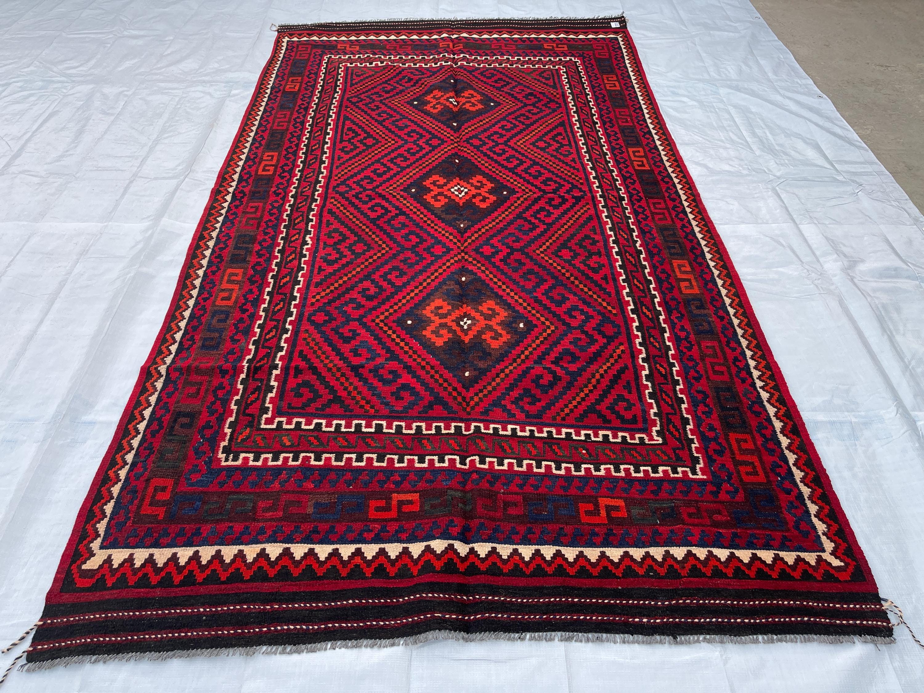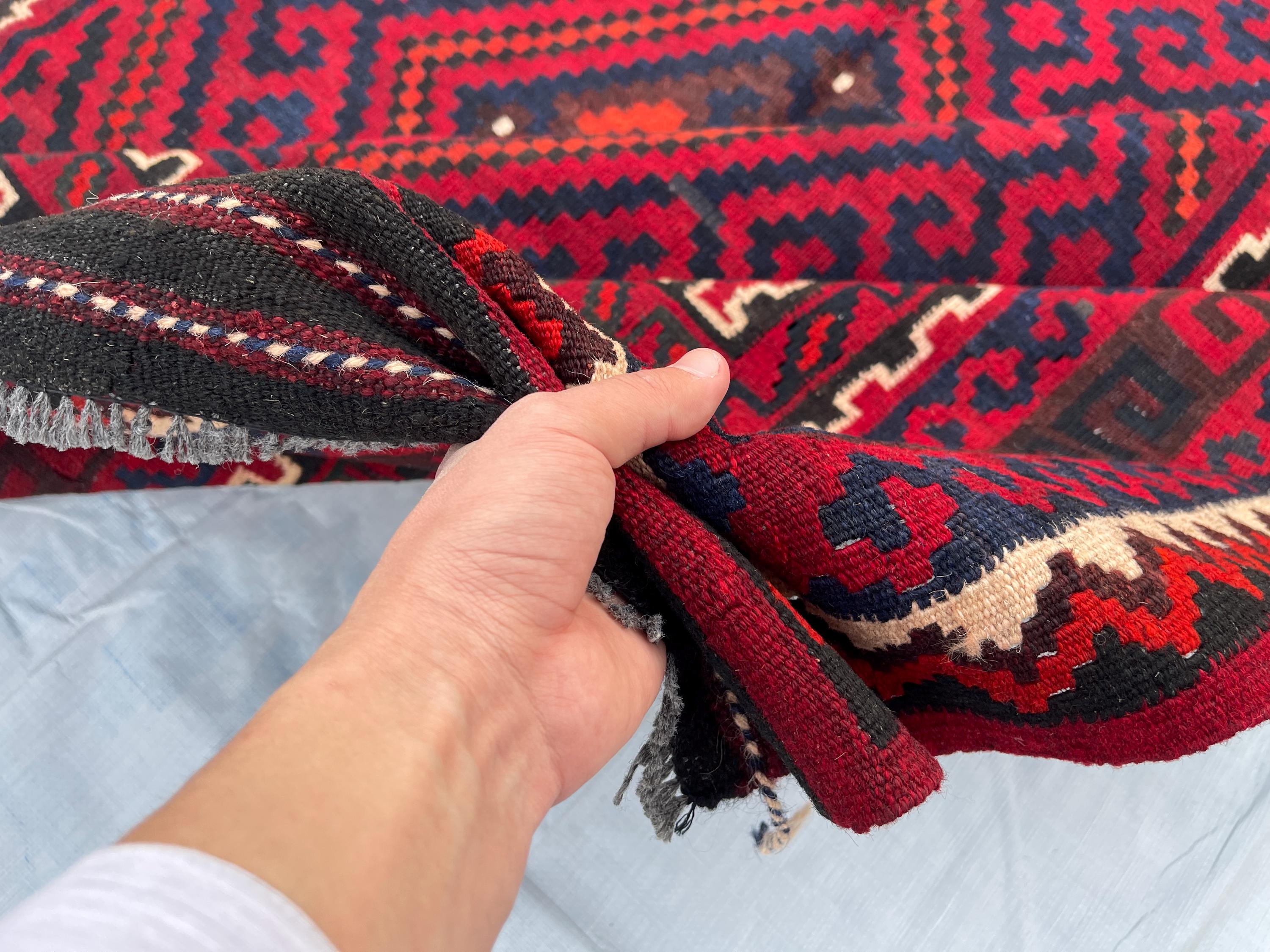 Big Sale Afghan 6x10 Vintage Area Rug - Red Turkmen Handmade Flatweave Geometric Rug 5.4x9.10 - Red Blue Orange White Oriental Medallion Rug
