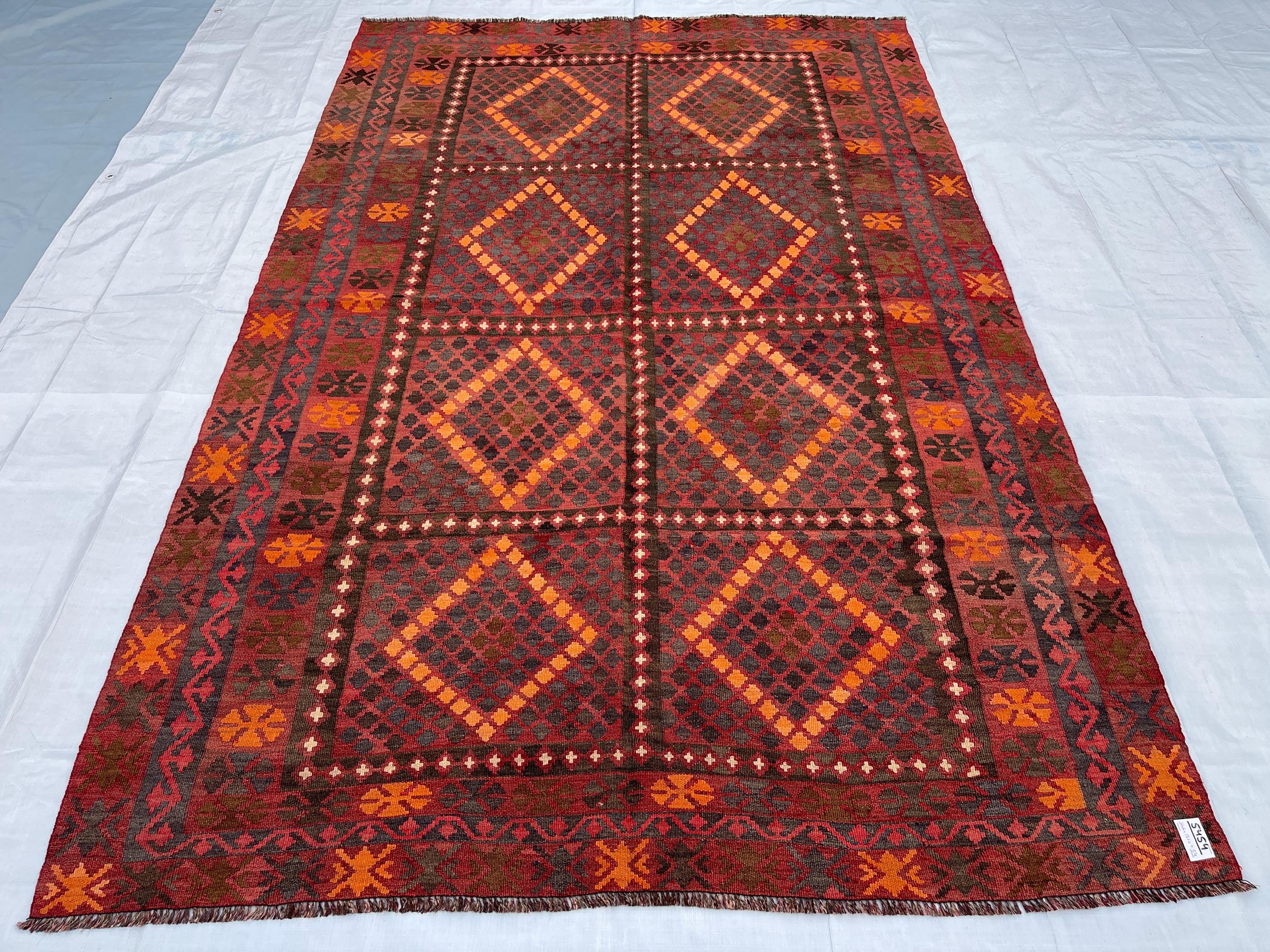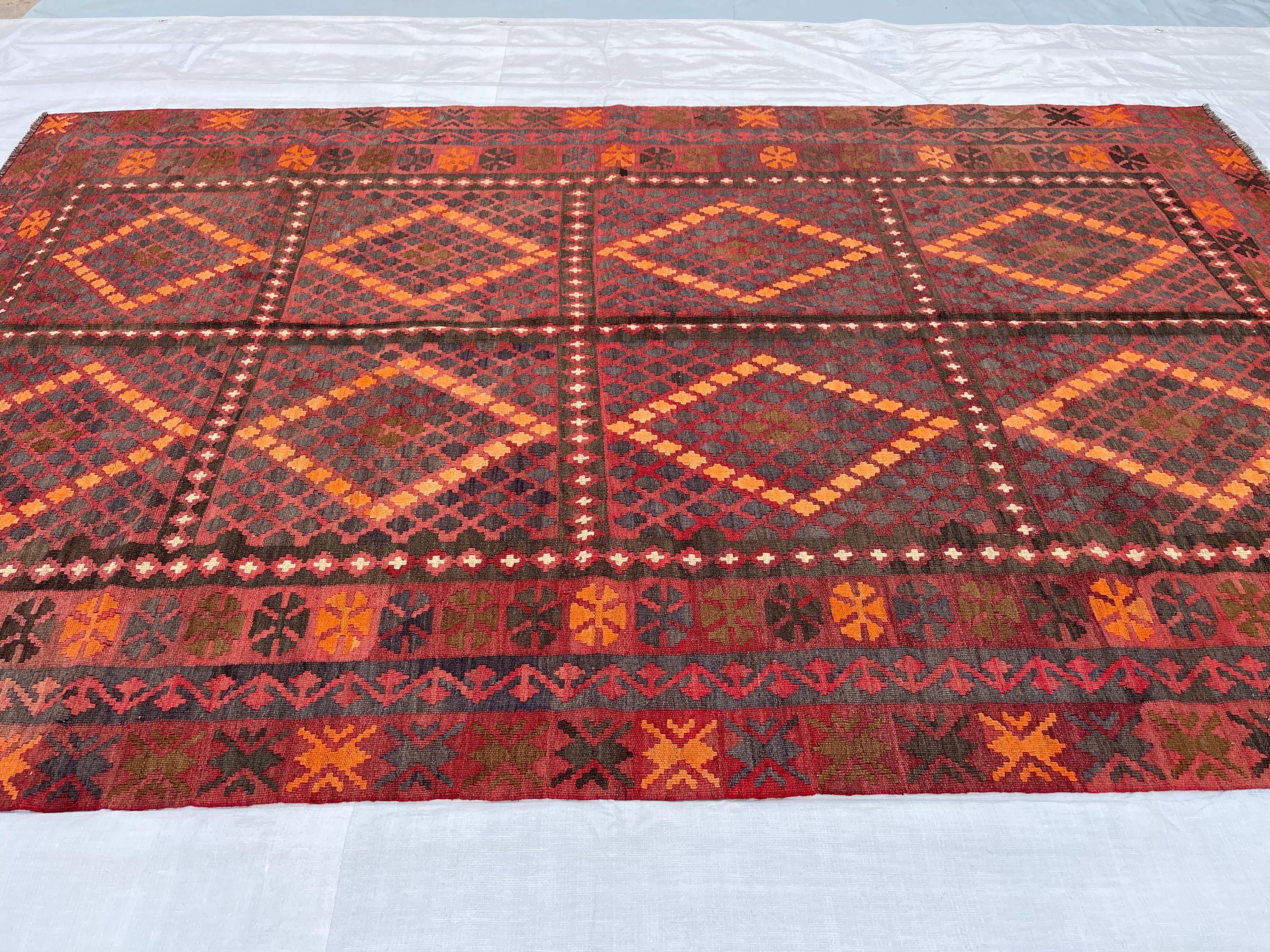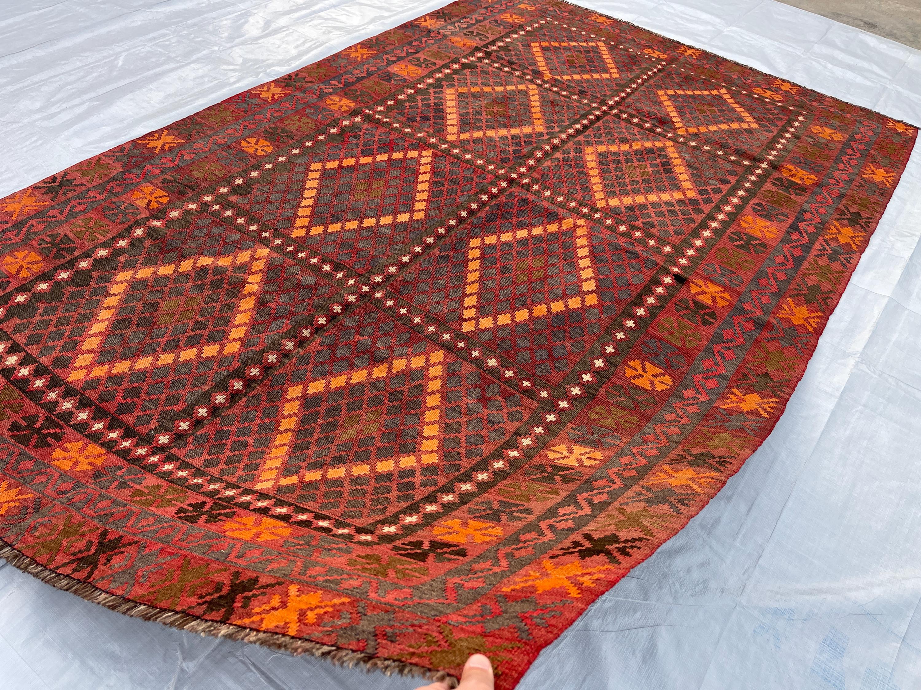 Muted 6x9 Old Afghan Handmade Rug - Geometric Turkmen Faded Tribal Flatweave Area Rug 5'7x8'9 - Handwoven Oriental Antique Rug - 171x266 cm