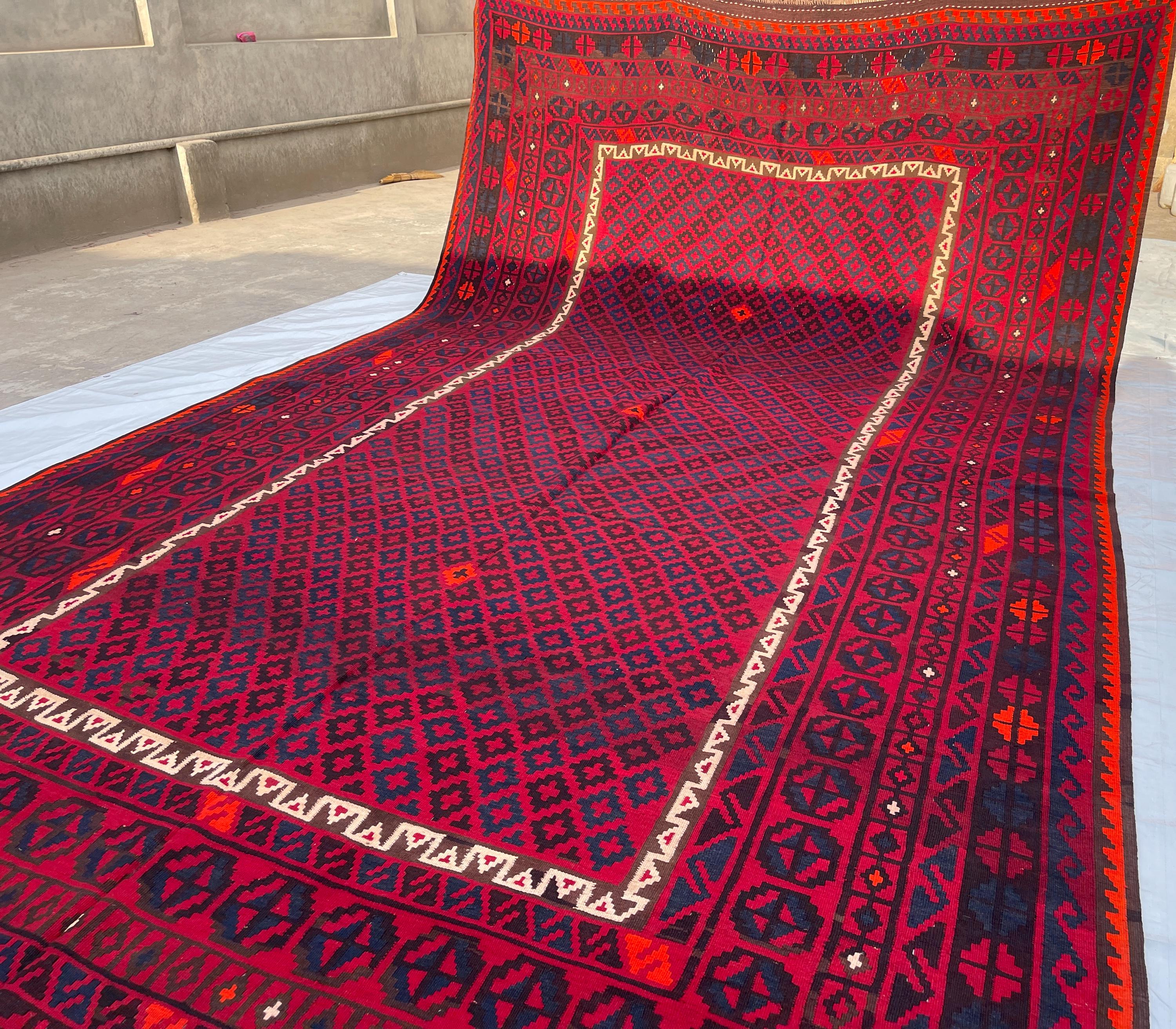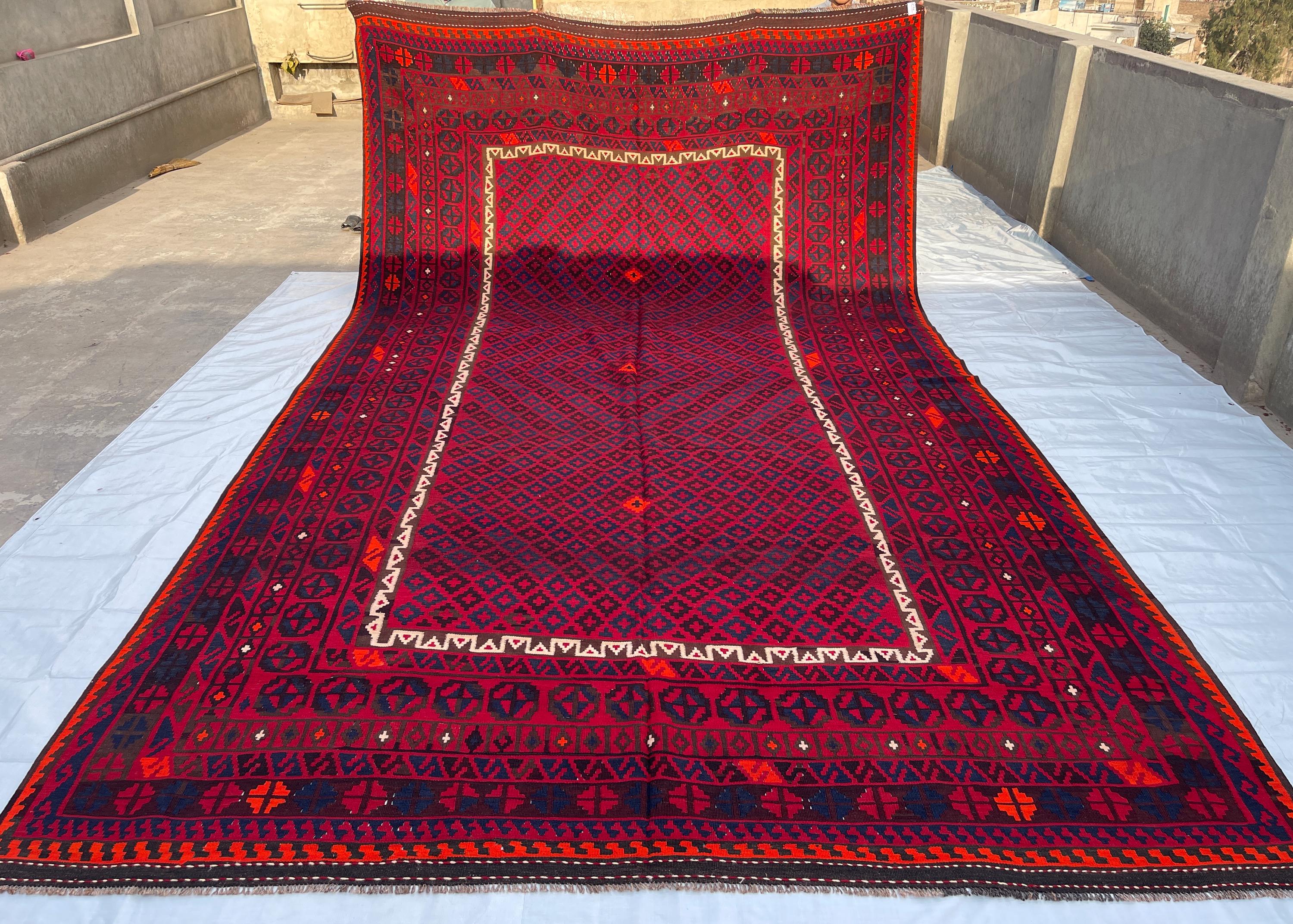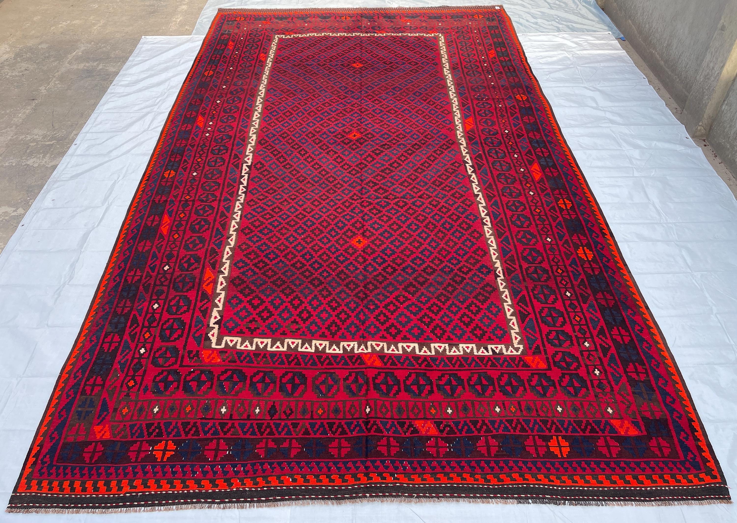 Red 10x16 ft Vintage Afghan Extra Large Rug - Handmade Palace Size Veg Dyes Wool Rug 9.5x16.7 ft - Rugs for Living Room - Bedroom 288x504 cm