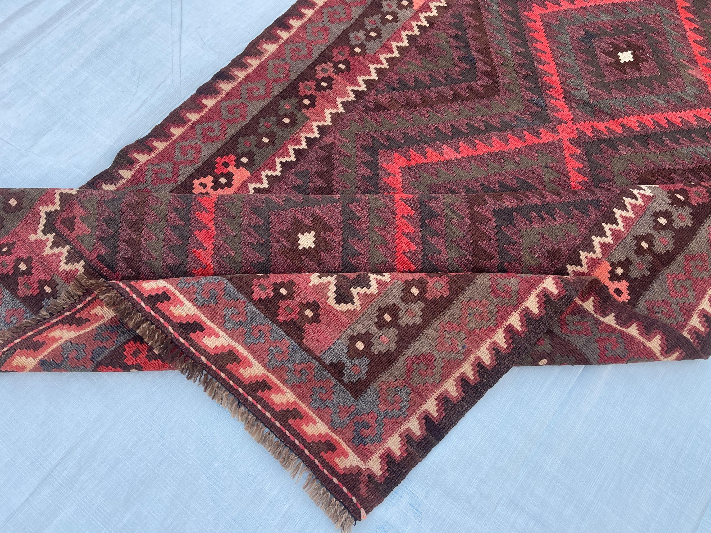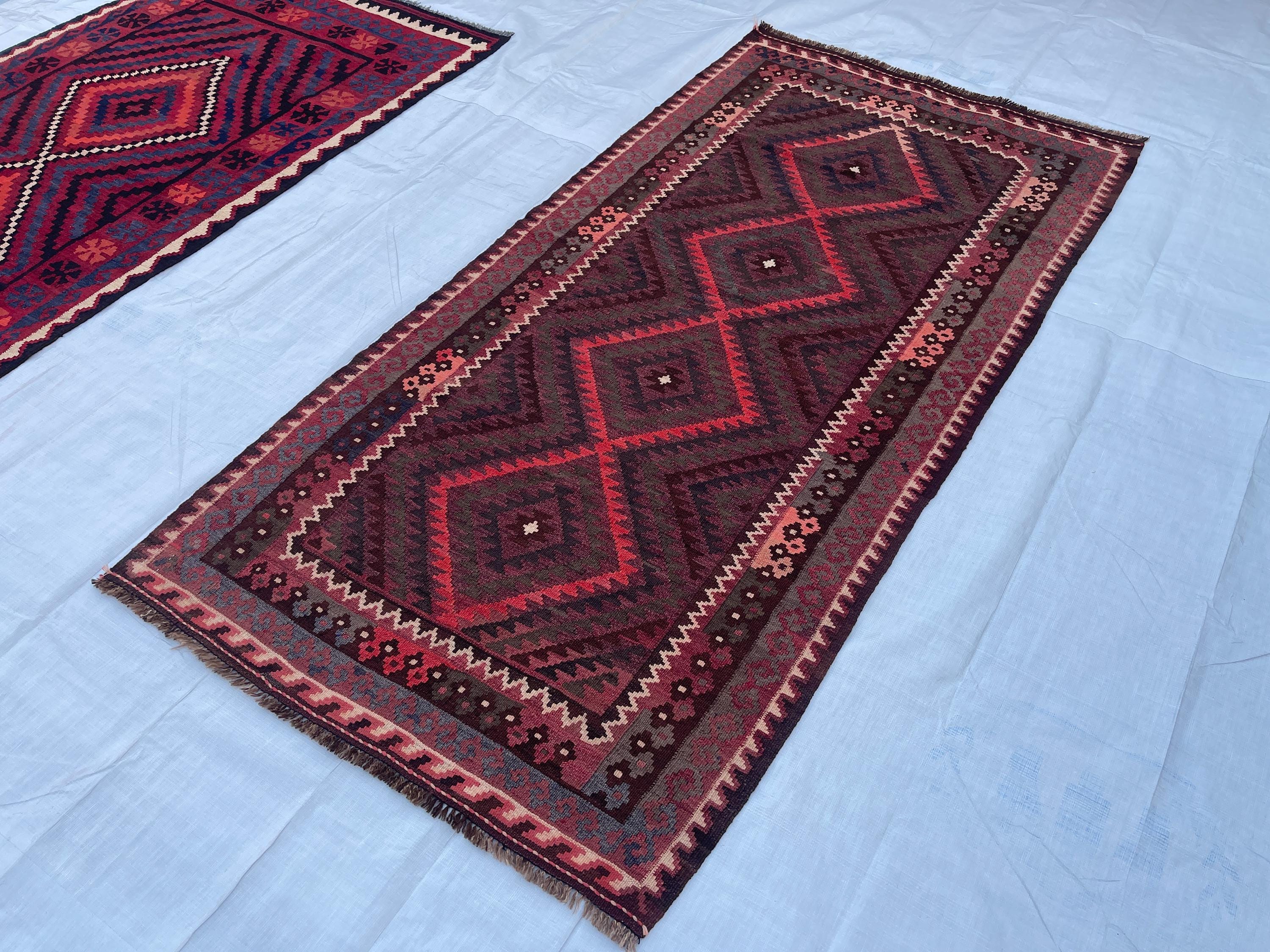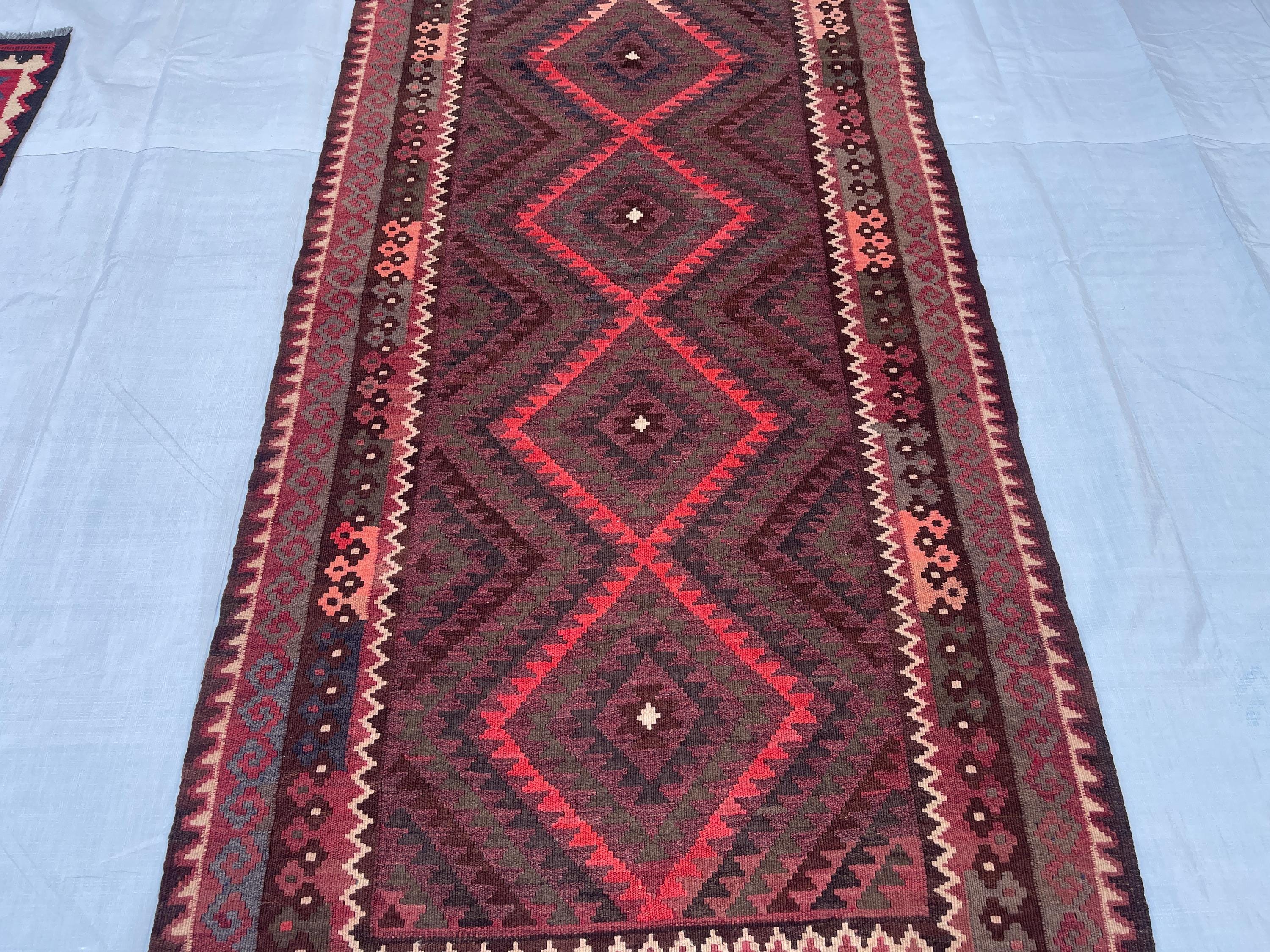 Faded Terracotta Afghan 4x7 ft Kilim Rug - Turkmen Maimana Veg Dyes Wool Antique Rug 3.5x7 ft - Traditional Vintage Oriental Rug 104x213 cm