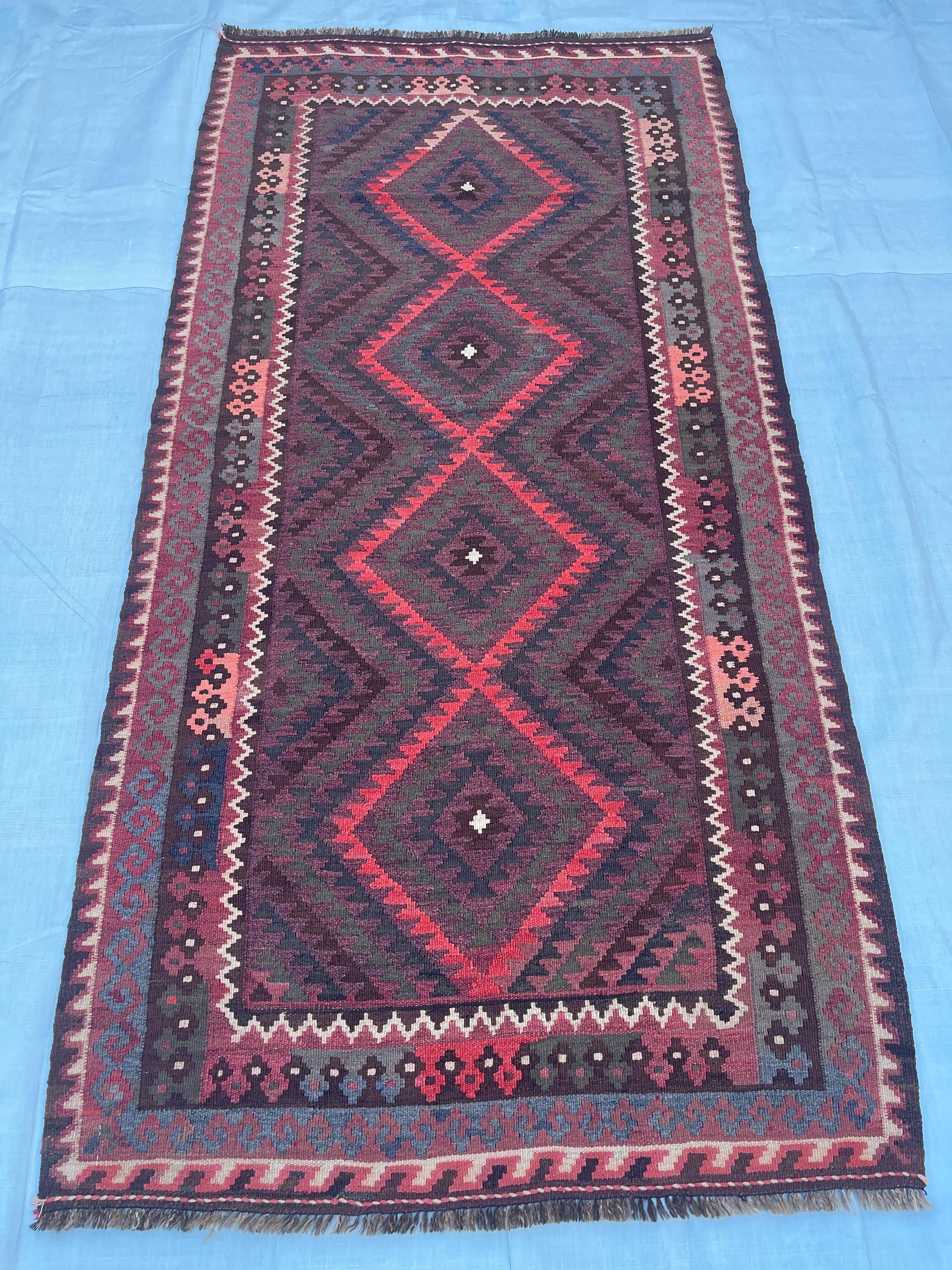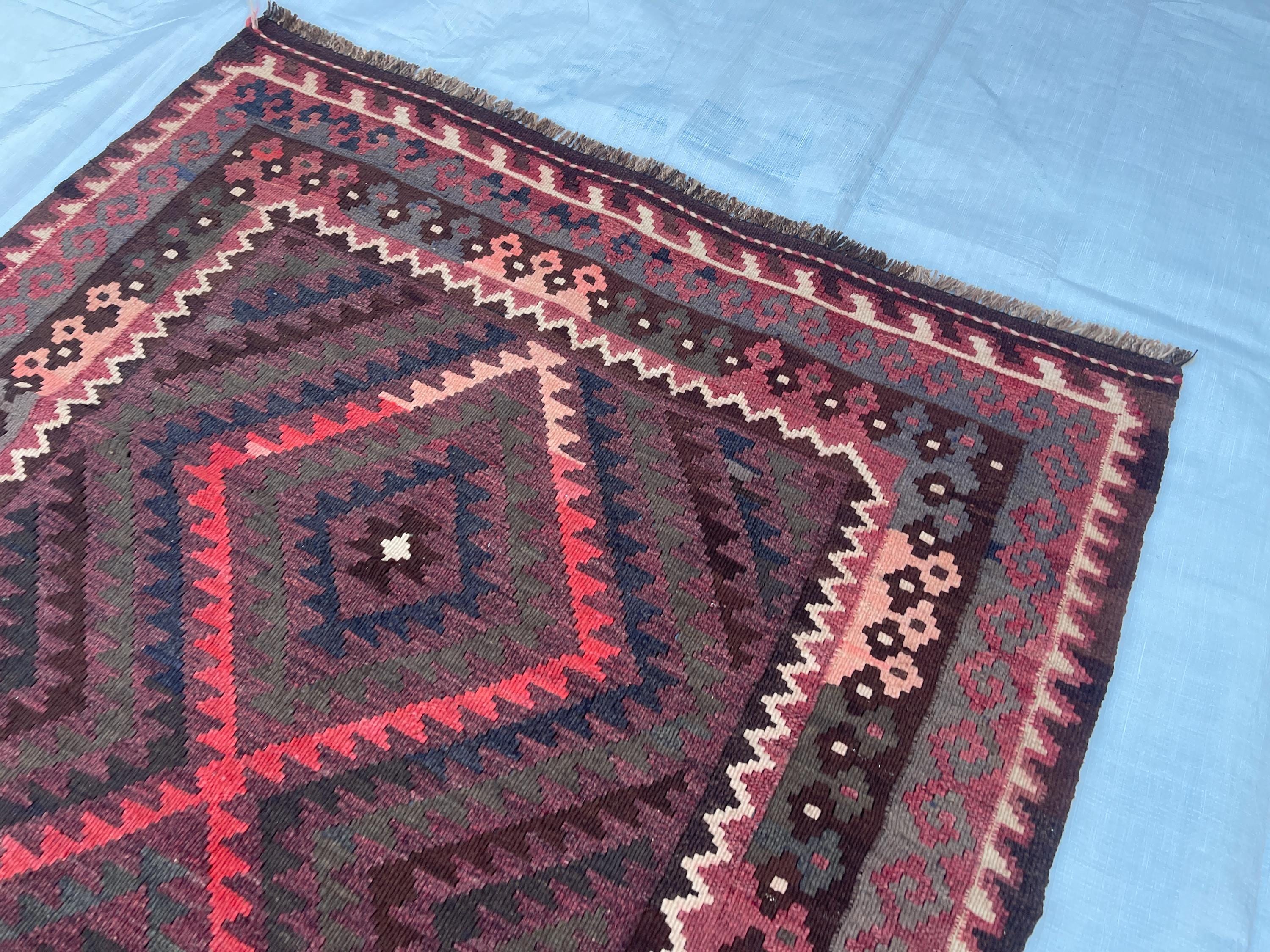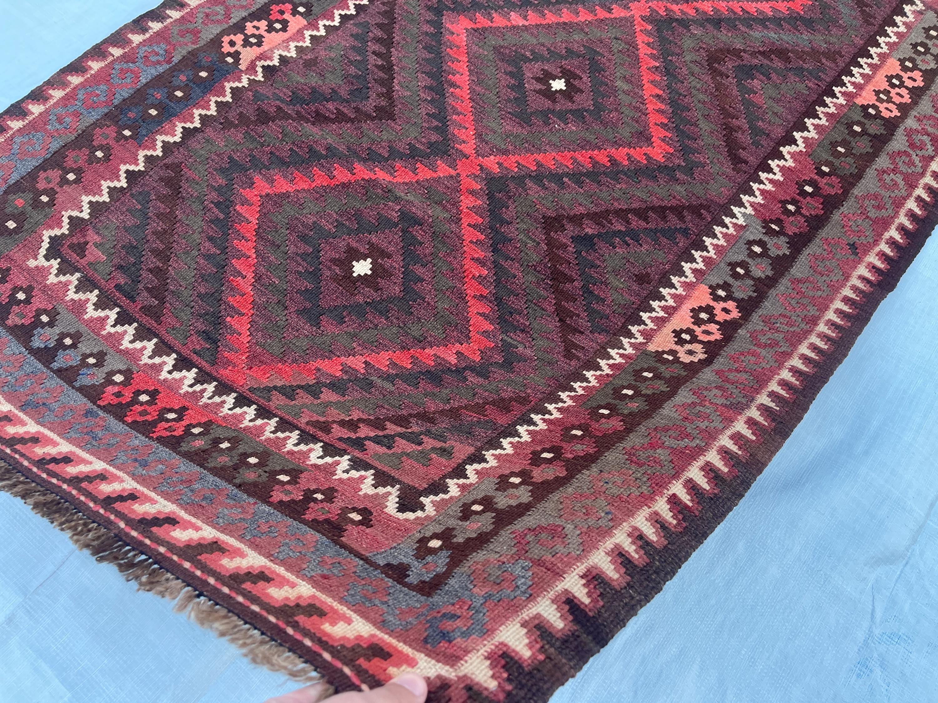 Faded Terracotta Afghan 4x7 ft Kilim Rug - Turkmen Maimana Veg Dyes Wool Antique Rug 3.5x7 ft - Traditional Vintage Oriental Rug 104x213 cm