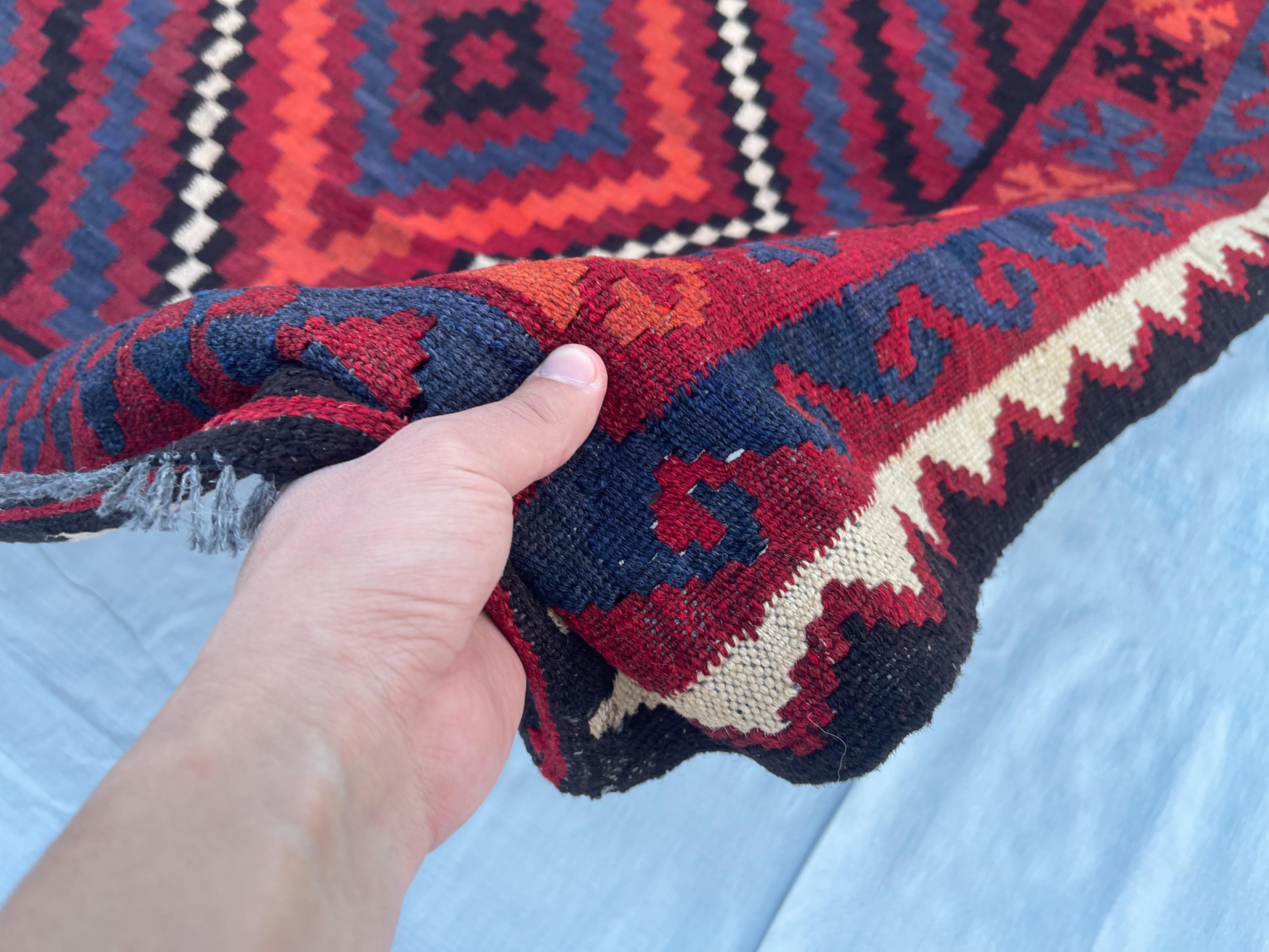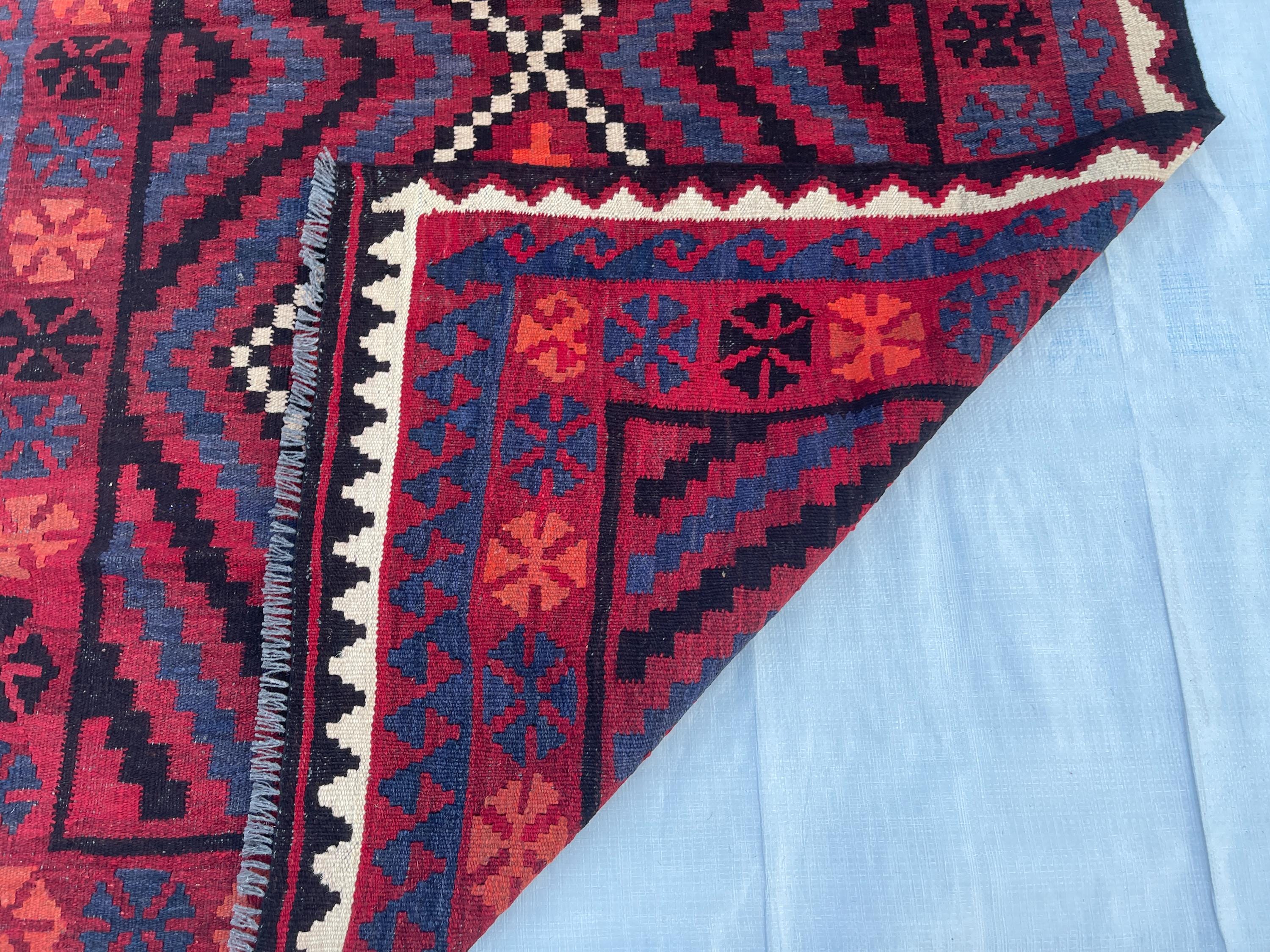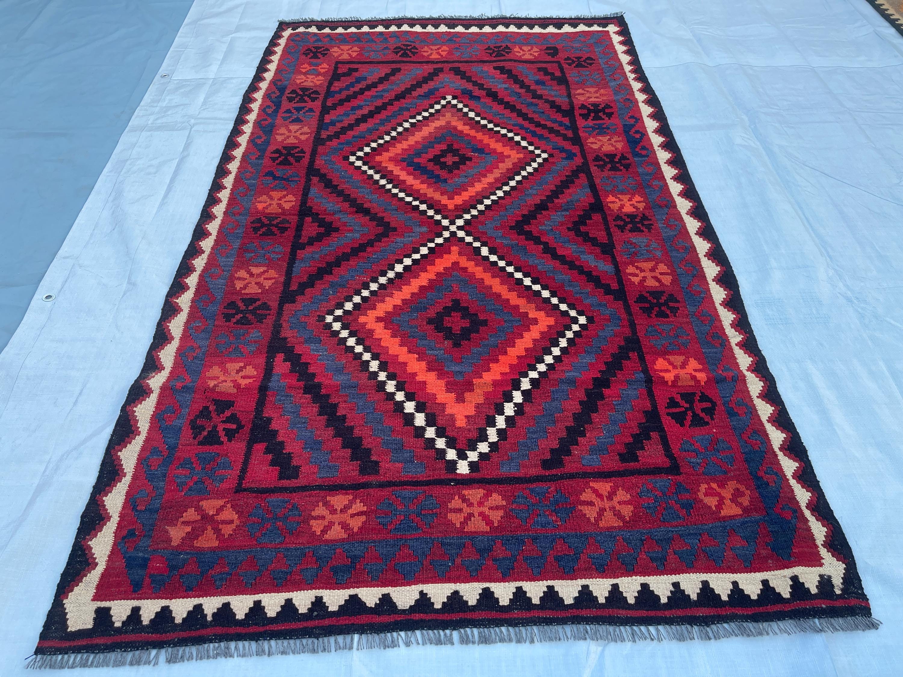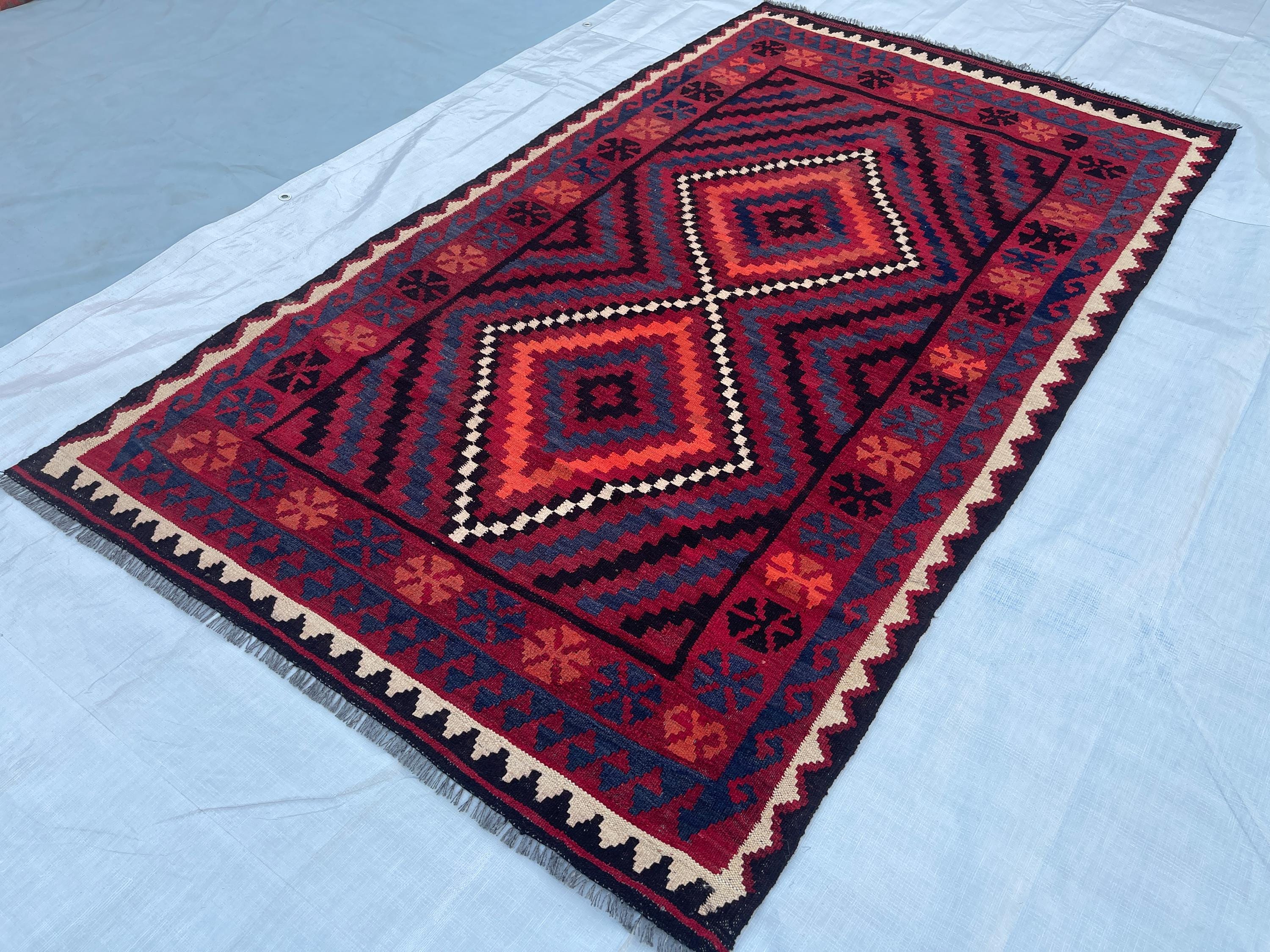 4x6 ft Red Afghan Tribal Rug - Vintage Geometric Traditional Rug 3.8x6.4 ft - Flatweave Boho Stye Oriental Area Rug 111x192 cm - Bedroom Rug