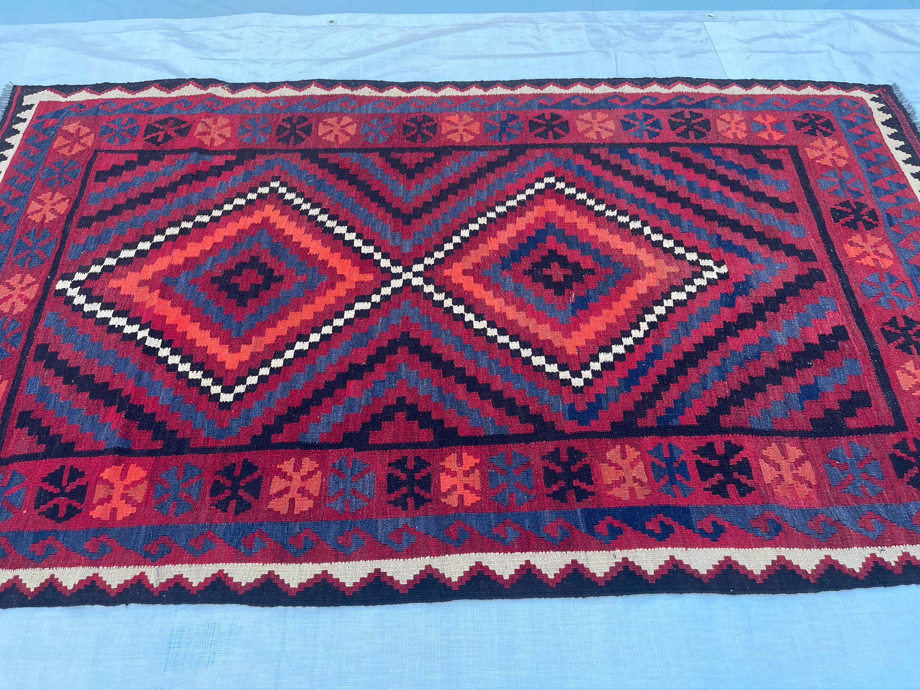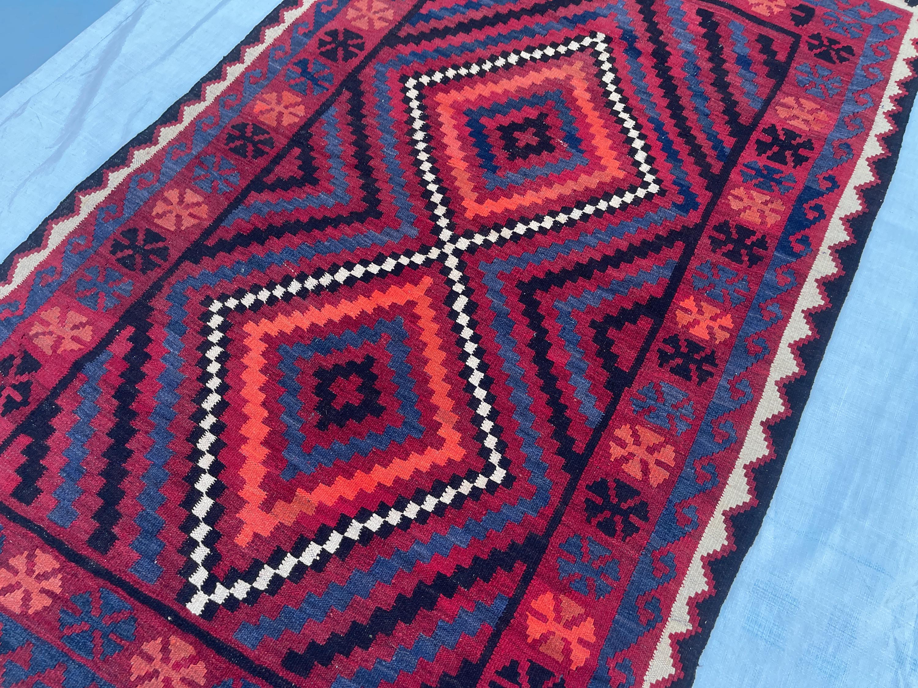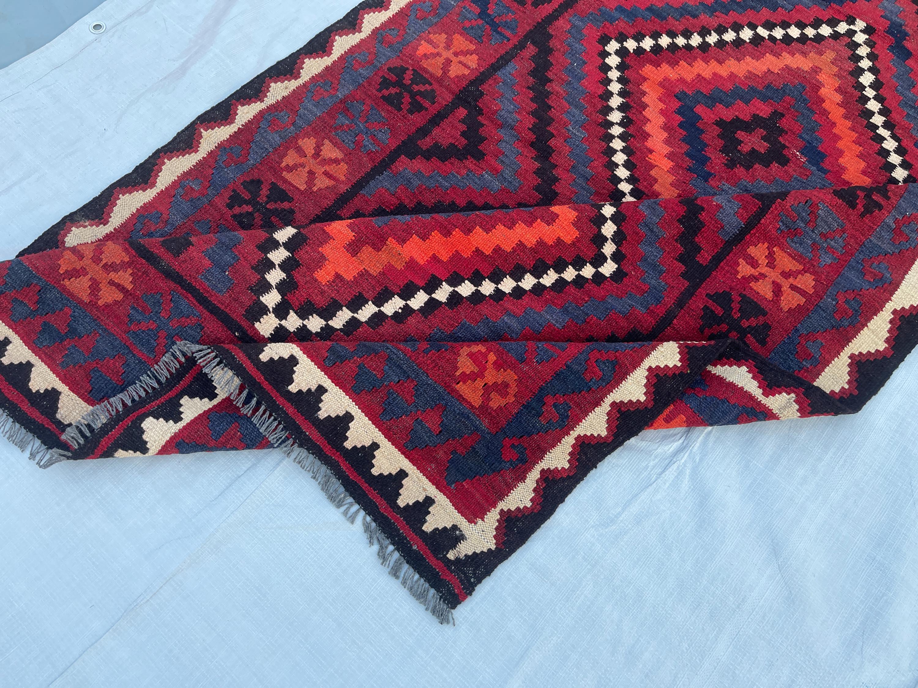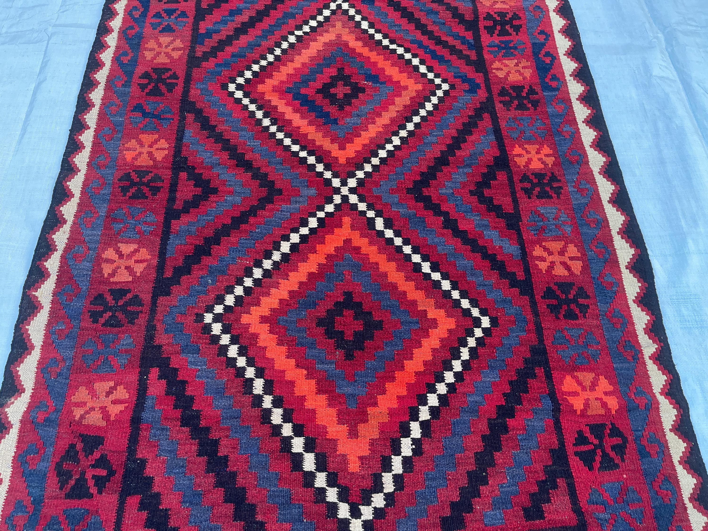4x6 ft Red Afghan Tribal Rug - Vintage Geometric Traditional Rug 3.8x6.4 ft - Flatweave Boho Stye Oriental Area Rug 111x192 cm - Bedroom Rug