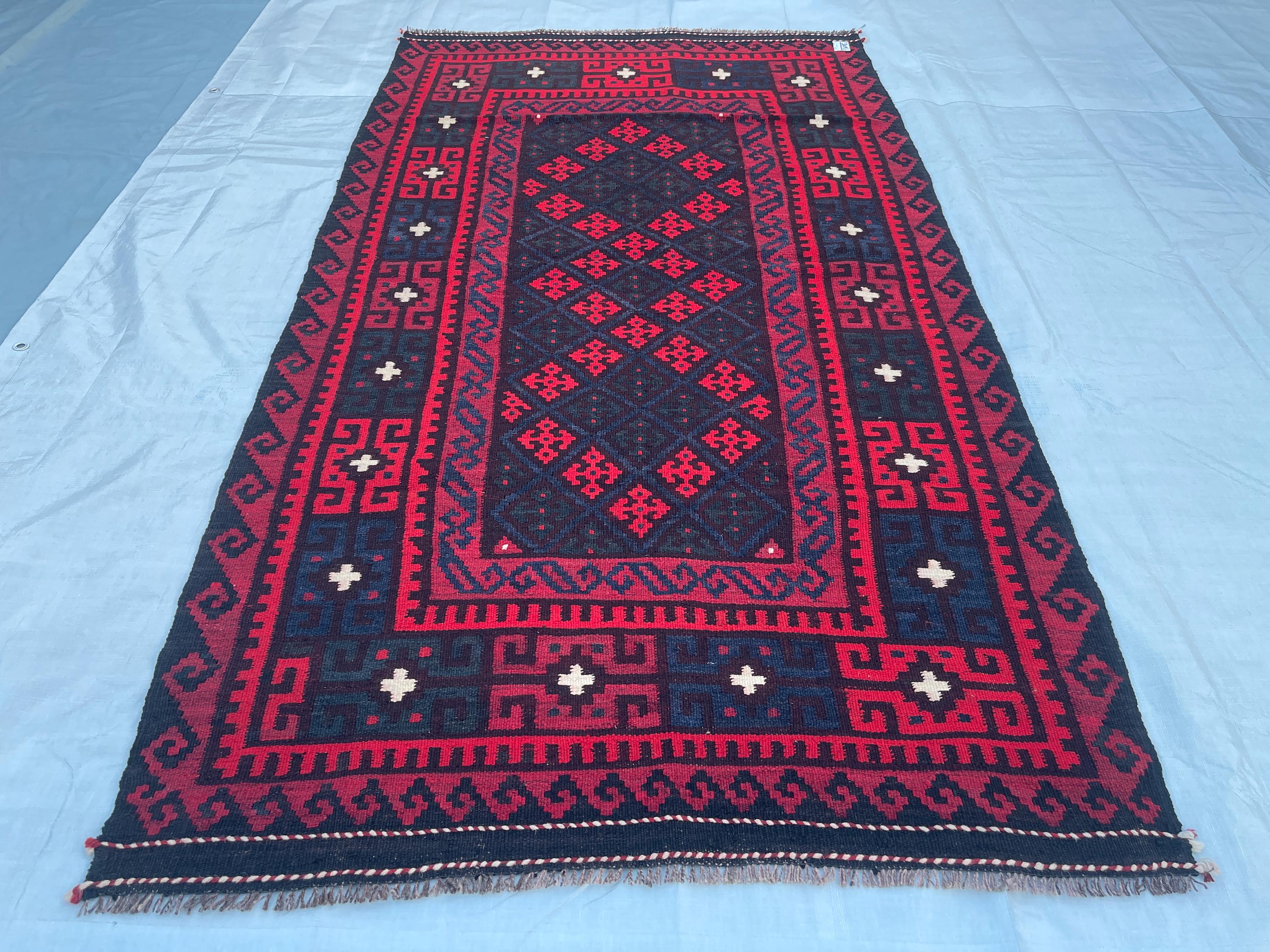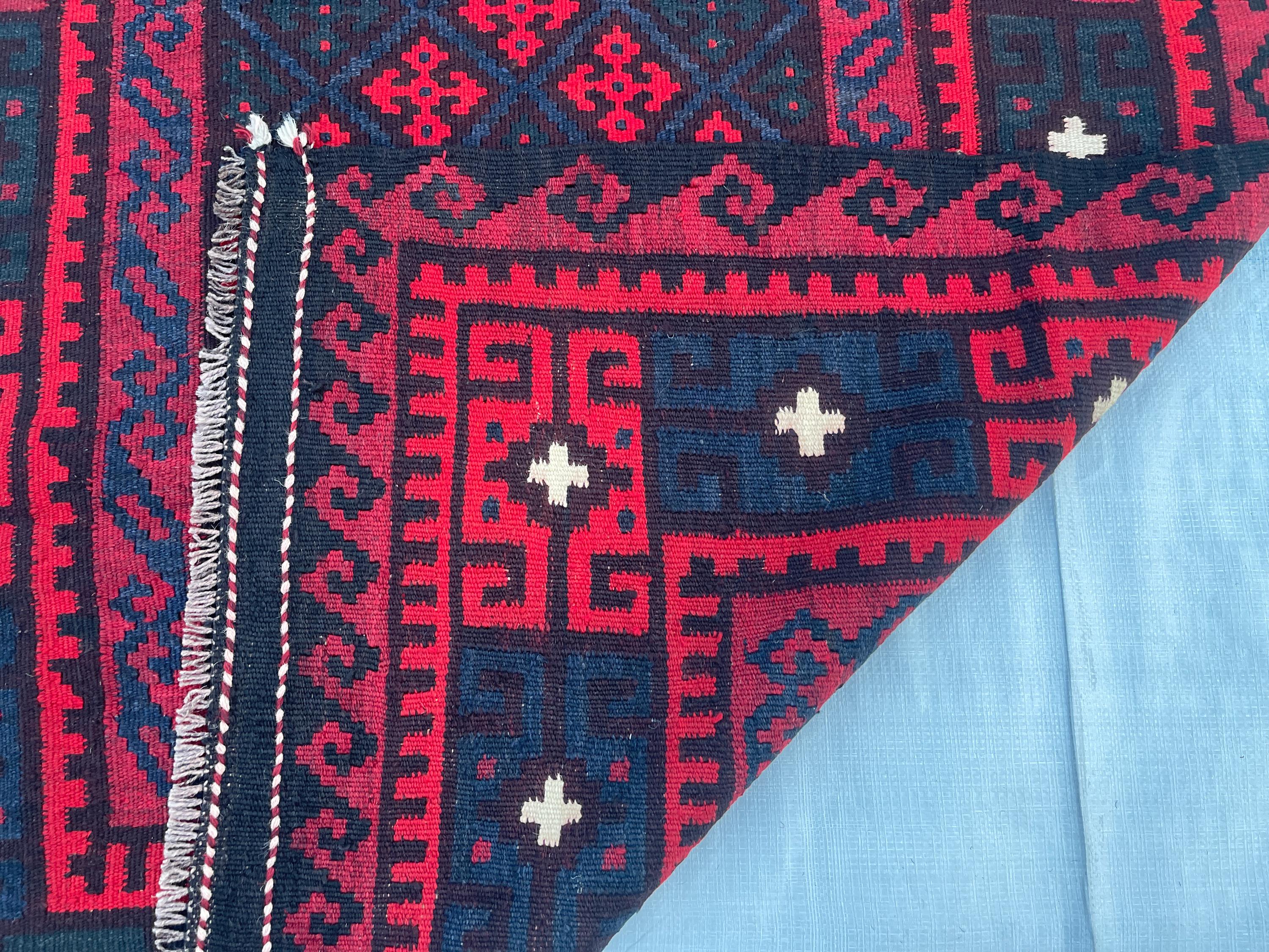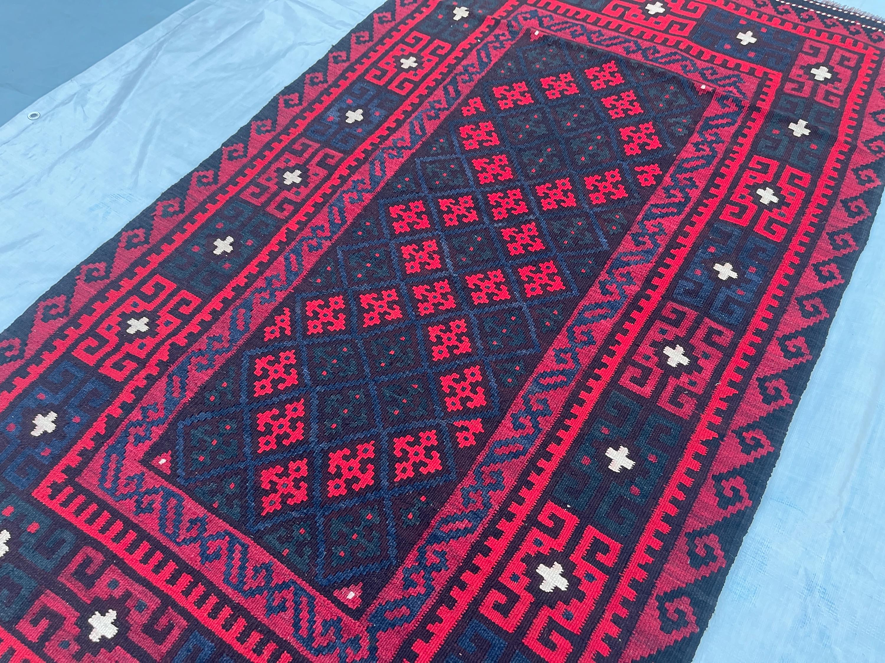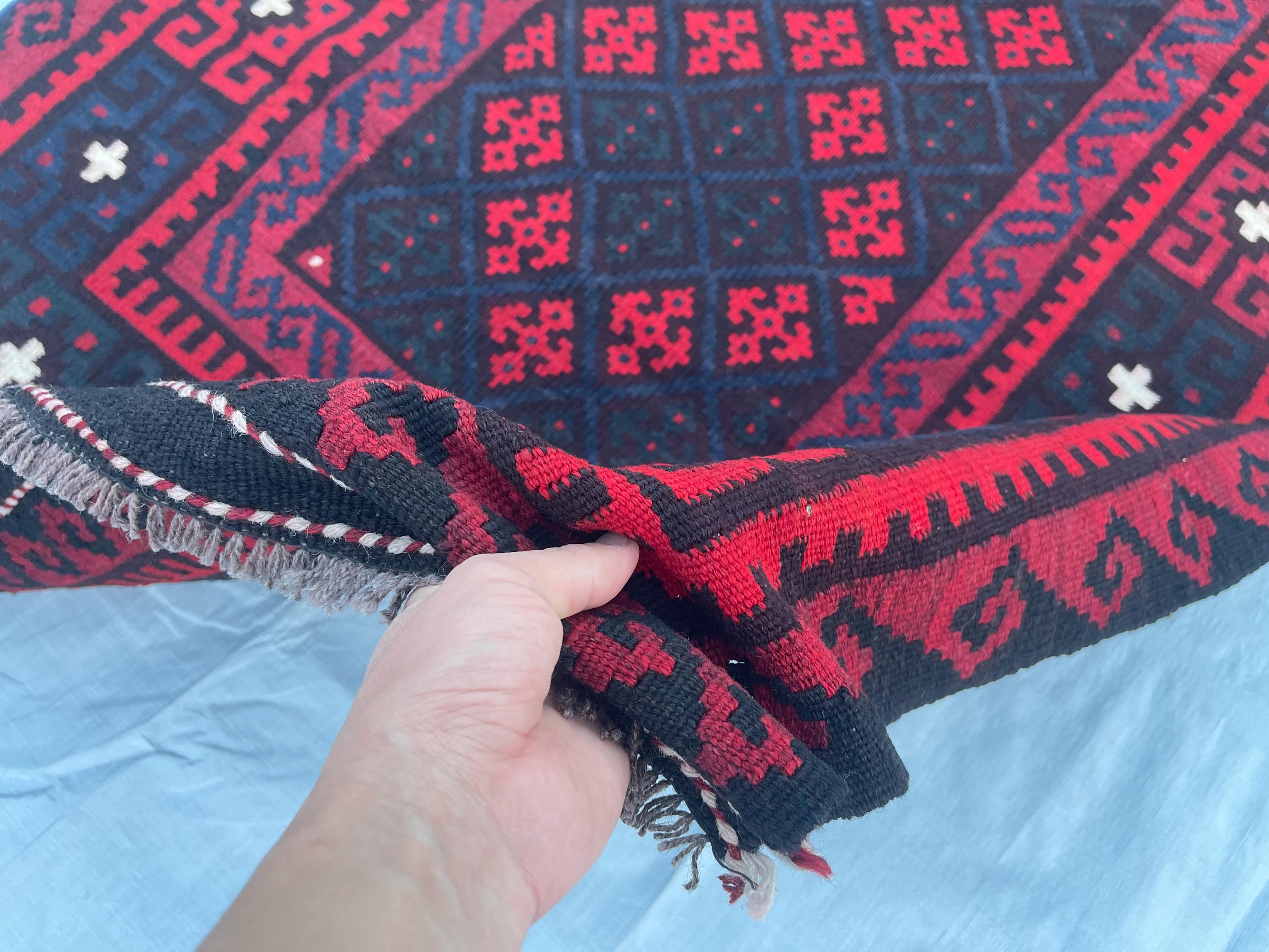 Red Geometric 4x7 ft Afghan Traditional Rug - Turkmen Handwoven Maimana Veg Dyes Rug 3.7x6.9 ft - Floor Rug 108x205 cm - Living Room - Kids