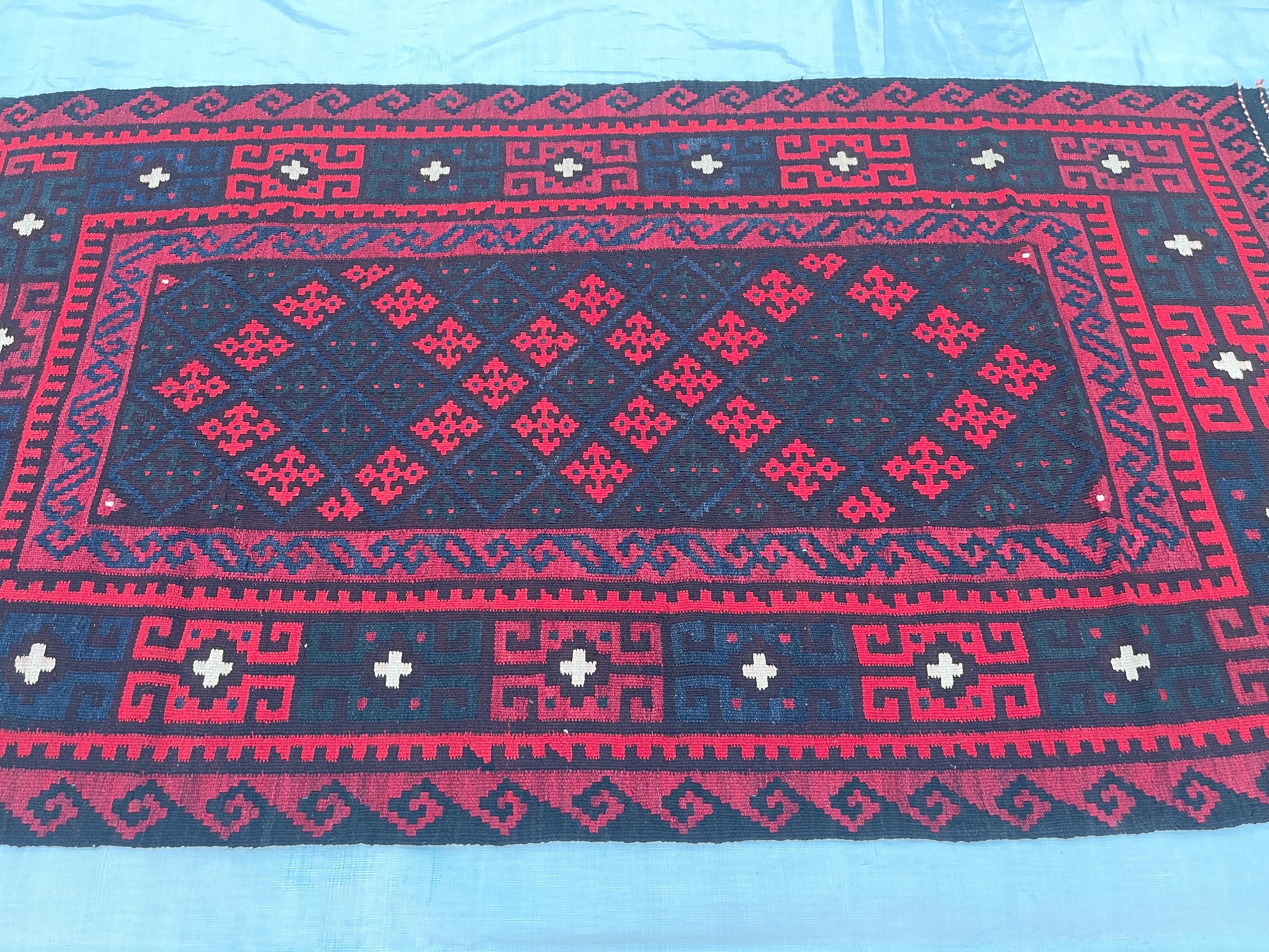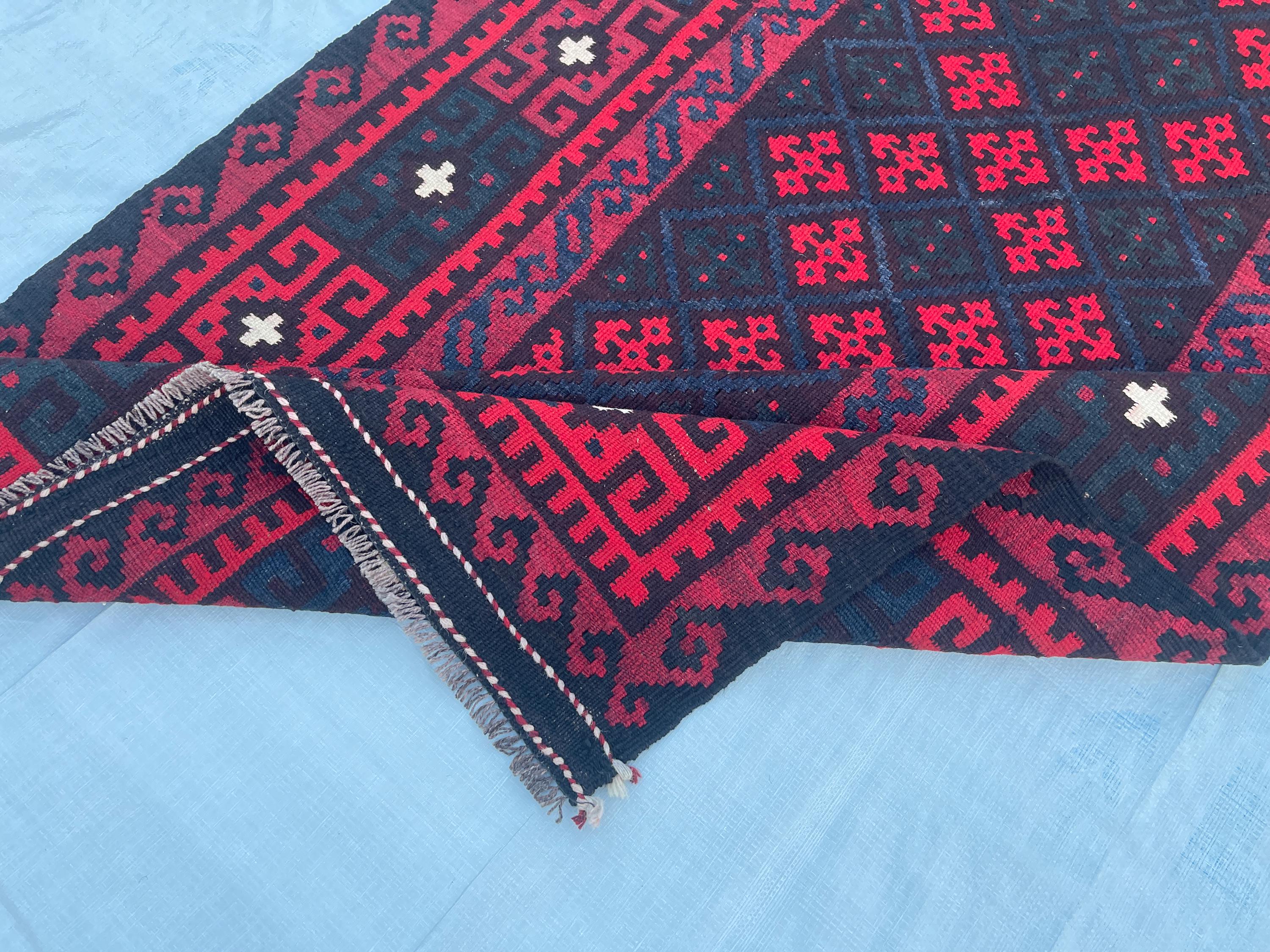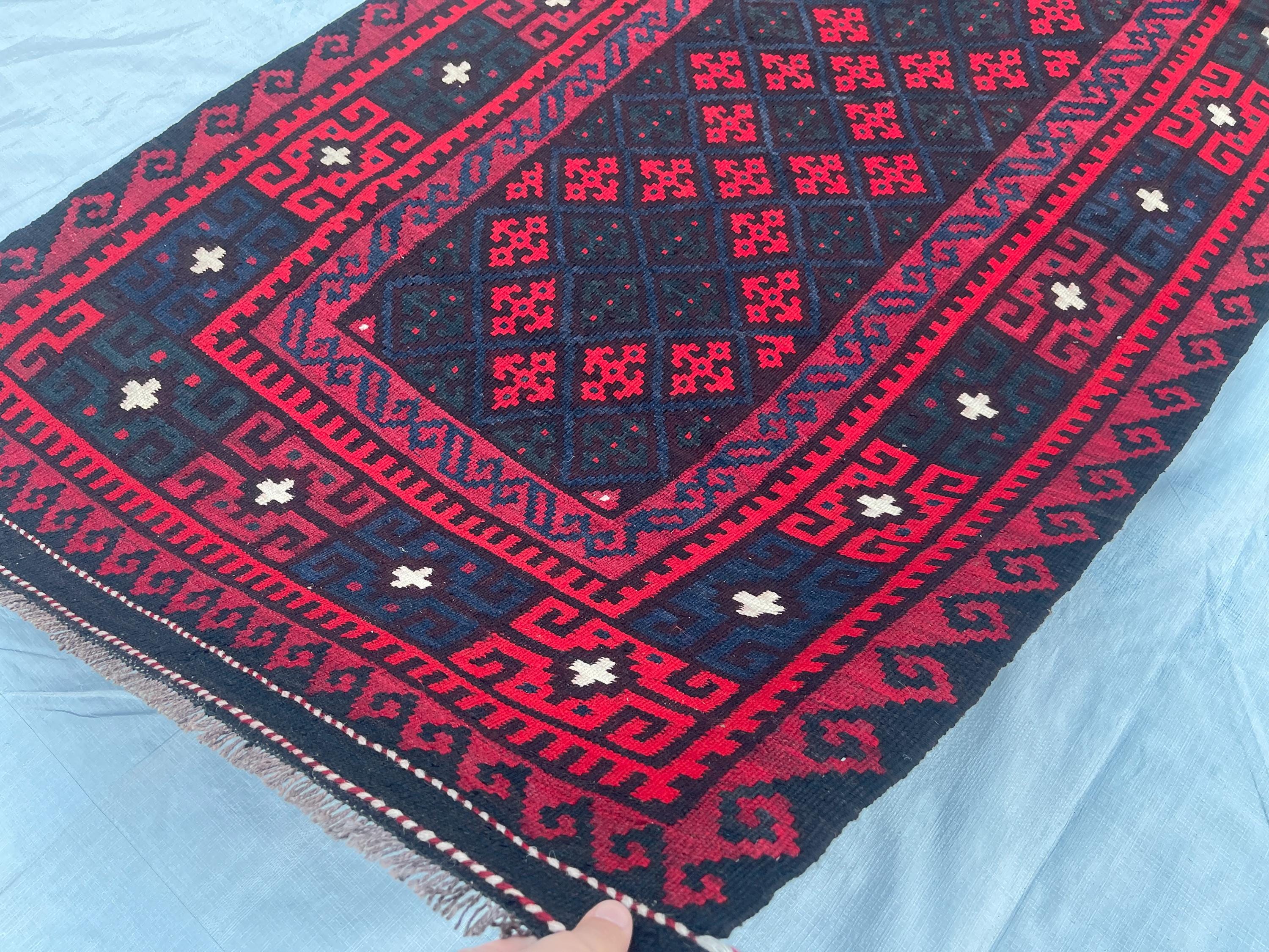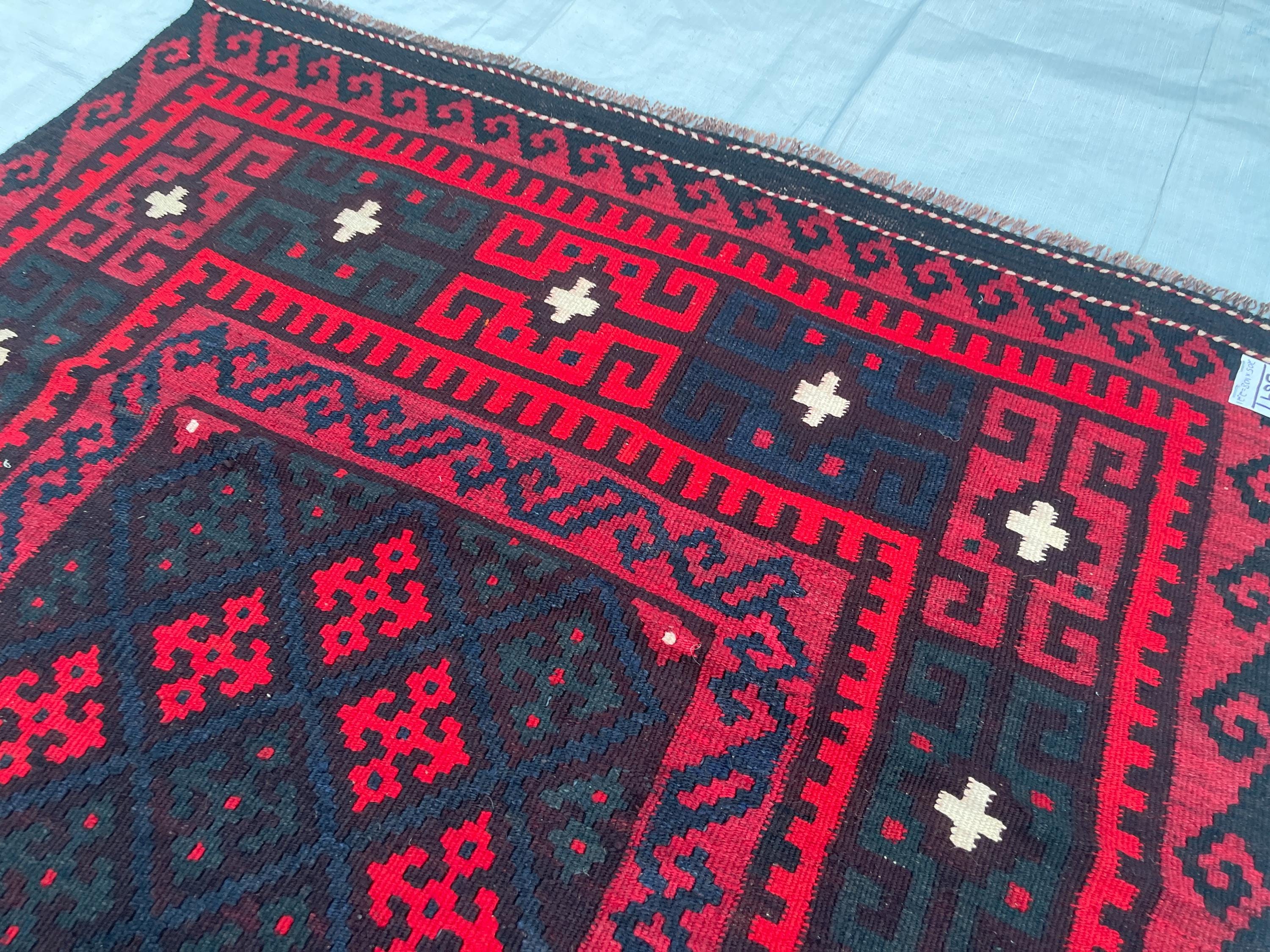 Red Geometric 4x7 ft Afghan Traditional Rug - Turkmen Handwoven Maimana Veg Dyes Rug 3.7x6.9 ft - Floor Rug 108x205 cm - Living Room - Kids