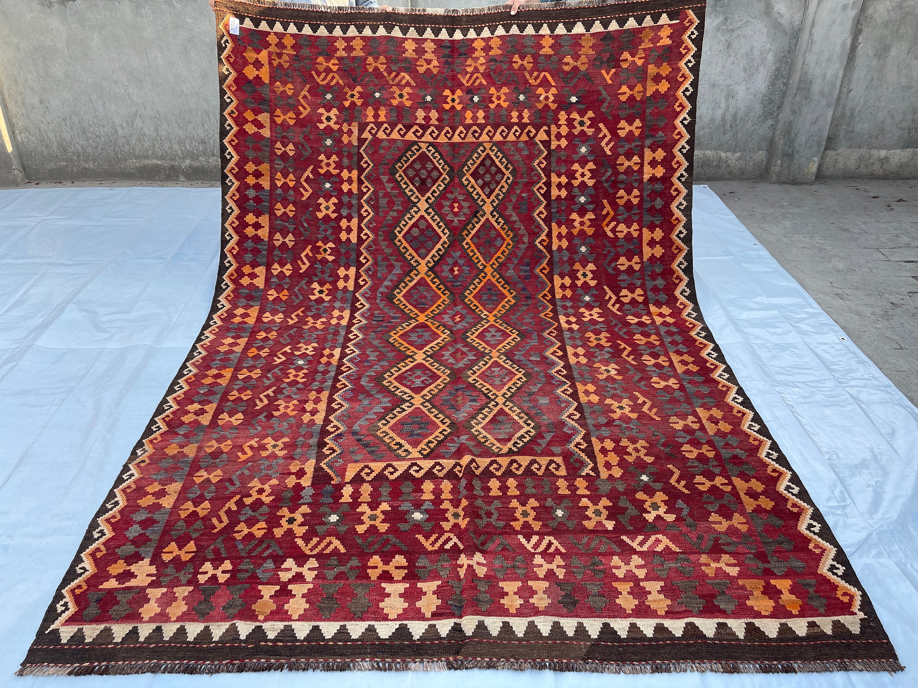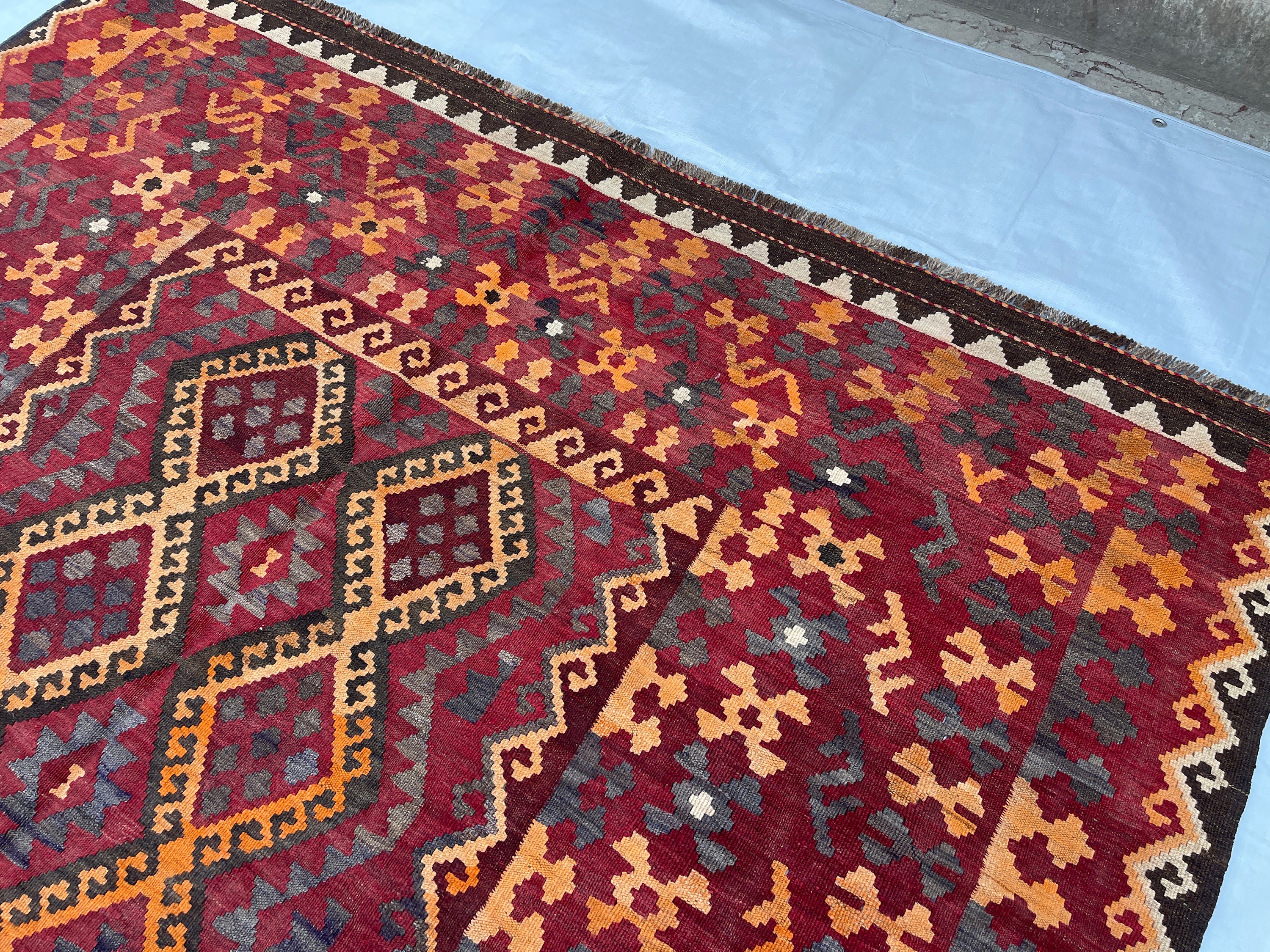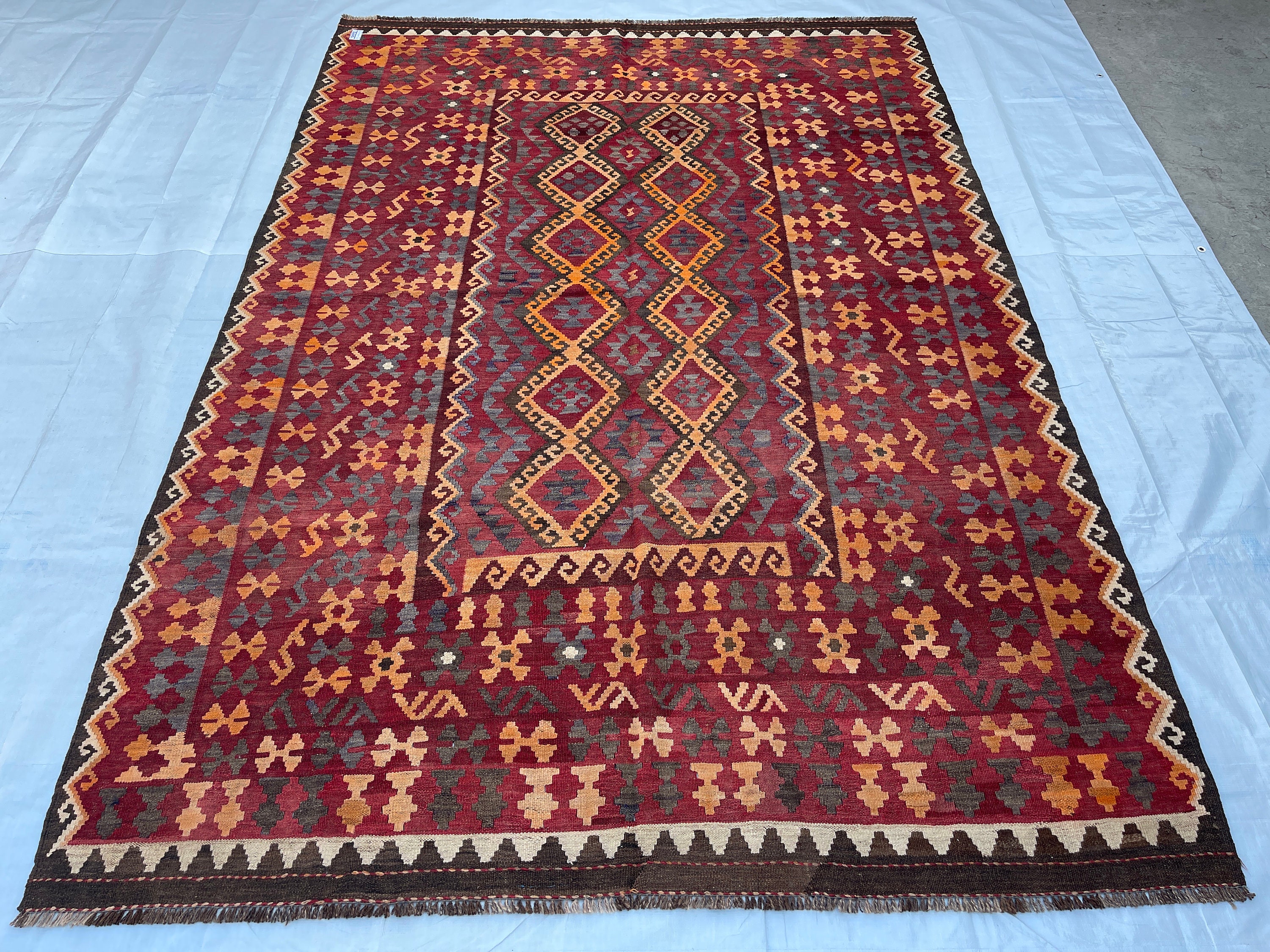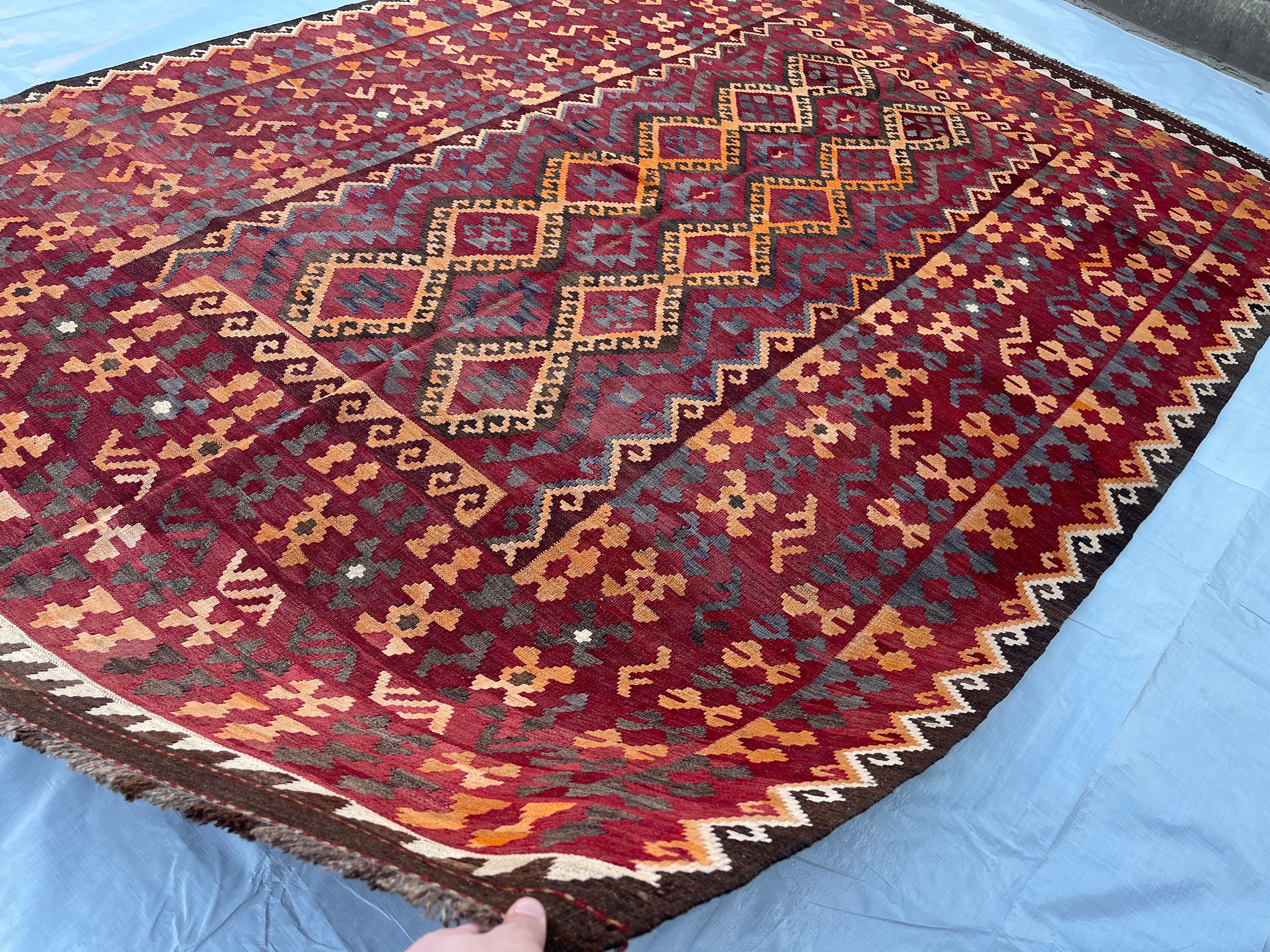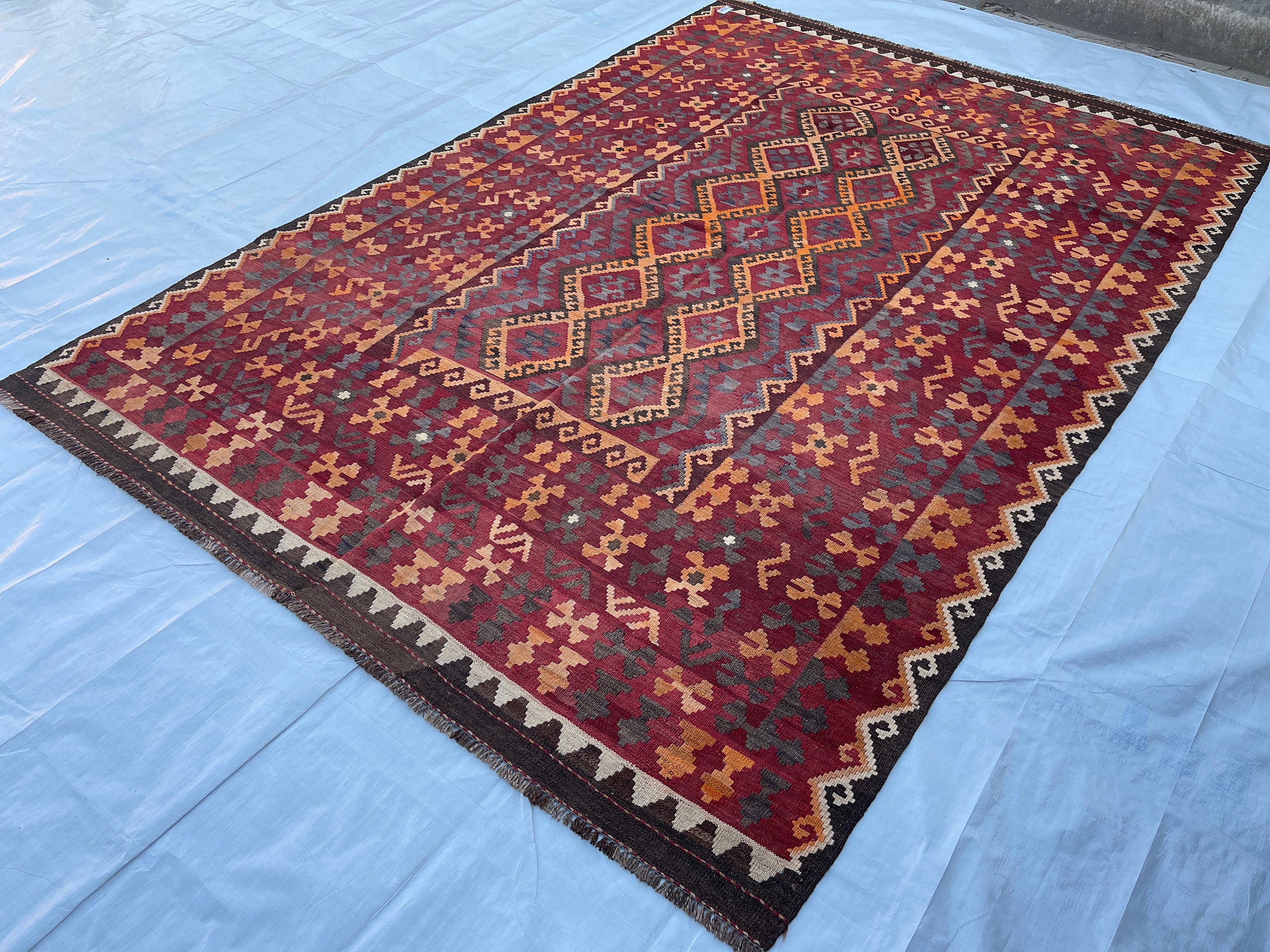 7x10 Rustic Red Turkmen Kilim Rug - Afghan Tribal Maimana Kilim - Turkish Caucasian Handmade Rug 6'8"x9'9" - Rugs for Living Room 204x297 cm