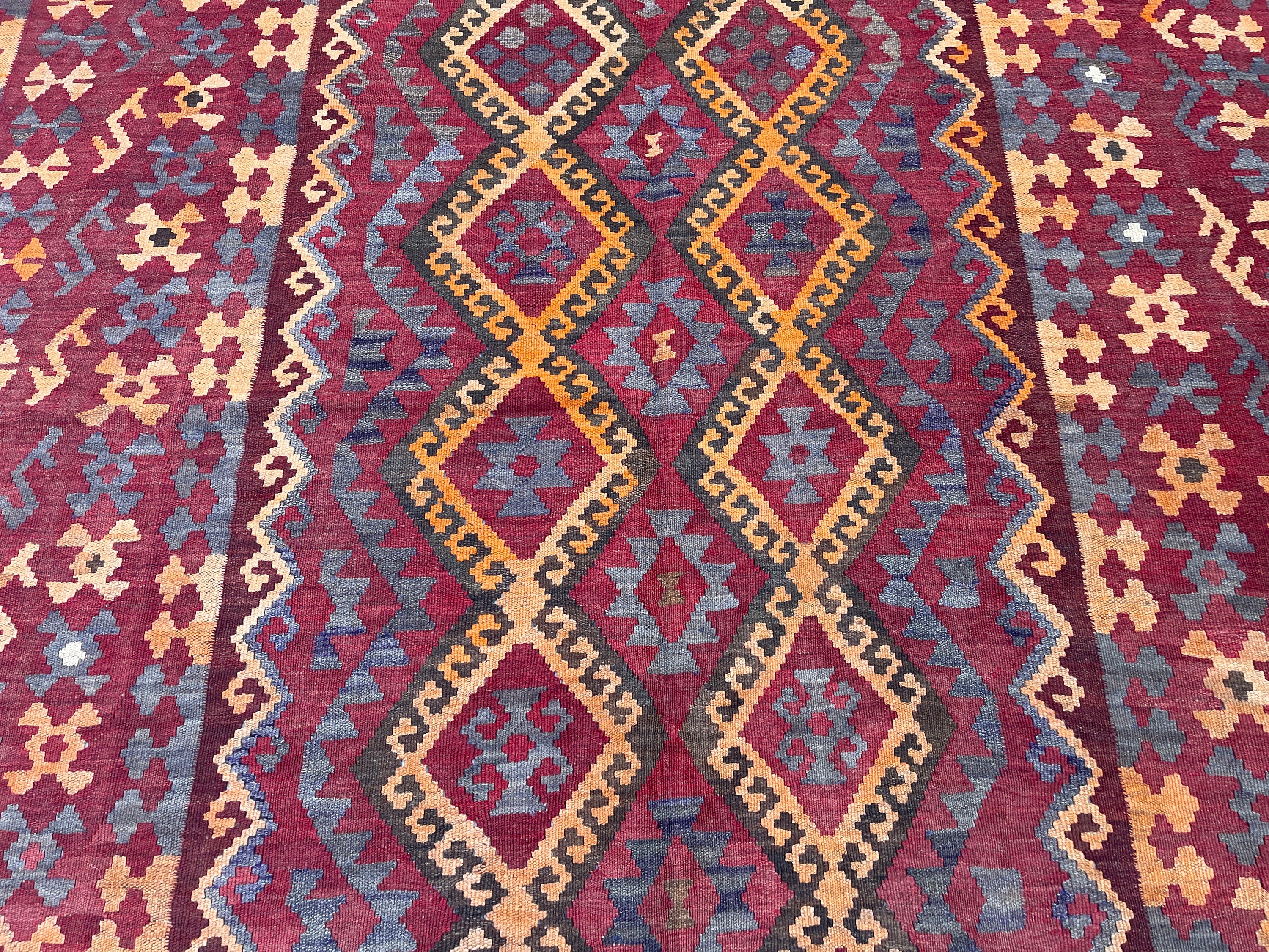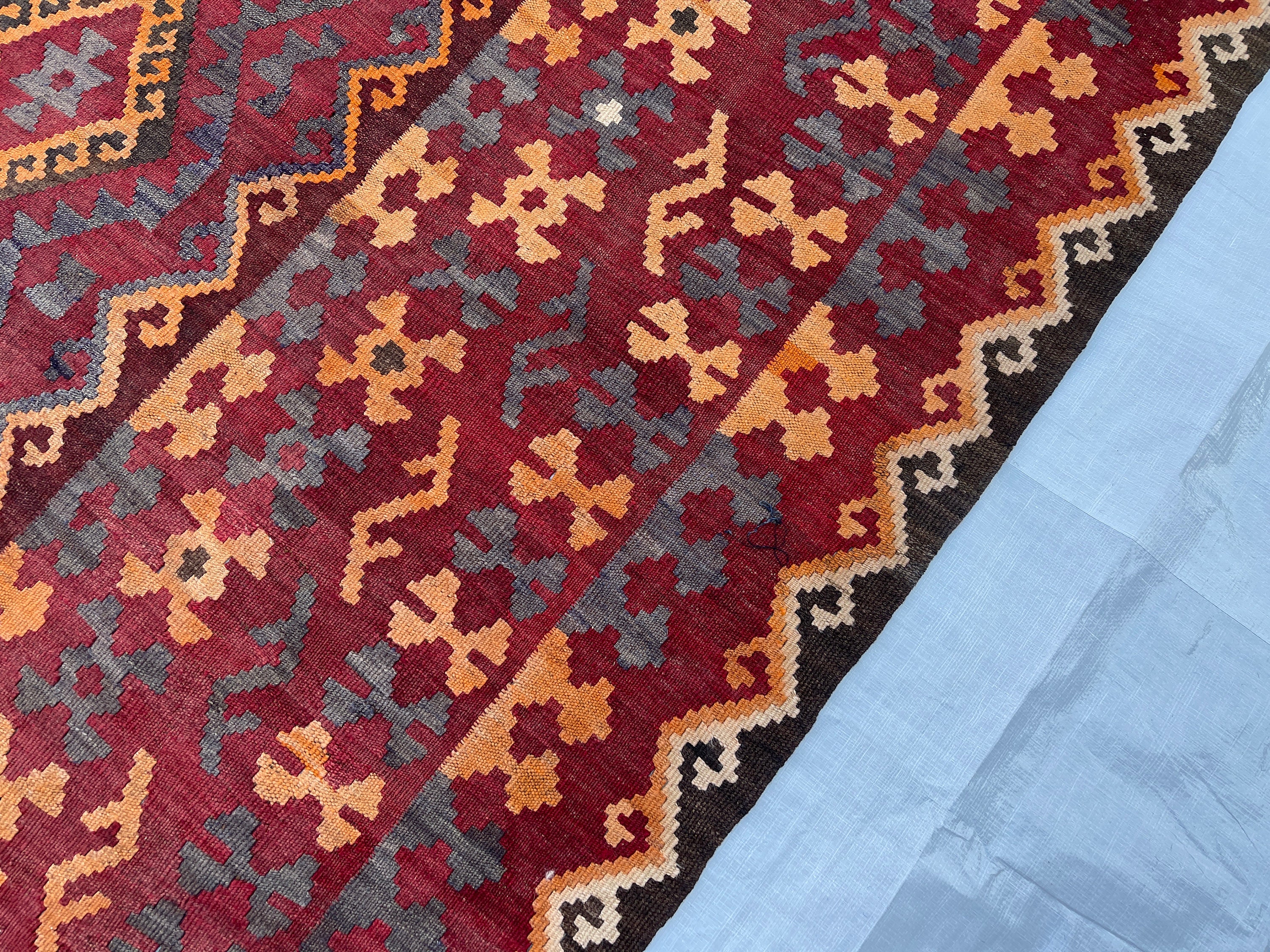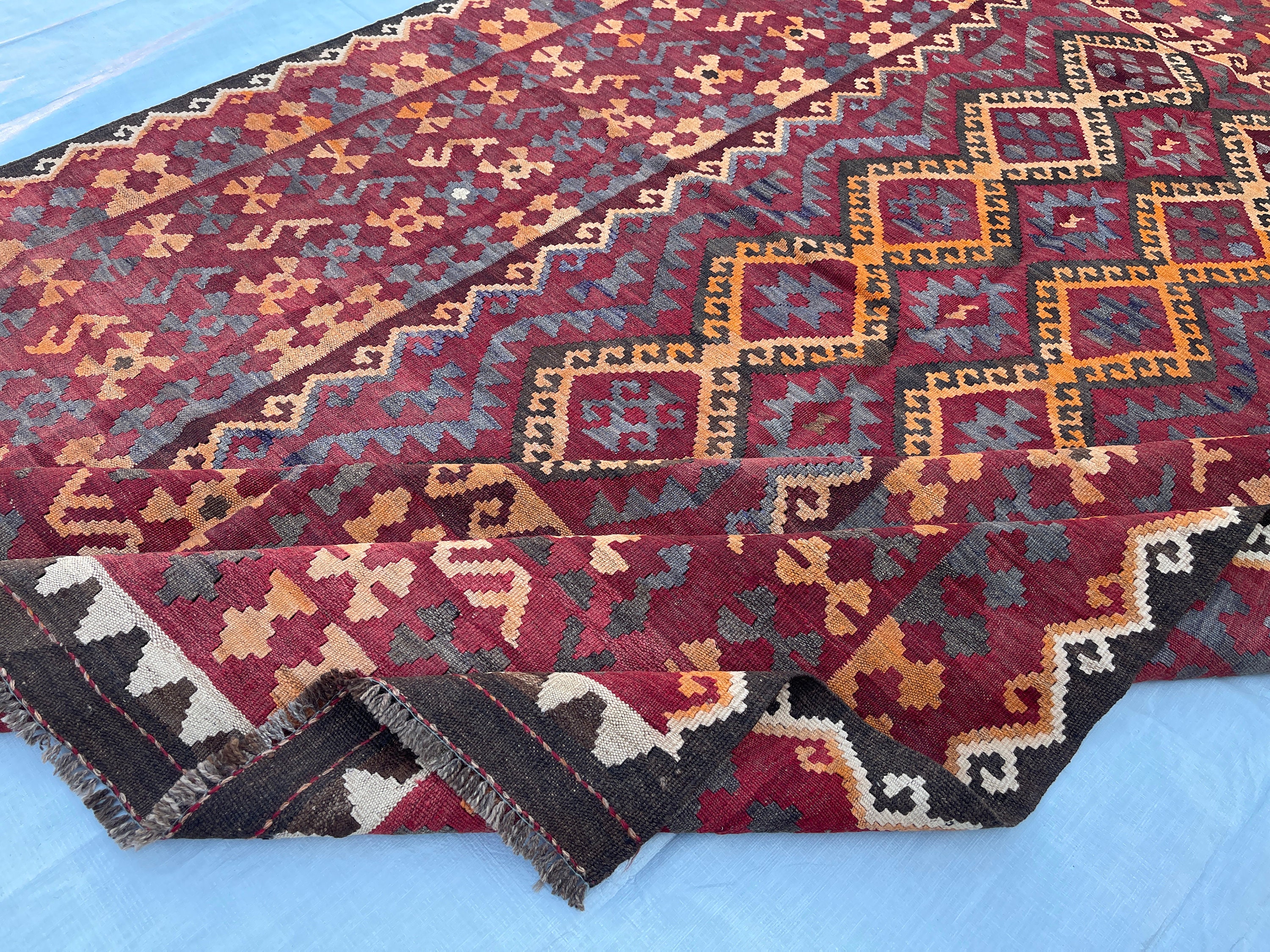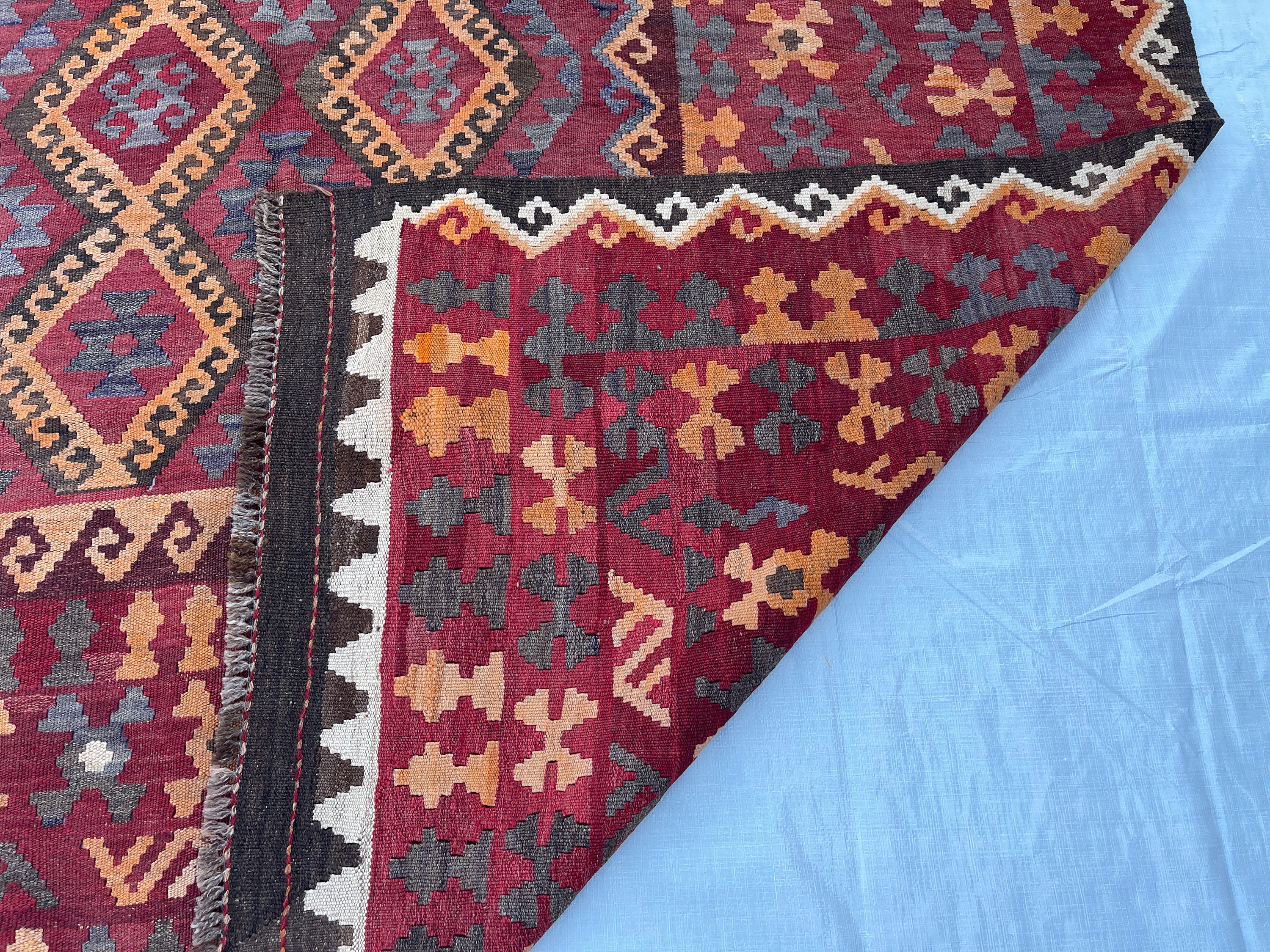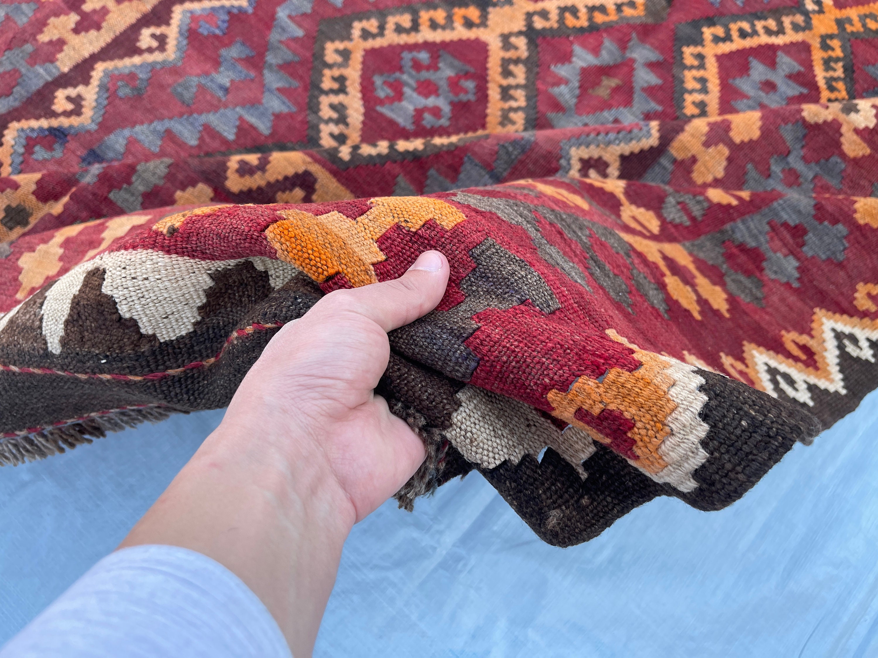 7x10 Rustic Red Turkmen Kilim Rug - Afghan Tribal Maimana Kilim - Turkish Caucasian Handmade Rug 6'8"x9'9" - Rugs for Living Room 204x297 cm