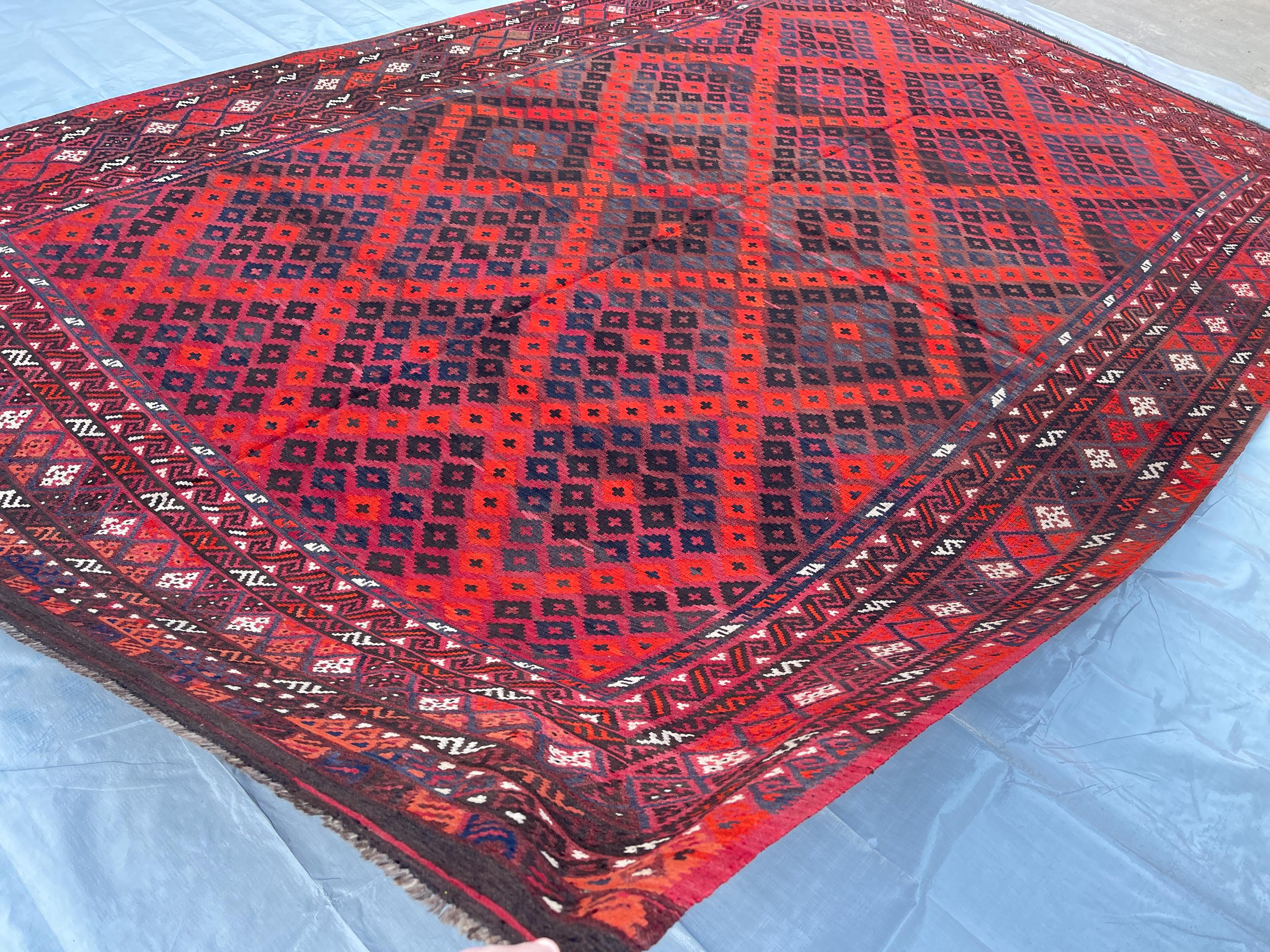 9x15 Antique Afghan 1980s GENUINE Vintage Tribal Rug - Traditional Handmade Wool Rug 9.3x14.10 ft - Rugs for Hall - Living Room 282x451 cm