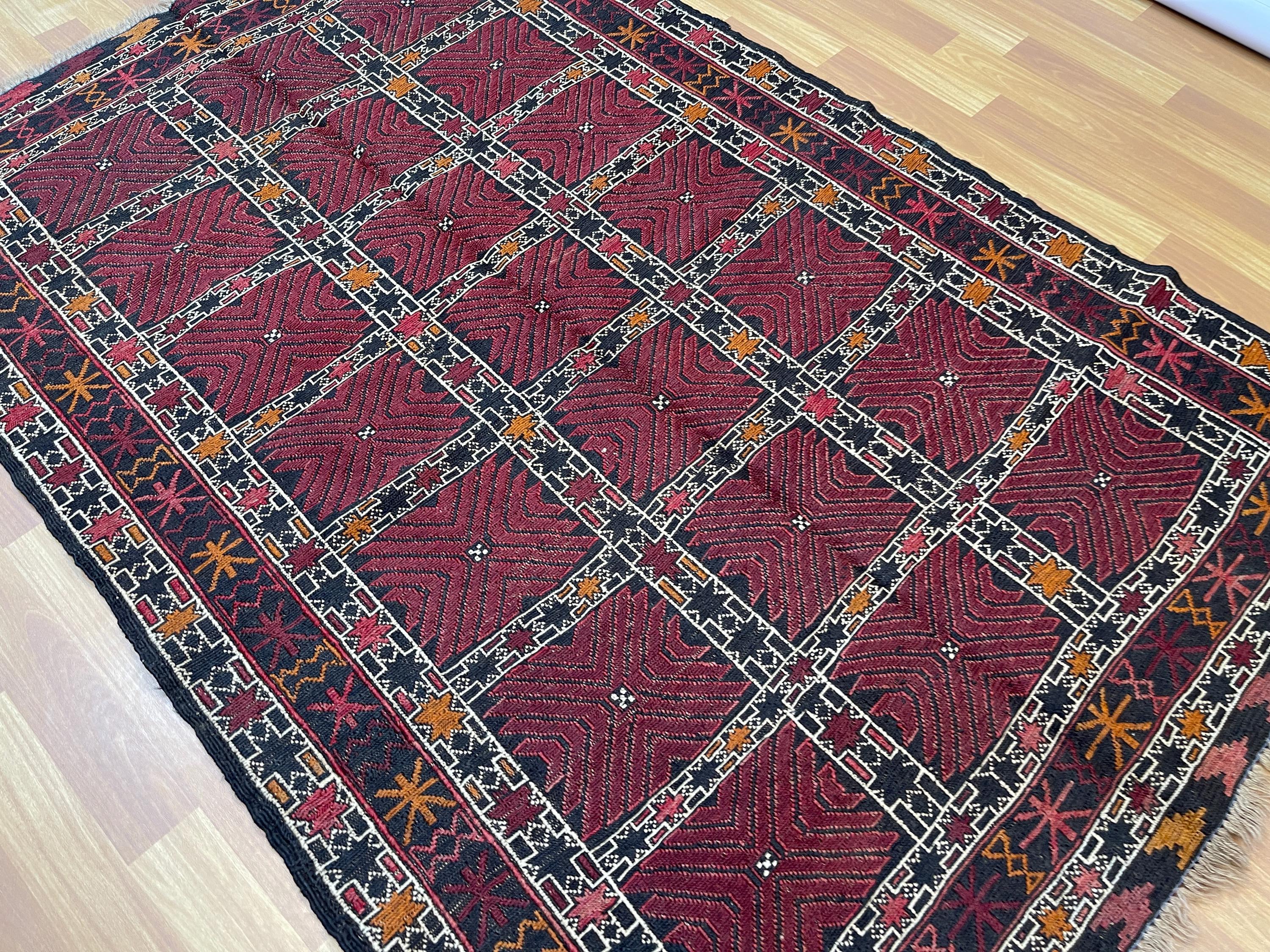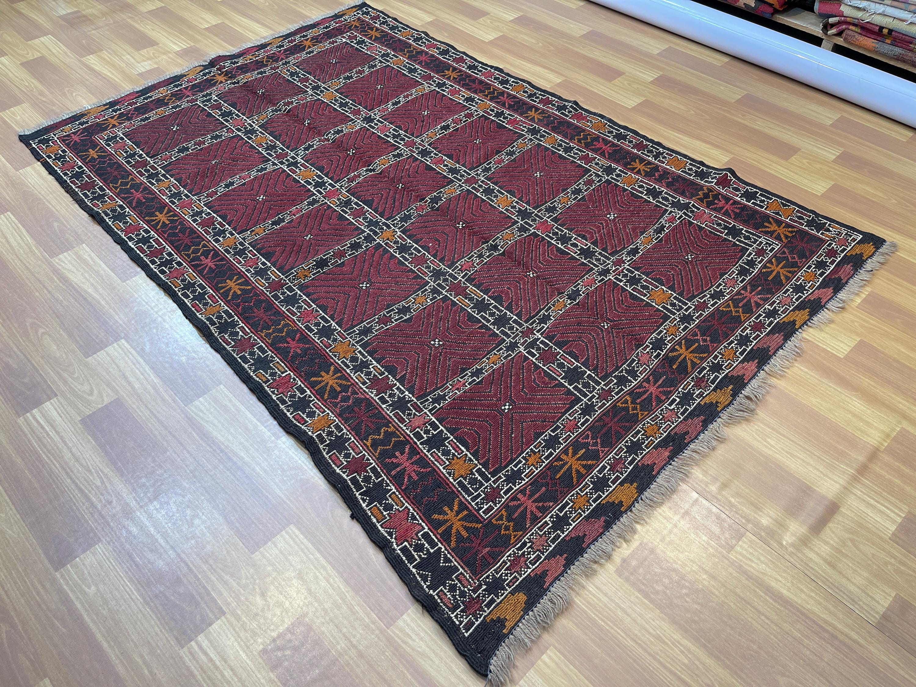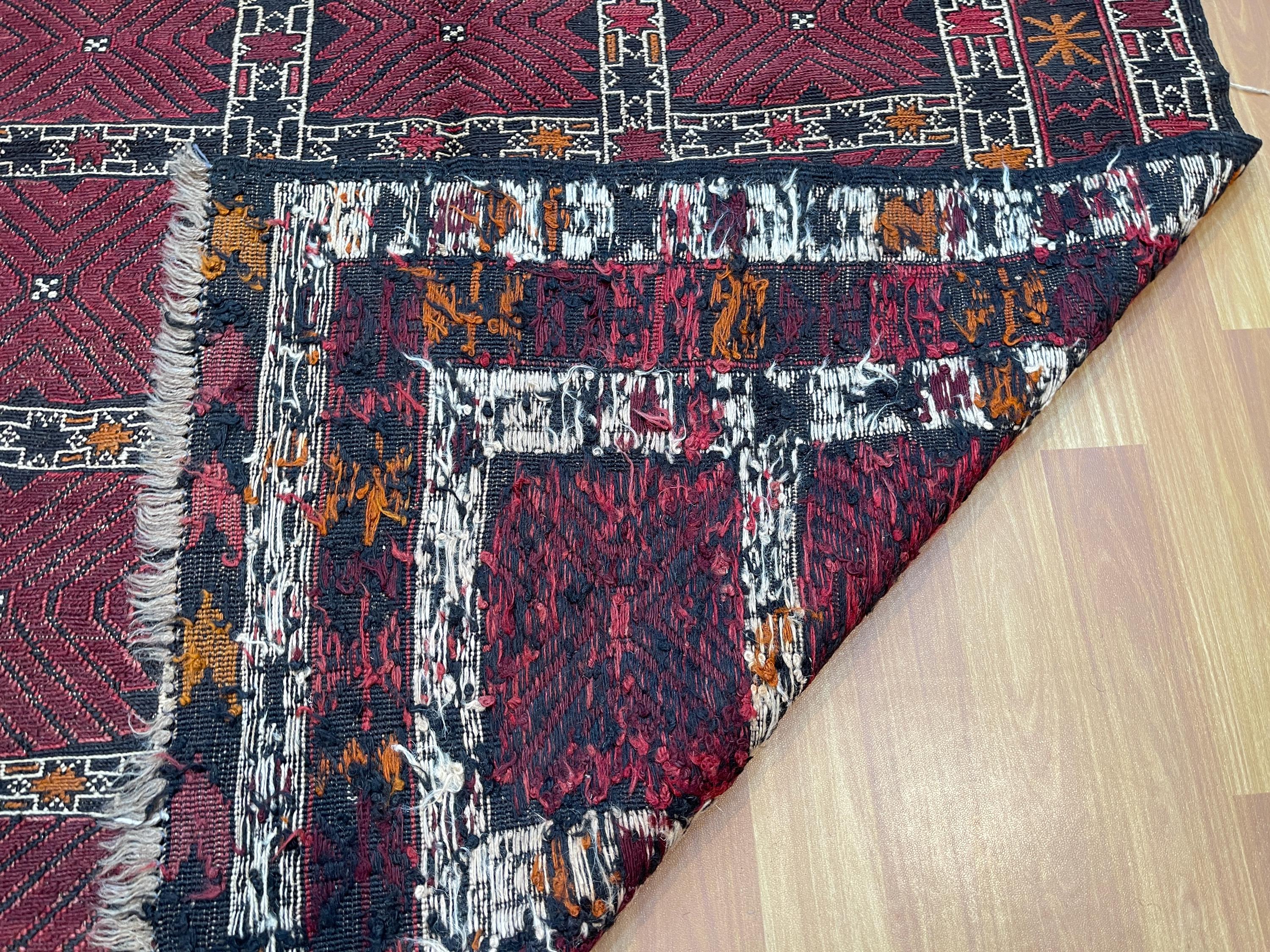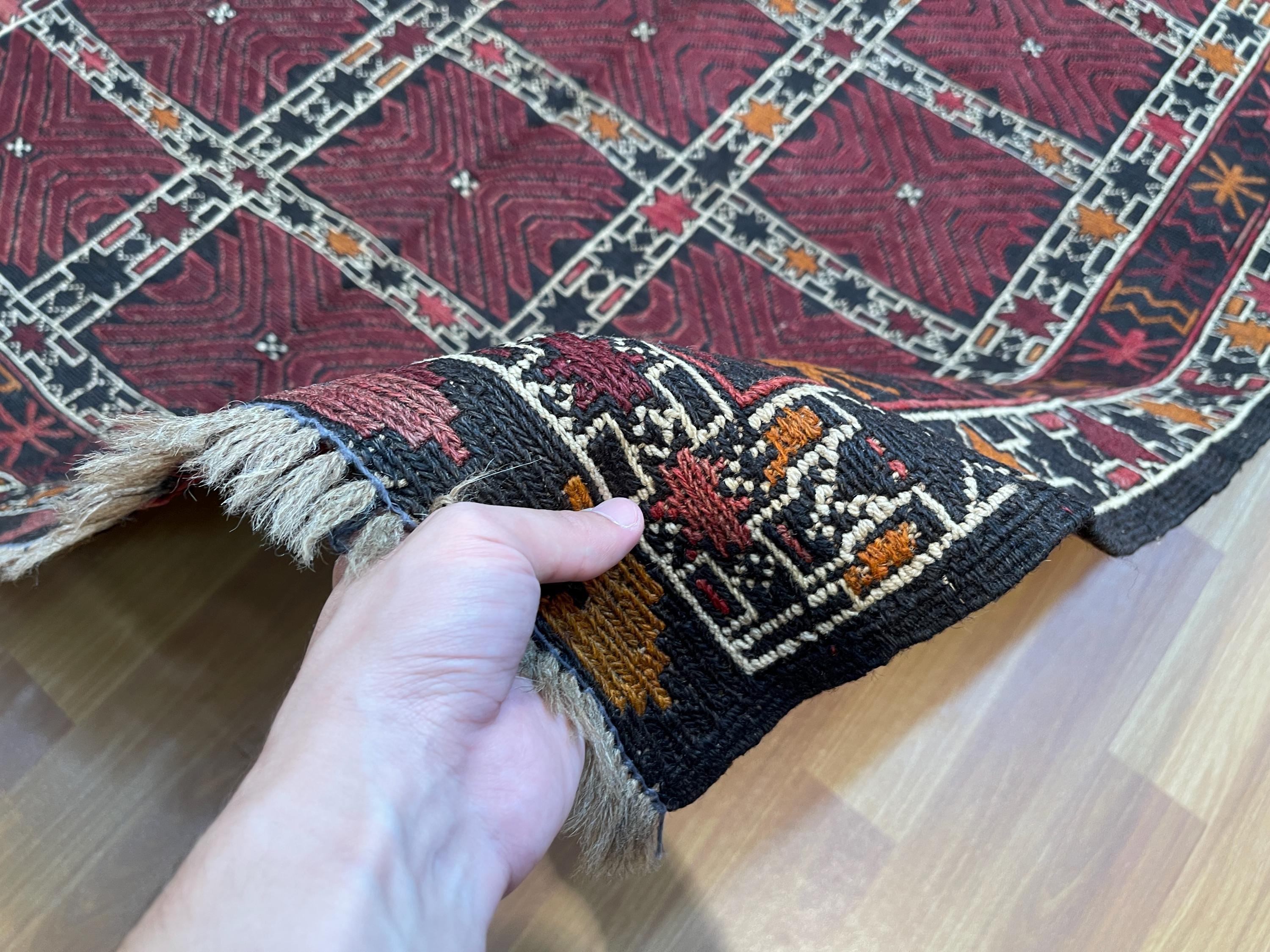 4x6 ft Red Soumak Afghan Kilim Rug - Fine Turkmen Traditional Handmade Rug 4x6.3 ft - Geometric Caucasian Wool Rug - Turkish Kilim Area Rug