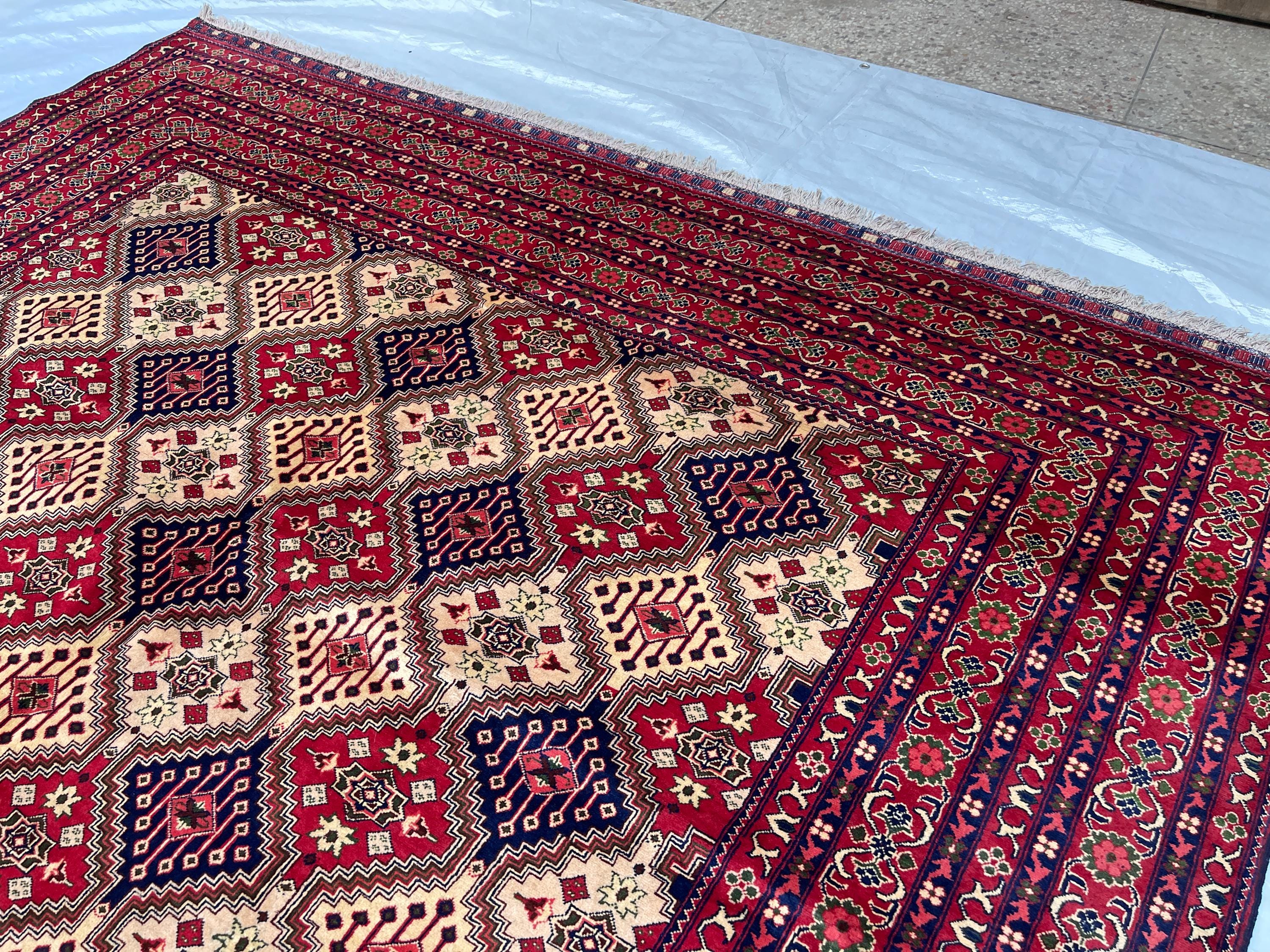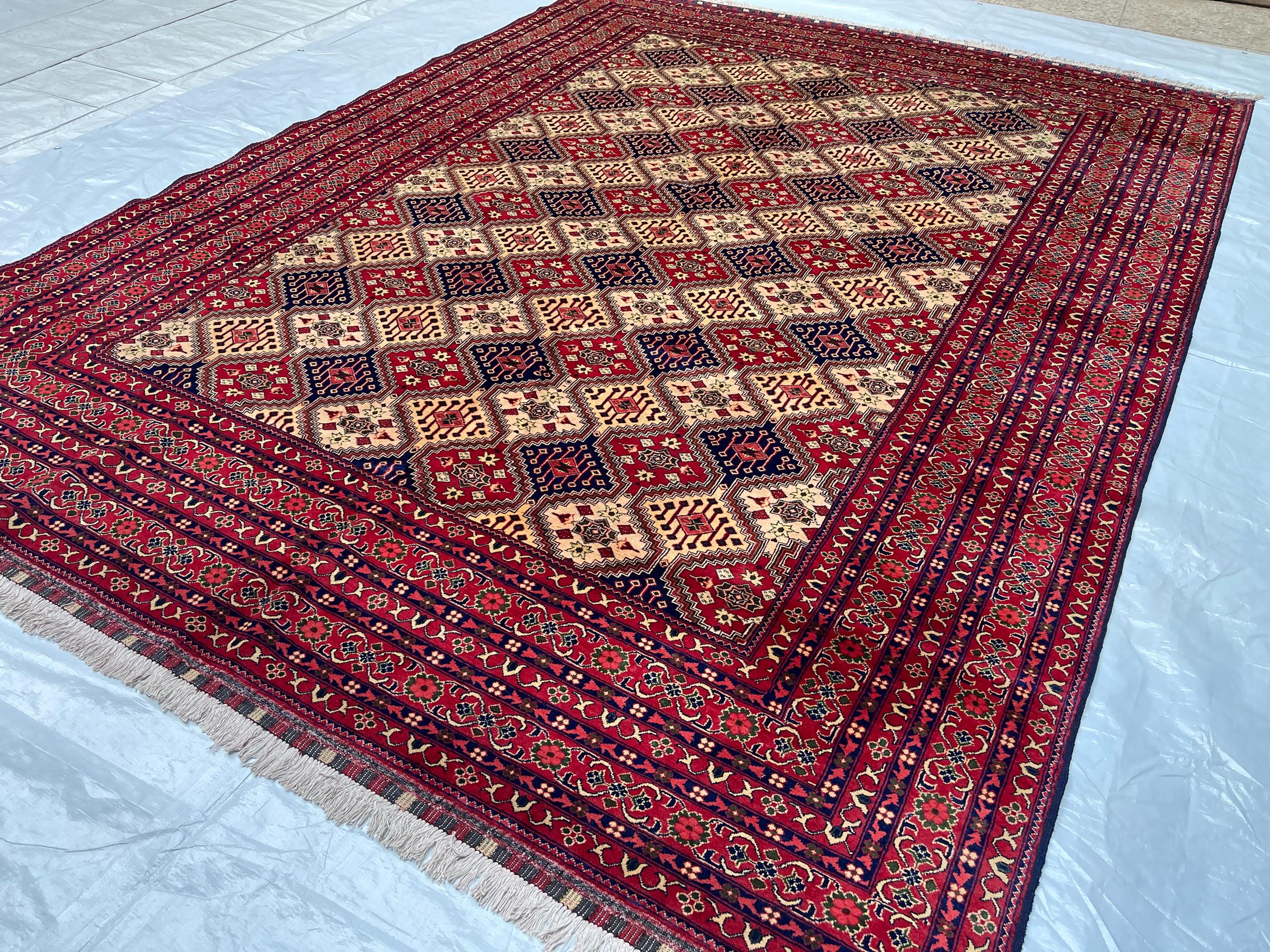 8x11 ft Top Quality Turkmen Area Rug - Afghan Hand Knotted Veg Dyes Wool Biljik Carpet 8.4x11.3 ft - Bukhara Oriental Fine Carpet 252x342 cm