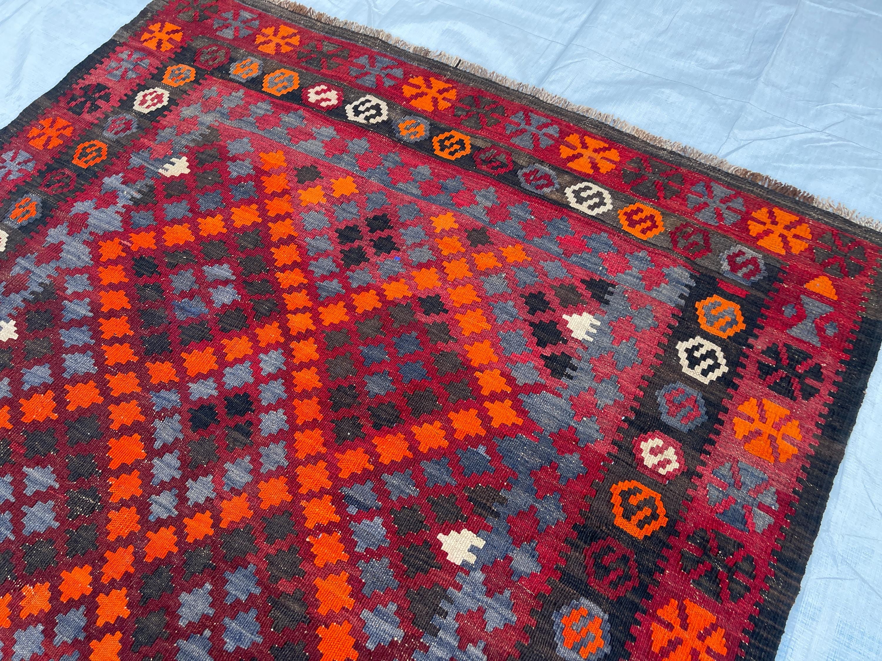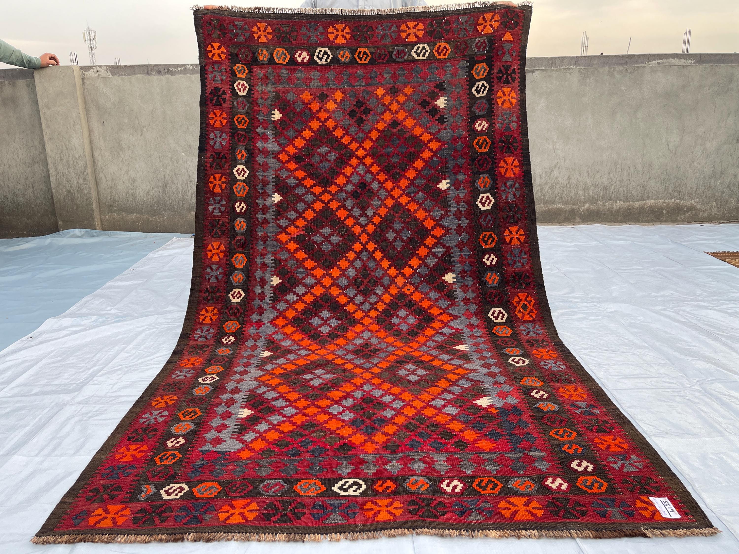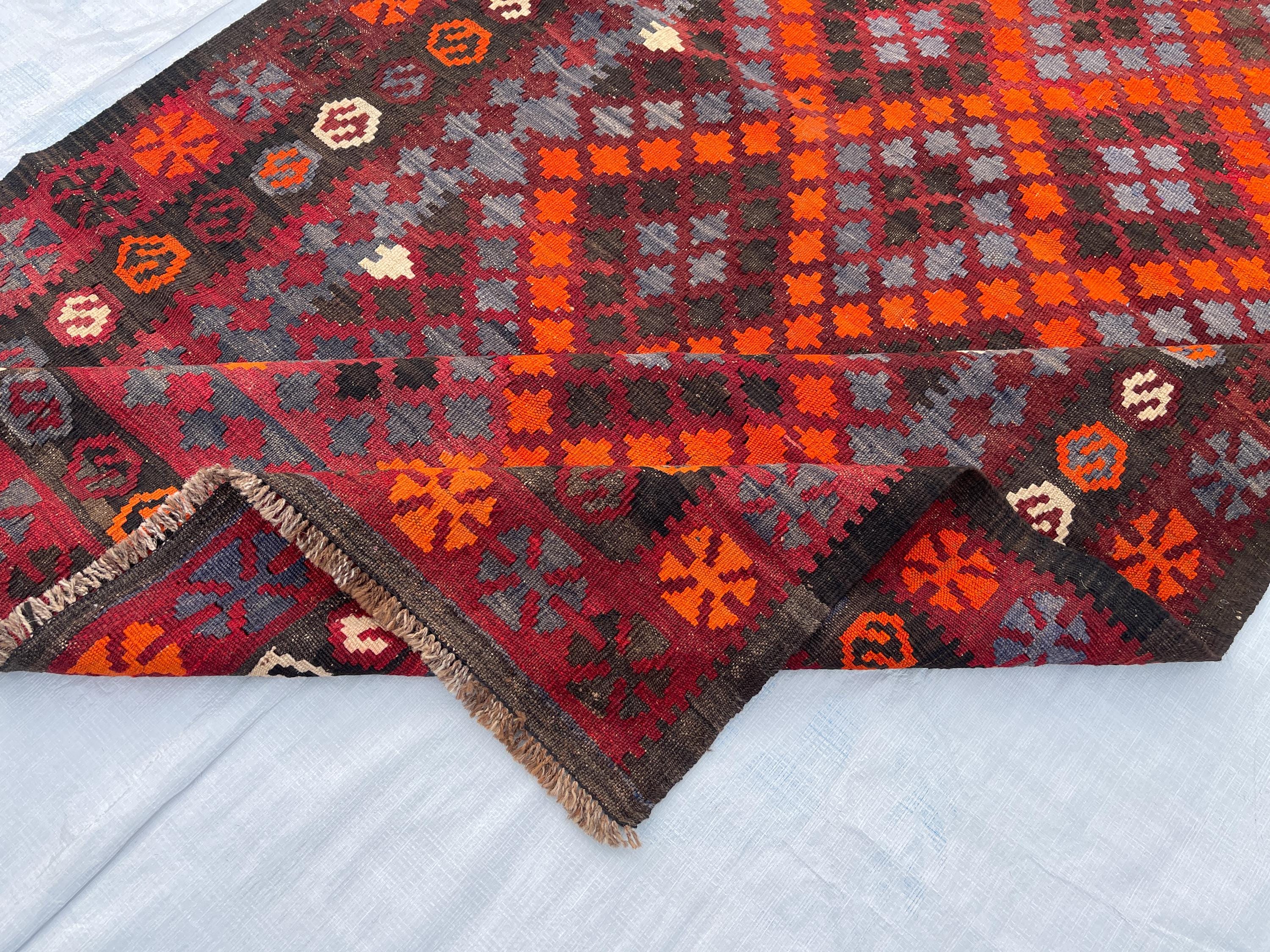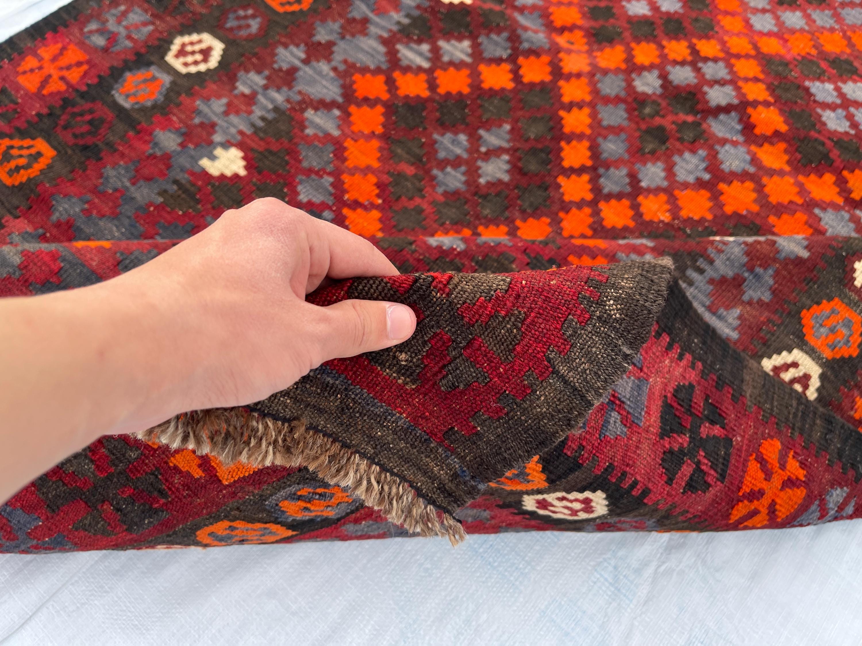 Geometric 4x8 Red Afghan Kilim Rug - Vintage Tribal Handwoven Area Rug - Turkmen Antique Handmade Flatweave Rug 4.4x7.7 ft - Living Room Rug
