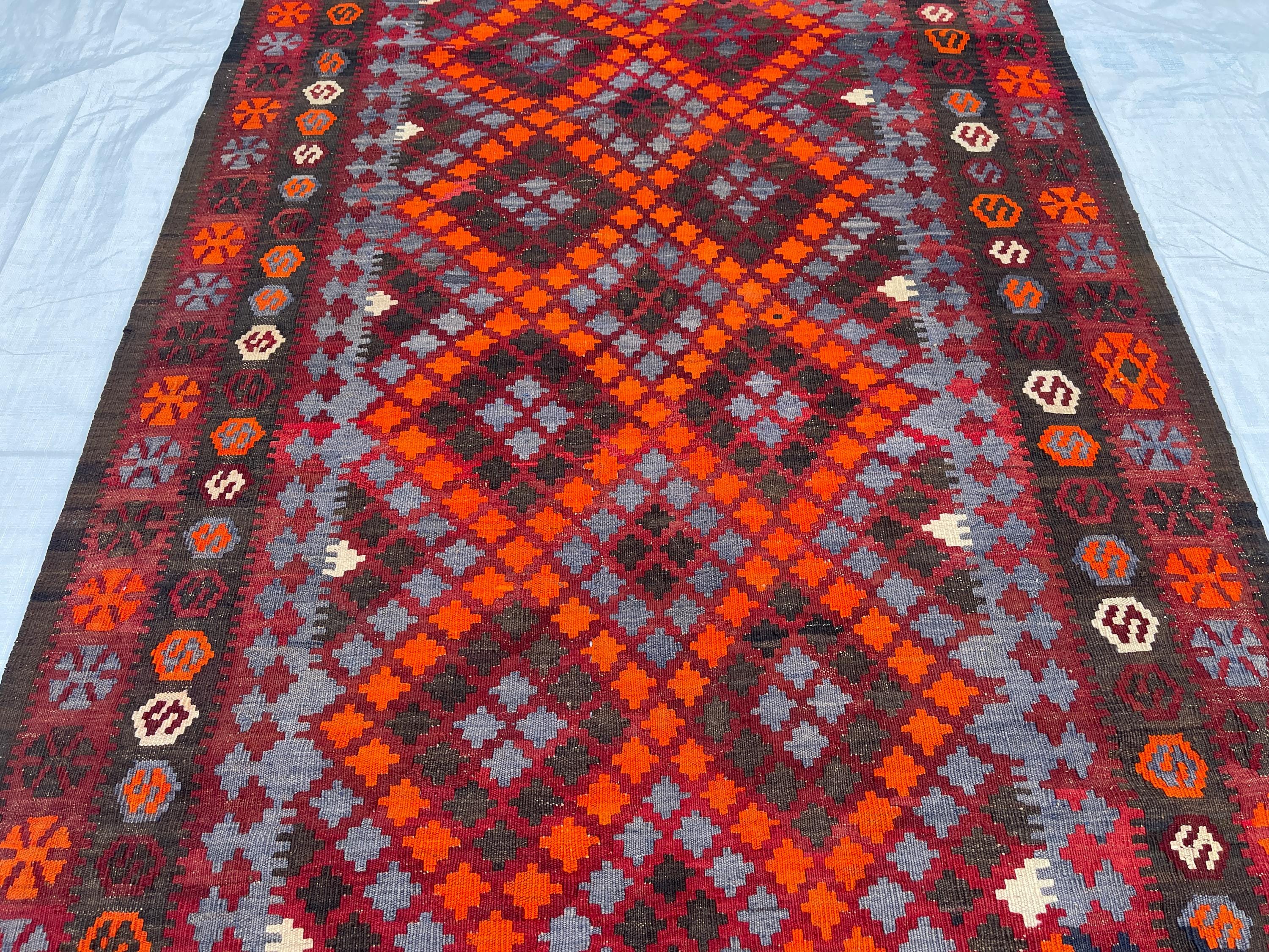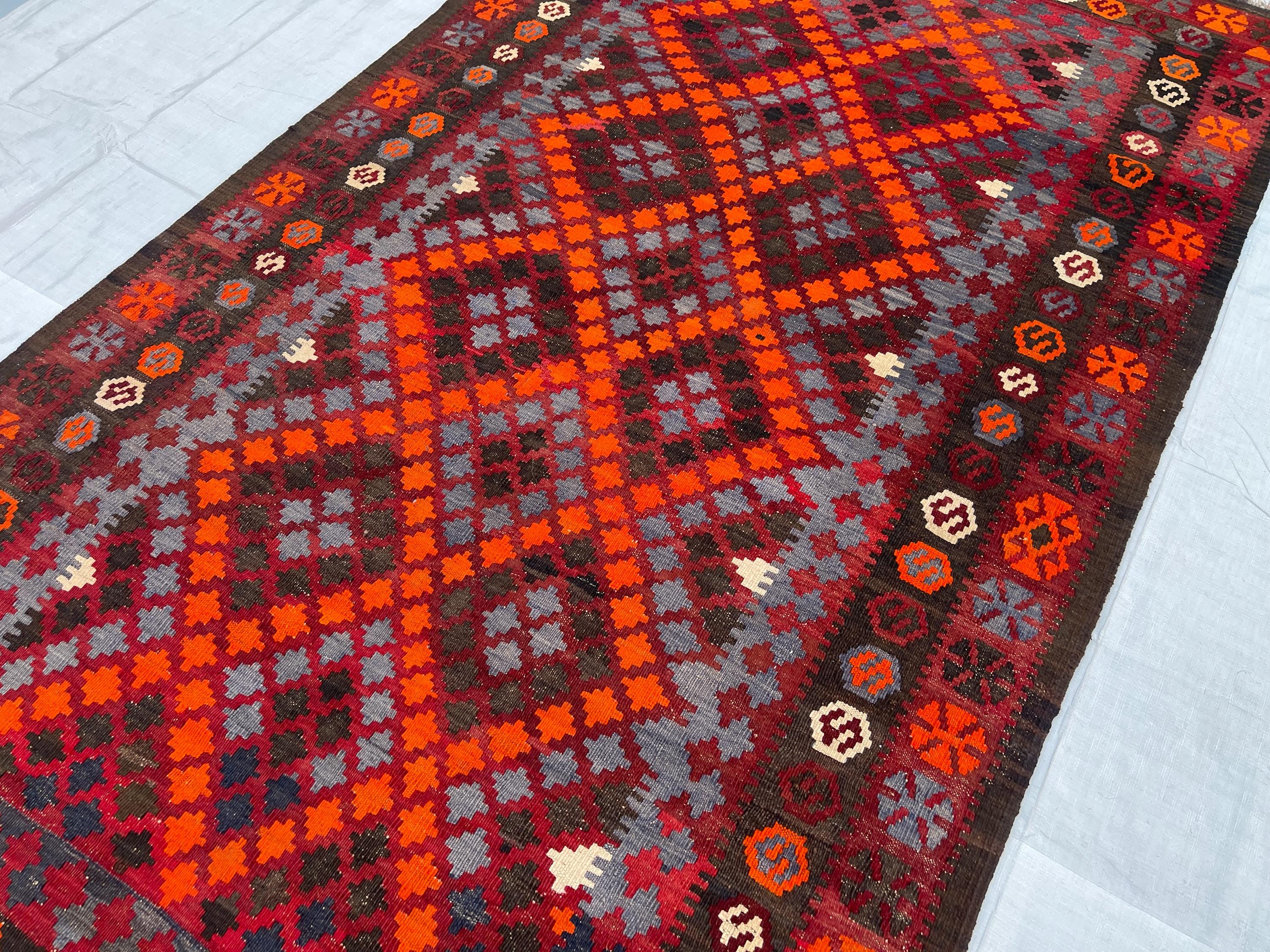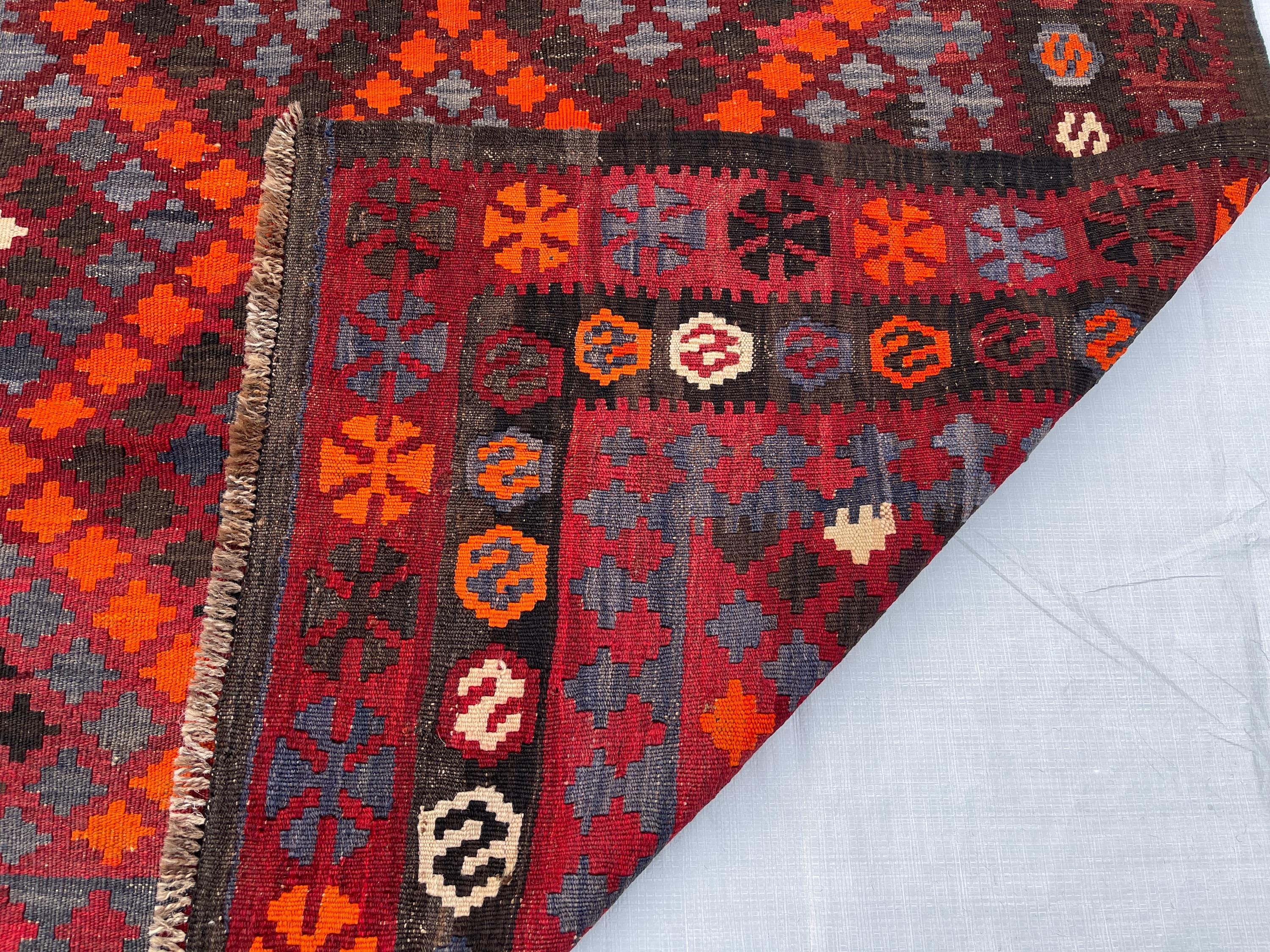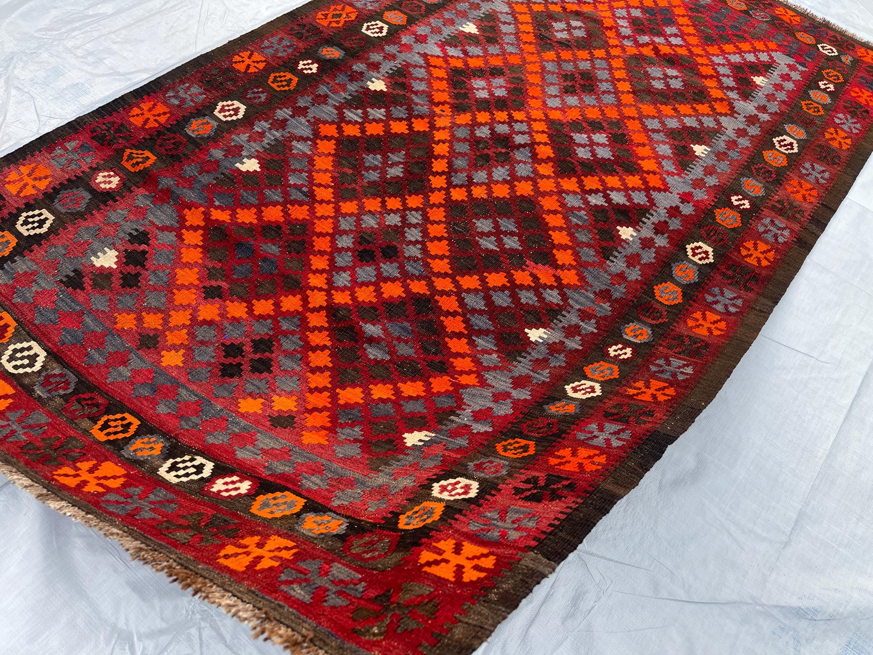 Geometric 4x8 Red Afghan Kilim Rug - Vintage Tribal Handwoven Area Rug - Turkmen Antique Handmade Flatweave Rug 4.4x7.7 ft - Living Room Rug
