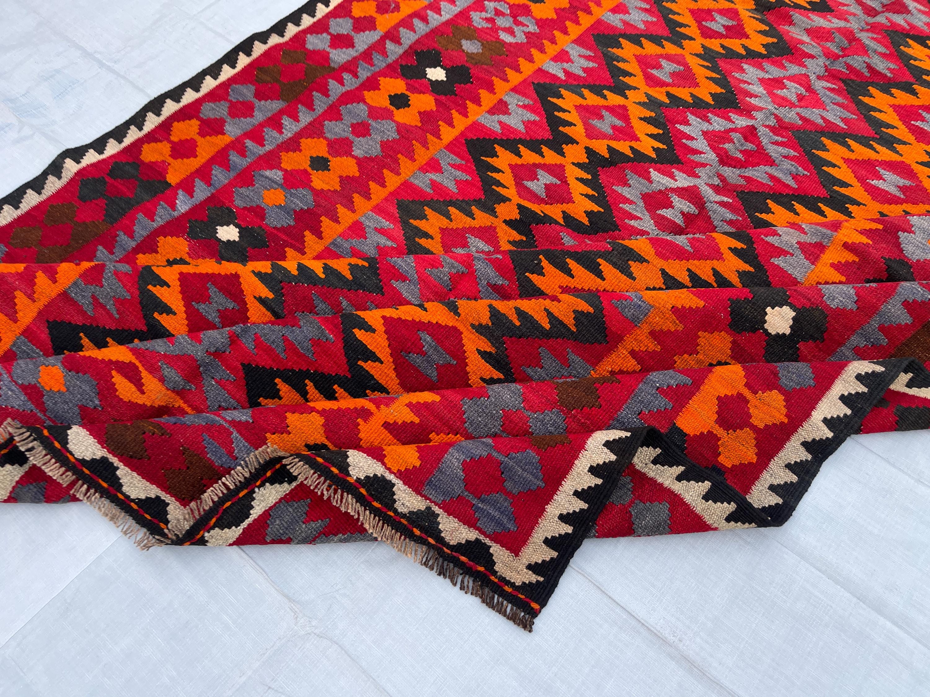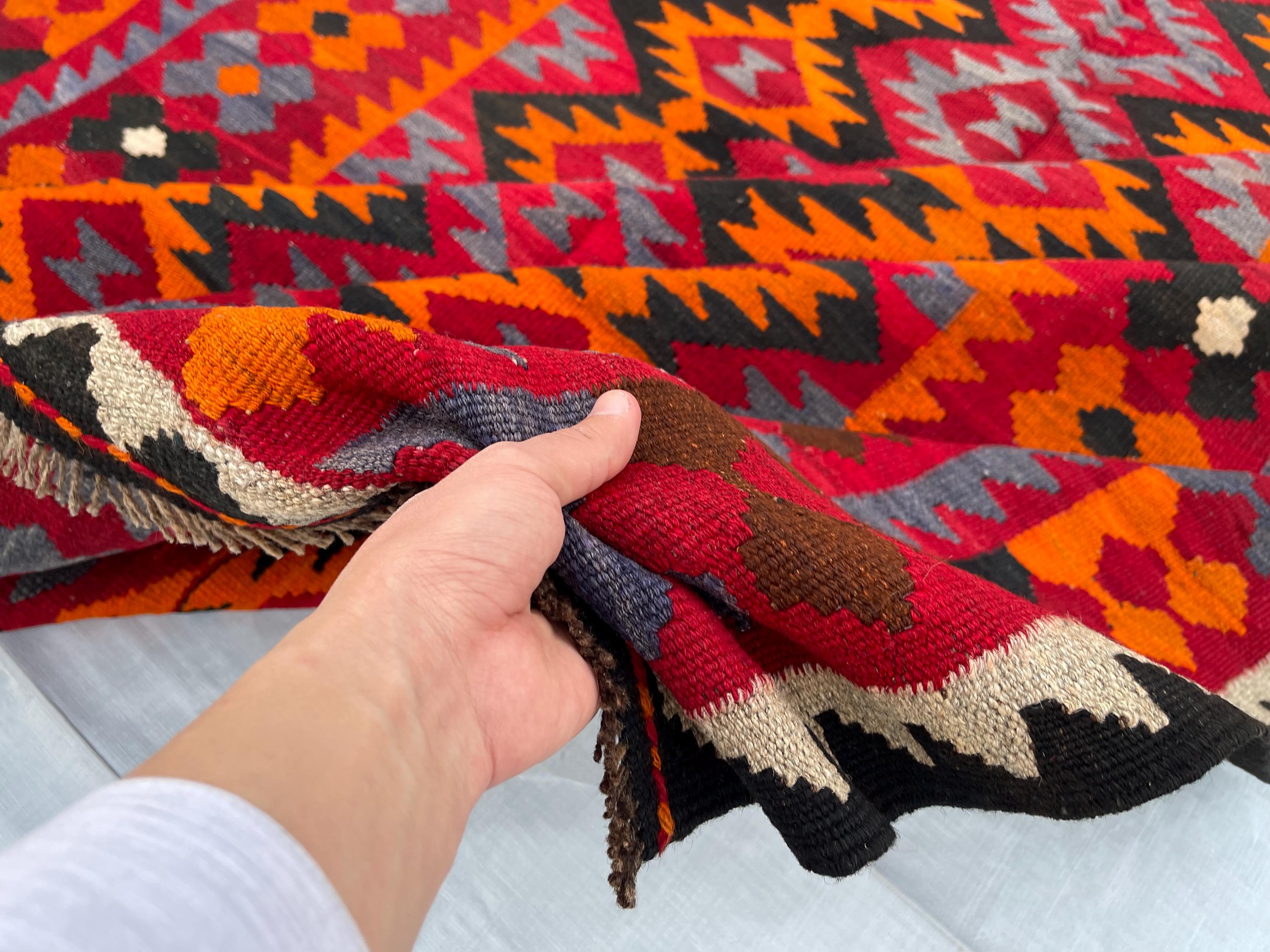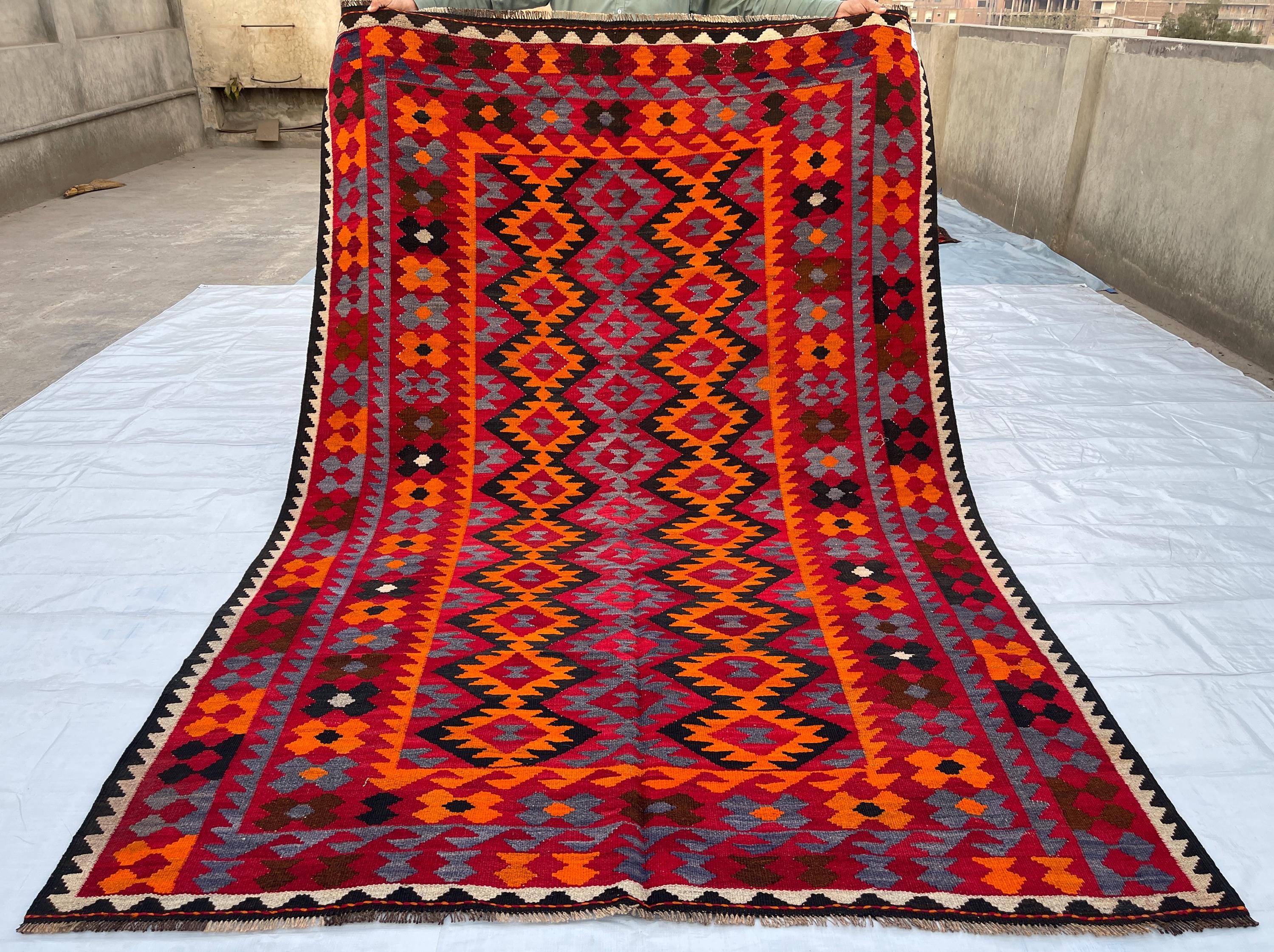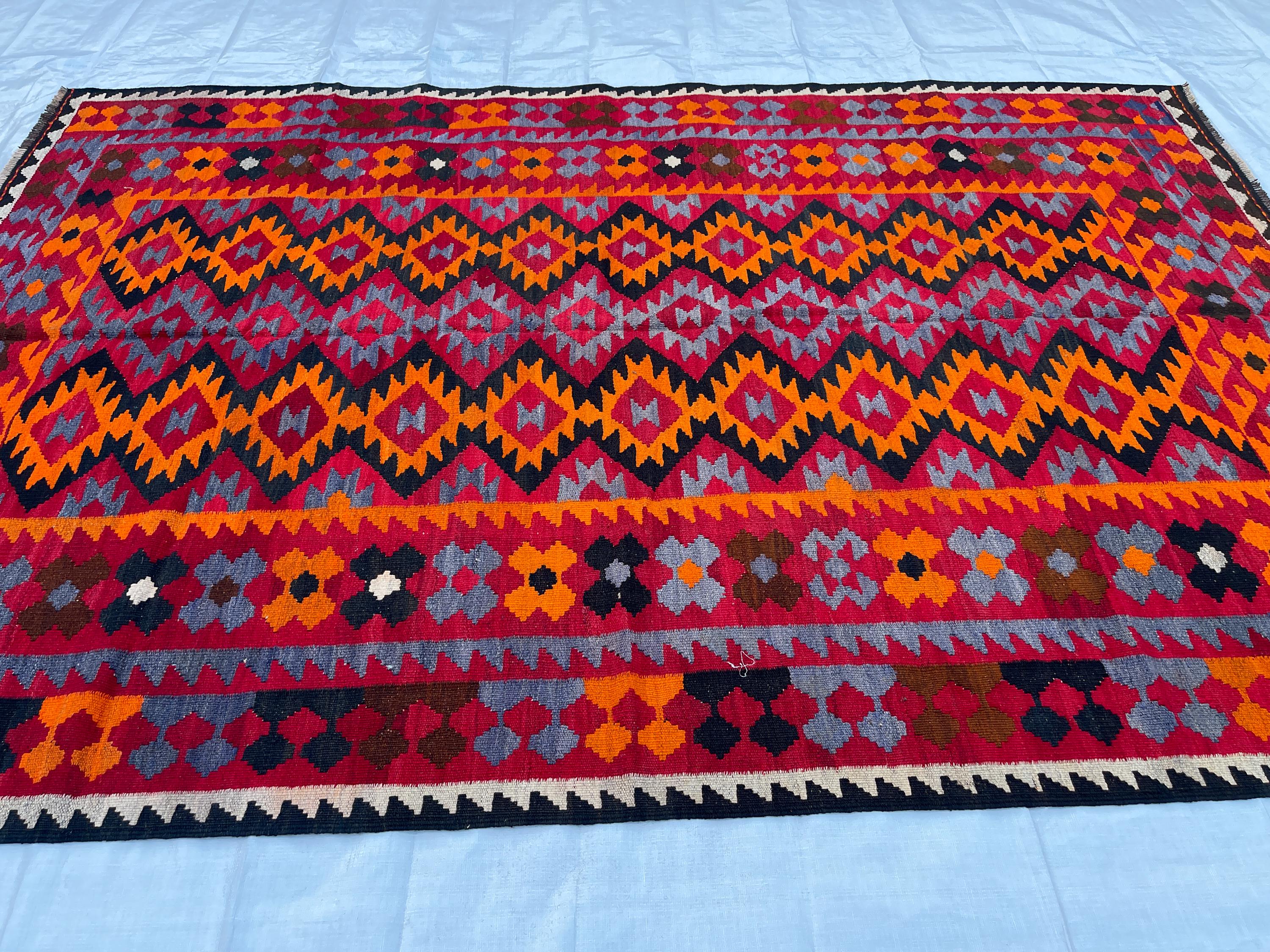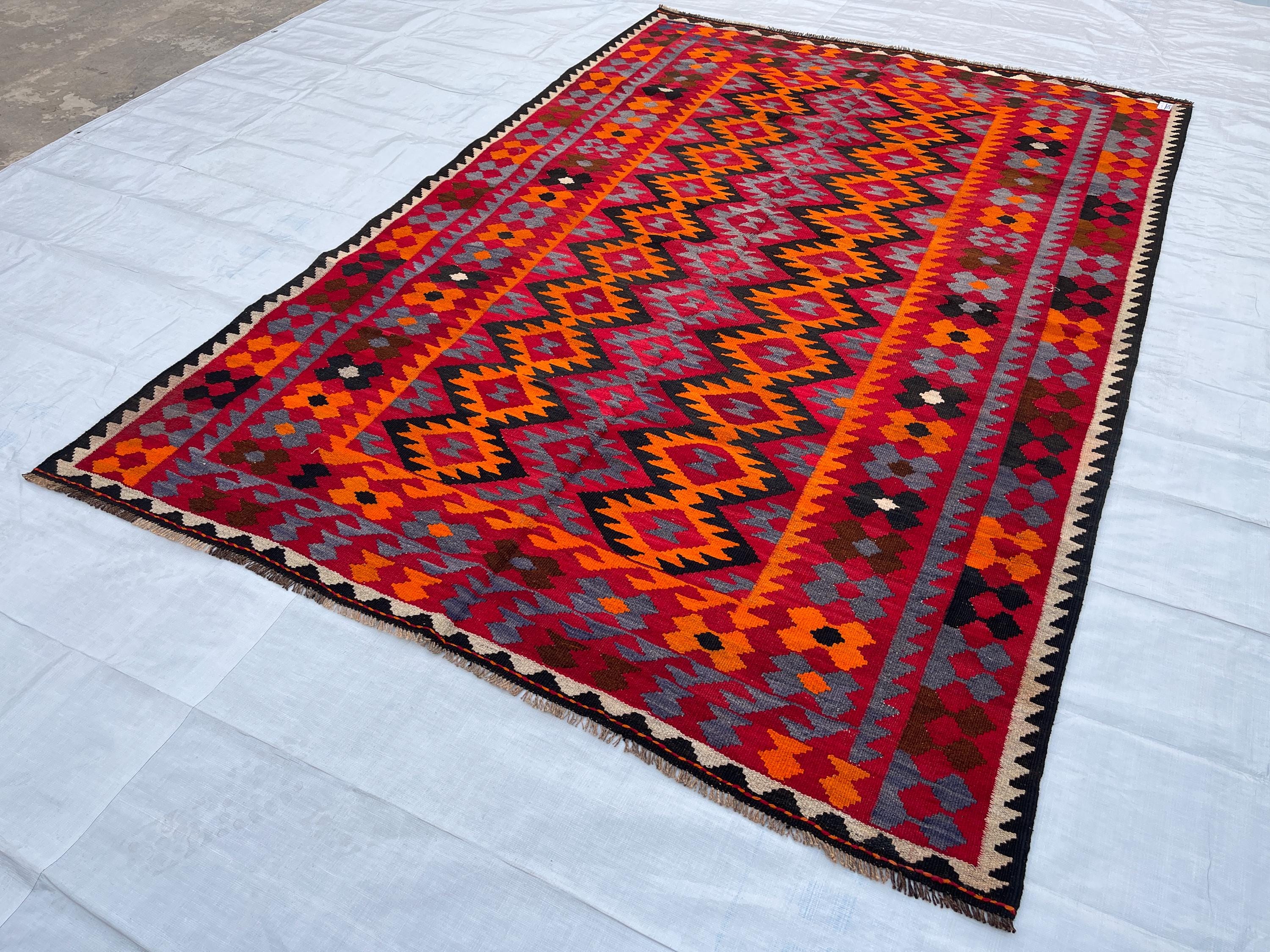 6x9 Red Orange Blue Black Handwoven Tribal Afghan Kilim Rug - Geometric Oriental Natural Organic Veg Dyes Wool 6x8.11 ft - Living Room Rugs