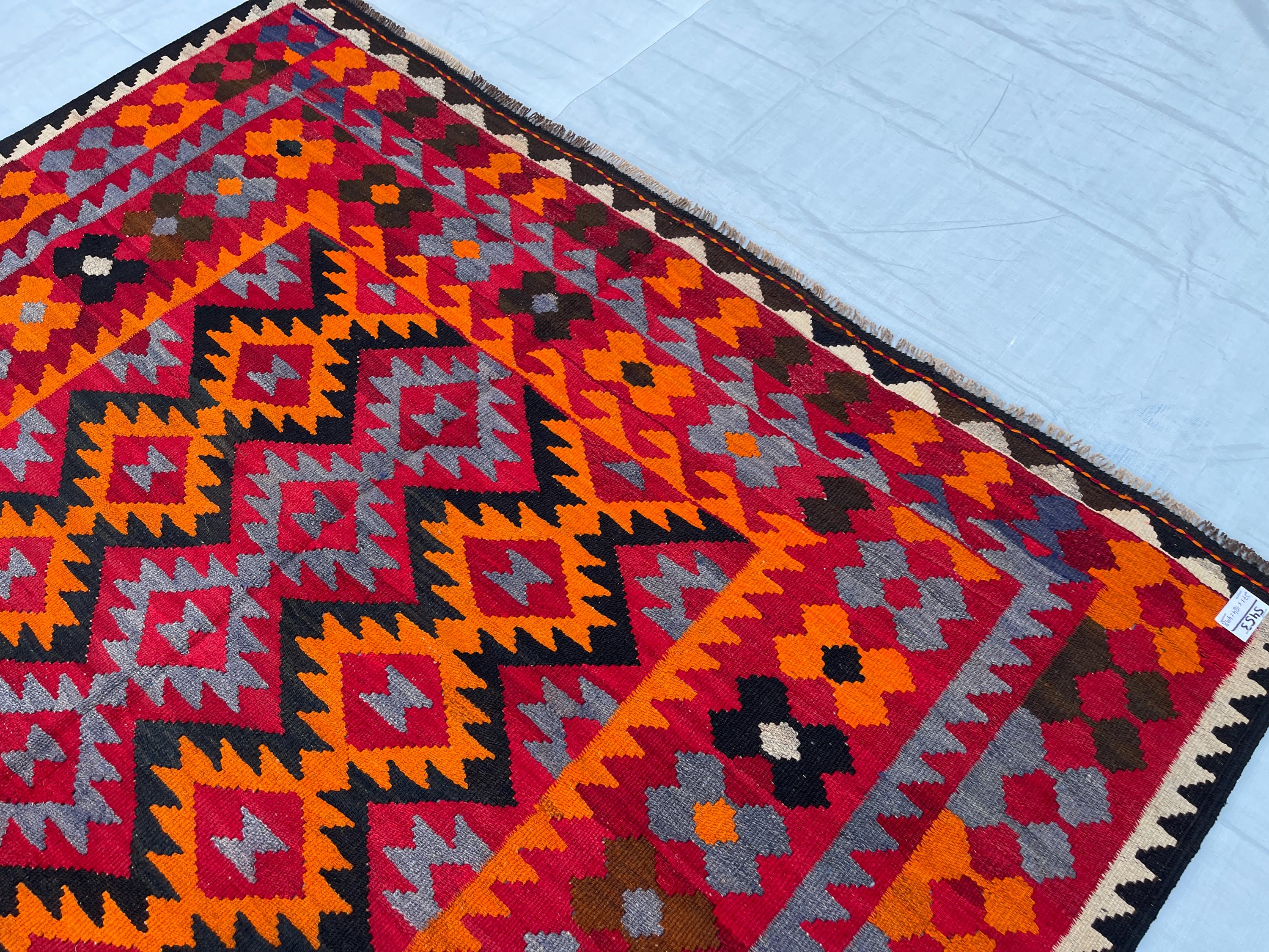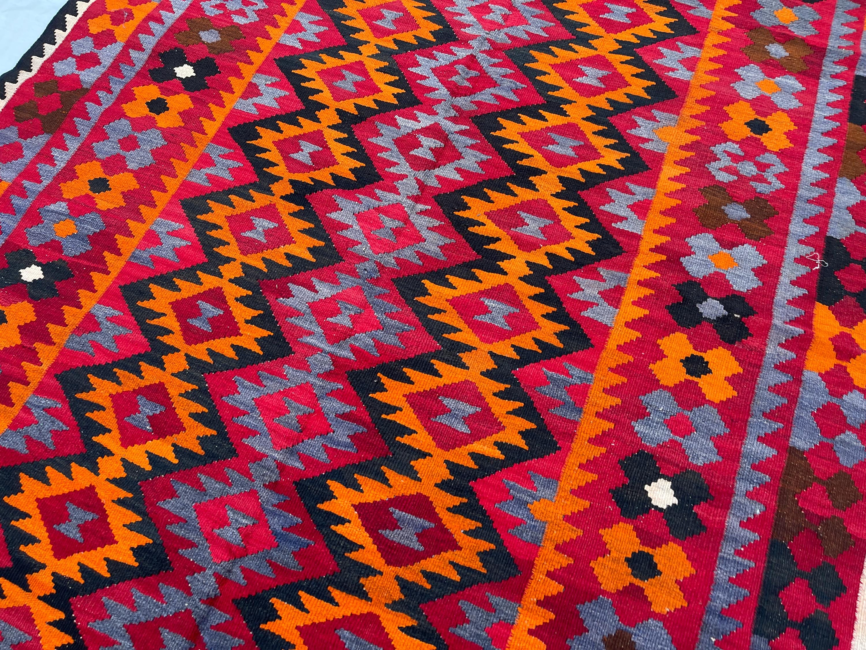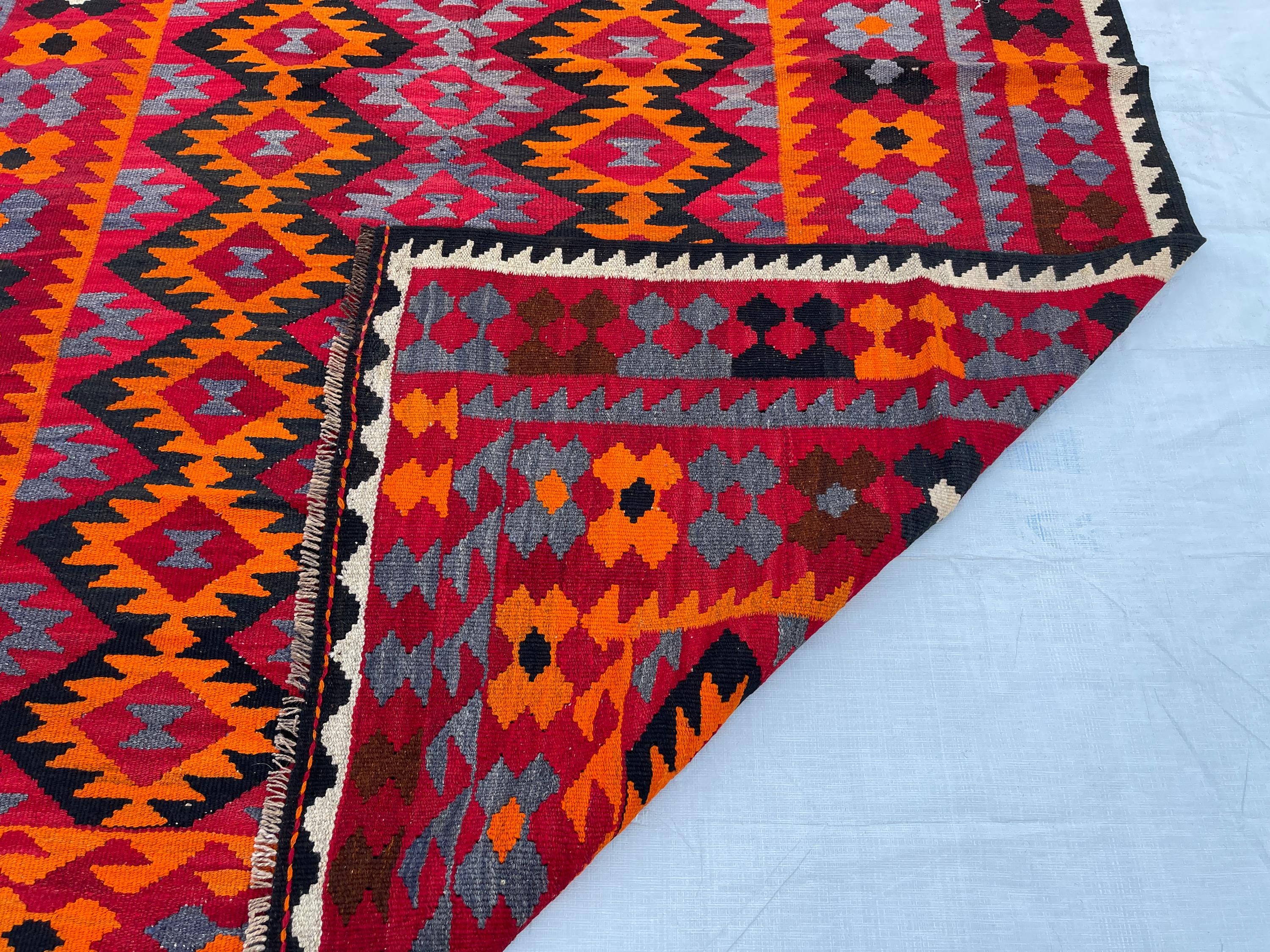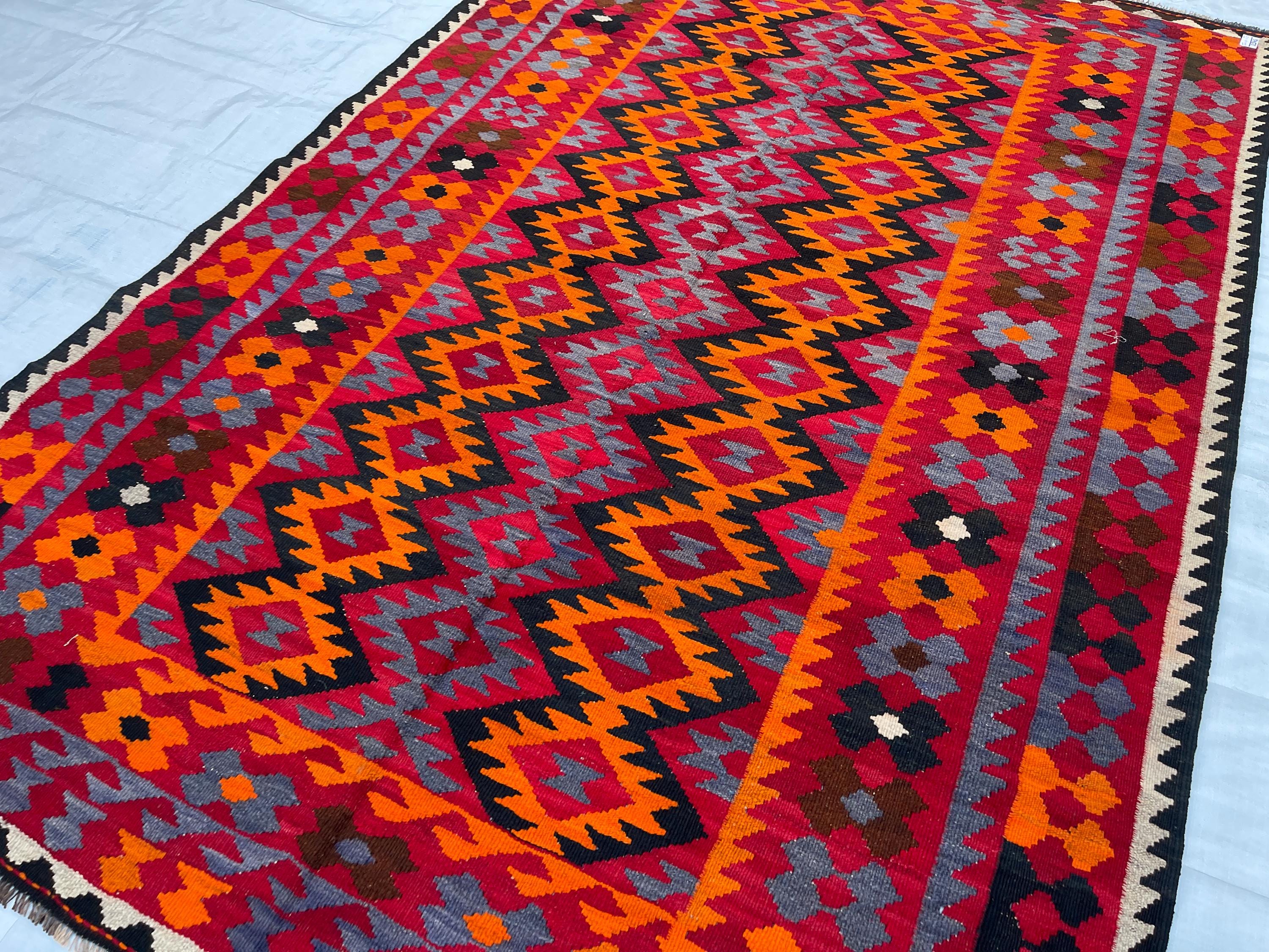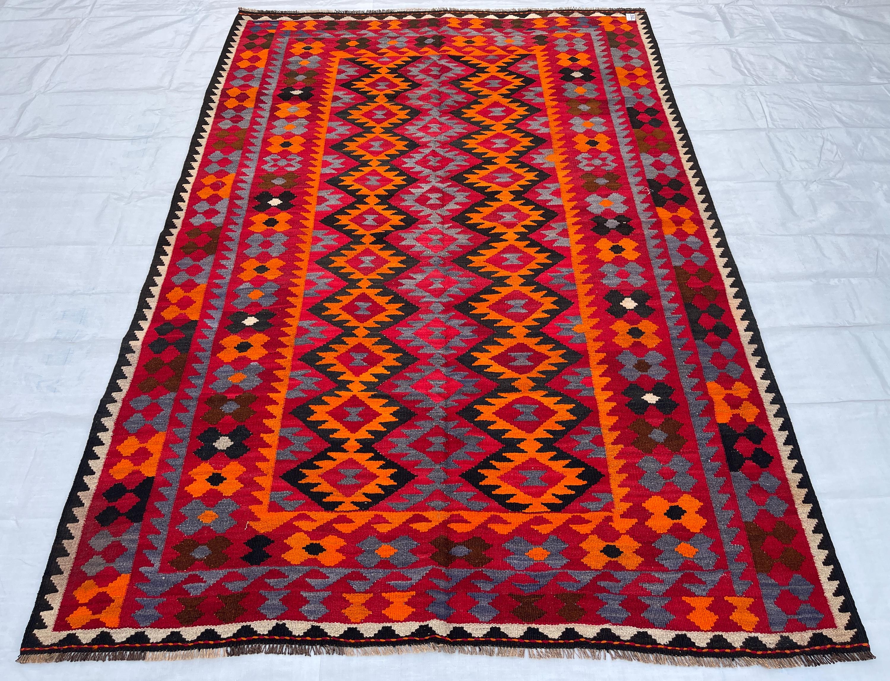 6x9 Red Orange Blue Black Handwoven Tribal Afghan Kilim Rug - Geometric Oriental Natural Organic Veg Dyes Wool 6x8.11 ft - Living Room Rugs