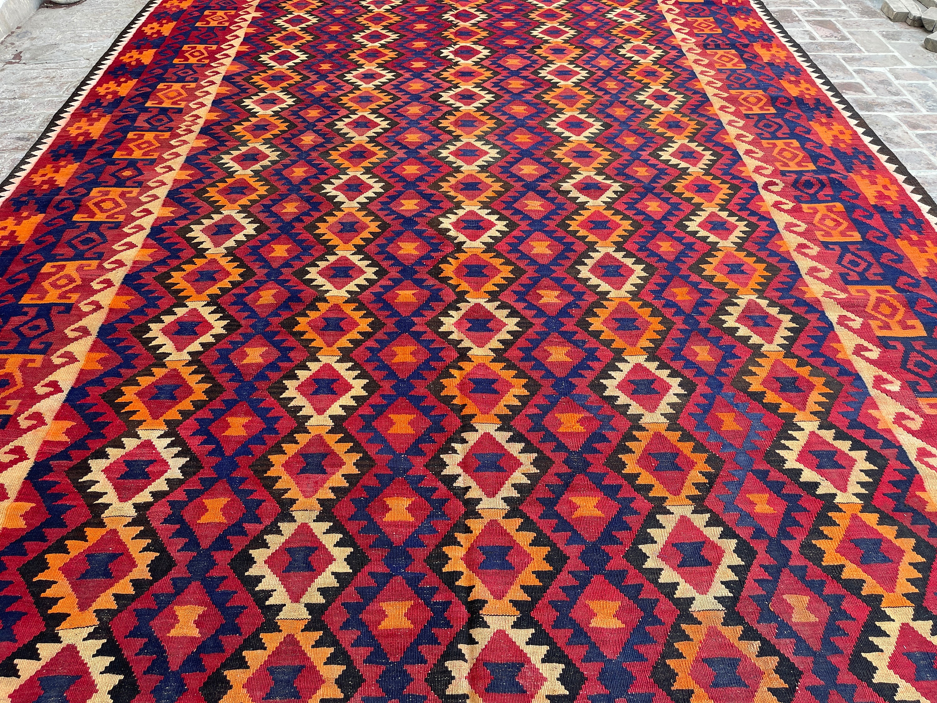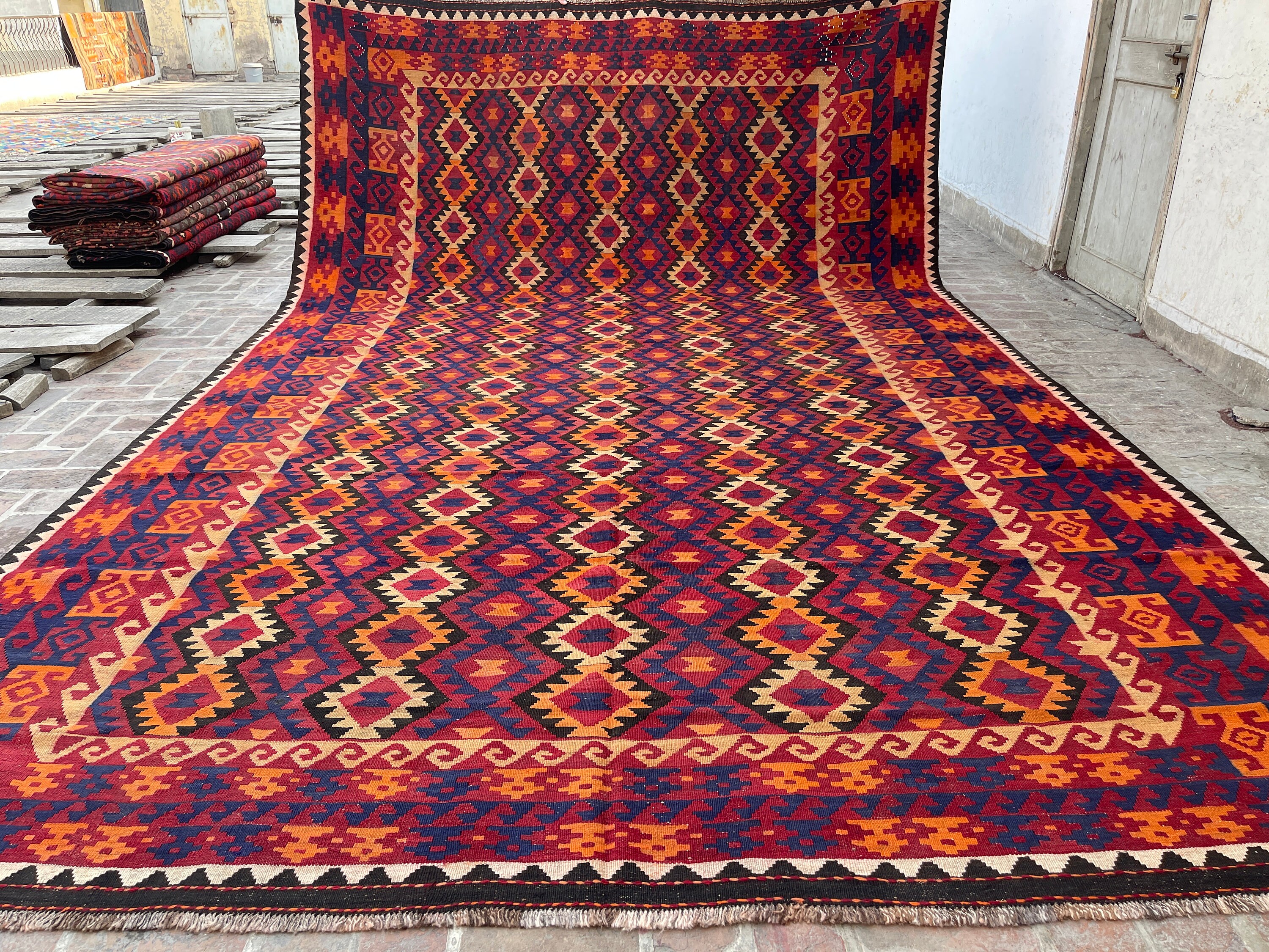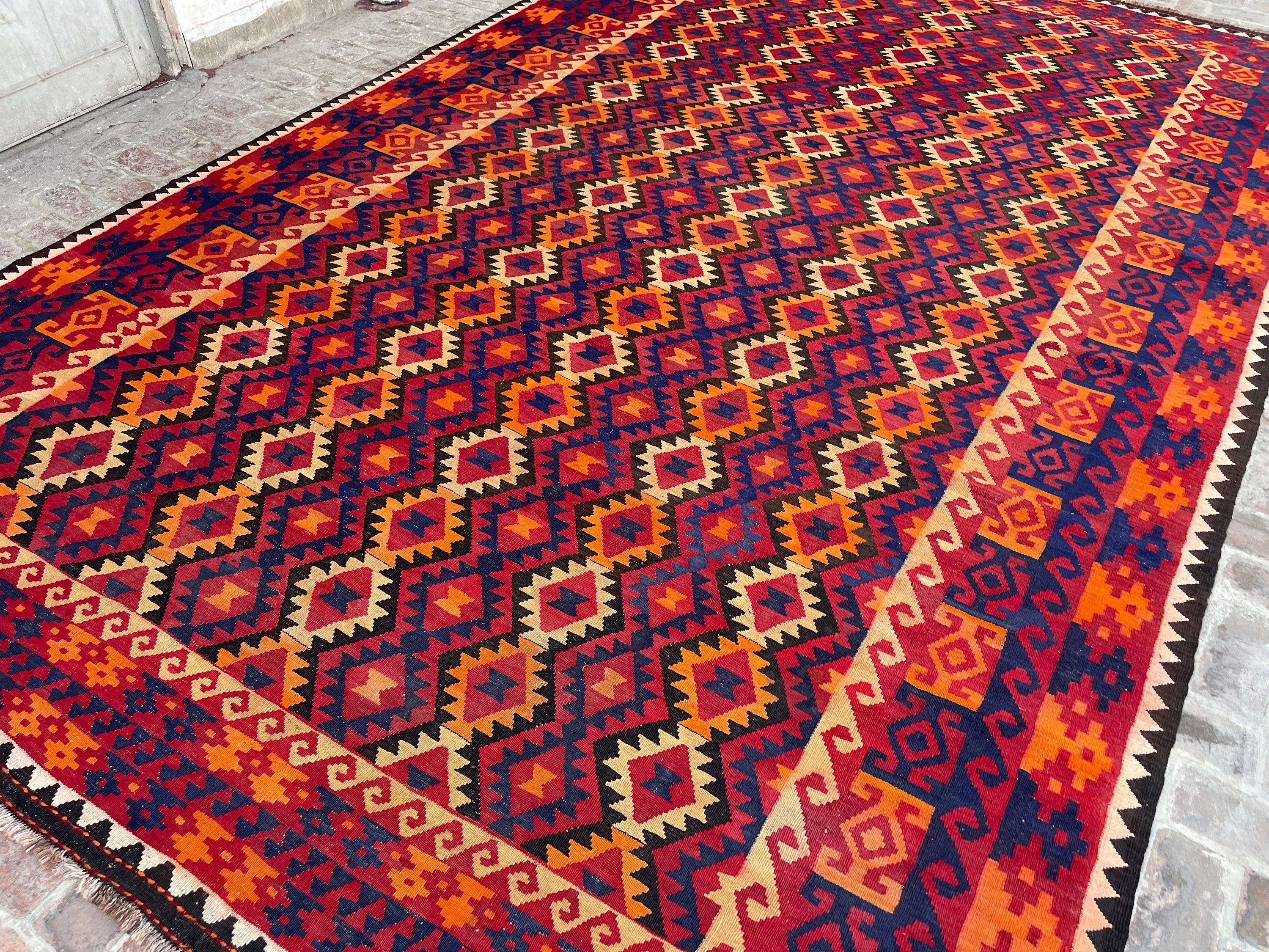 10x16 Large Afghan Veg Dyes Wool Handmade Turkmen Oriental Geometric Rug - Antique Handwoven Flatweave Rug - Bedroom - Kids Rug 9.8x15.5 ft
