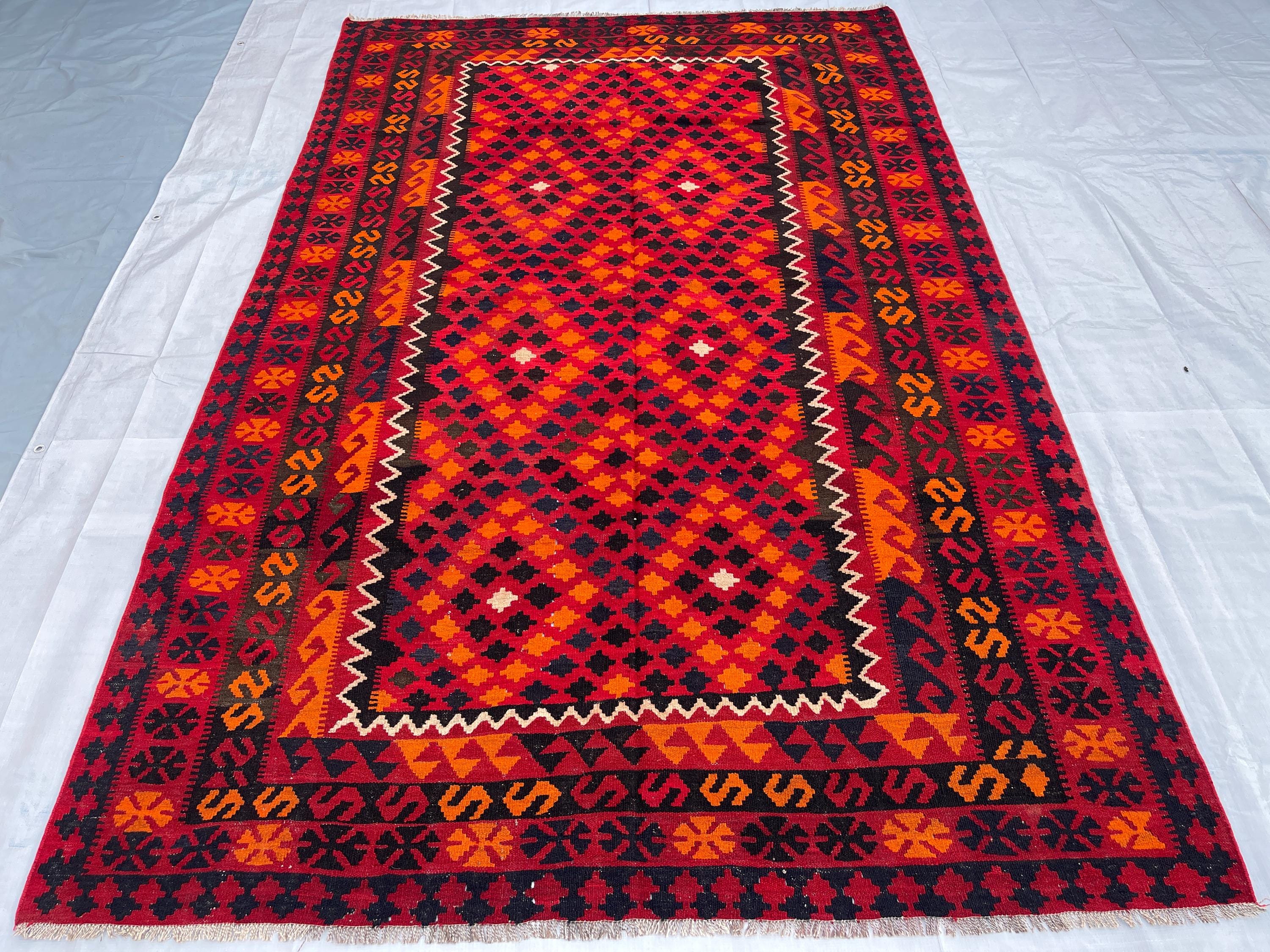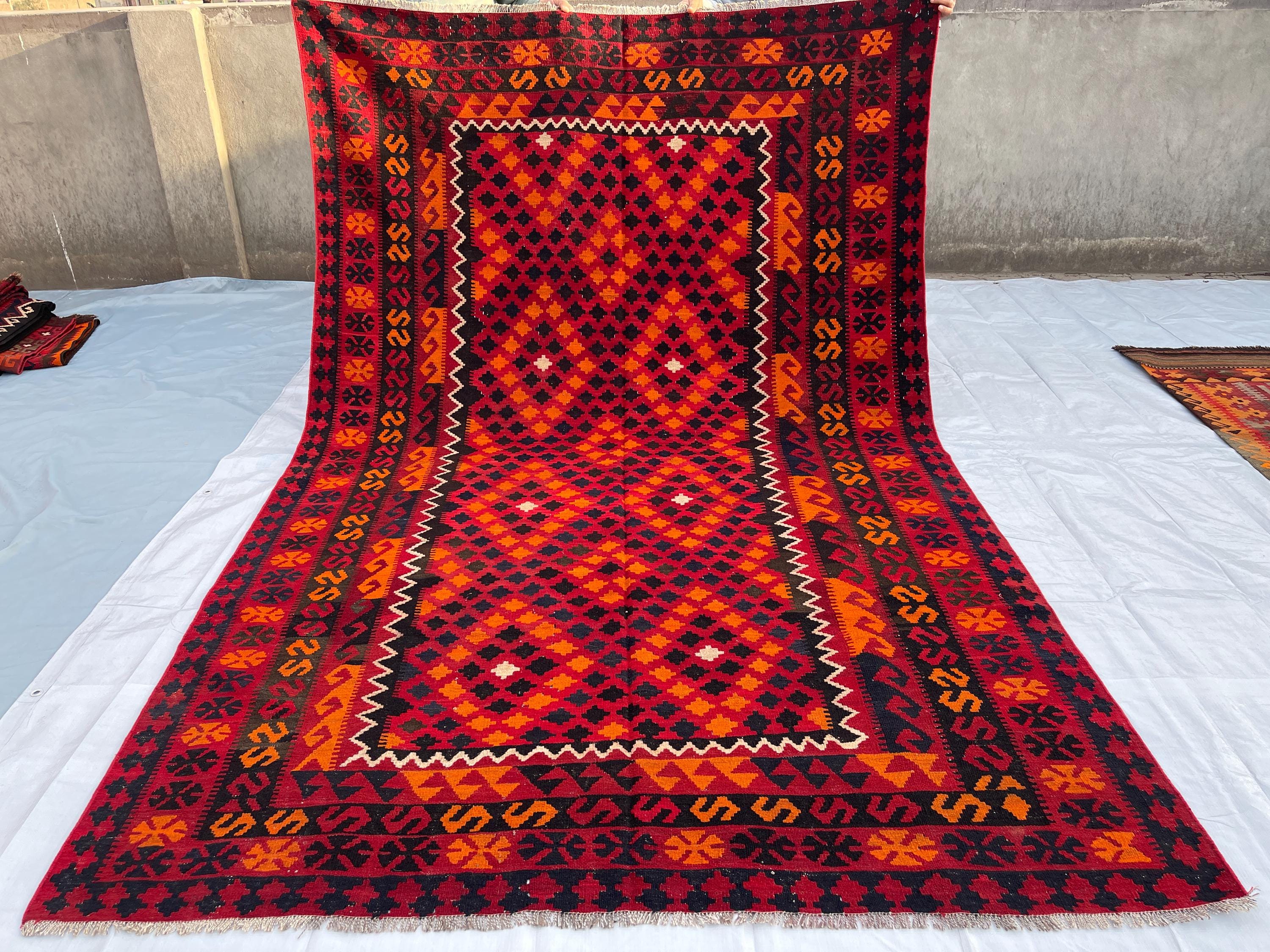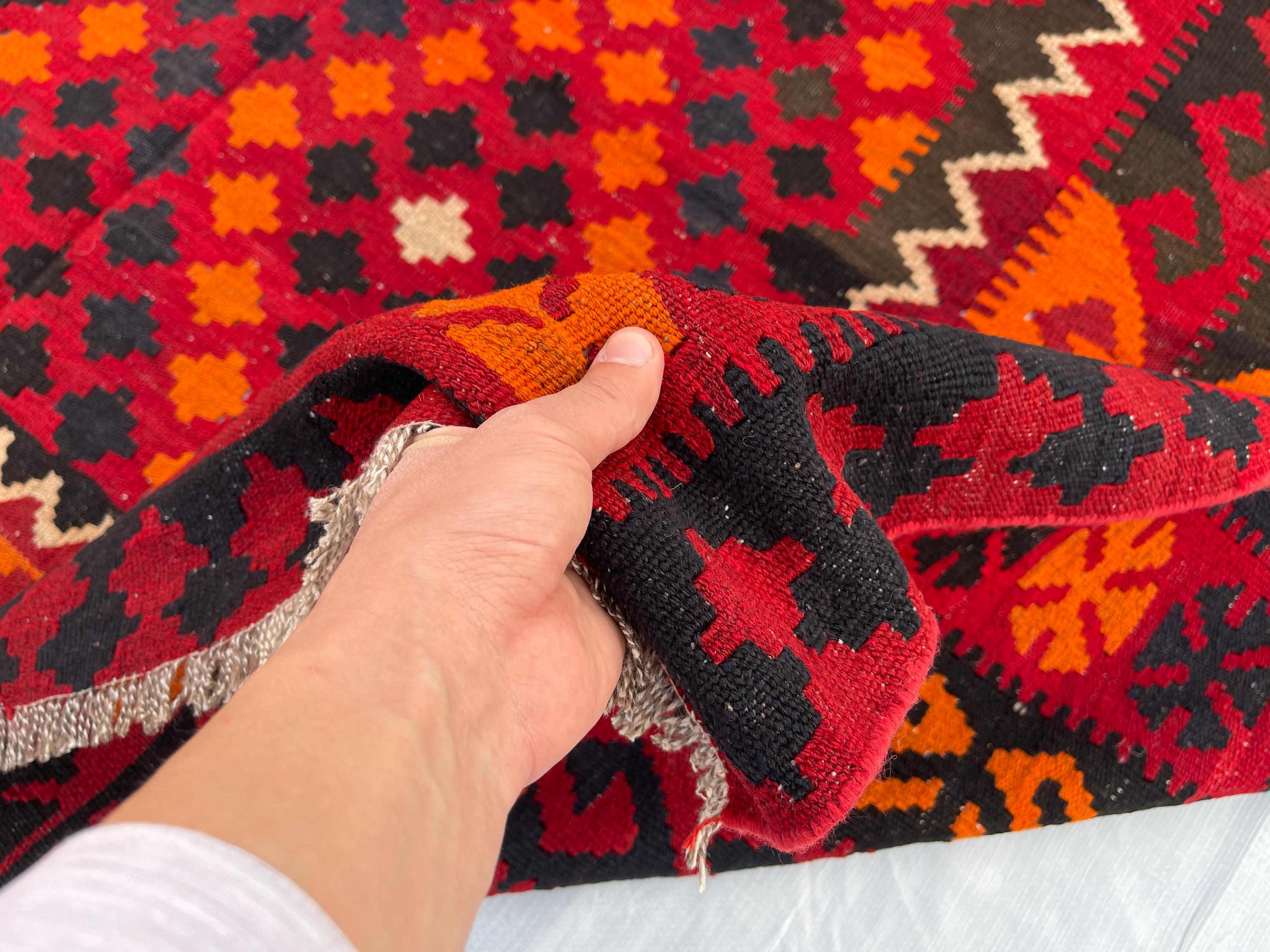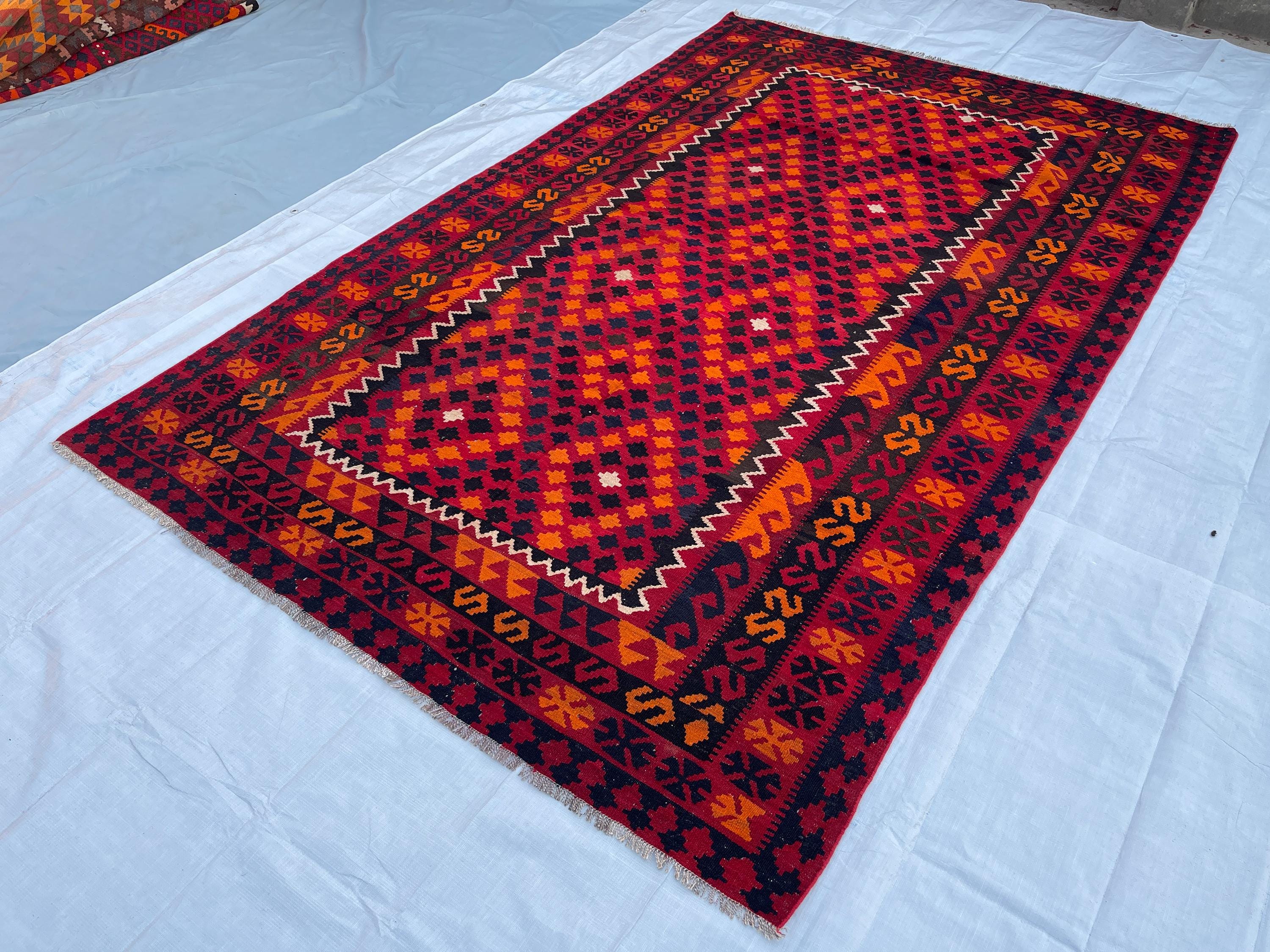Red Orange Black 6x9 ft Afghan Tribal Rug - Handmade Wool Rug 6x9.6 ft - Rugs for Living Room 184x290 cm - Bedroom Rug - Office Rug - #5459