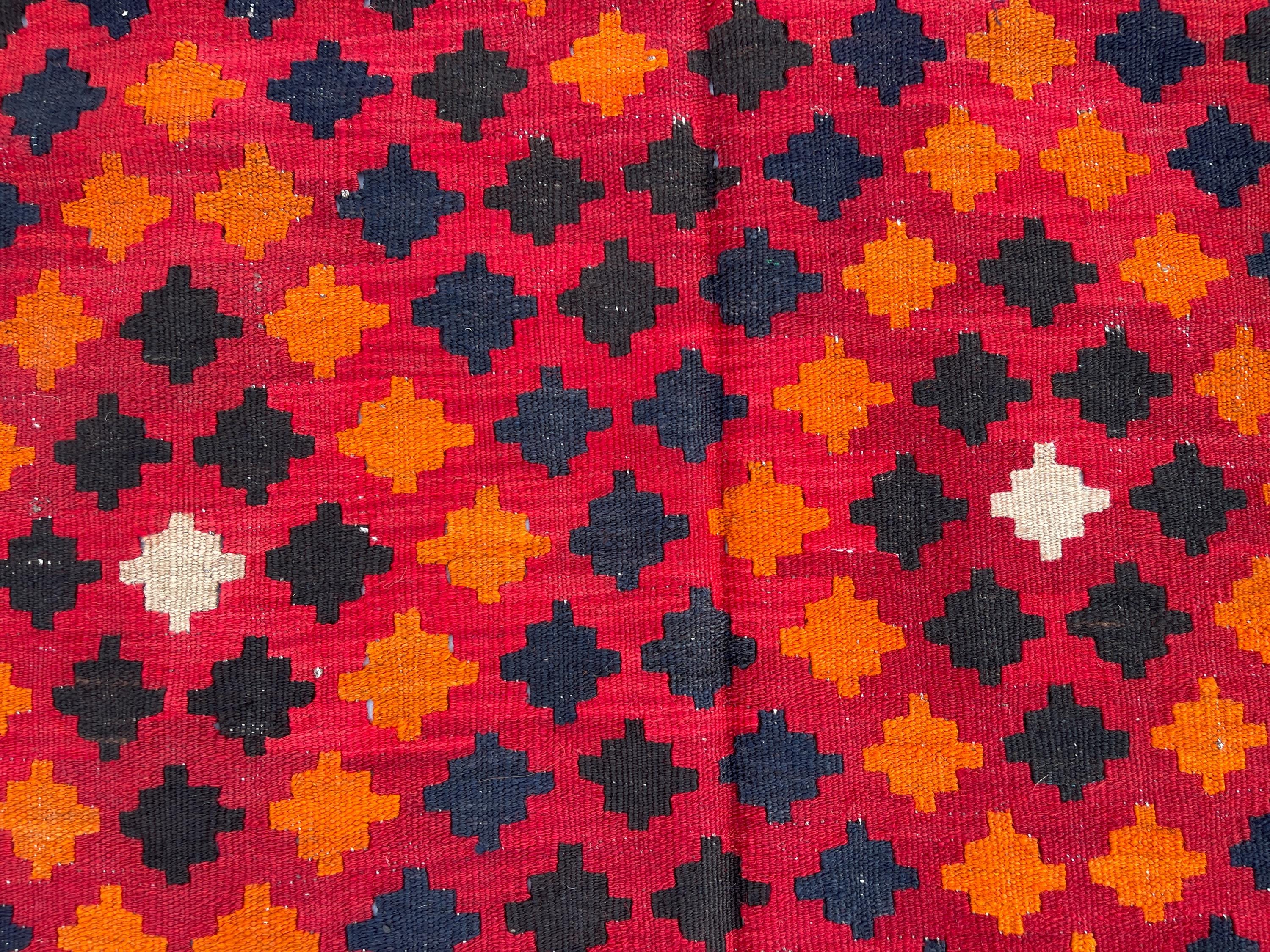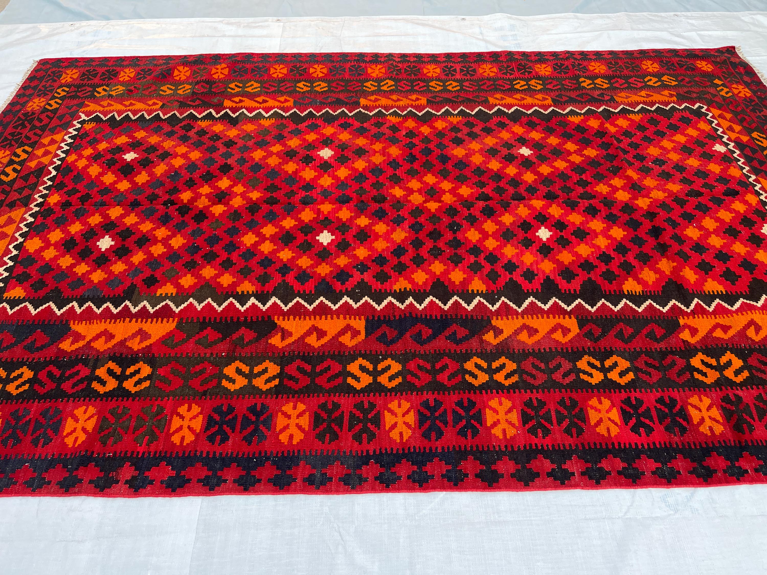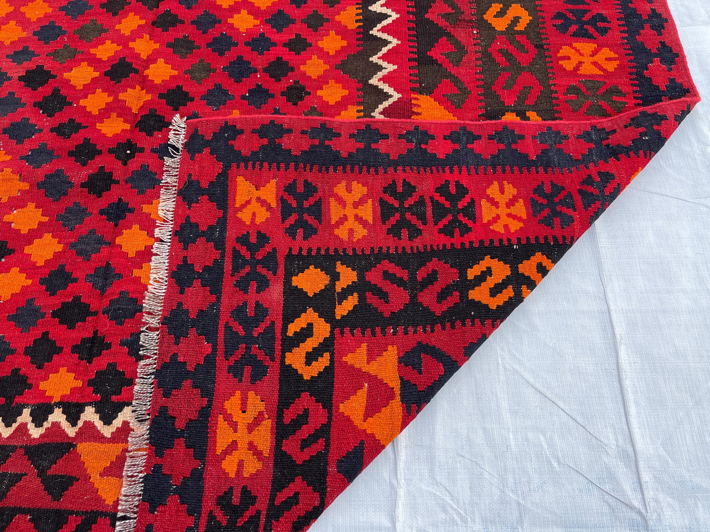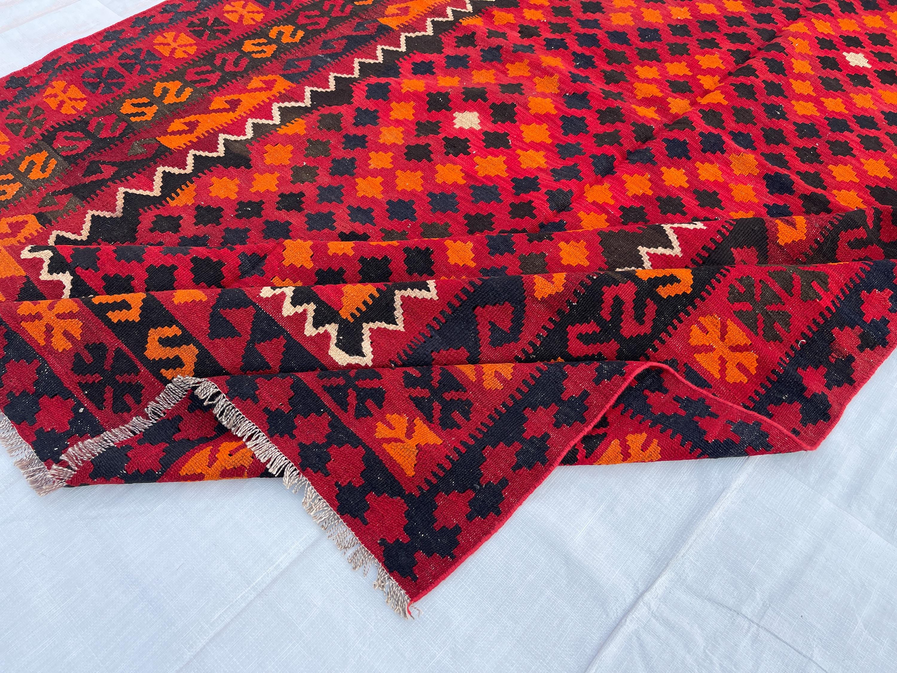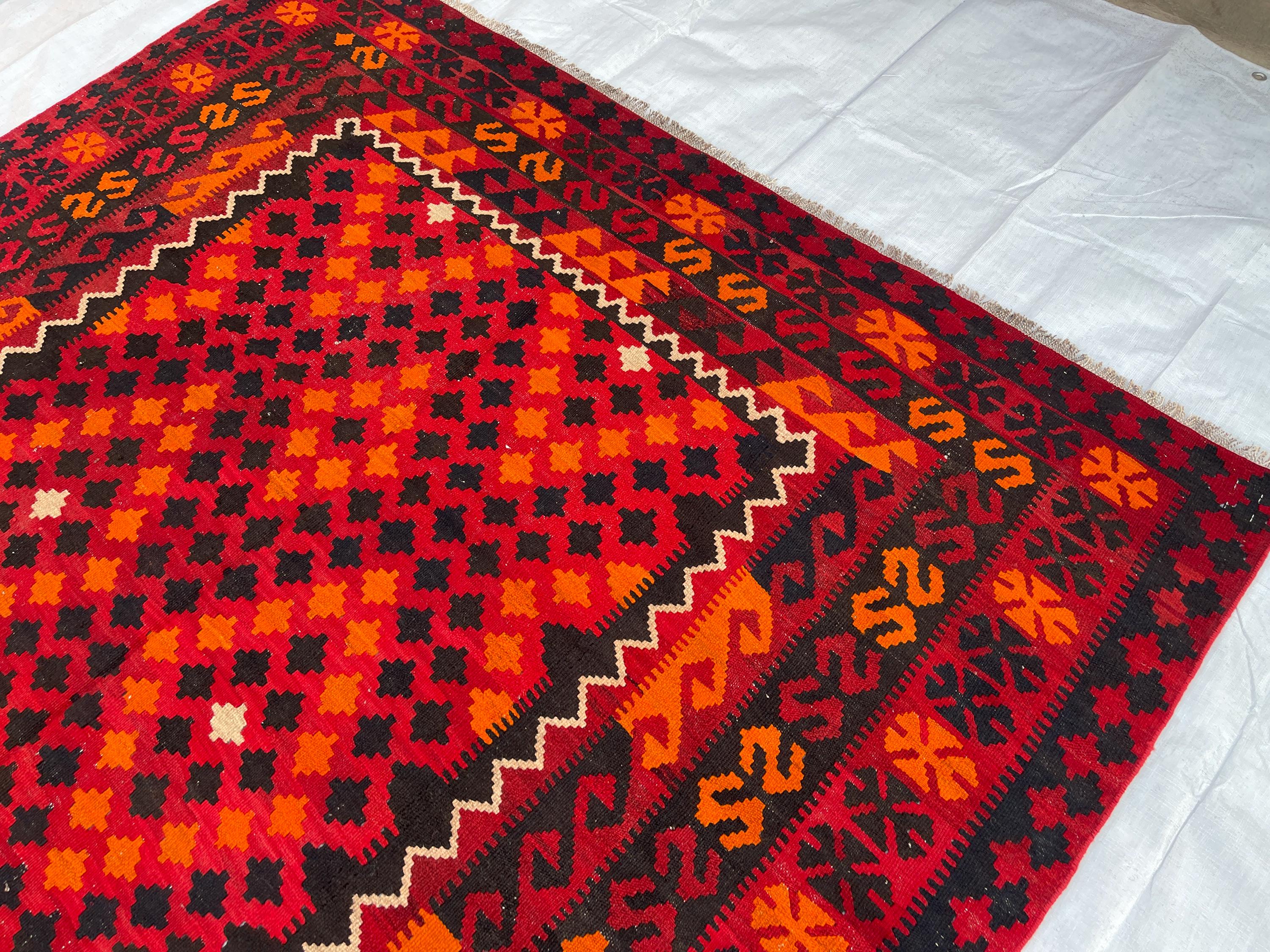 Red Orange Black 6x9 ft Afghan Tribal Rug - Handmade Wool Rug 6x9.6 ft - Rugs for Living Room 184x290 cm - Bedroom Rug - Office Rug - #5459