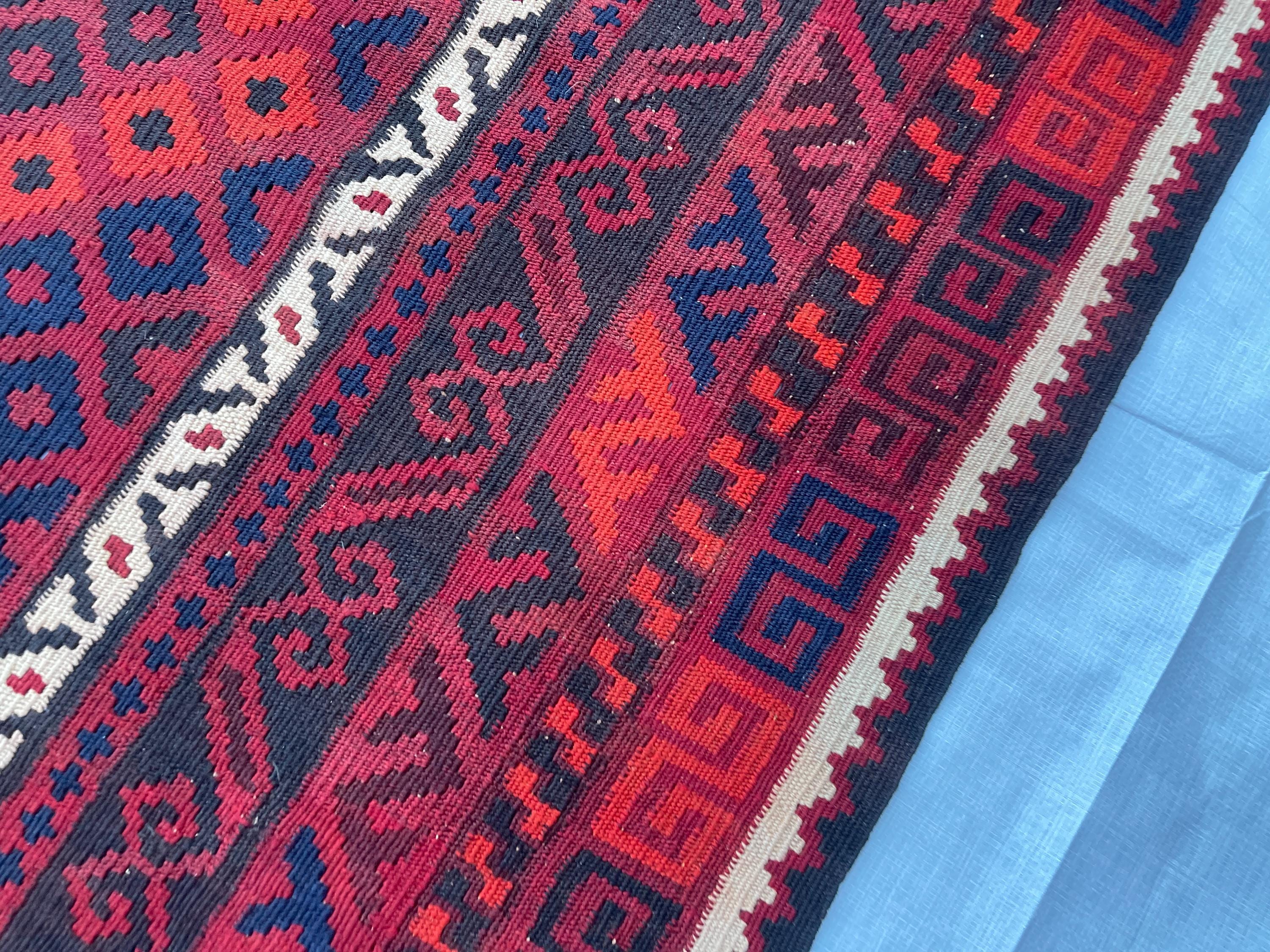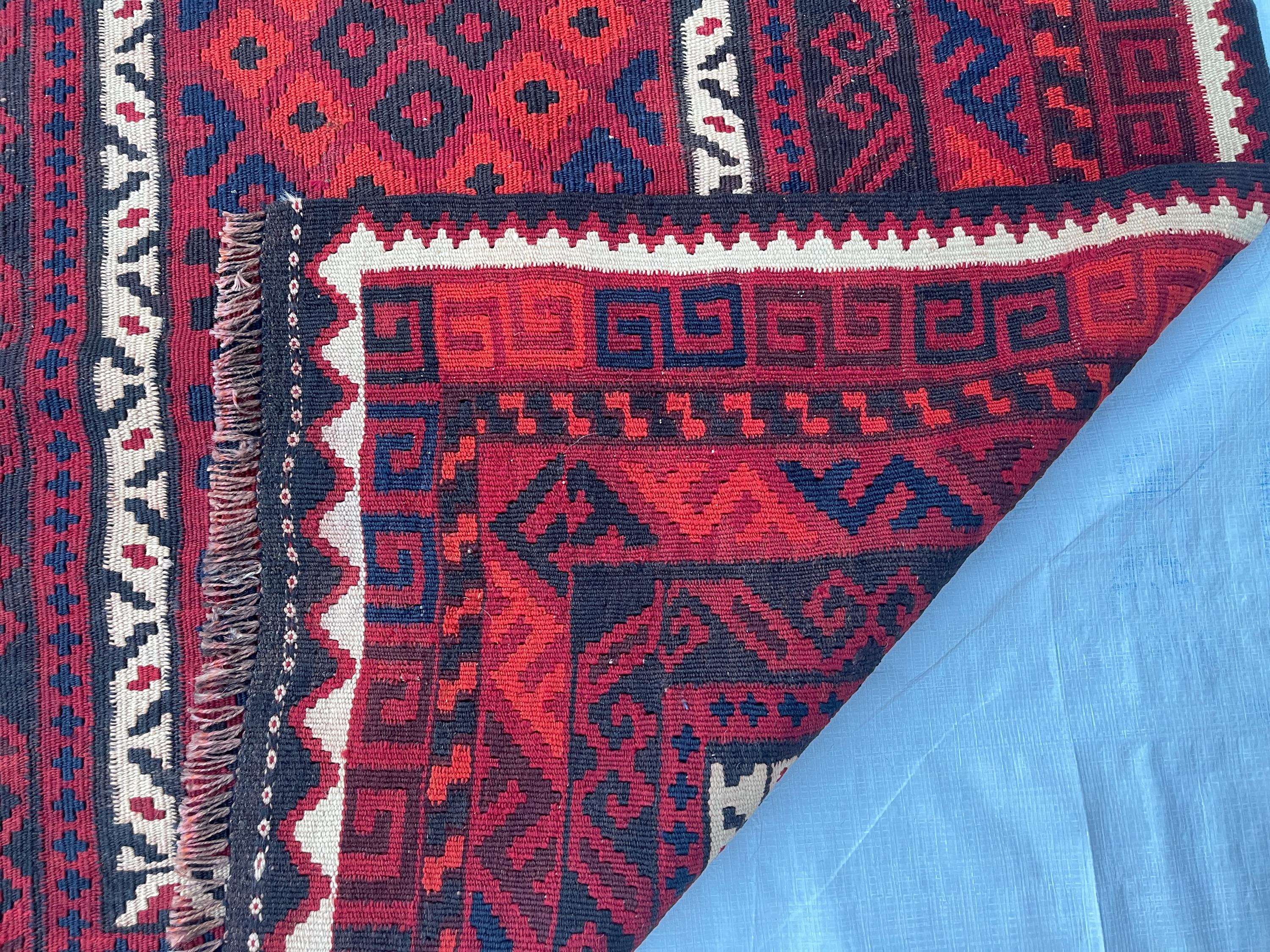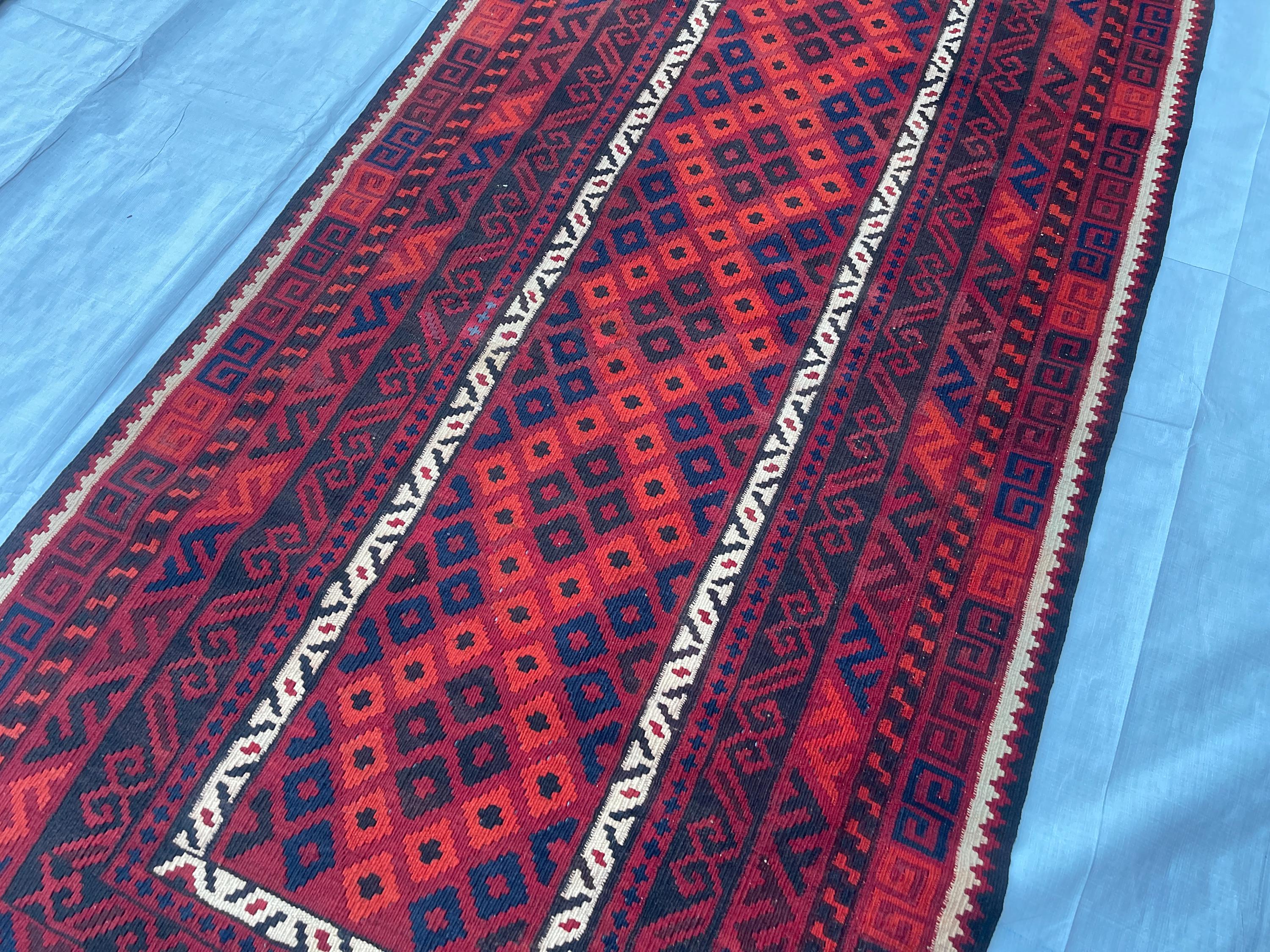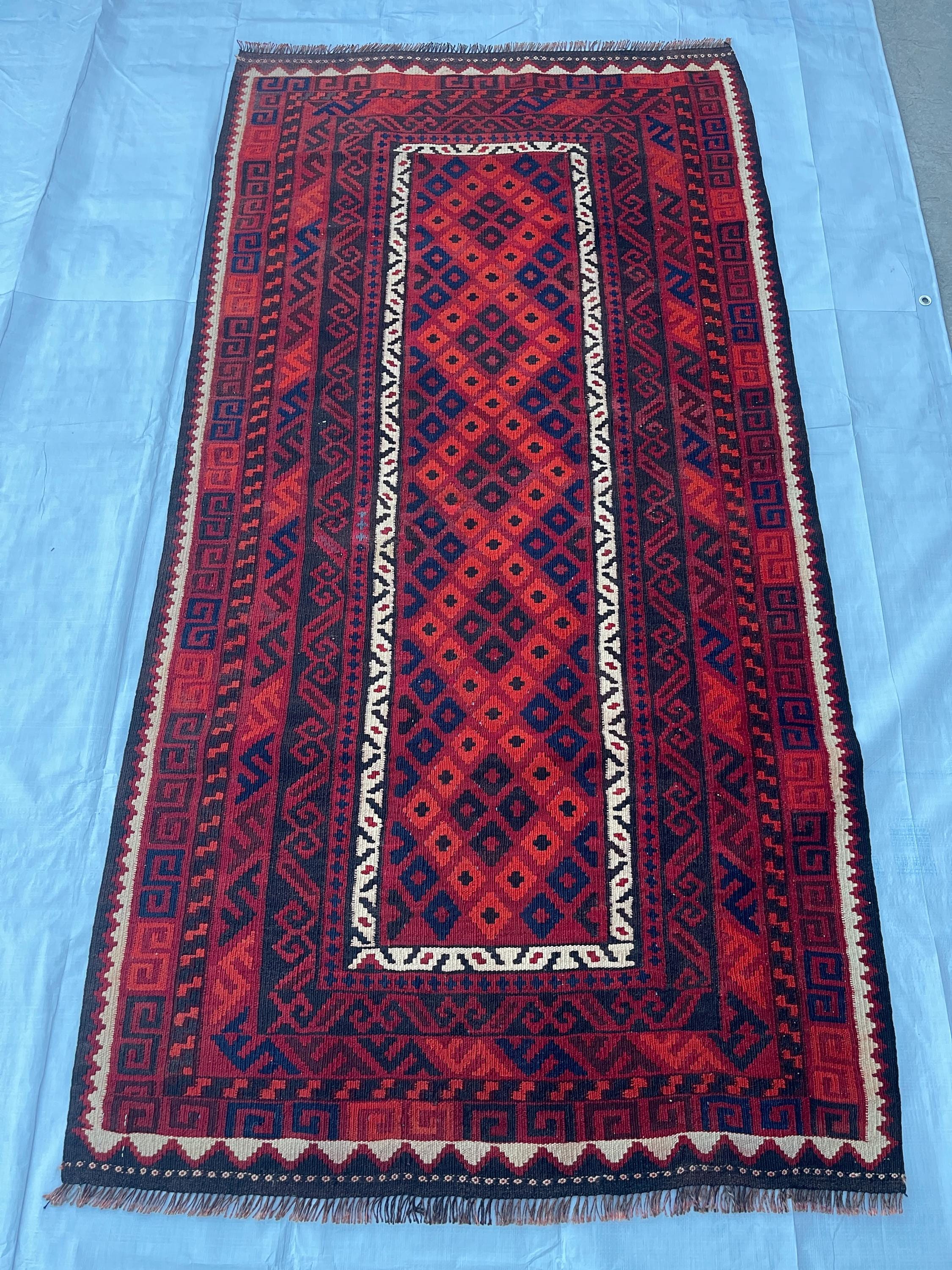 3x7 ft Vintage Old Turkmen Geometric Rug - Antique Tribal Nomadic Handwoven Rug 3.5x7.4 ft - Flatweave Caucasian Oriental Rug 105x223 cm