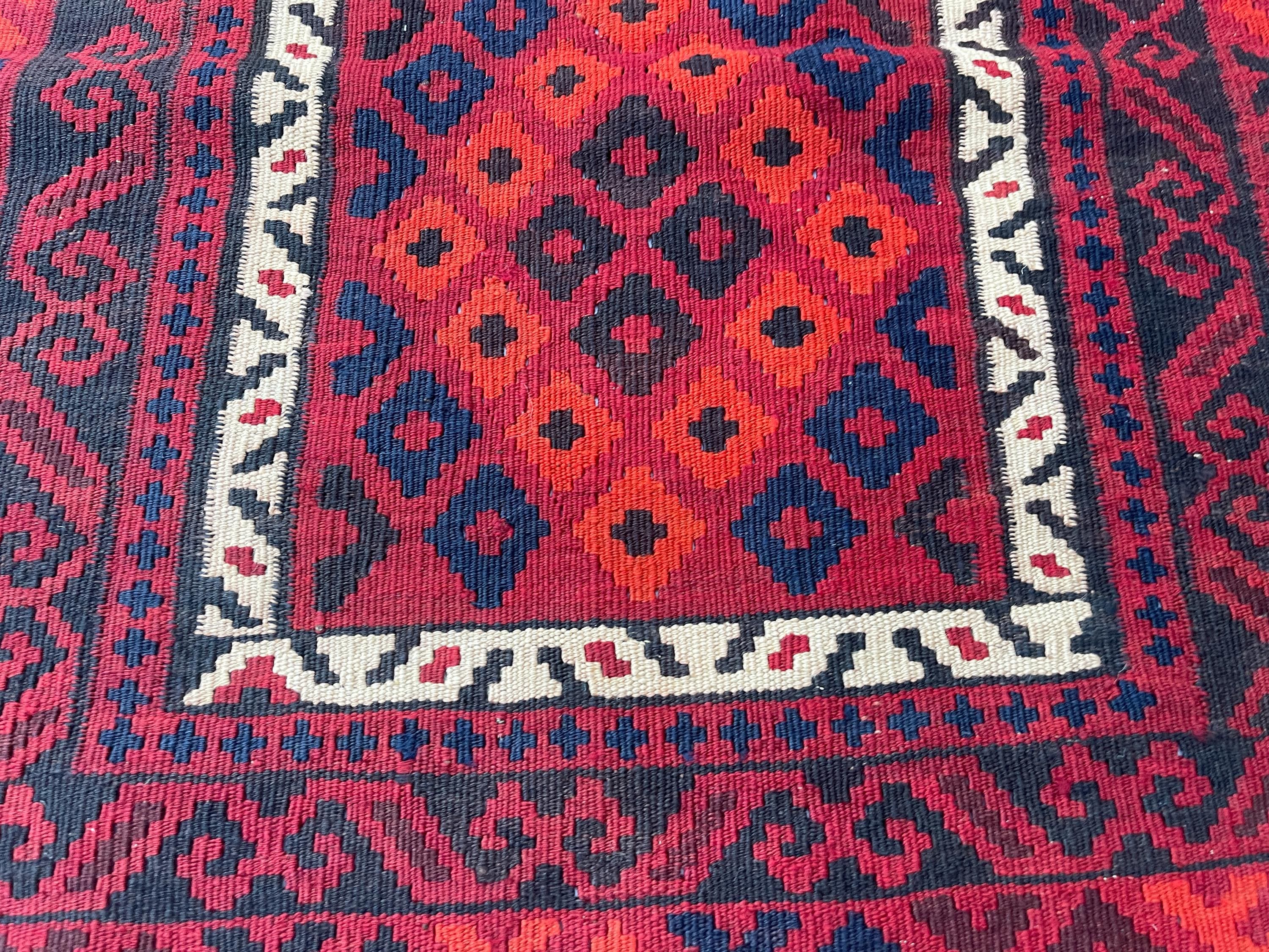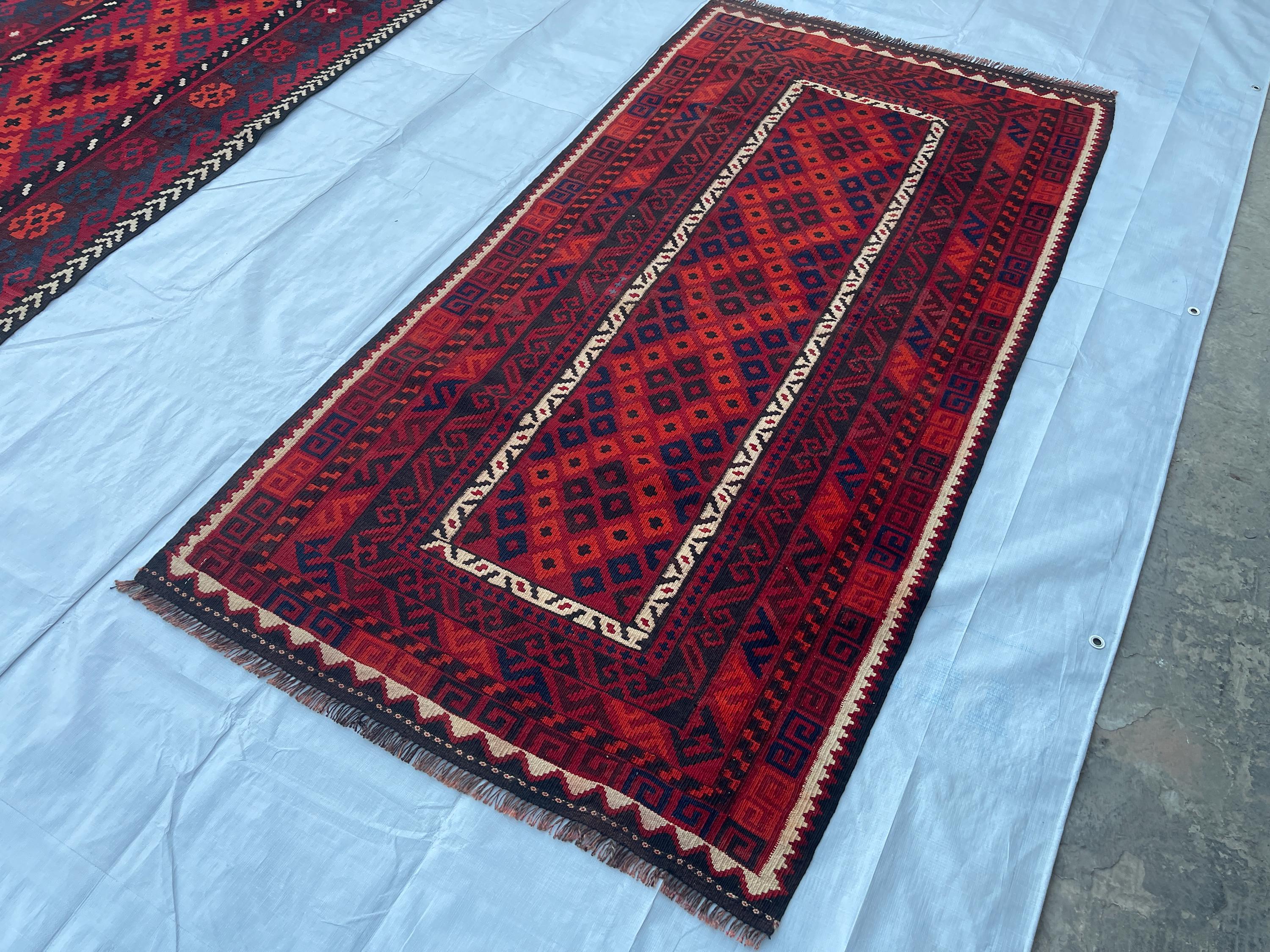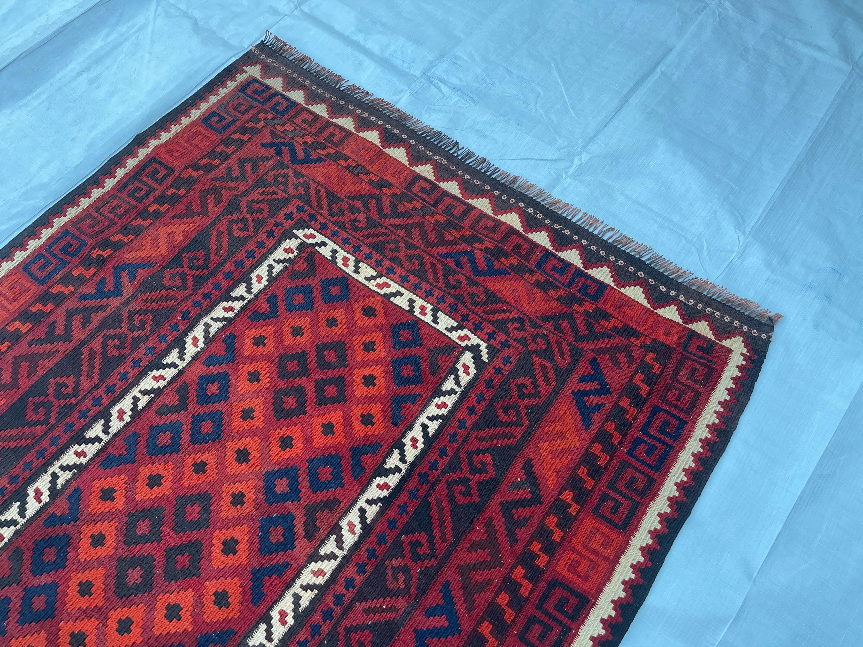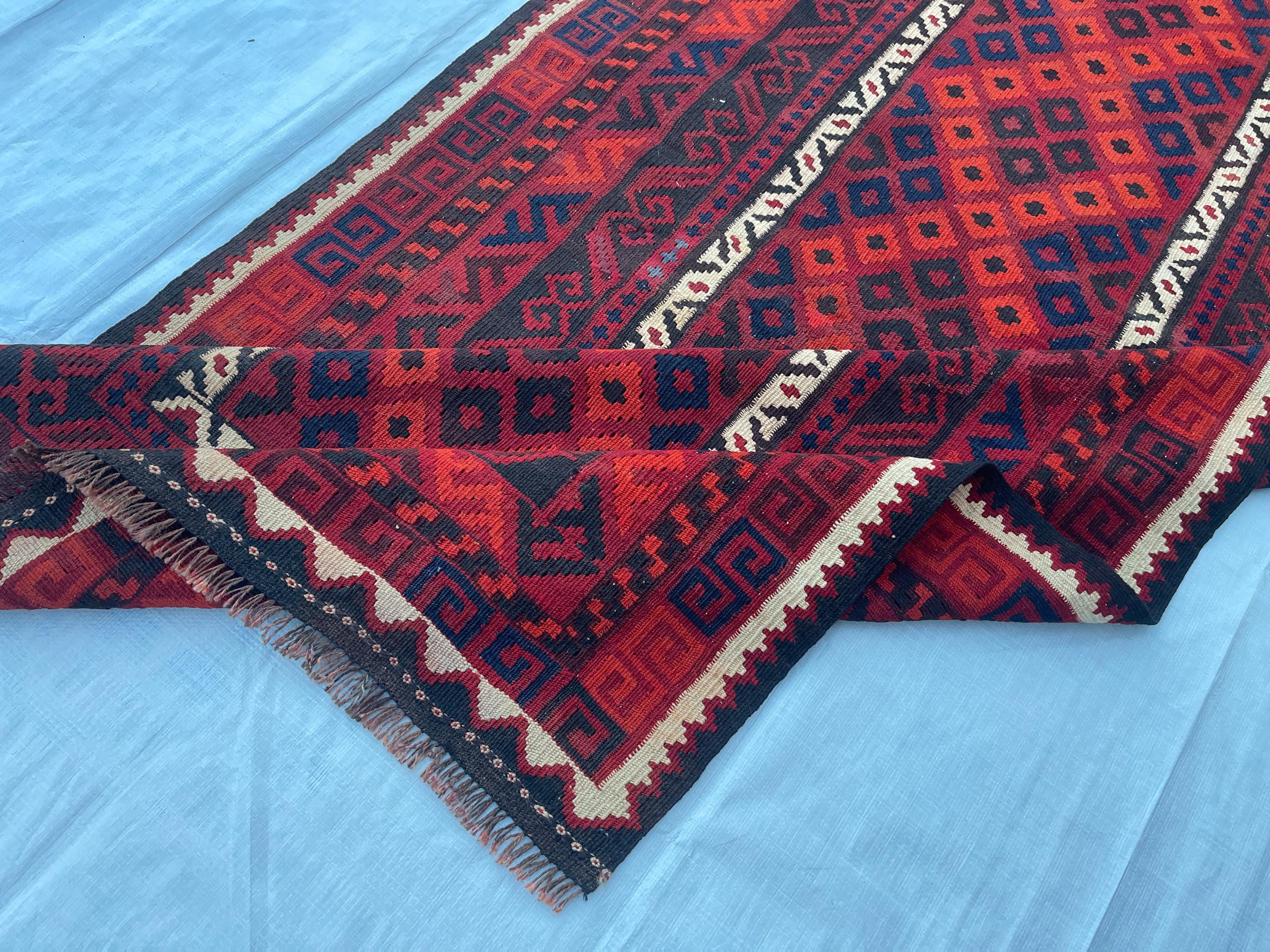3x7 ft Vintage Old Turkmen Geometric Rug - Antique Tribal Nomadic Handwoven Rug 3.5x7.4 ft - Flatweave Caucasian Oriental Rug 105x223 cm