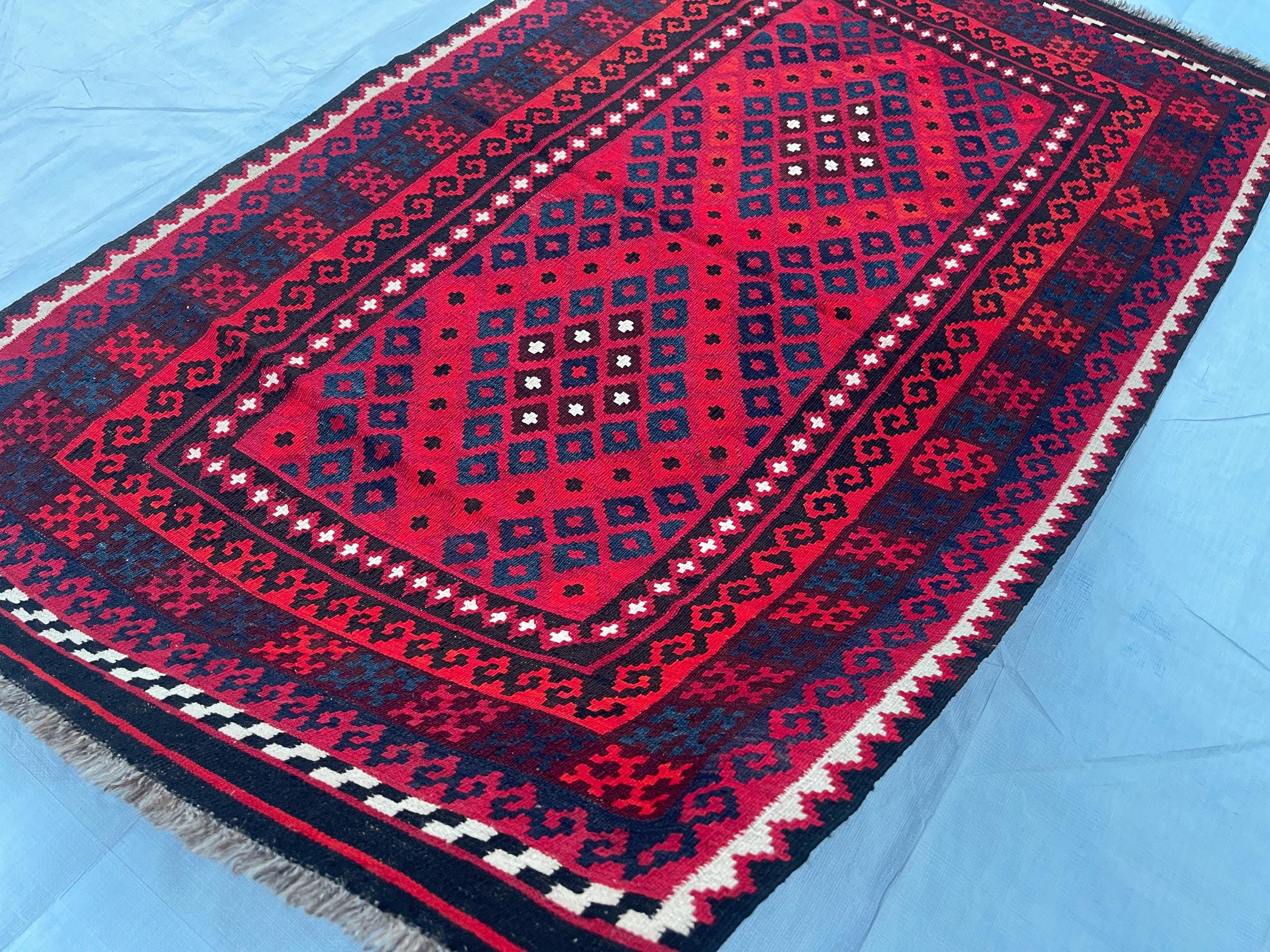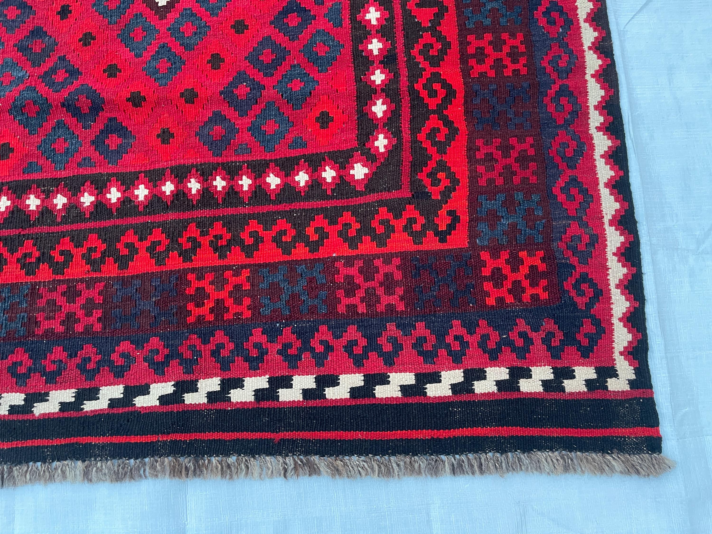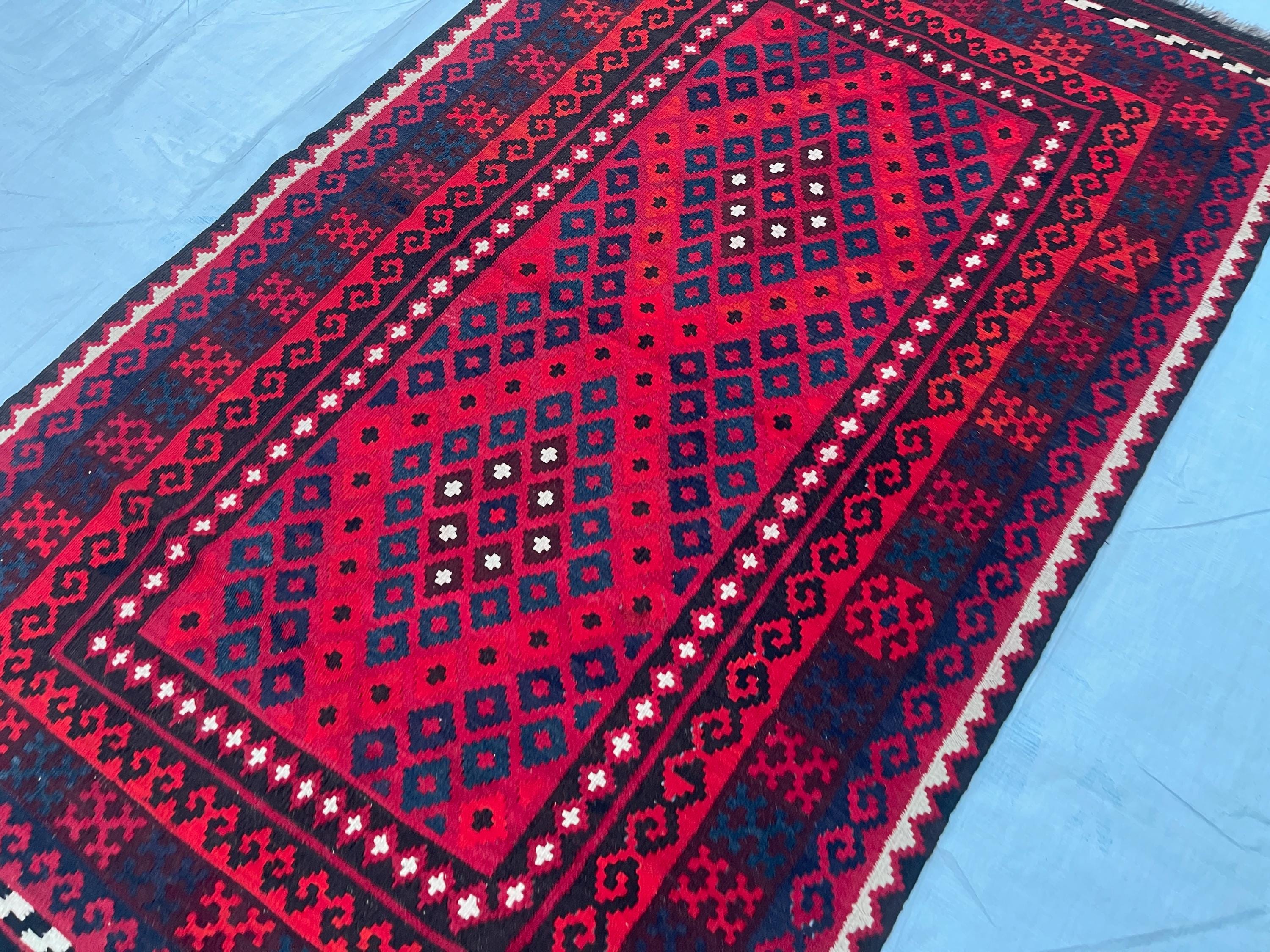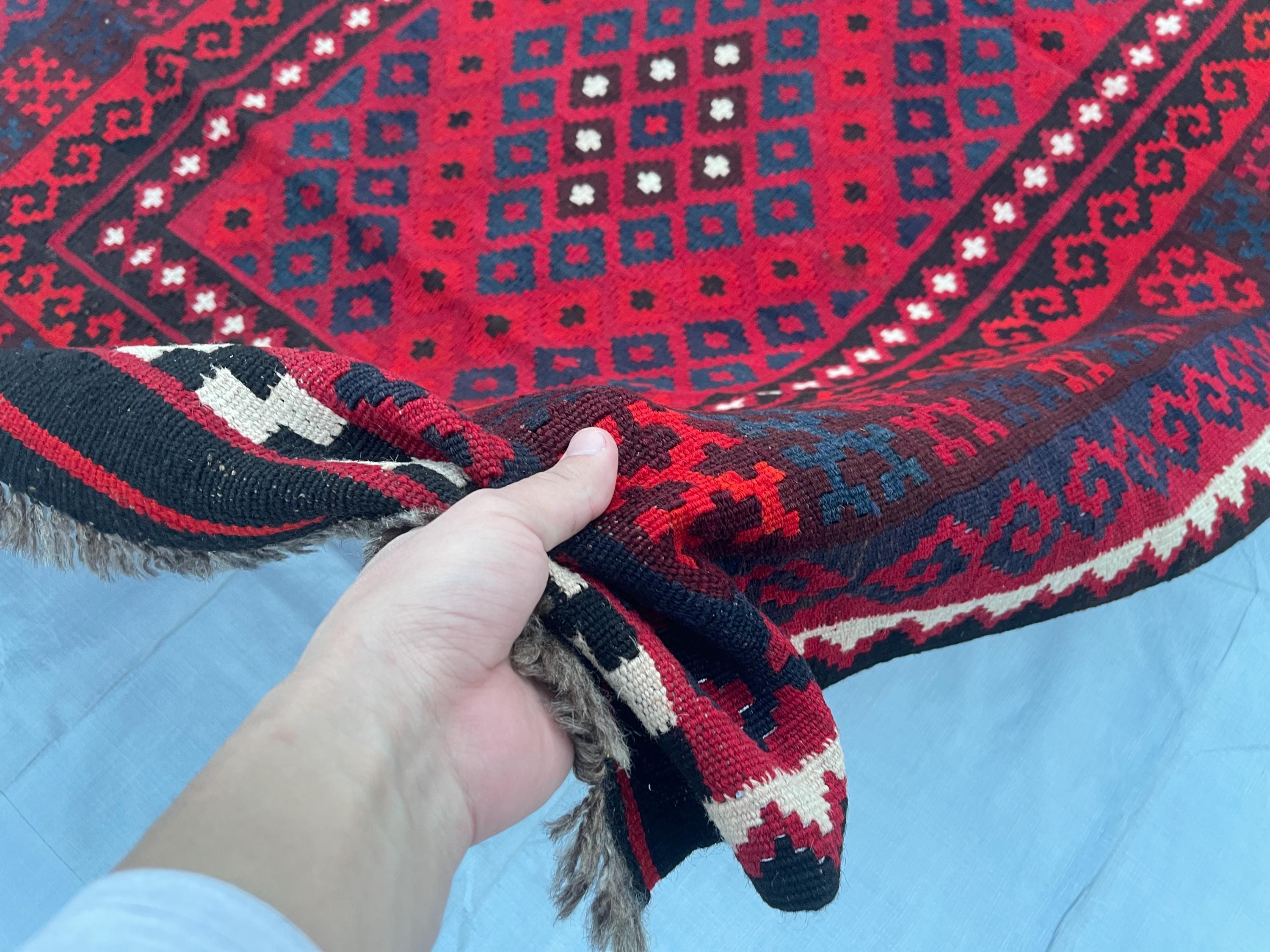 4x6 ft Red Area Afghan Vintage Kilim Rug - Afghan Turkoman Maimana Uzbek Rug 3.9x6.4 ft - Handmade Veg Dyes Wool Tribal Kilim Rug 114x194 cm