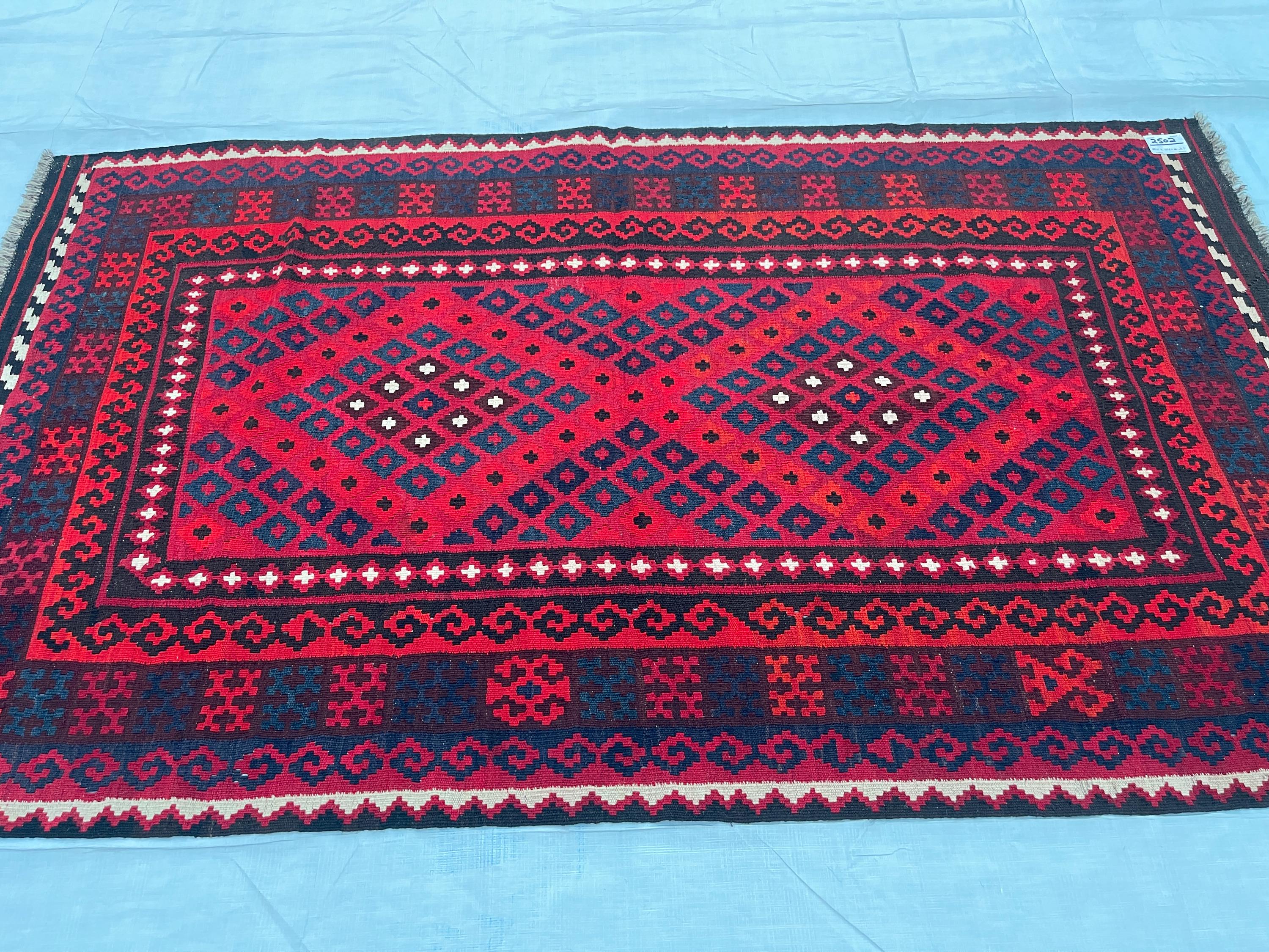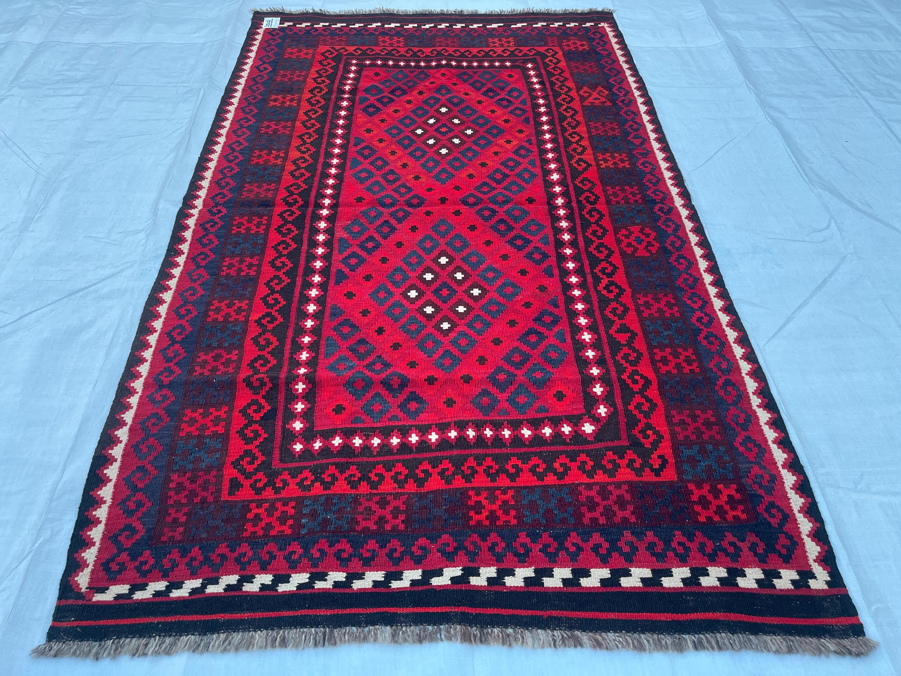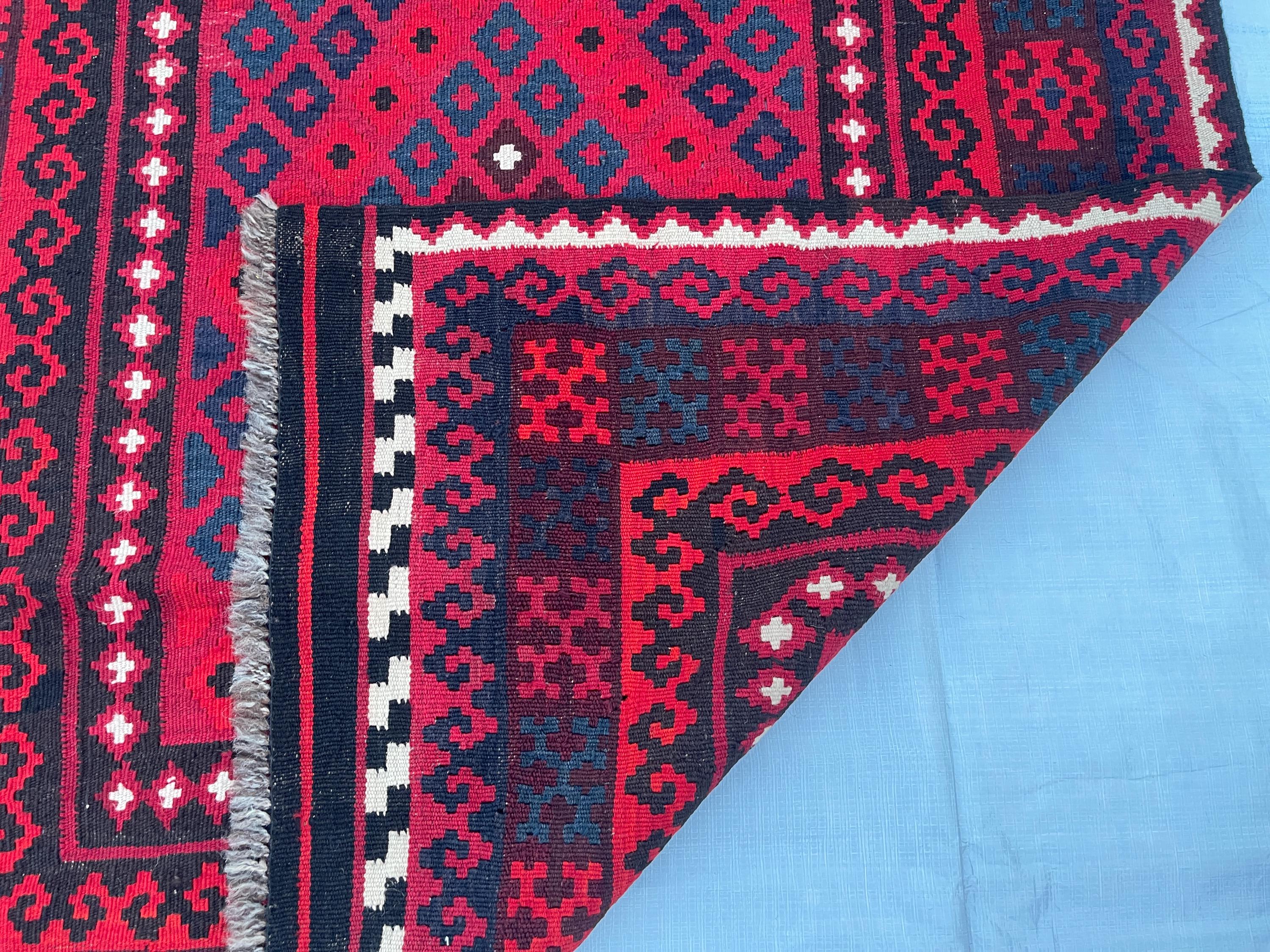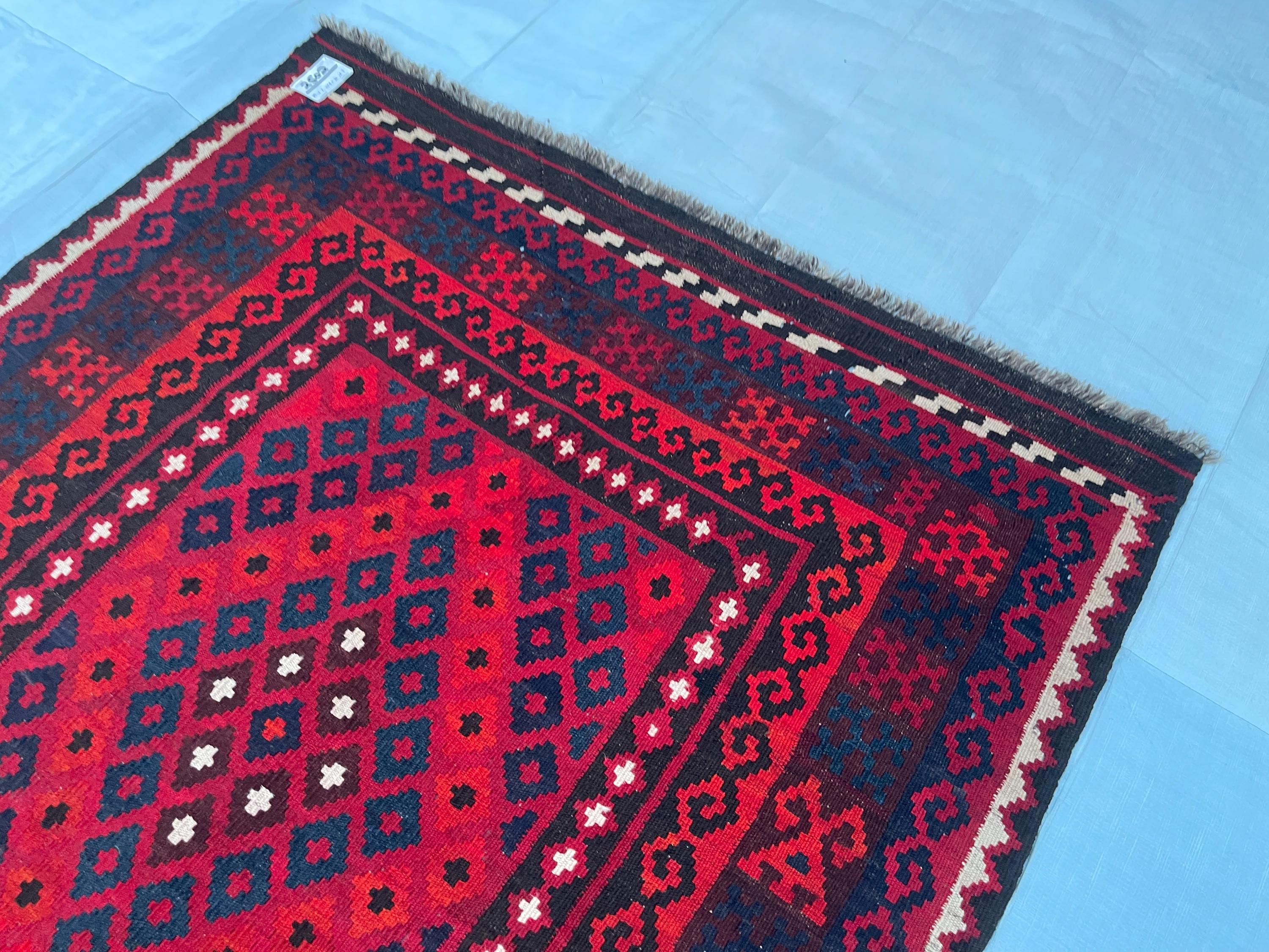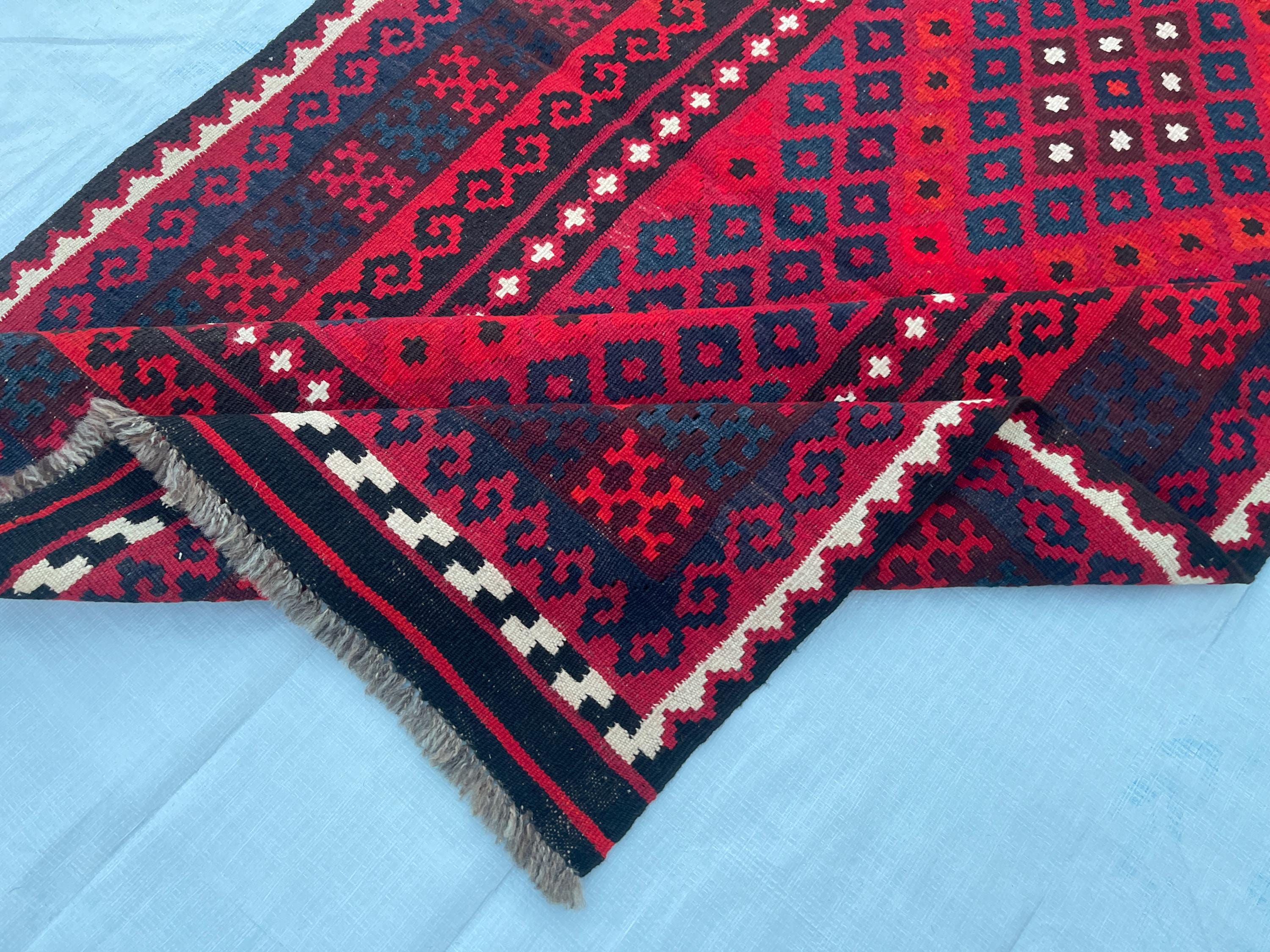 4x6 ft Red Area Afghan Vintage Kilim Rug - Afghan Turkoman Maimana Uzbek Rug 3.9x6.4 ft - Handmade Veg Dyes Wool Tribal Kilim Rug 114x194 cm