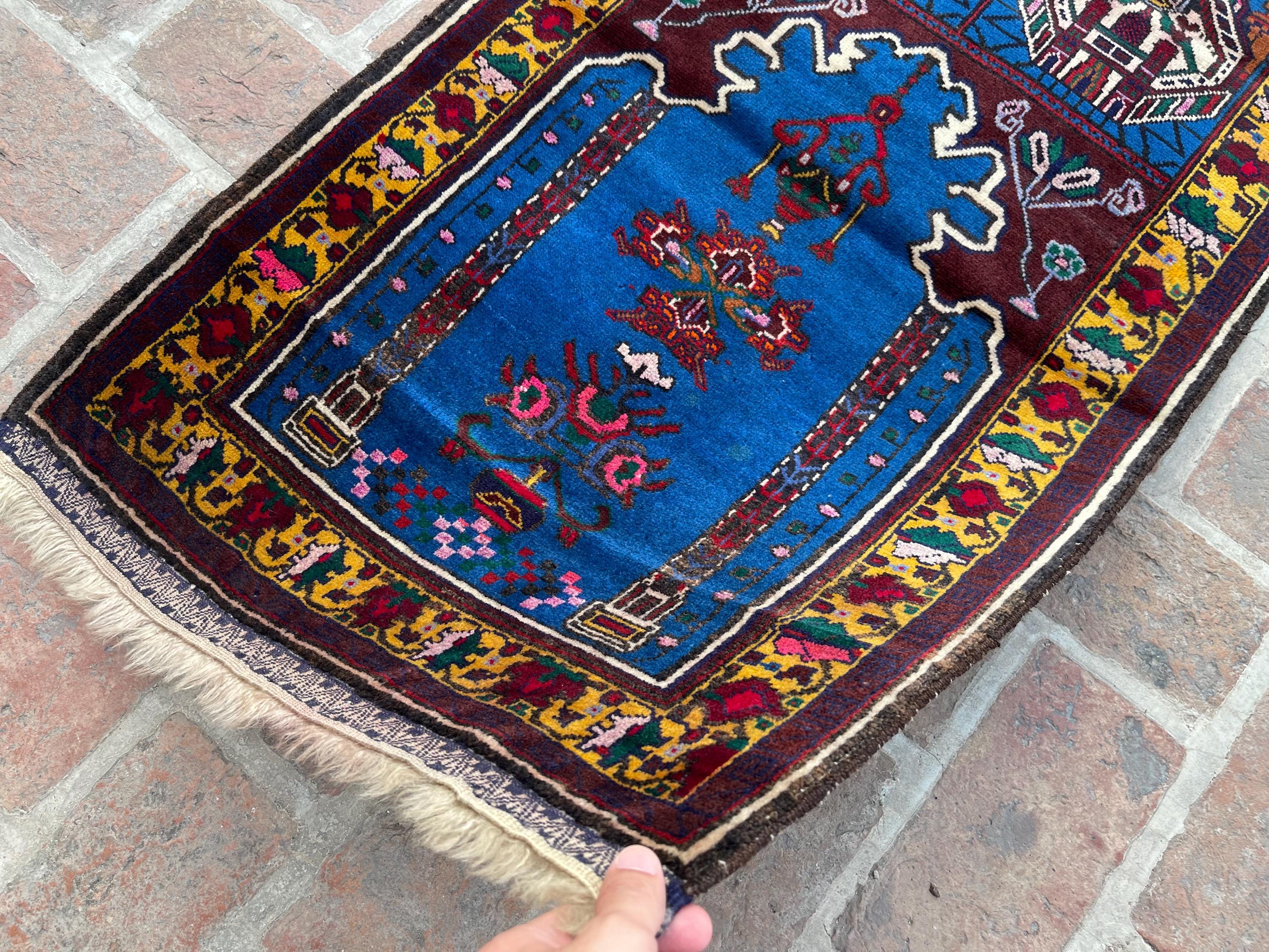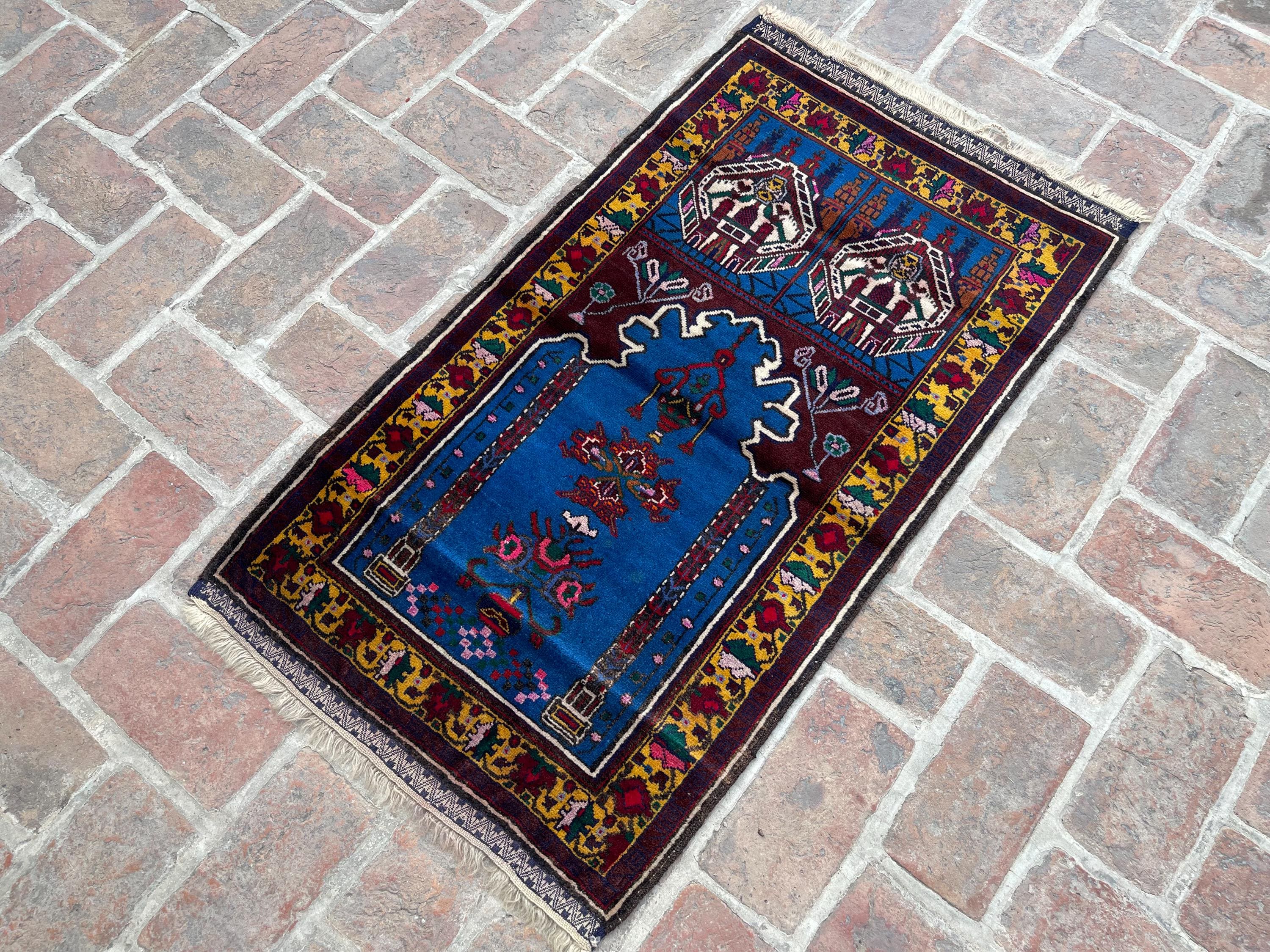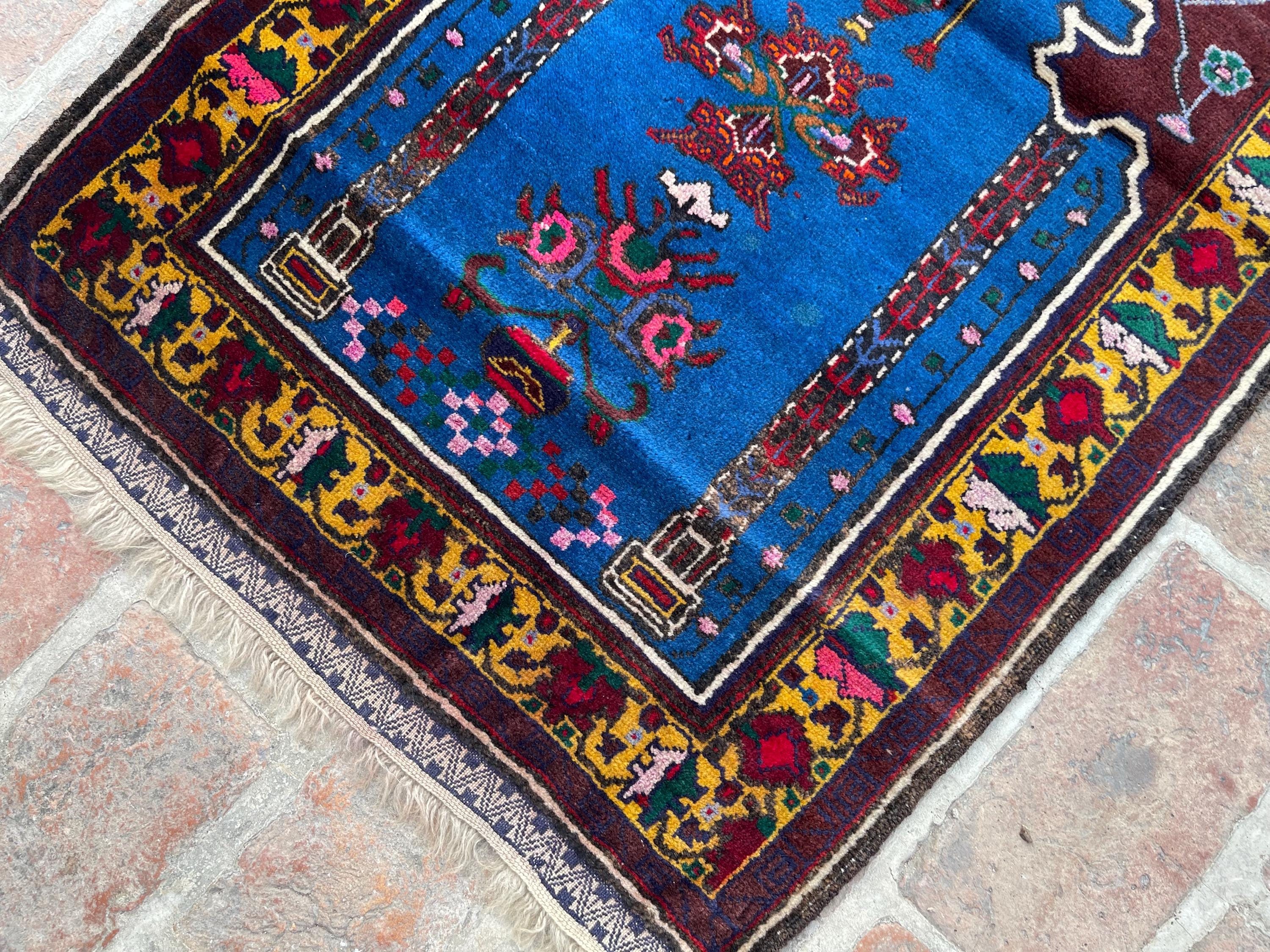 FREE SHIPPING 3x4 Rich Blue Royal Baluch Prayer Rug - Handmade Soft Wool Fine Rug - Turkmen Veg Dyes Tribal Nomadic Accent Rug 2.3x3.11 ft