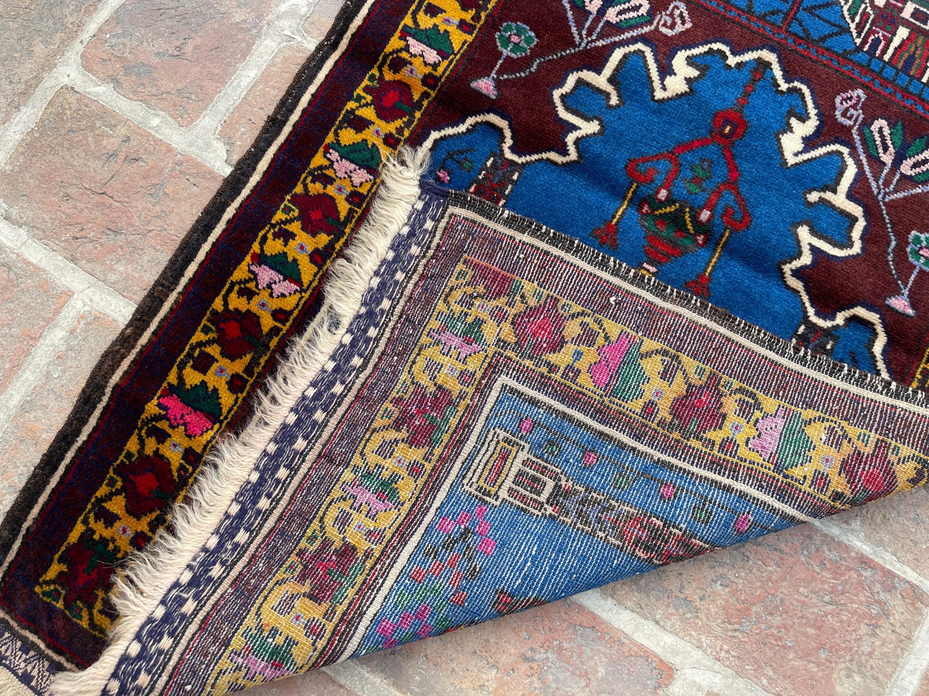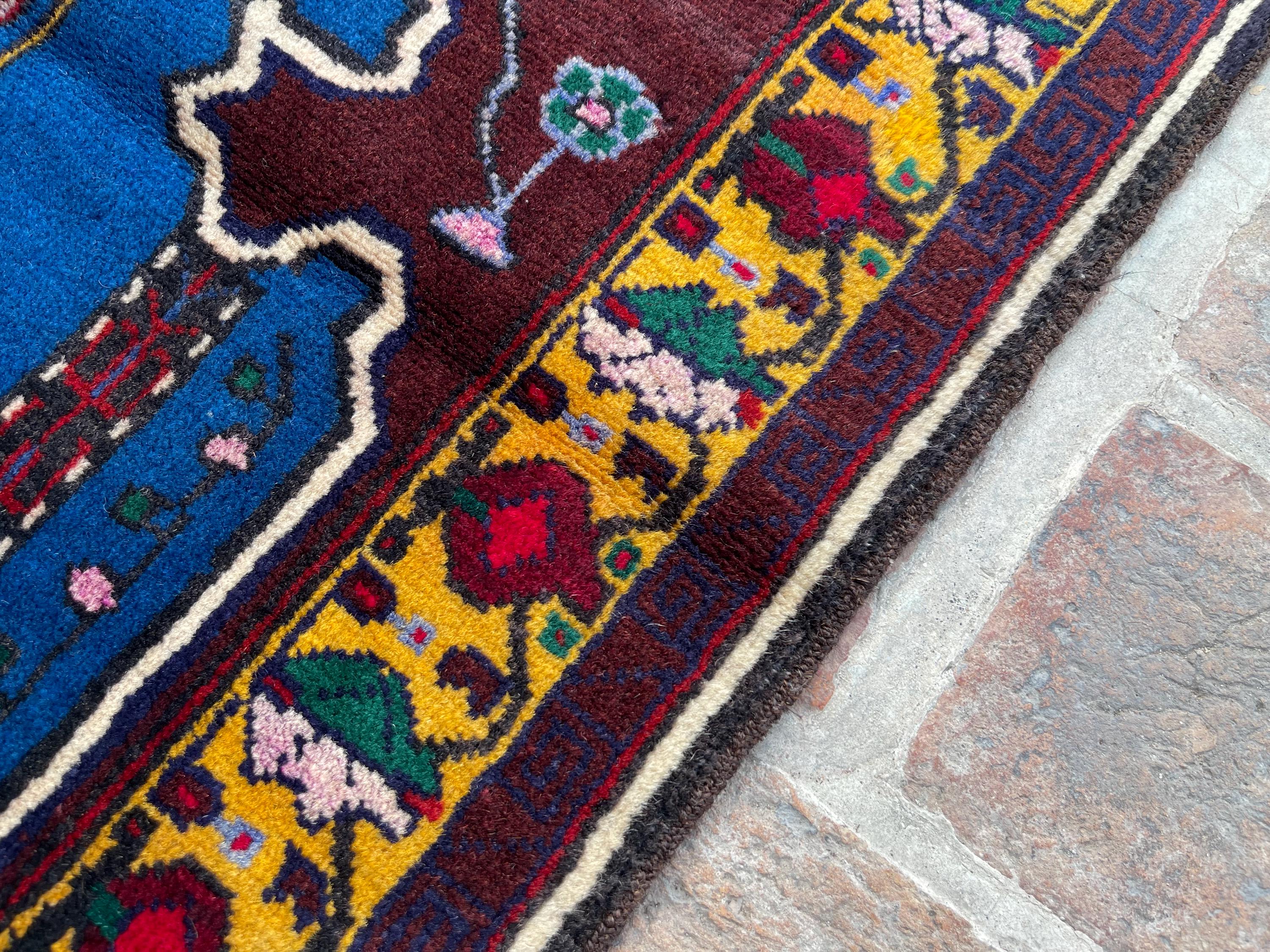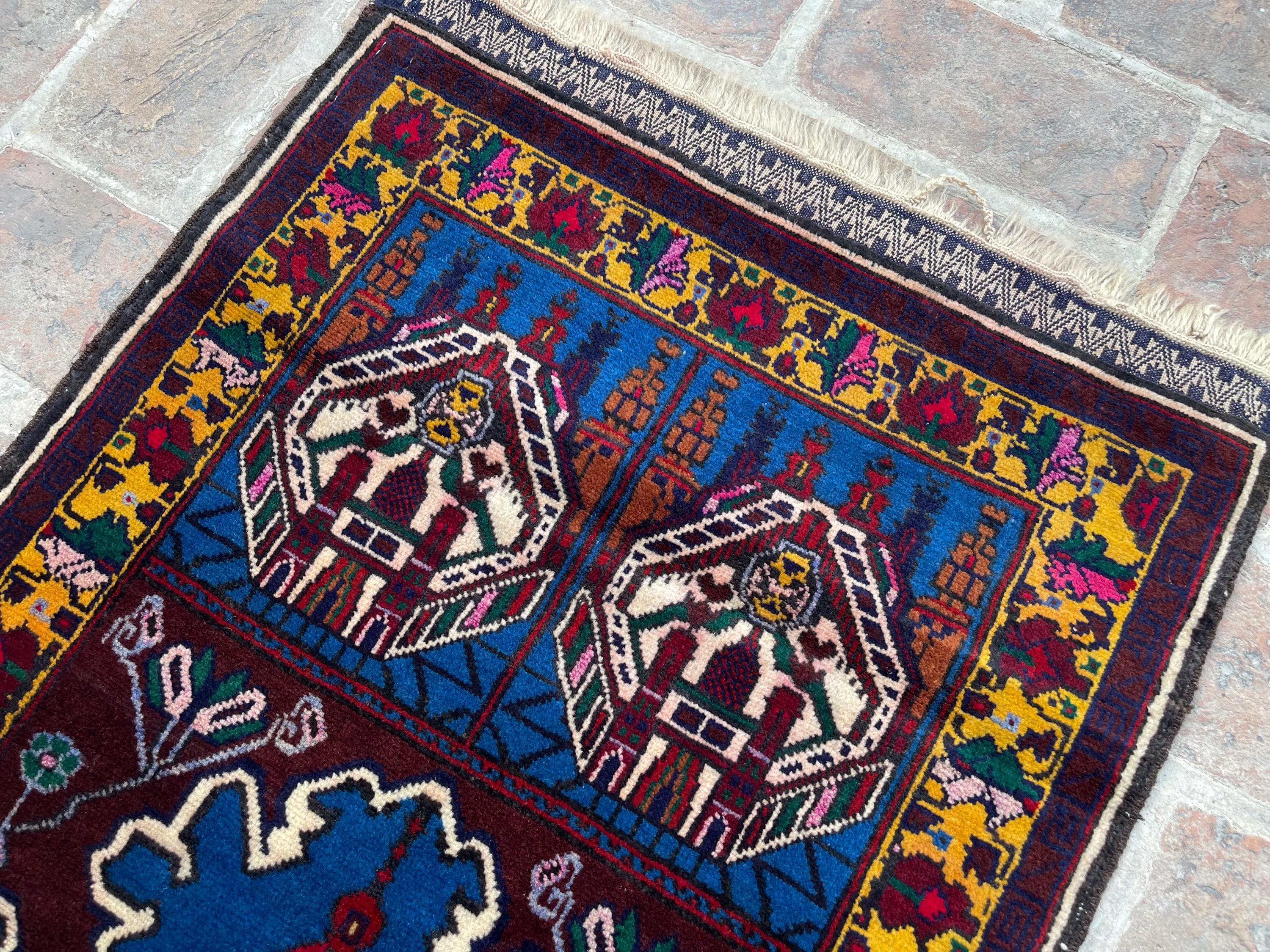 FREE SHIPPING 3x4 Rich Blue Royal Baluch Prayer Rug - Handmade Soft Wool Fine Rug - Turkmen Veg Dyes Tribal Nomadic Accent Rug 2.3x3.11 ft