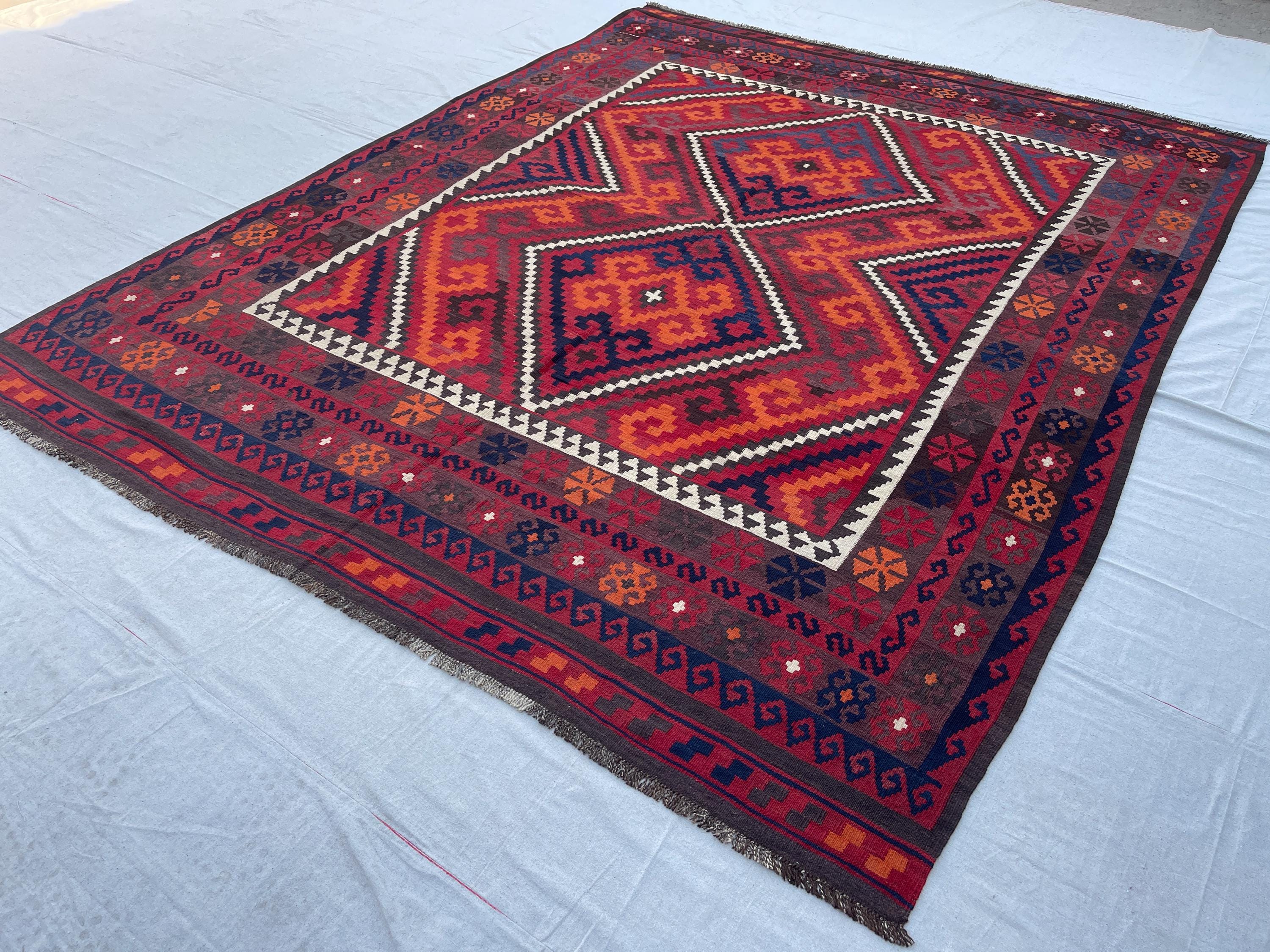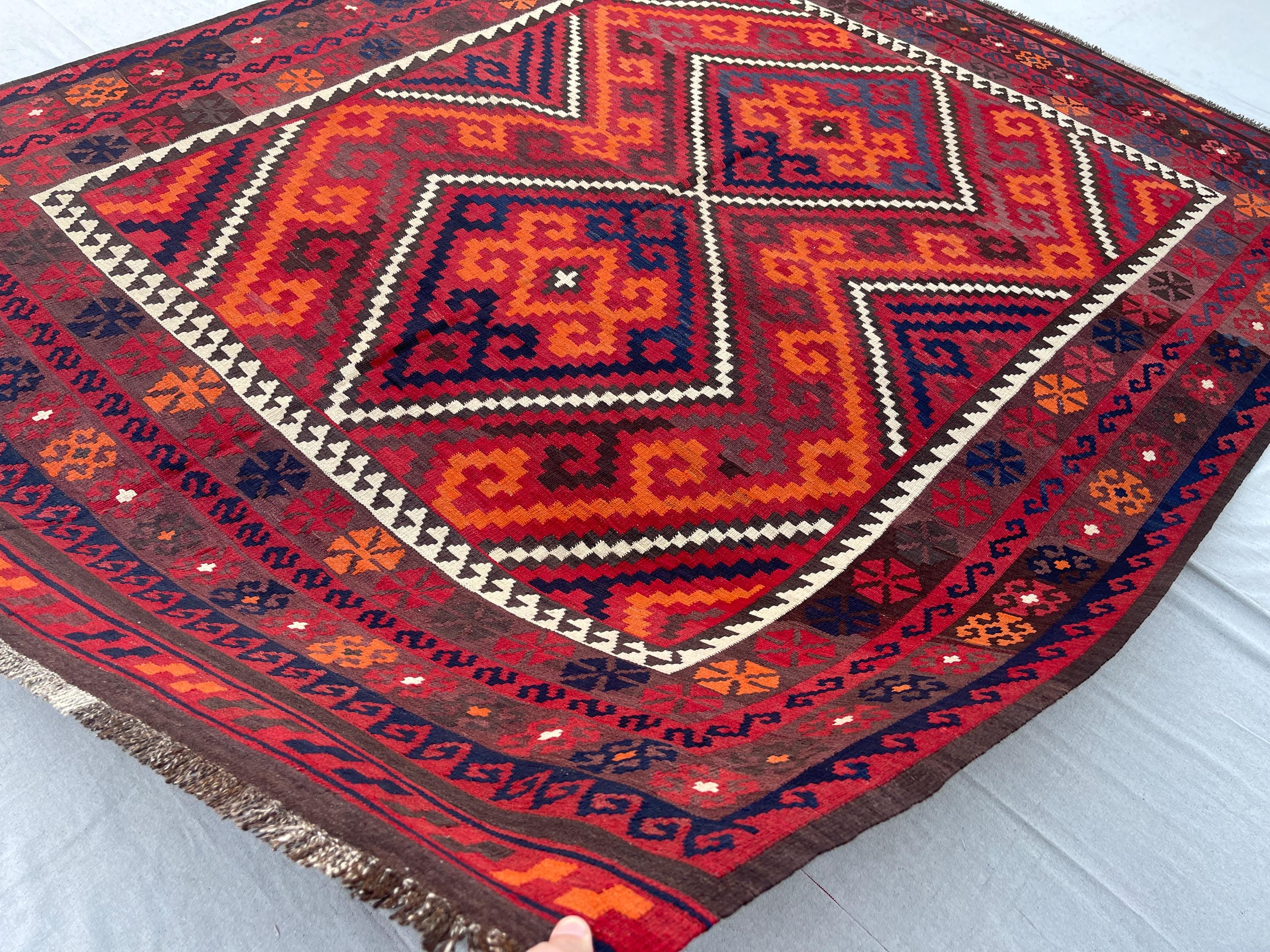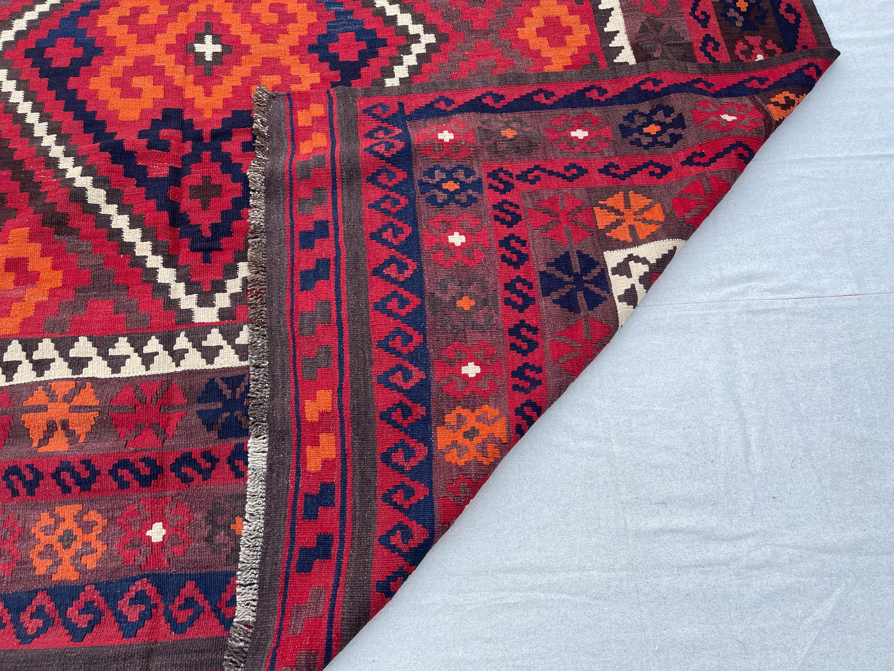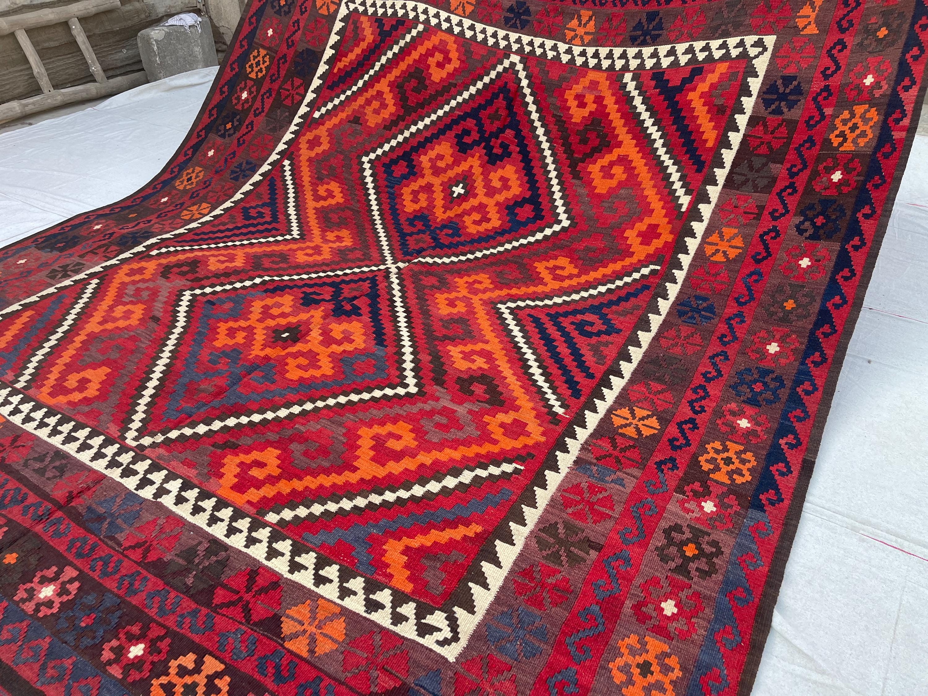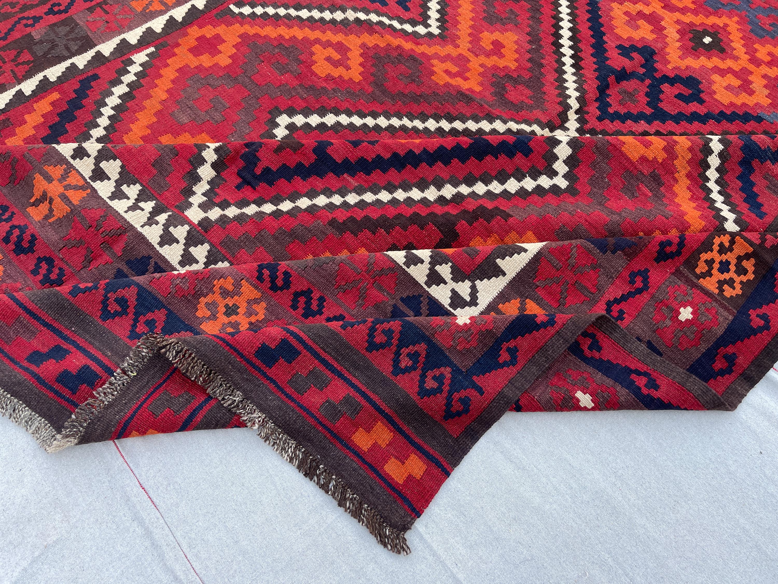 8x10 Red Orange Afghan Handmade Vintage Kilim Rug - Large Turkmen Antique Traditional Geometric Rug 7.10x10.1 ft - Caucasian Rug 240x308 cm