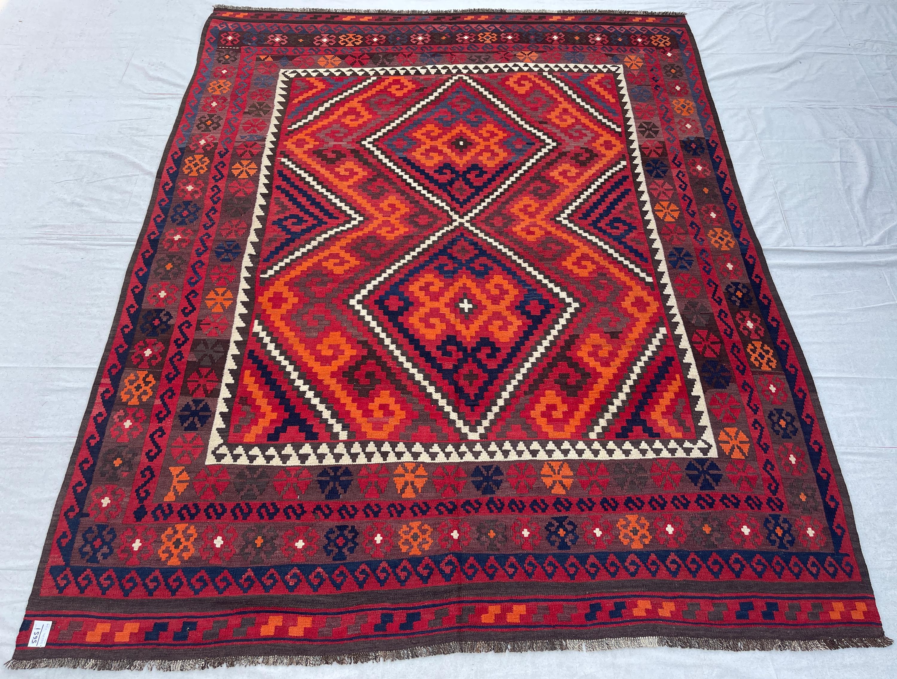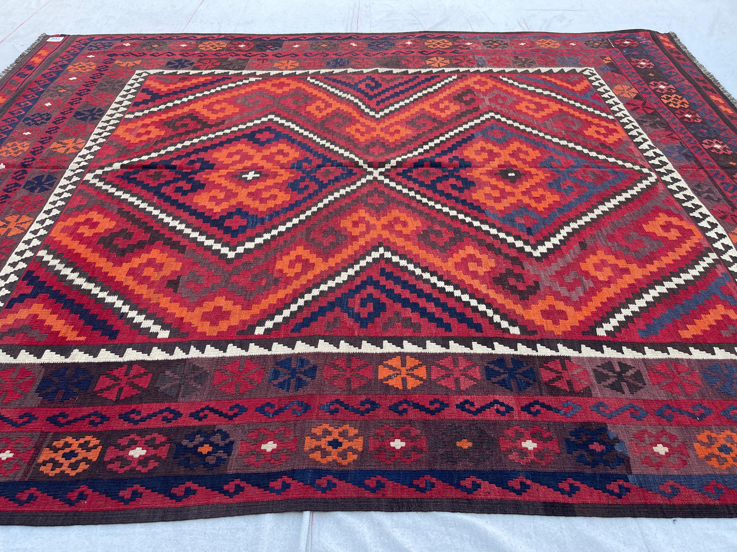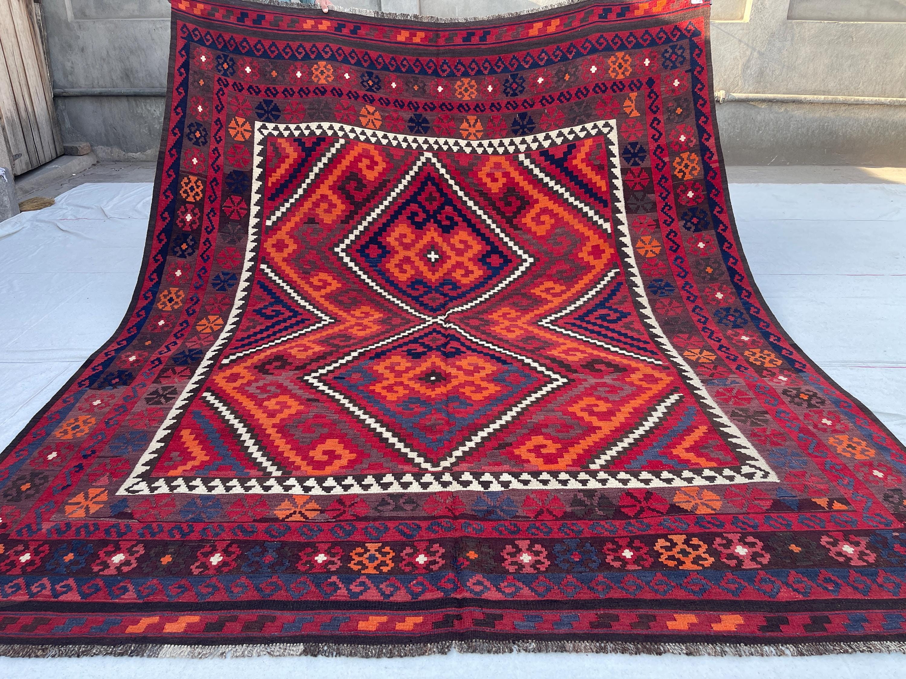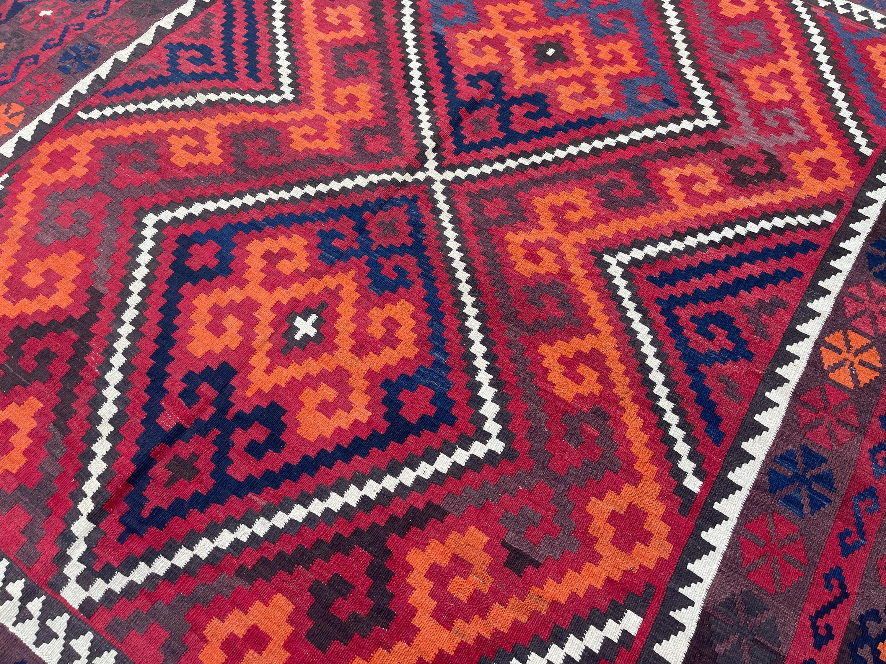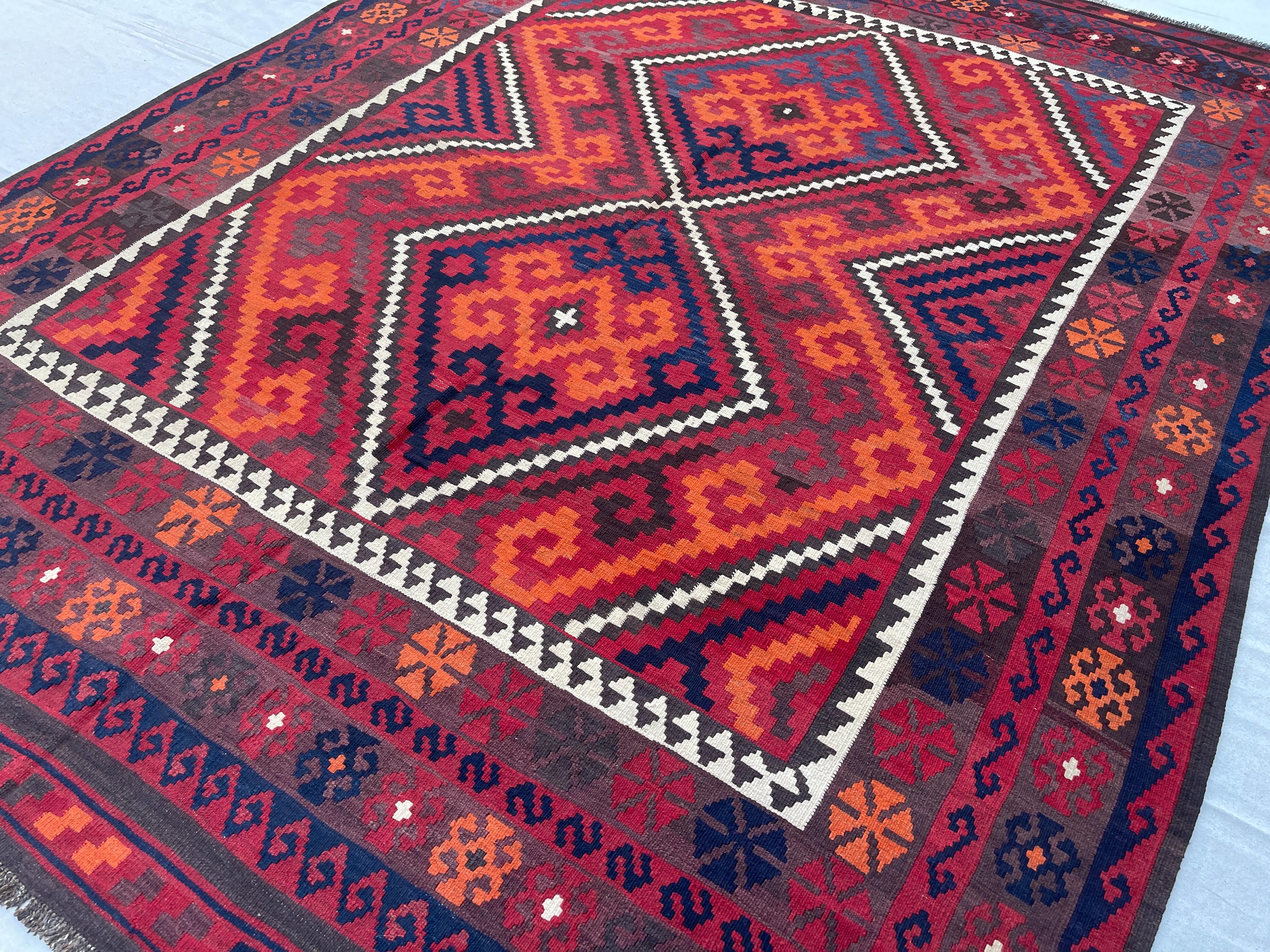 8x10 Red Orange Afghan Handmade Vintage Kilim Rug - Large Turkmen Antique Traditional Geometric Rug 7.10x10.1 ft - Caucasian Rug 240x308 cm