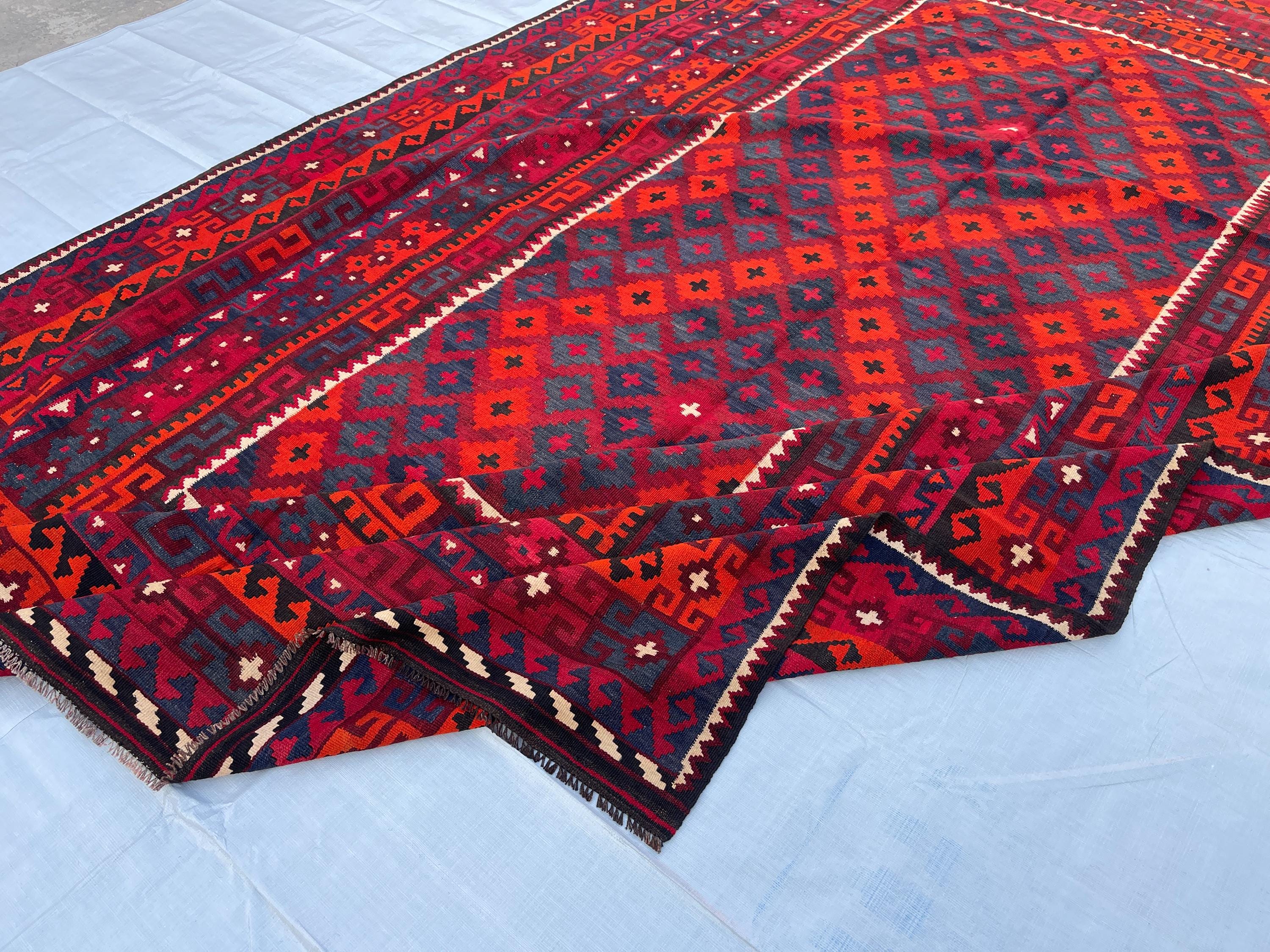 8x13 Large Red Antique Fabulous Rug - Large Afghan Handmade Vintage Veg Dyes Wool Rug 8.5x13.5 ft - Turkmen Caucasian Large Rug 256x408 cm