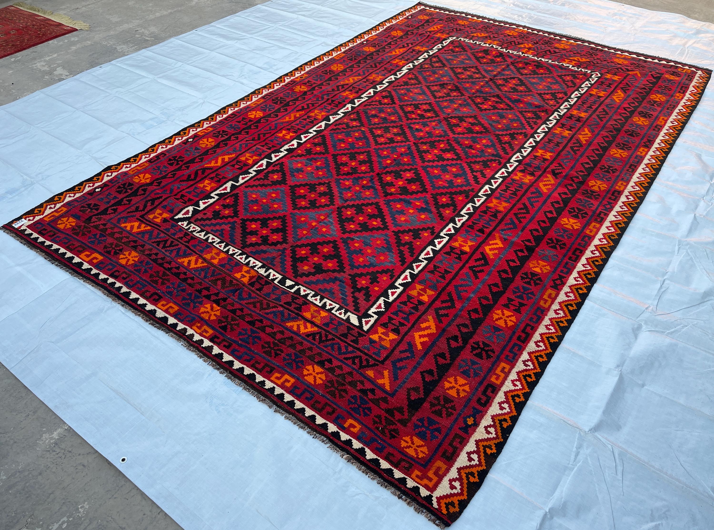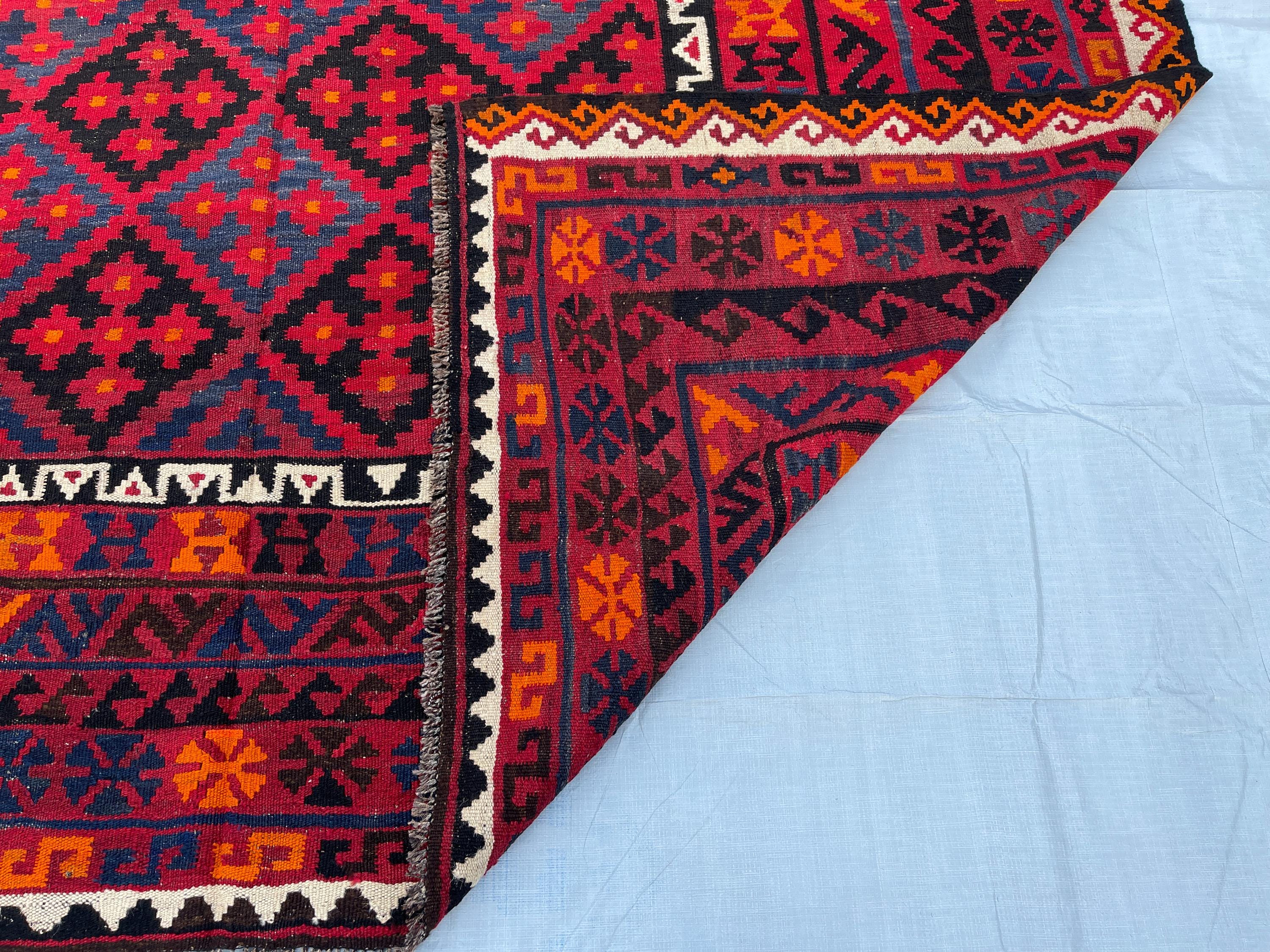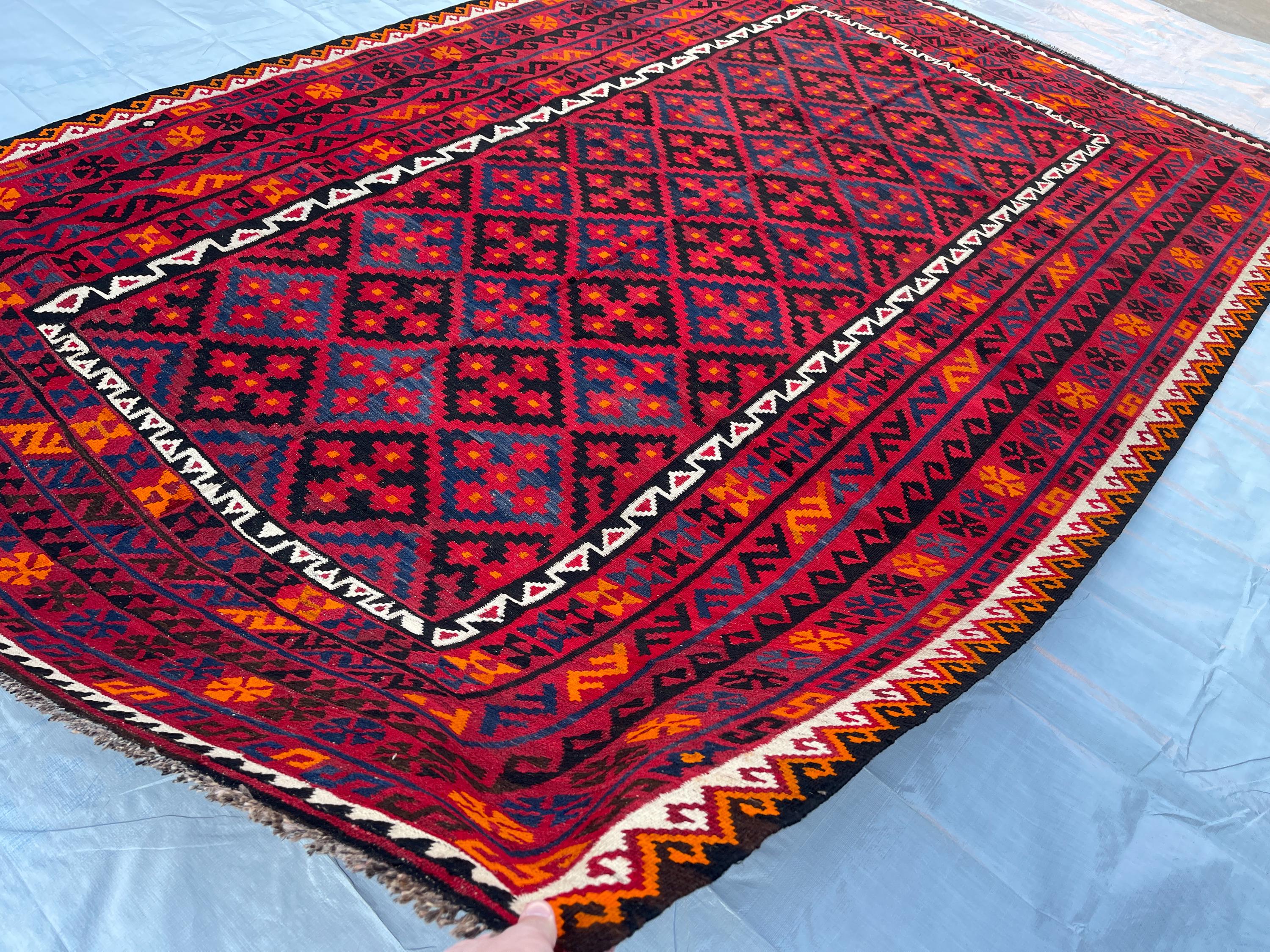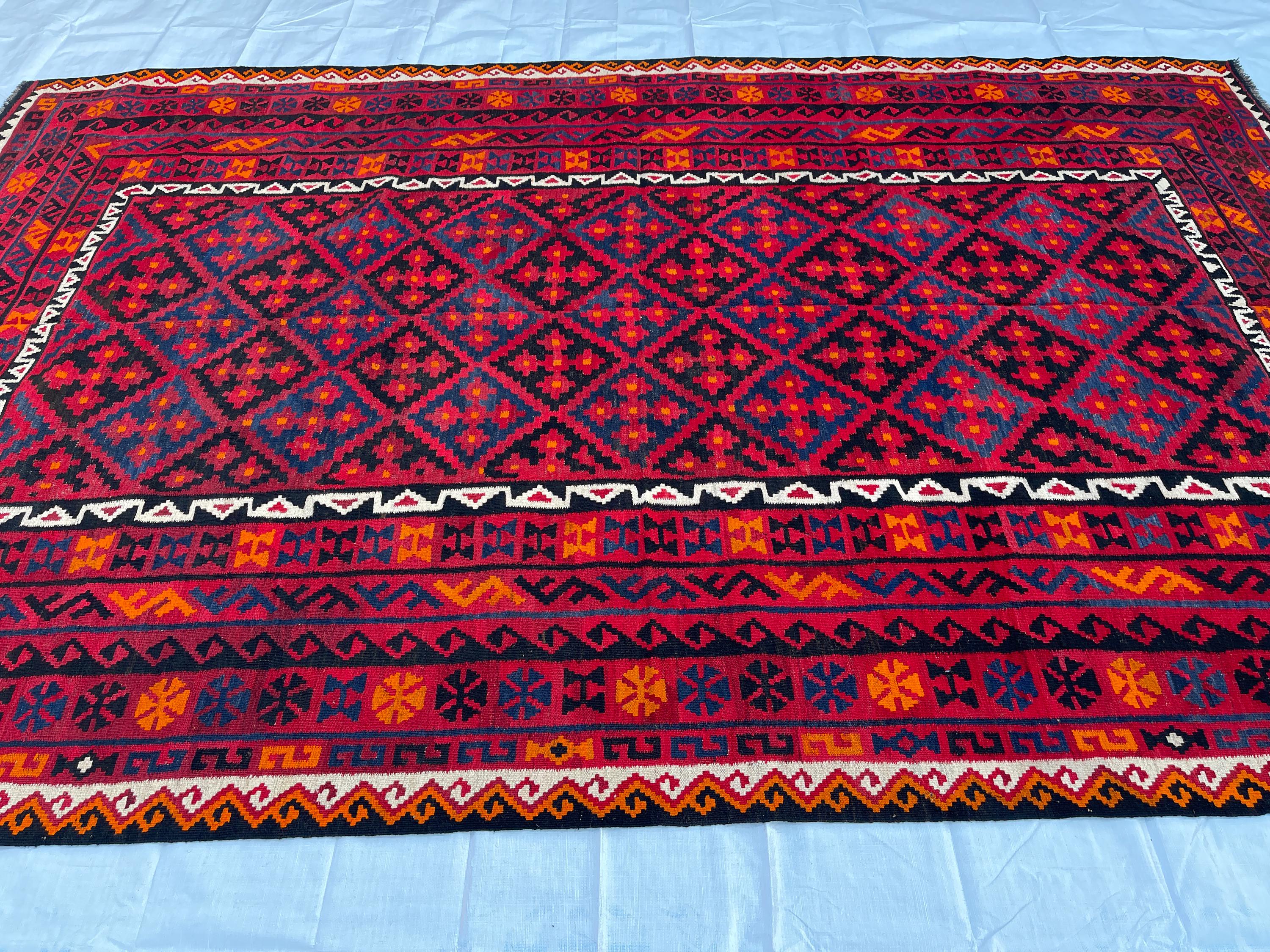 8x12 ft Geometric Fine Large Antique Rug - Afghan 1980s Vintage Handwoven Rug 8x12.7 ft - Large Maimana Exclusive Living Room Rug 244x383 cm