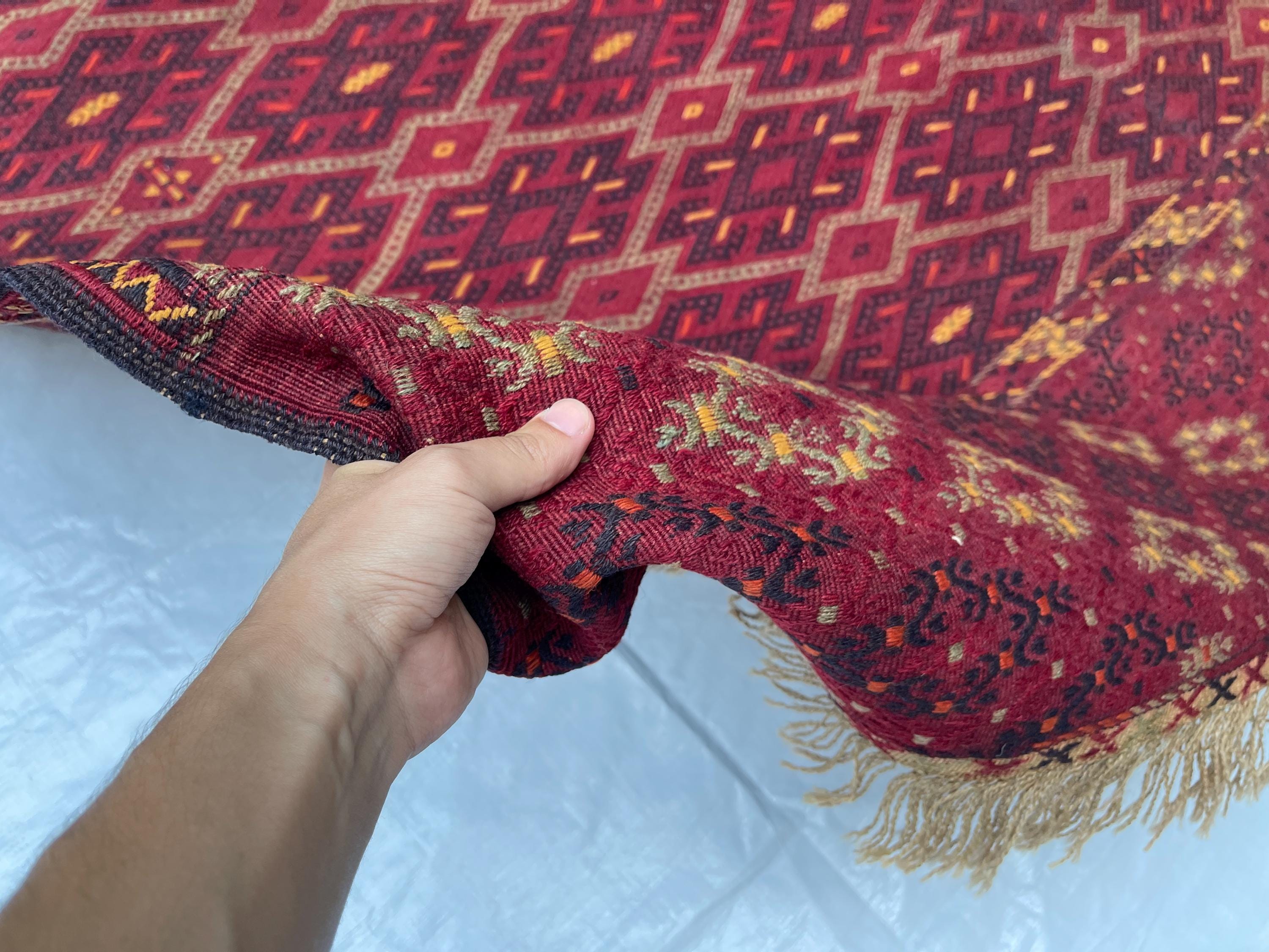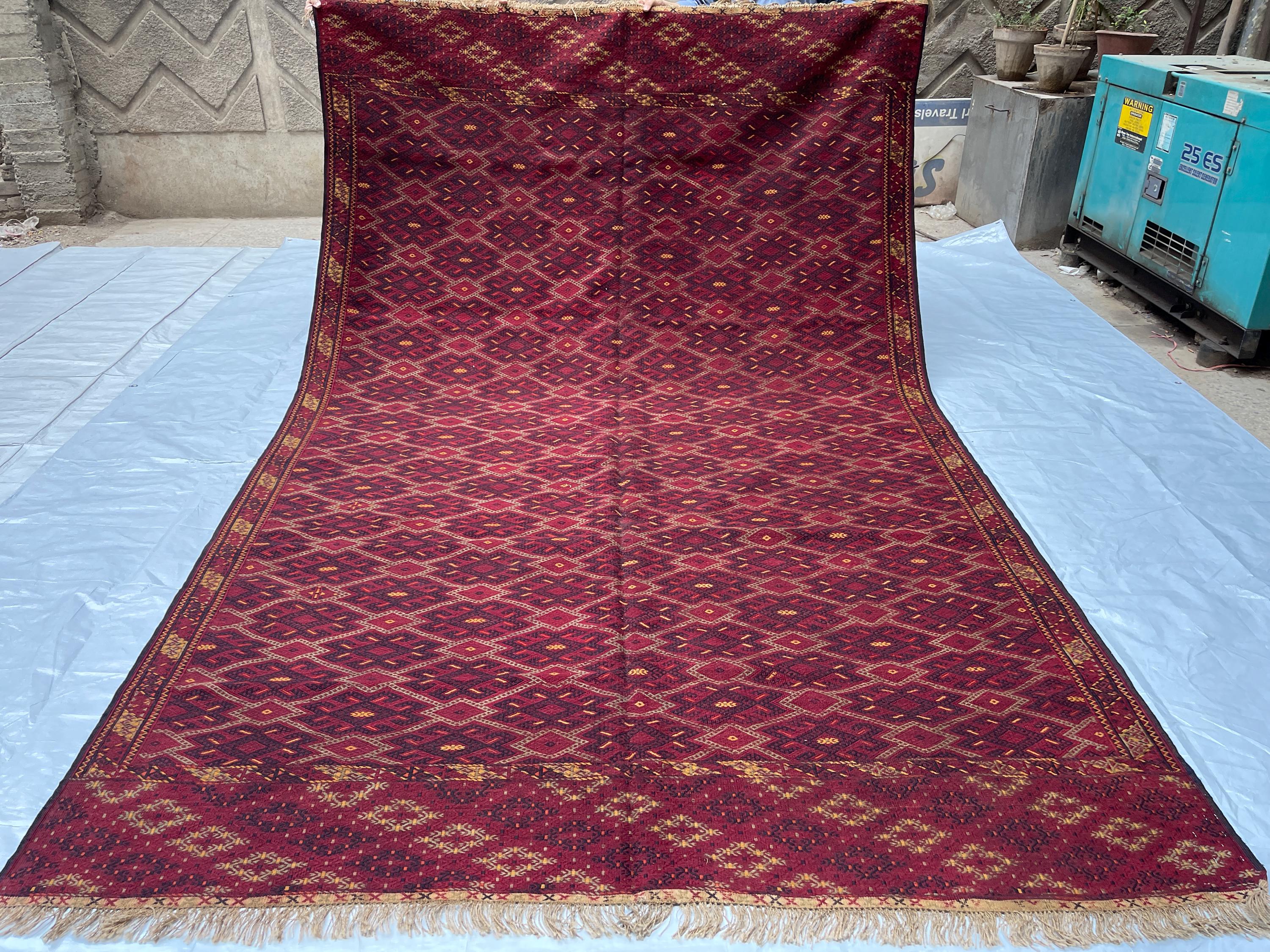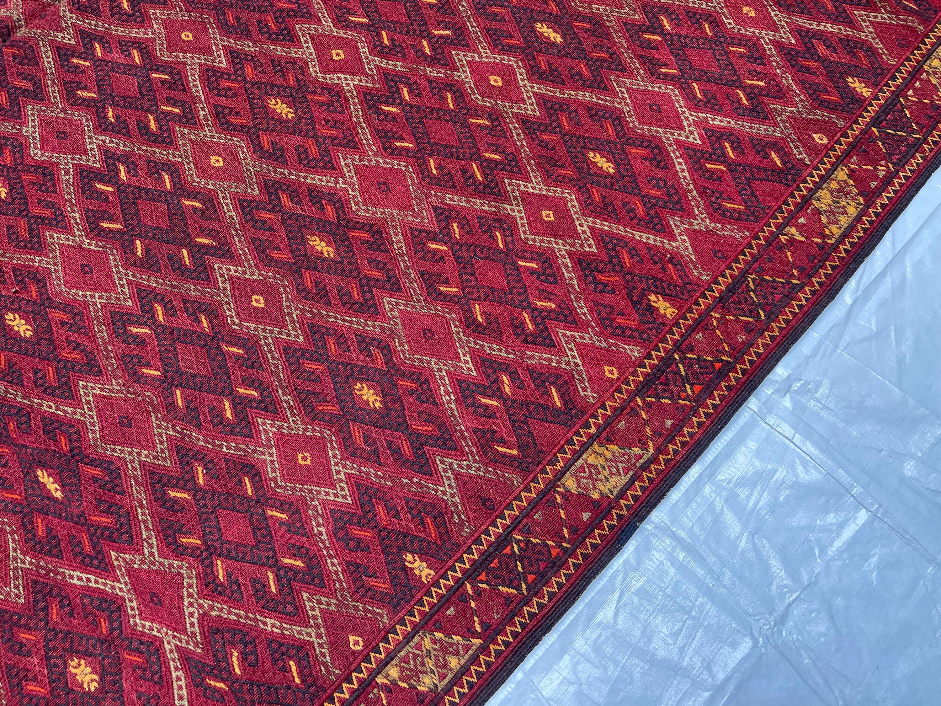 7x11 ft Antique 1950s Central Asian Turkmenistan Yamut Soumak Kilim Rug - Genuine Turkmen Bukhara Handmade Wool 7.5x11.10 ft - 225x360 cm