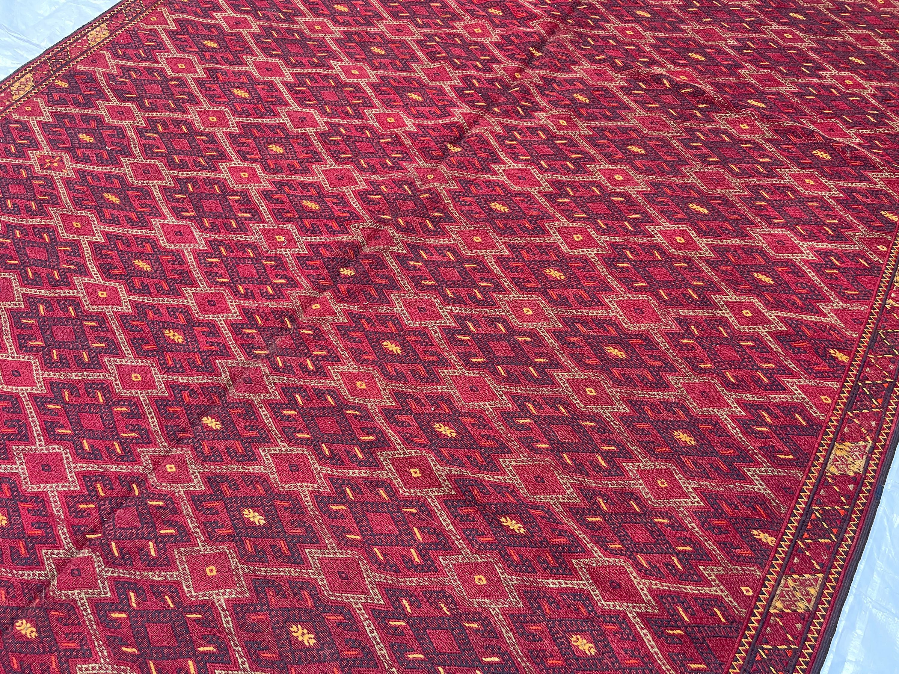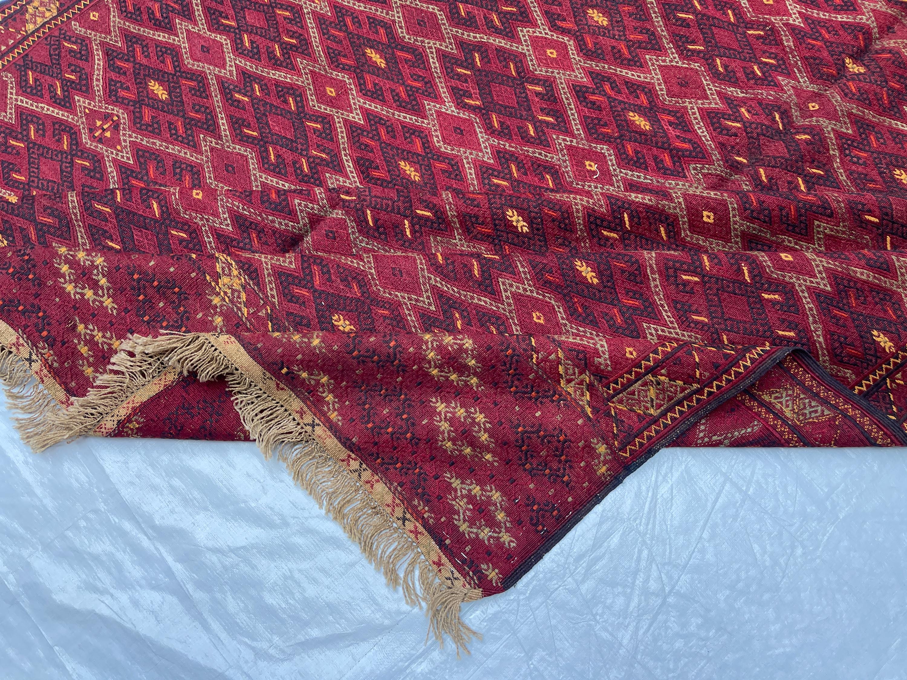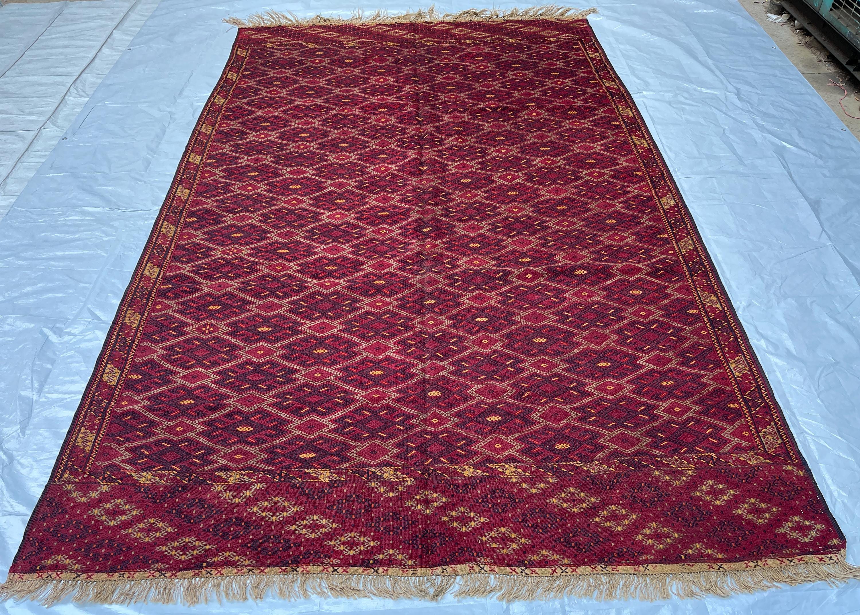 7x11 ft Antique 1950s Central Asian Turkmenistan Yamut Soumak Kilim Rug - Genuine Turkmen Bukhara Handmade Wool 7.5x11.10 ft - 225x360 cm
