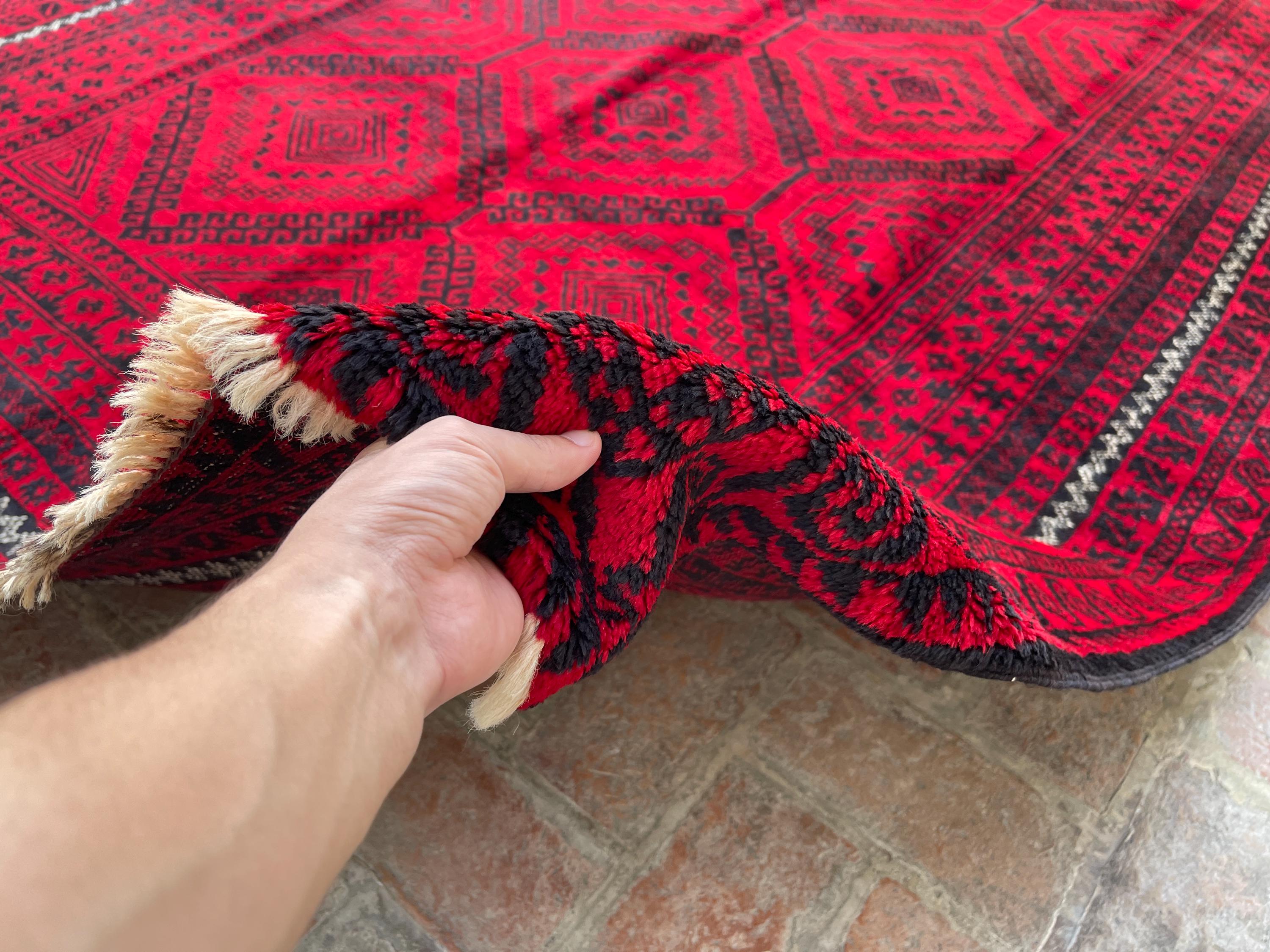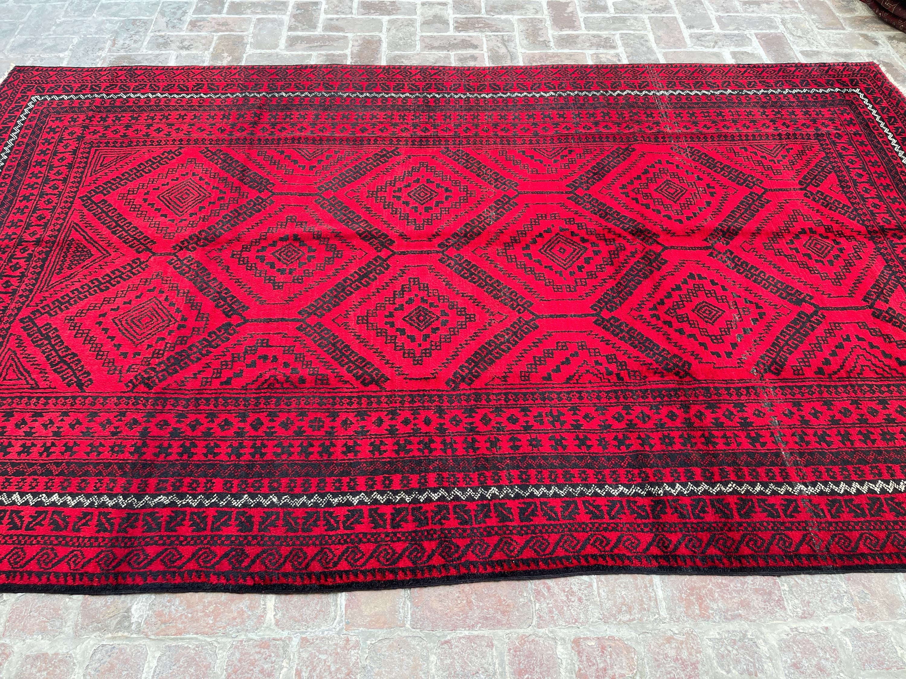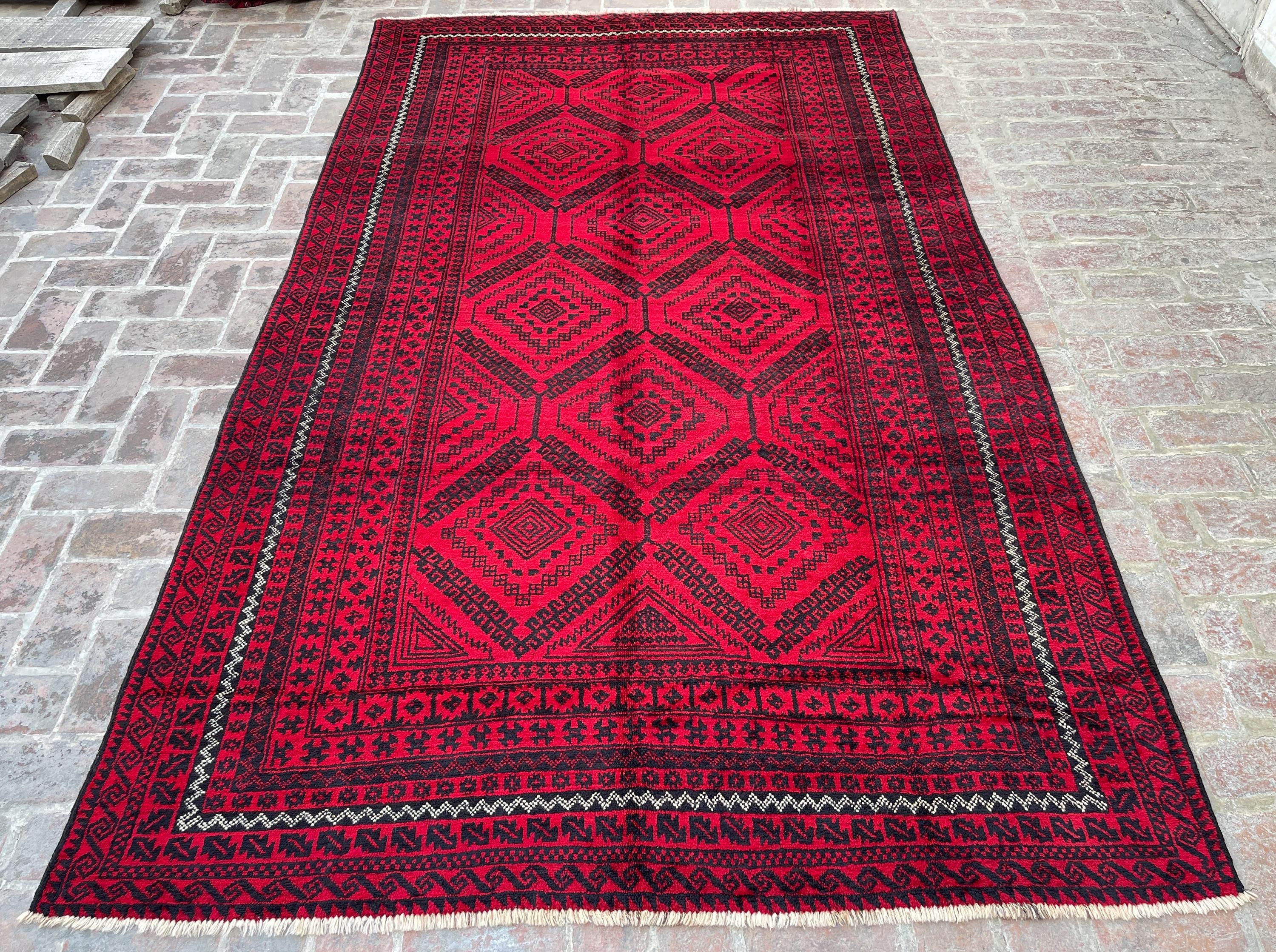 6x11 Red Handmade Afghan Large Rug - Tribal Vintage Long Baluch Rug - Hand Knotted Oriental Handspun Wool Rug - Turkmen Caucasian Area Rug
