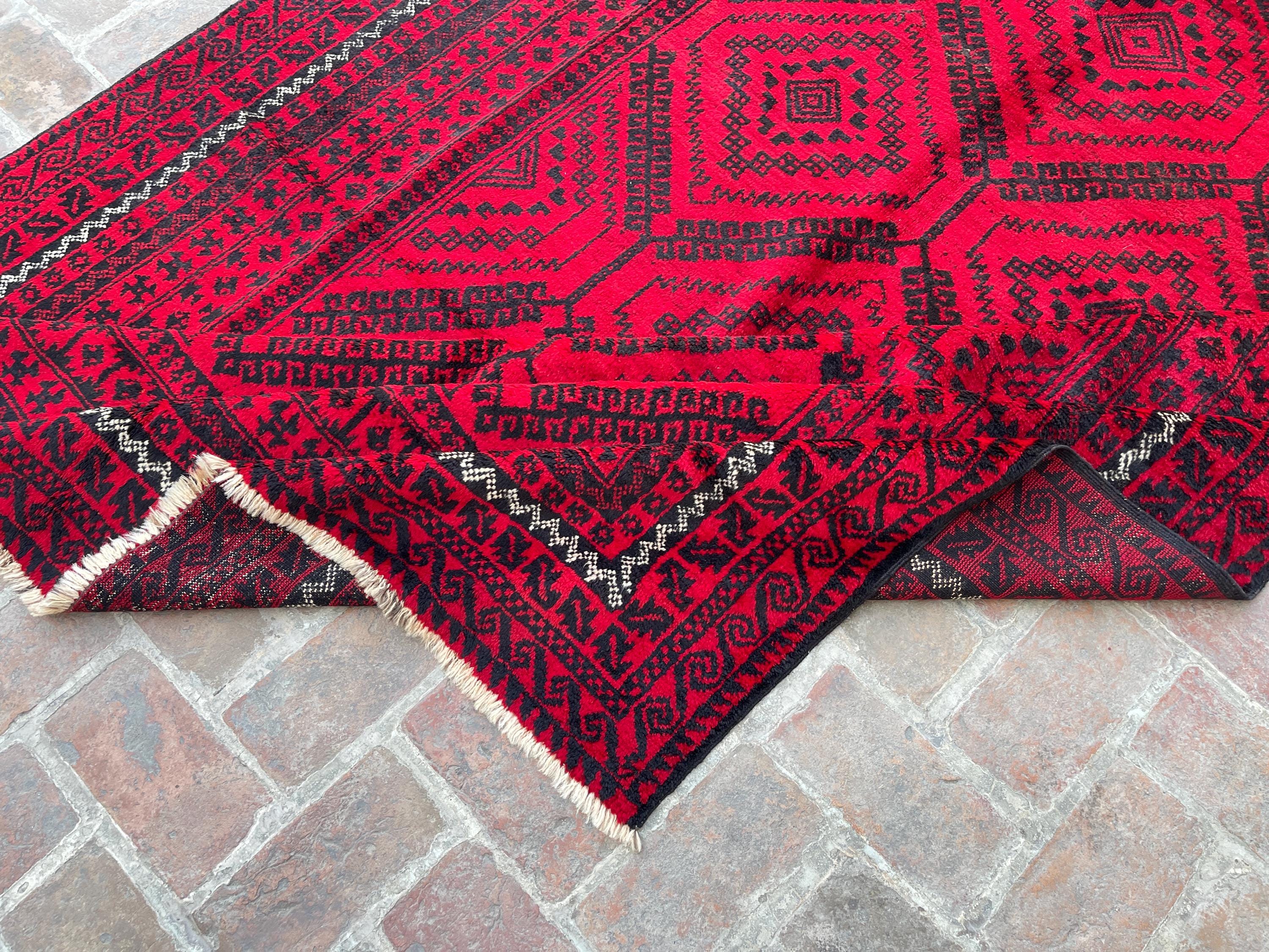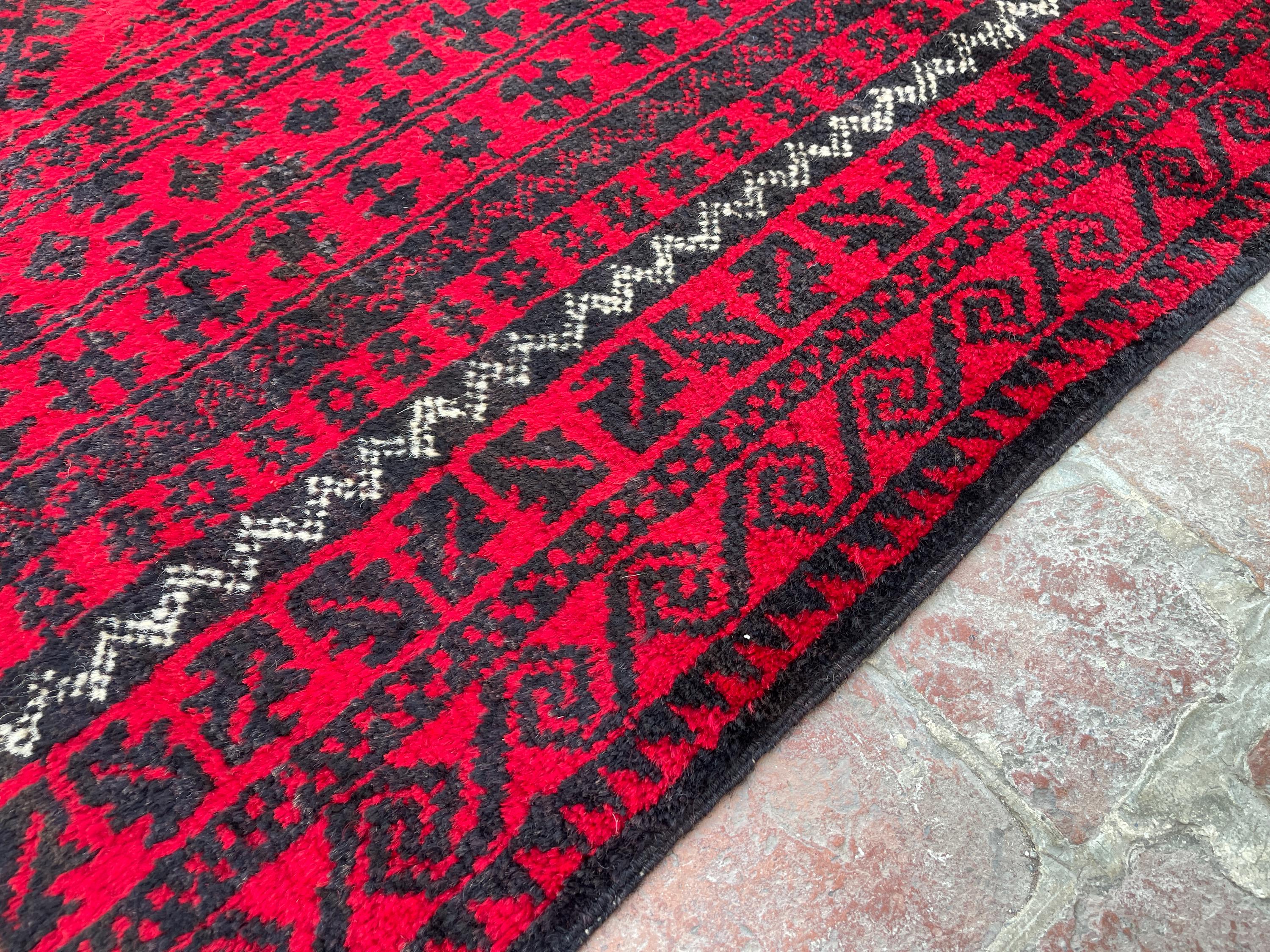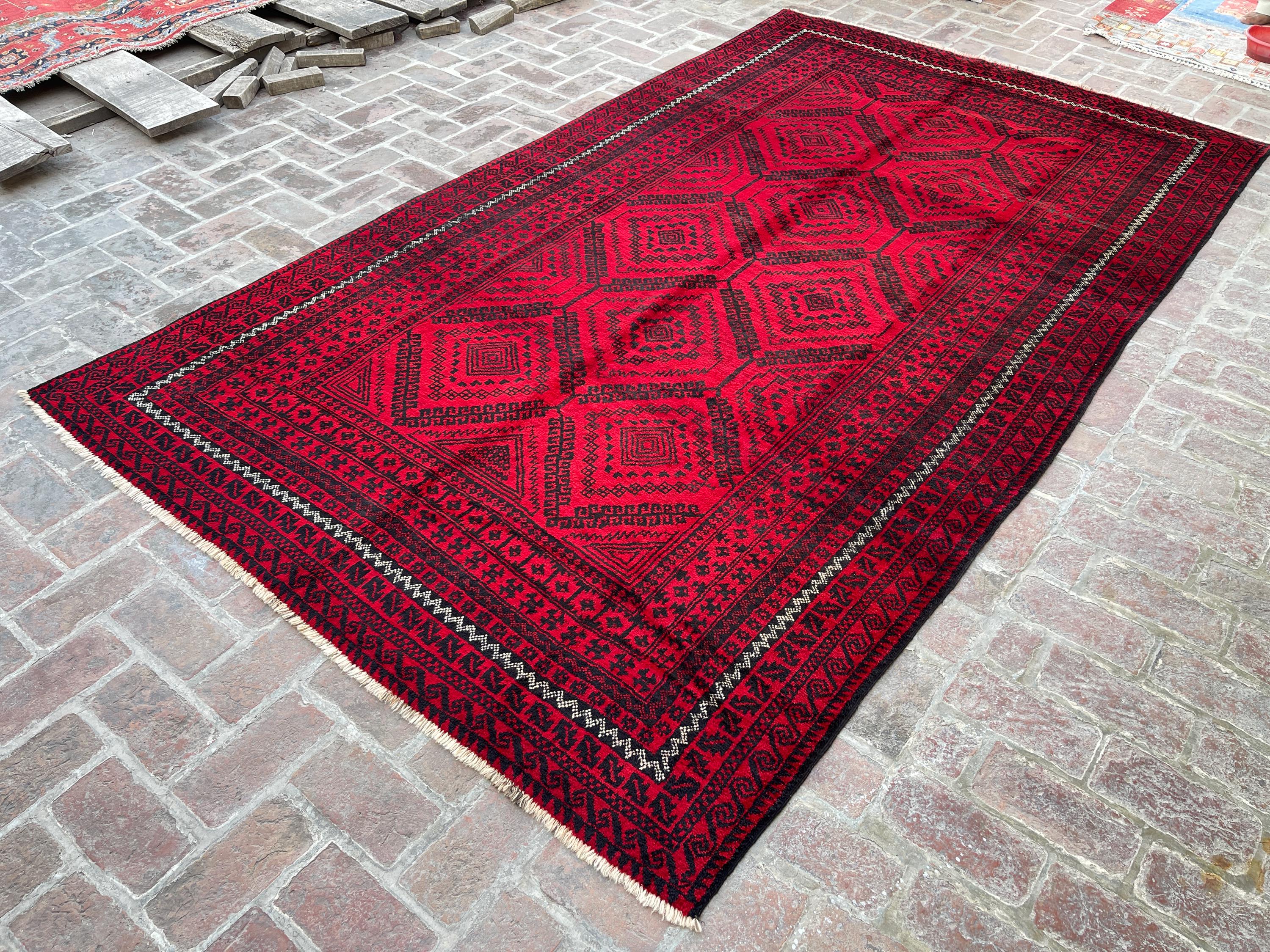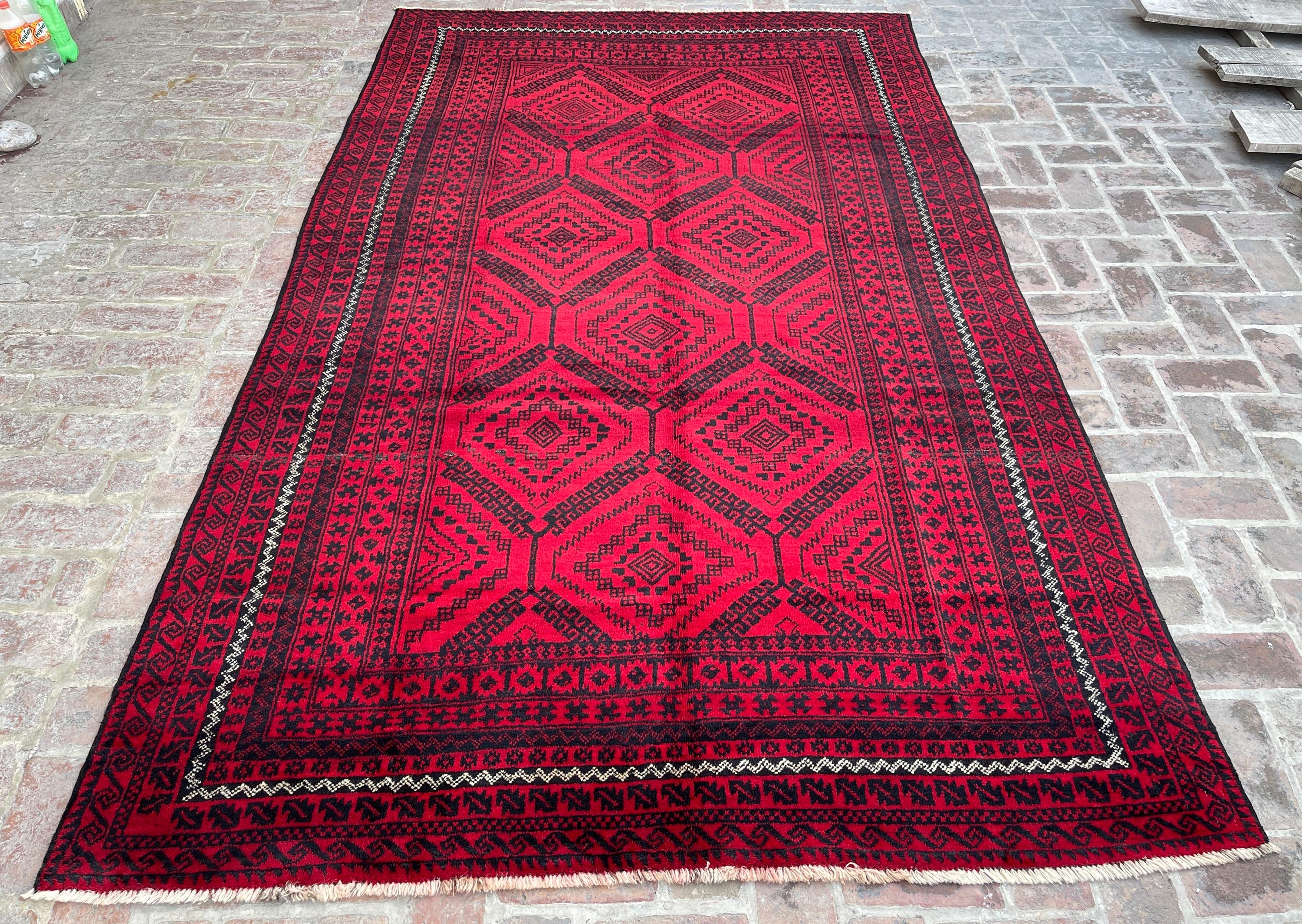 6x11 Red Handmade Afghan Large Rug - Tribal Vintage Long Baluch Rug - Hand Knotted Oriental Handspun Wool Rug - Turkmen Caucasian Area Rug