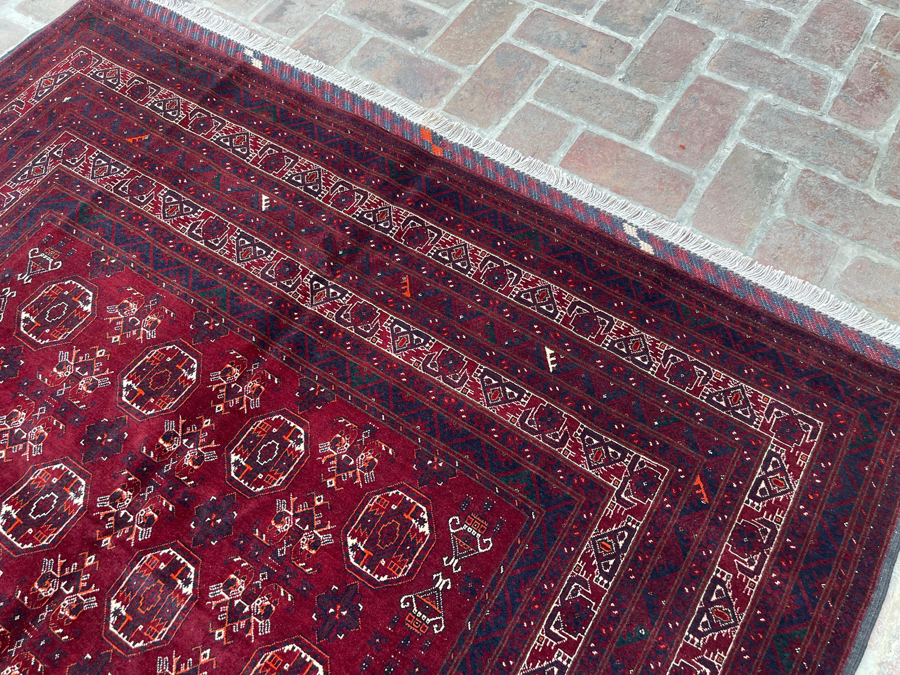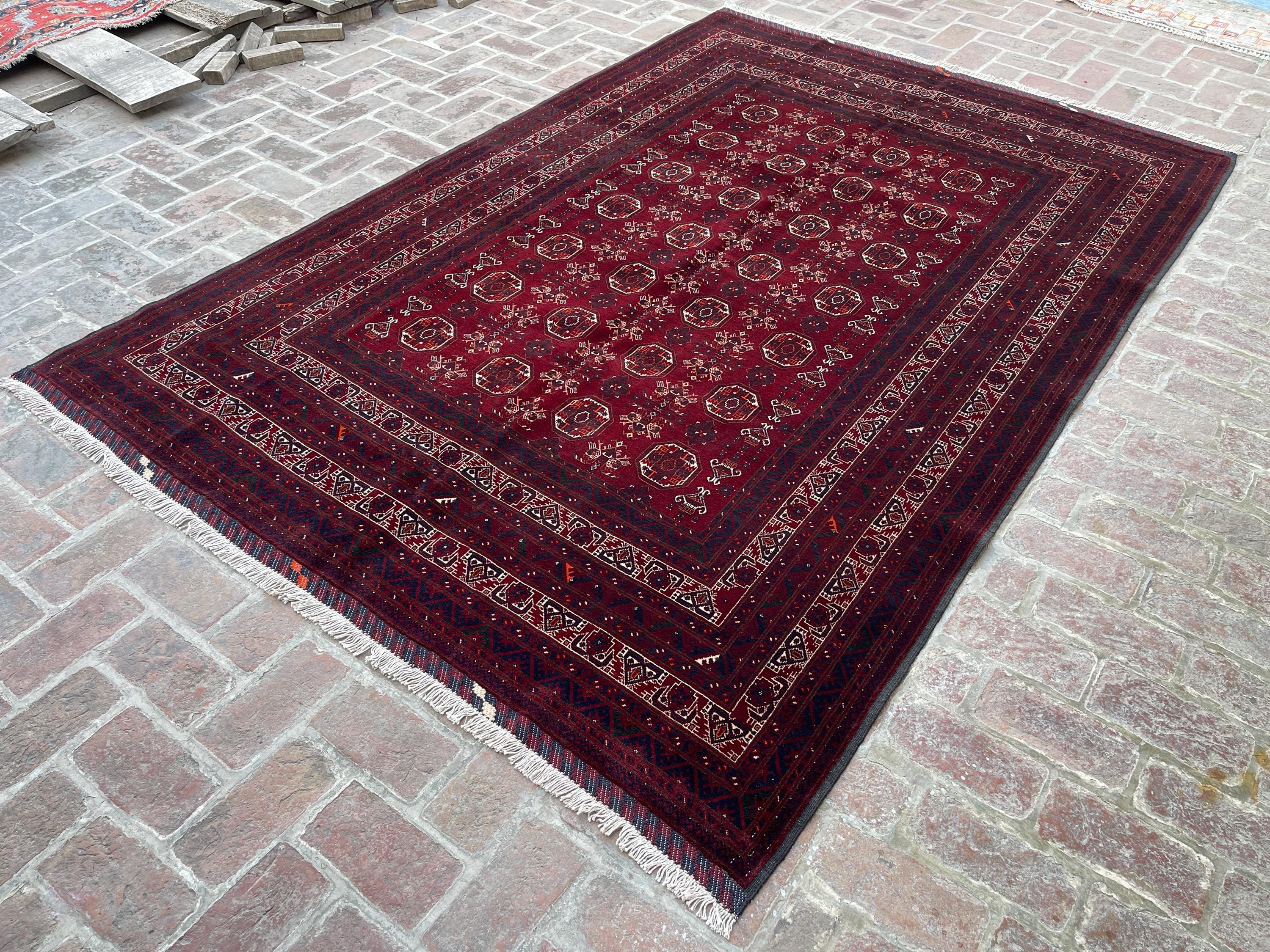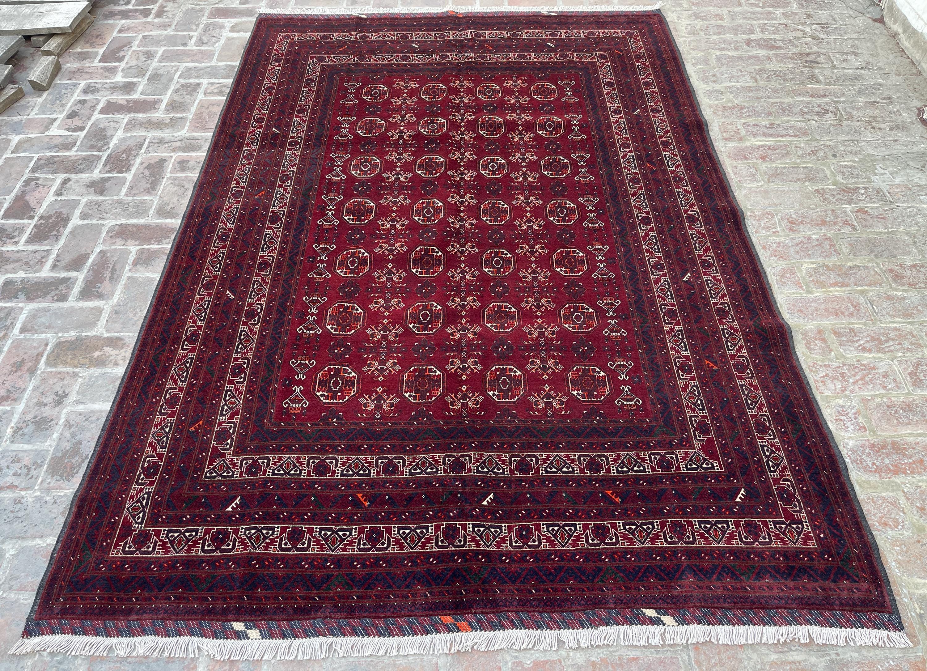 7x10 Rich Red Afghan Top Quality Waziri Rug - Authentic Hand Knotted Afghan Turkmen Fine Kunduz Rug - Traditional Afghan Oriental Wool Rug