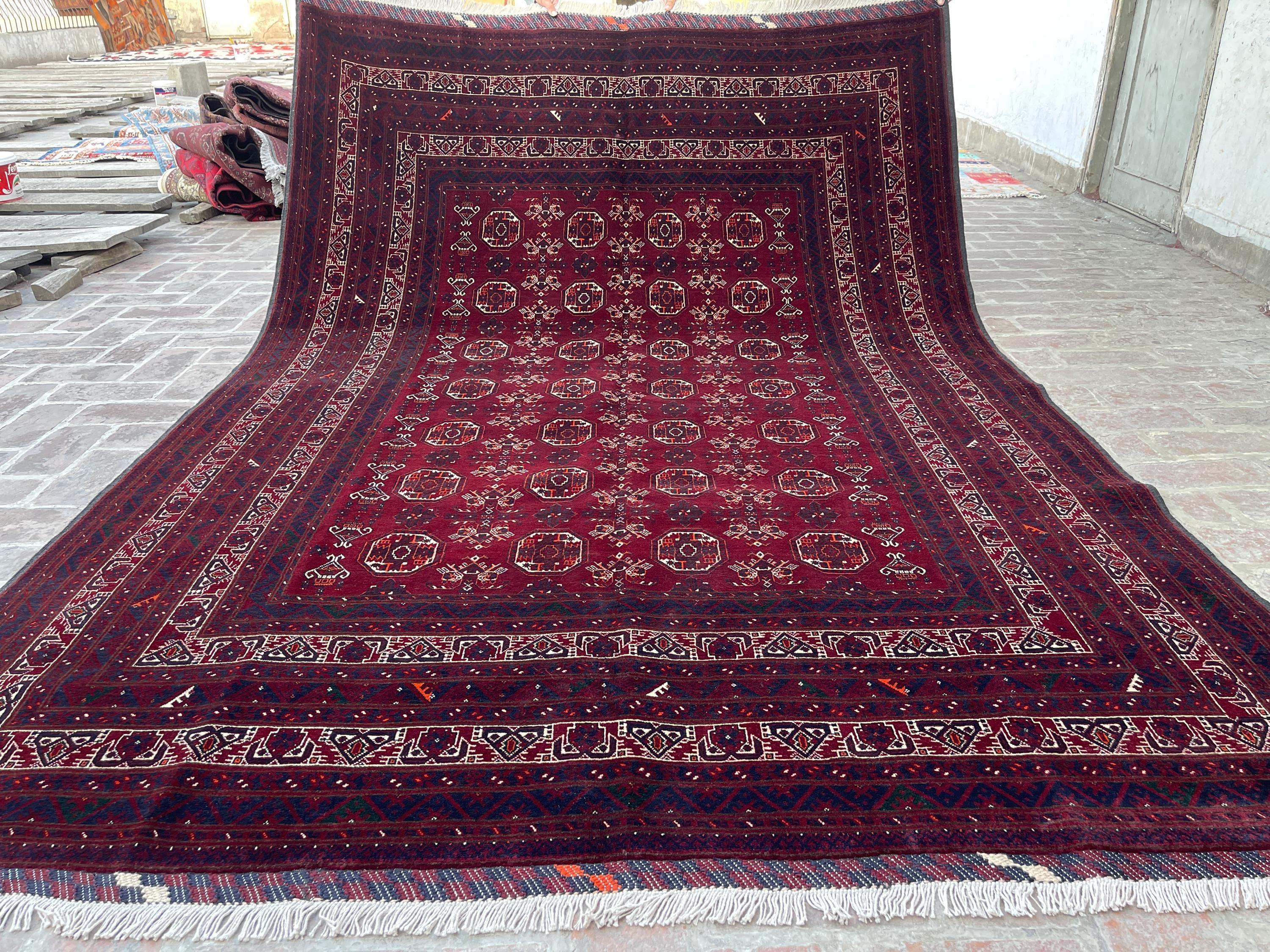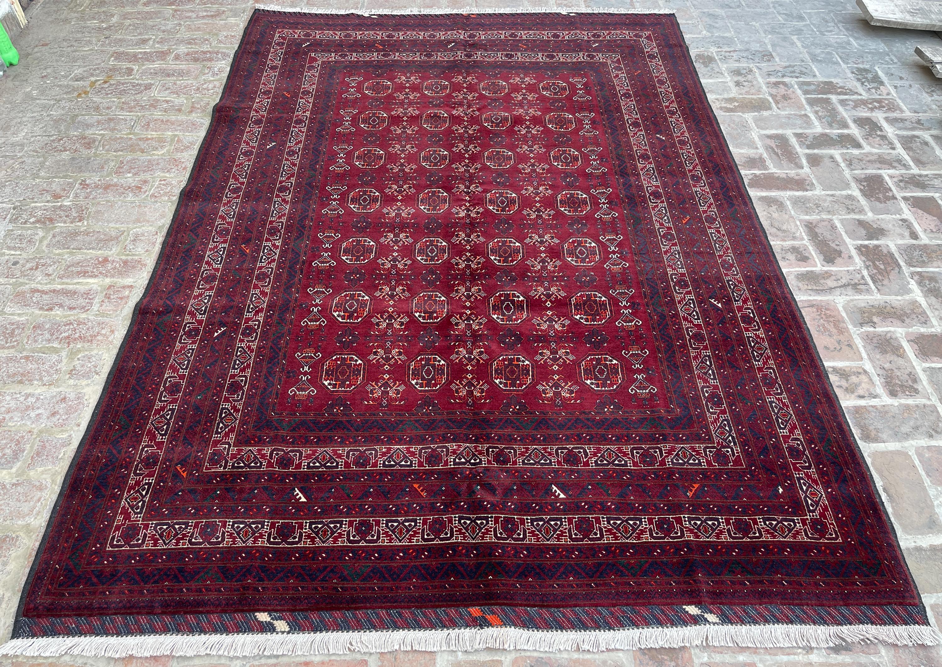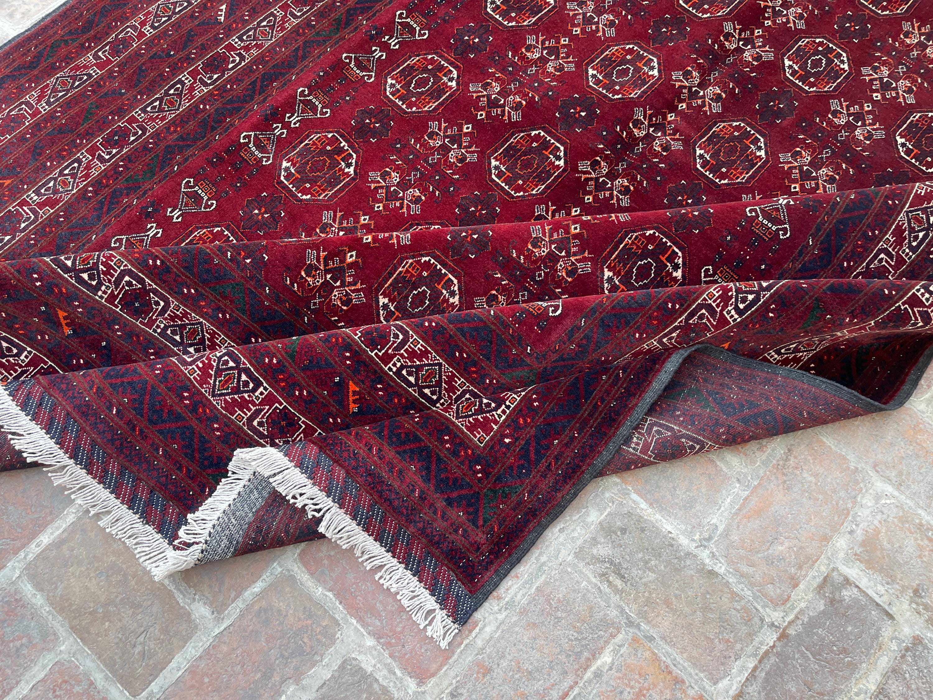 7x10 Rich Red Afghan Top Quality Waziri Rug - Authentic Hand Knotted Afghan Turkmen Fine Kunduz Rug - Traditional Afghan Oriental Wool Rug