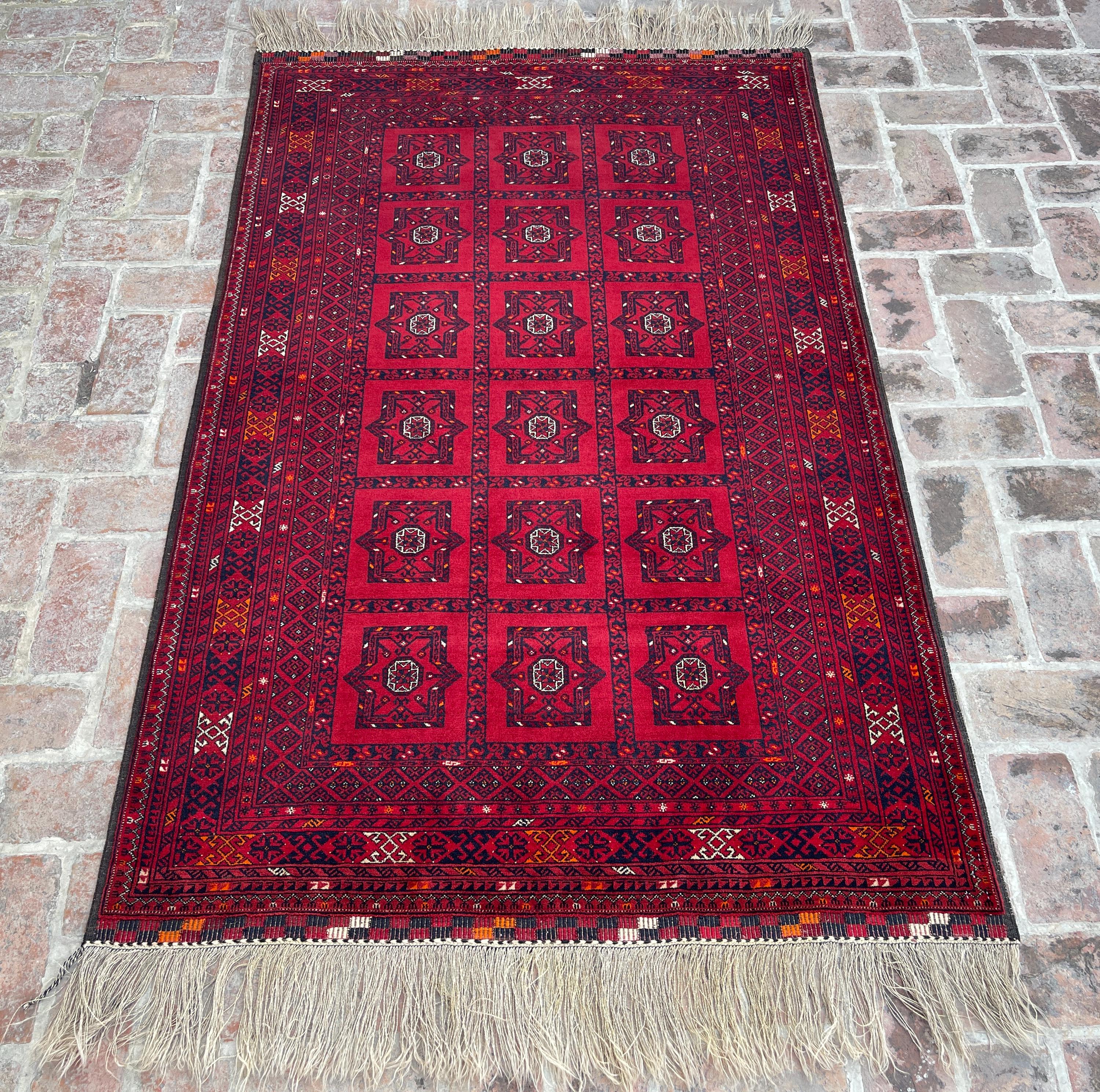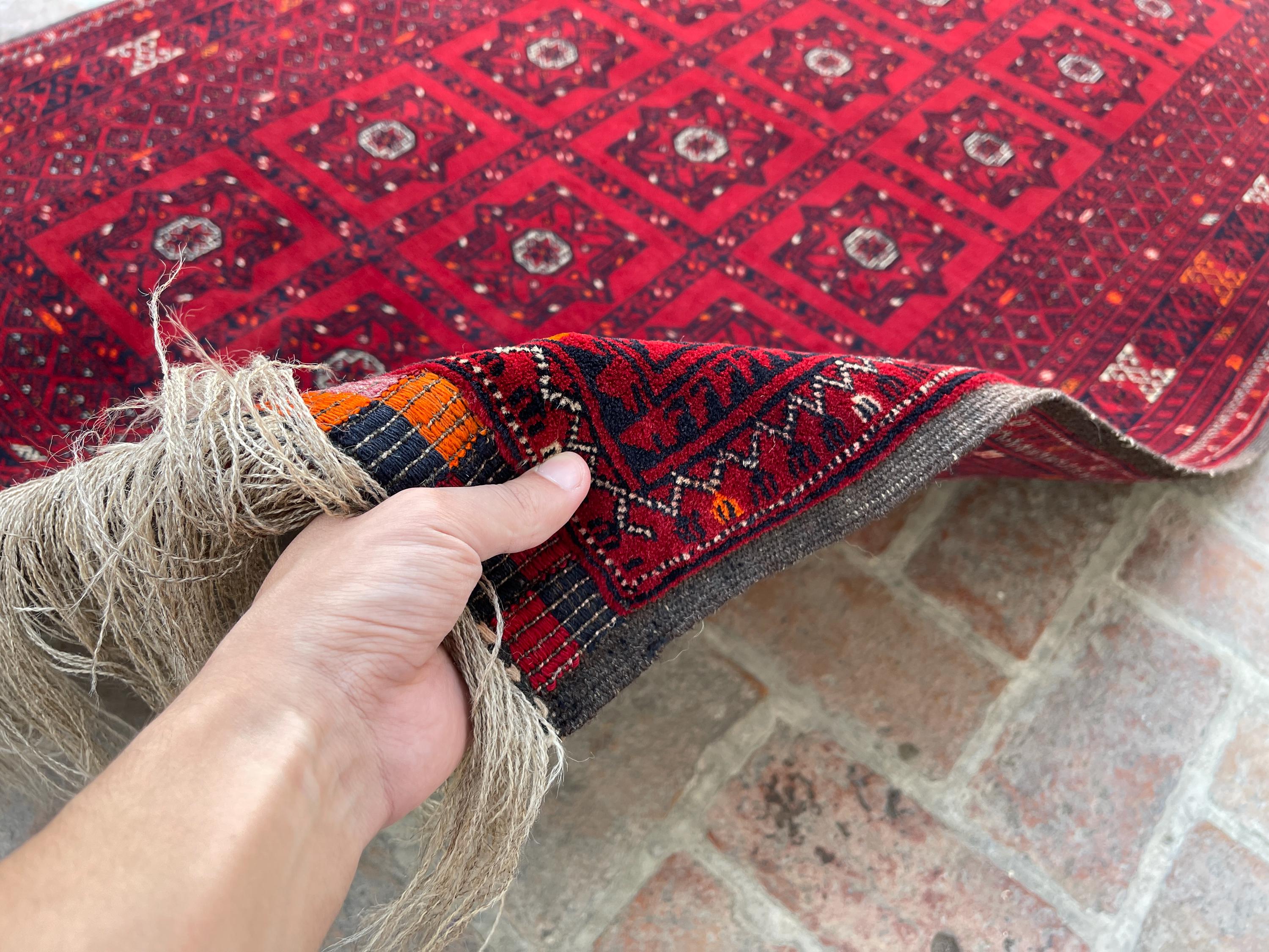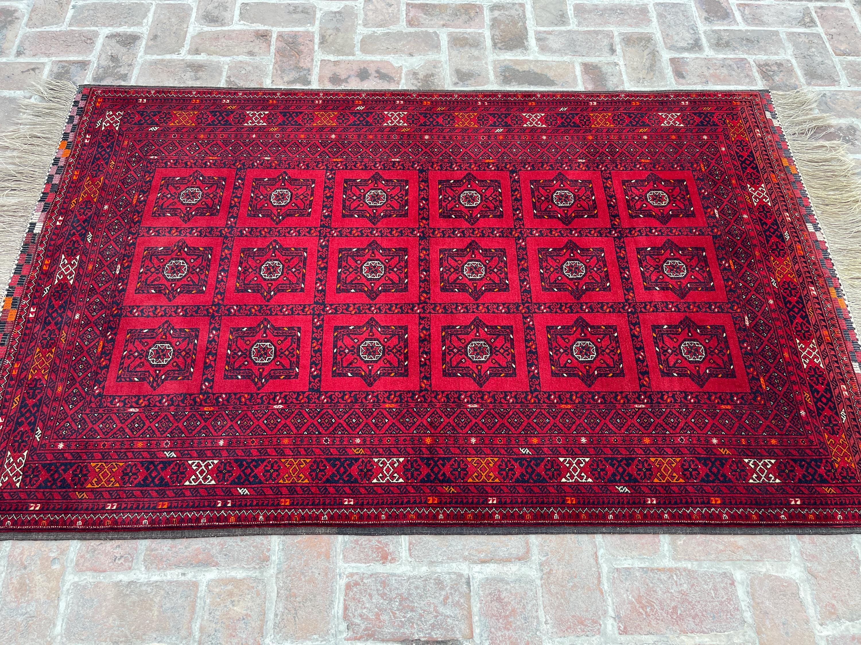 4x7 Red Antique Top Quality Afghan Rug - Collecter's Piece Hand Knotted Kunduz Fine Carpet - Turkmen Bukhara Chimcha Chanaq Pattern Area Rug
