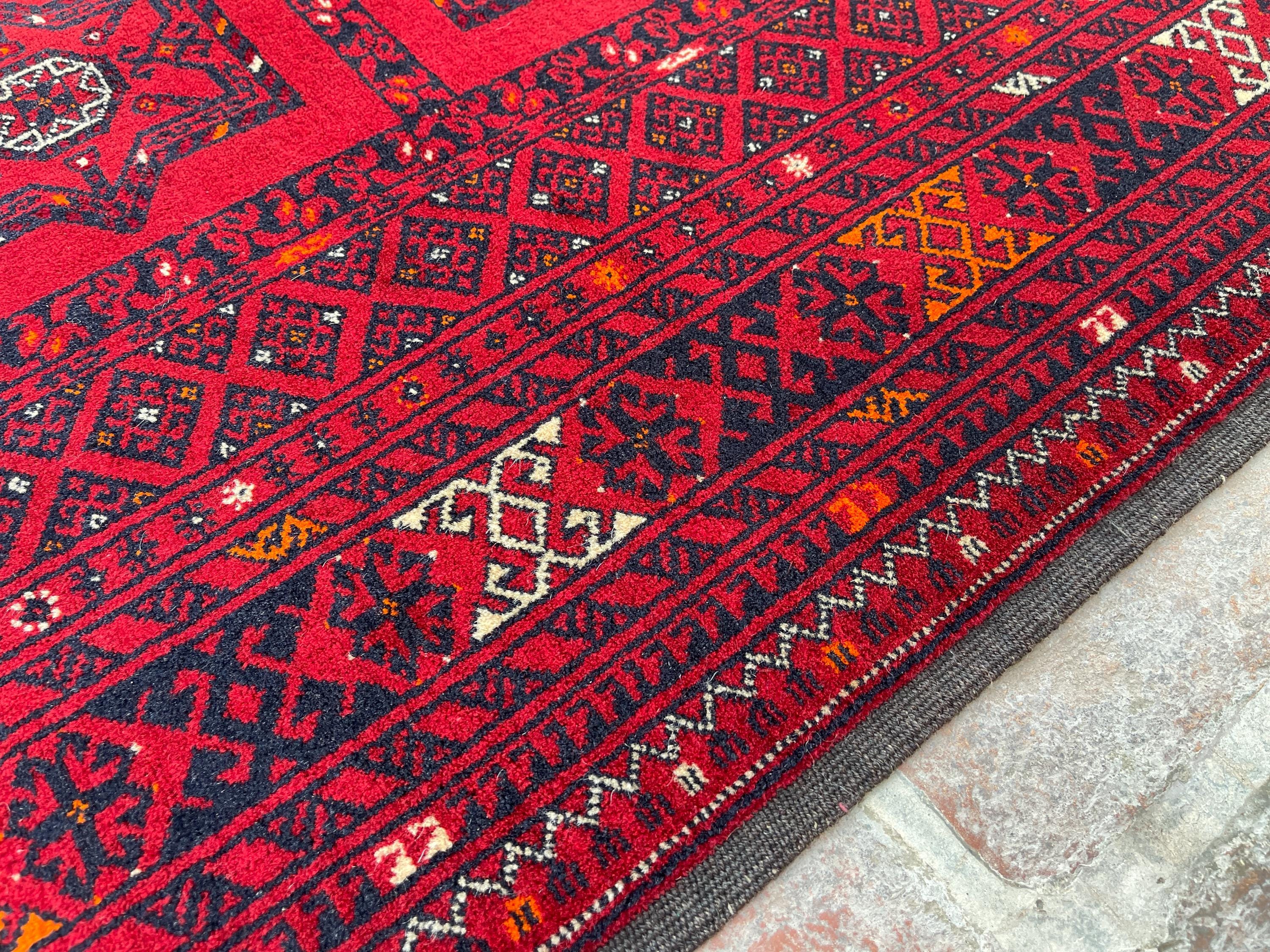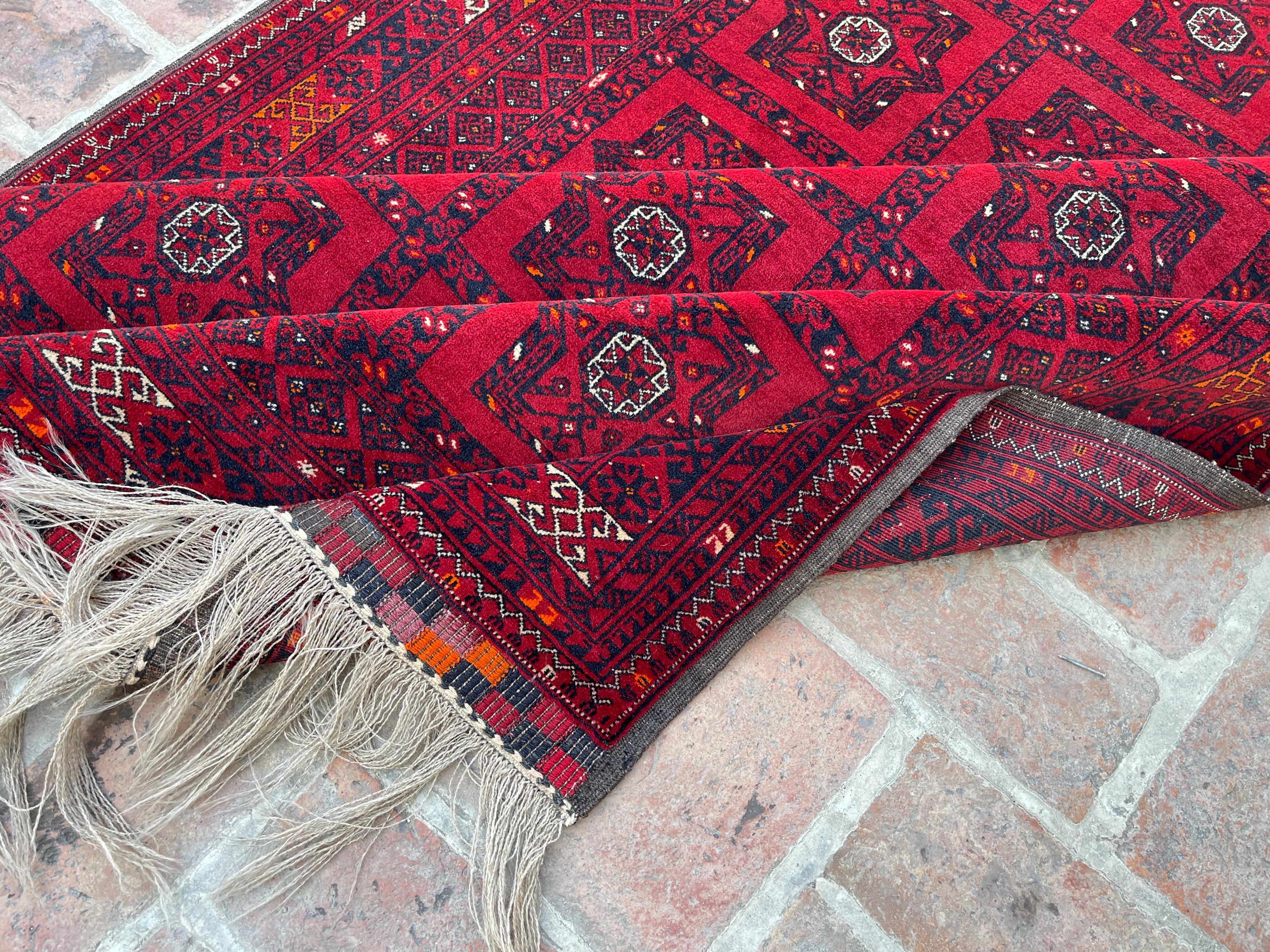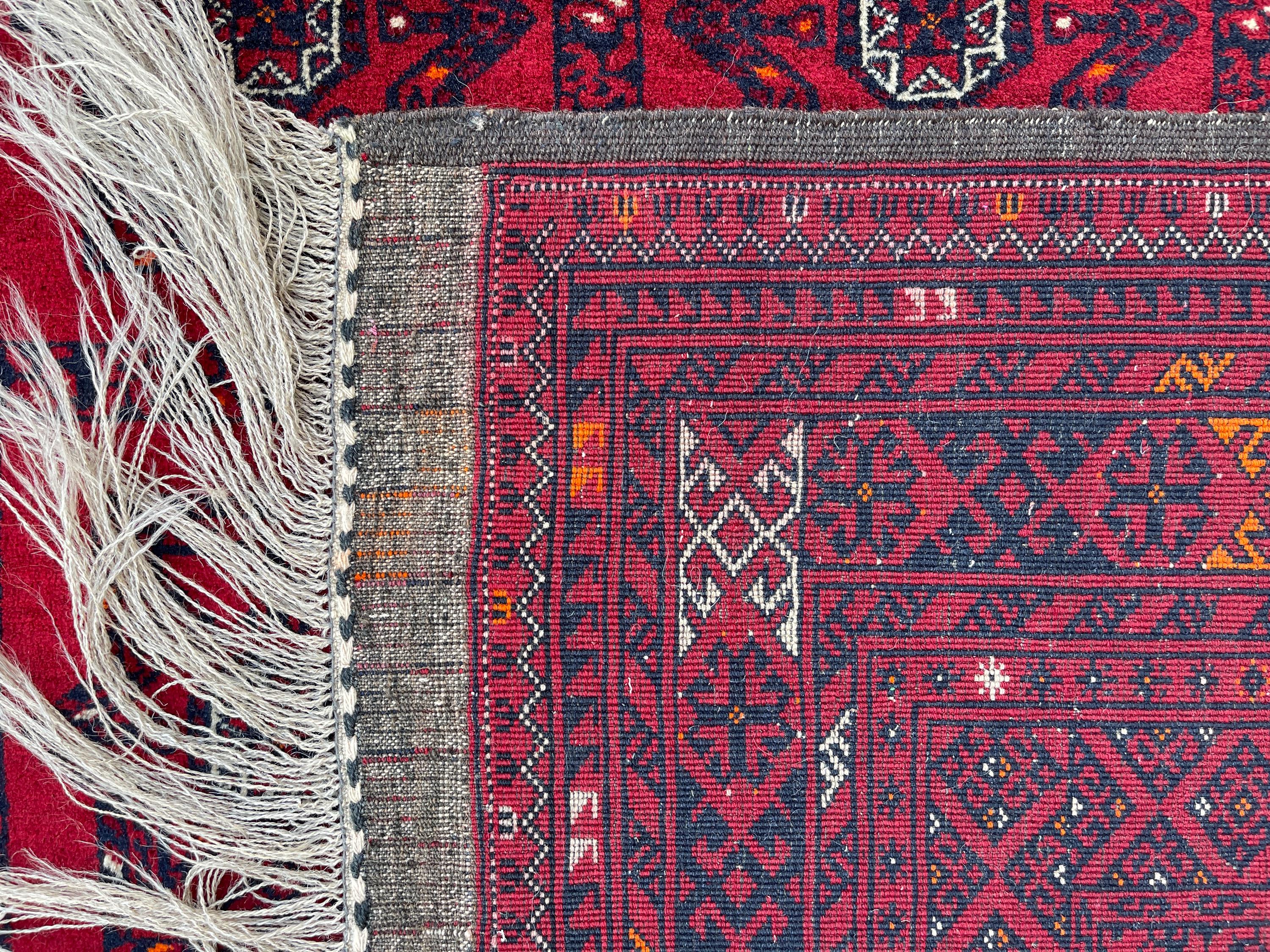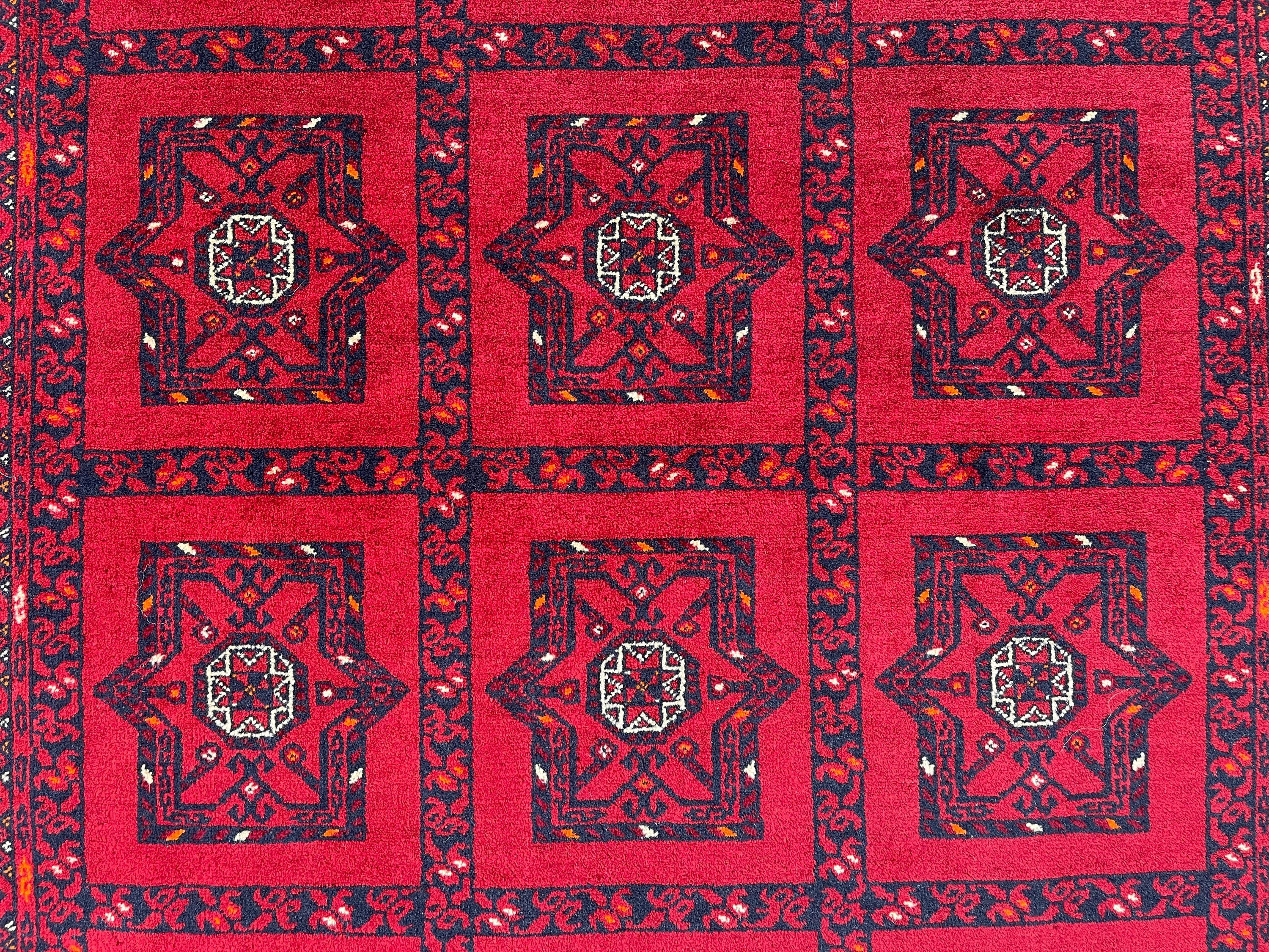 4x7 Red Antique Top Quality Afghan Rug - Collecter's Piece Hand Knotted Kunduz Fine Carpet - Turkmen Bukhara Chimcha Chanaq Pattern Area Rug