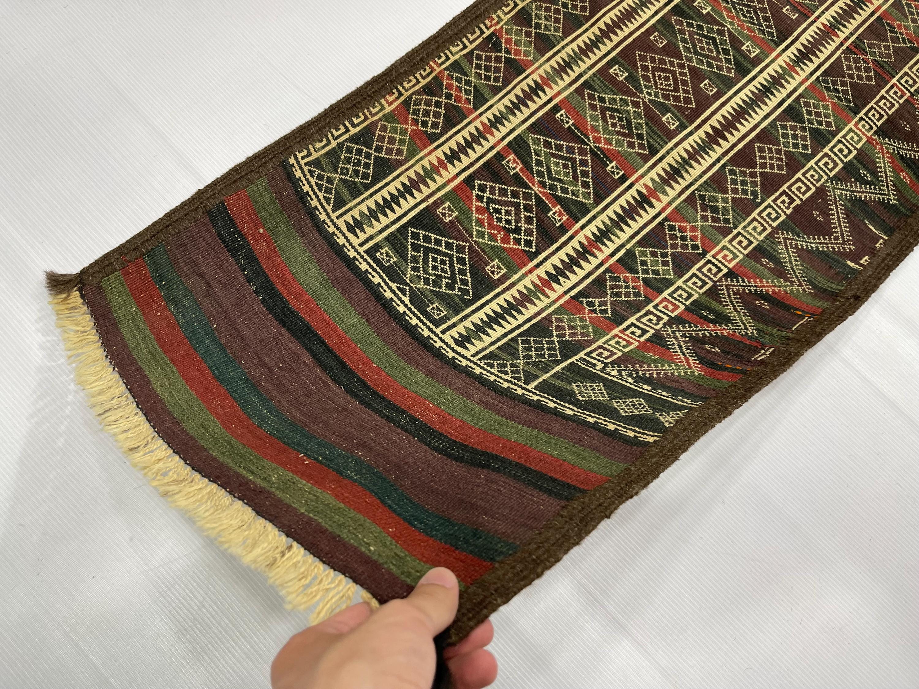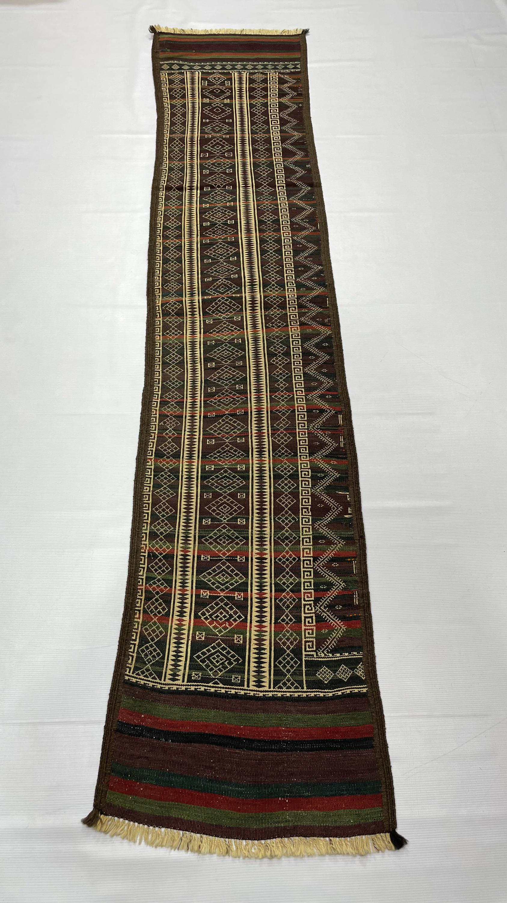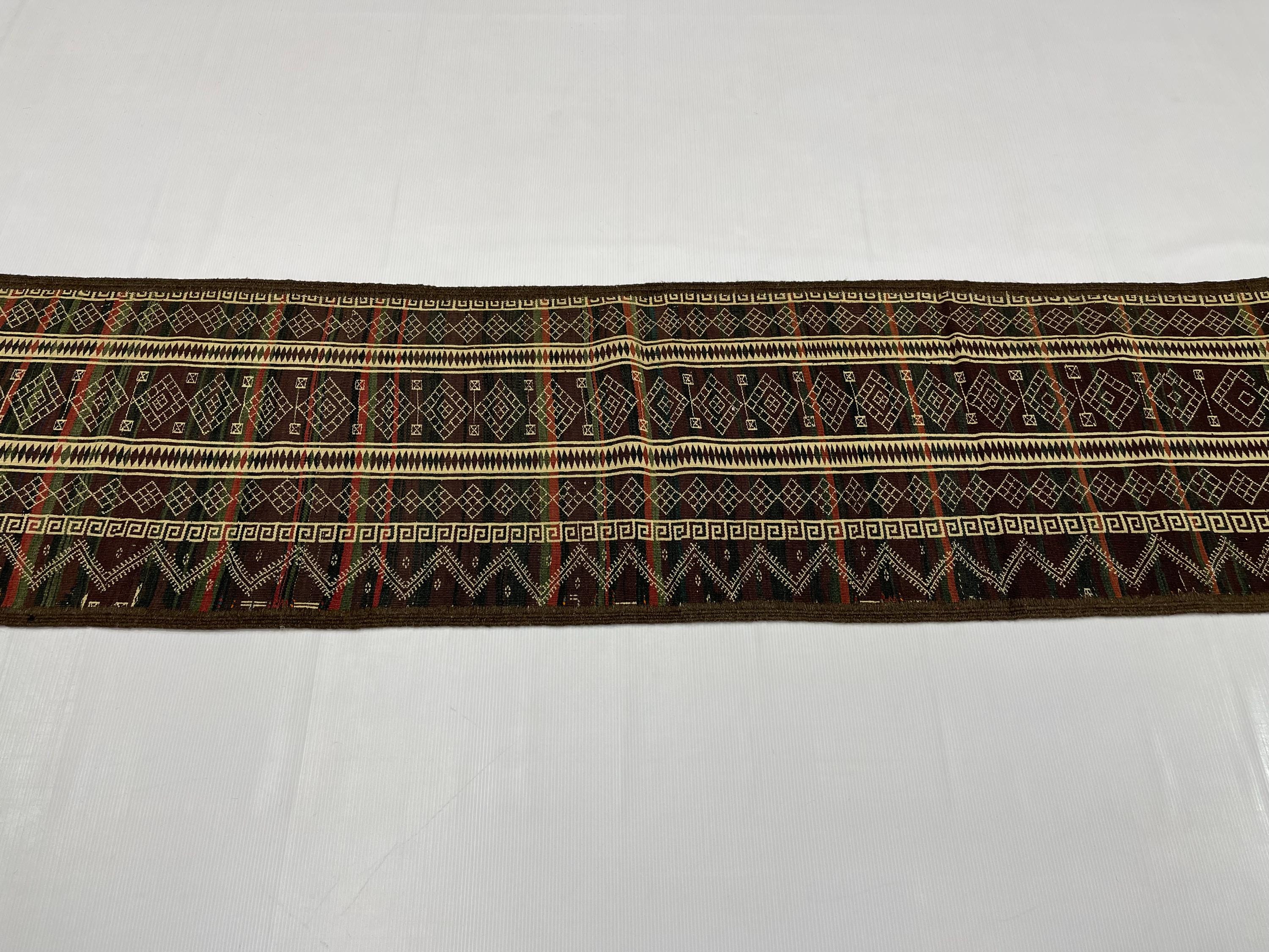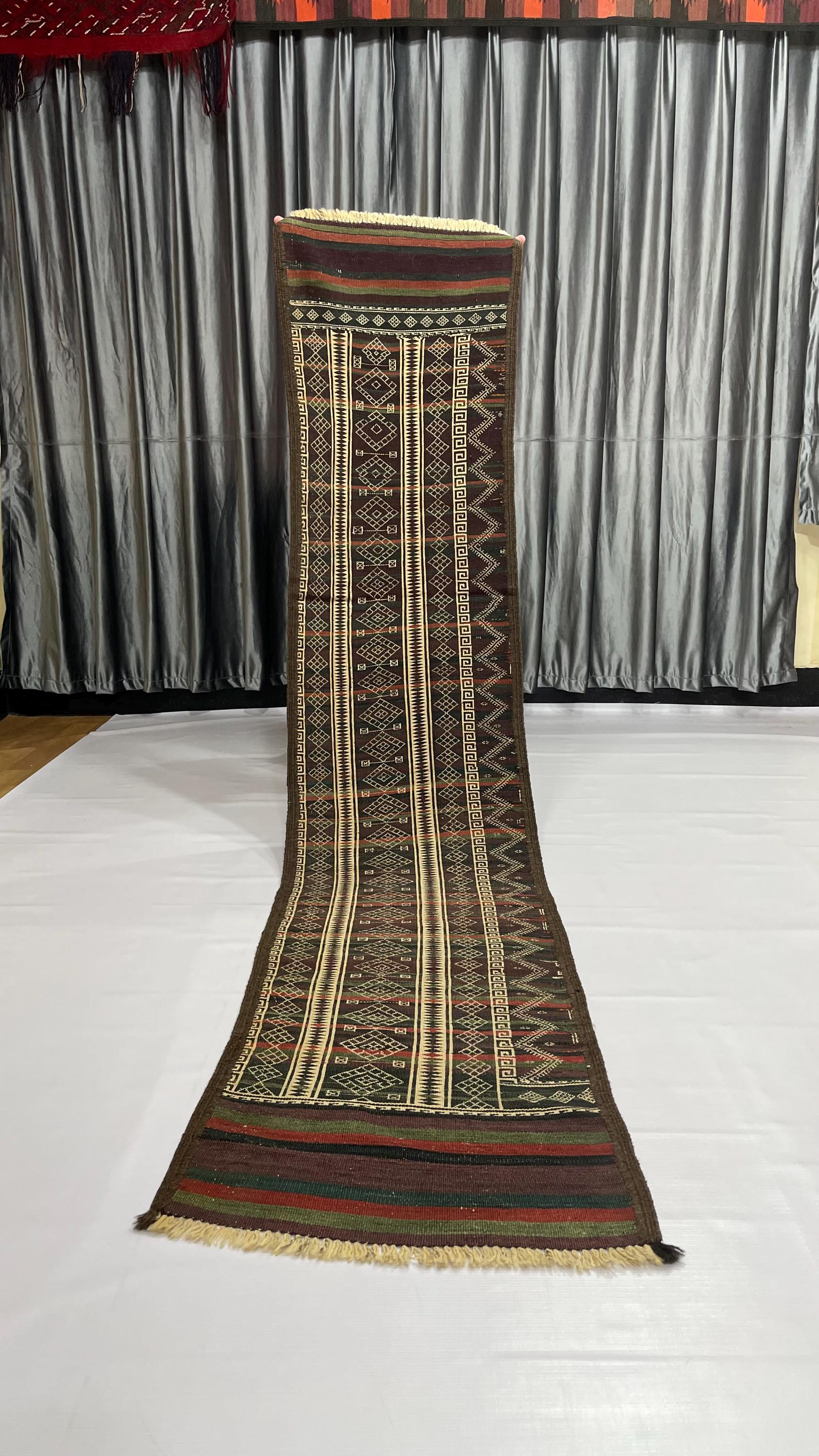 WholeSale Price 2x8 Old Turkmen Soumak Kilim Rug, Baluch Kilim Wool Soumak Embroidery Antique Tribal Rug, Turkmen Hallway Runner 1.7x8.2 ft