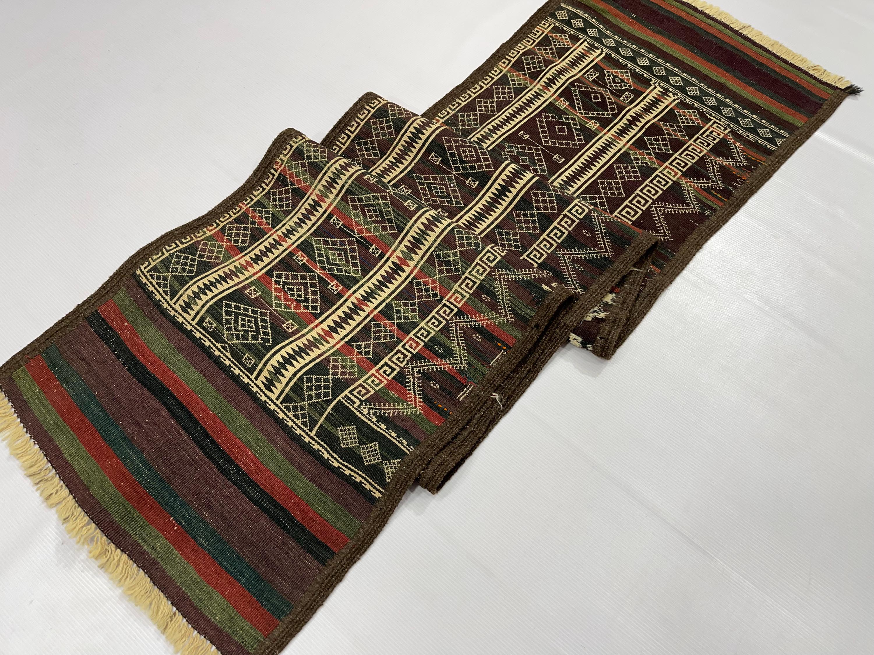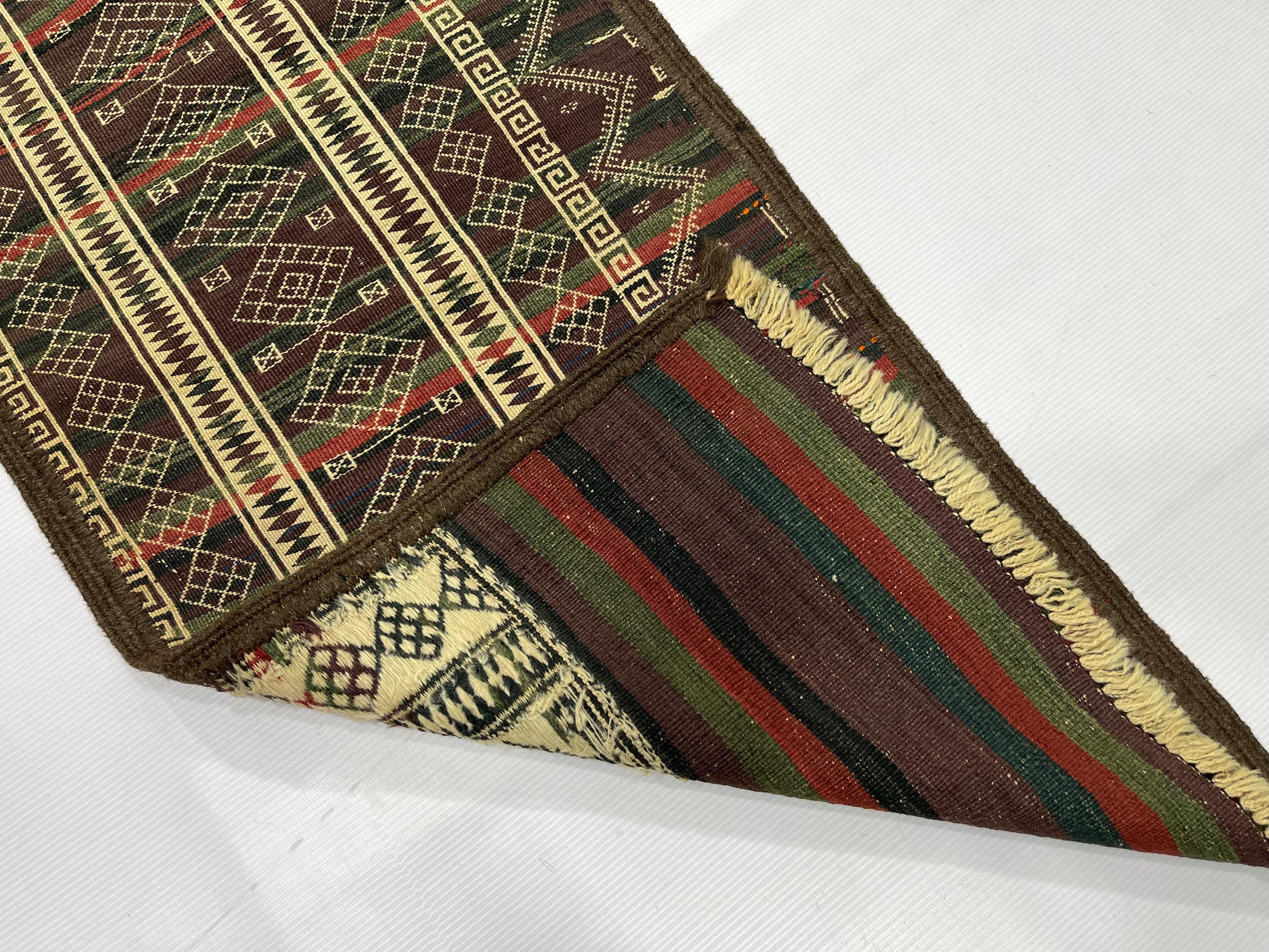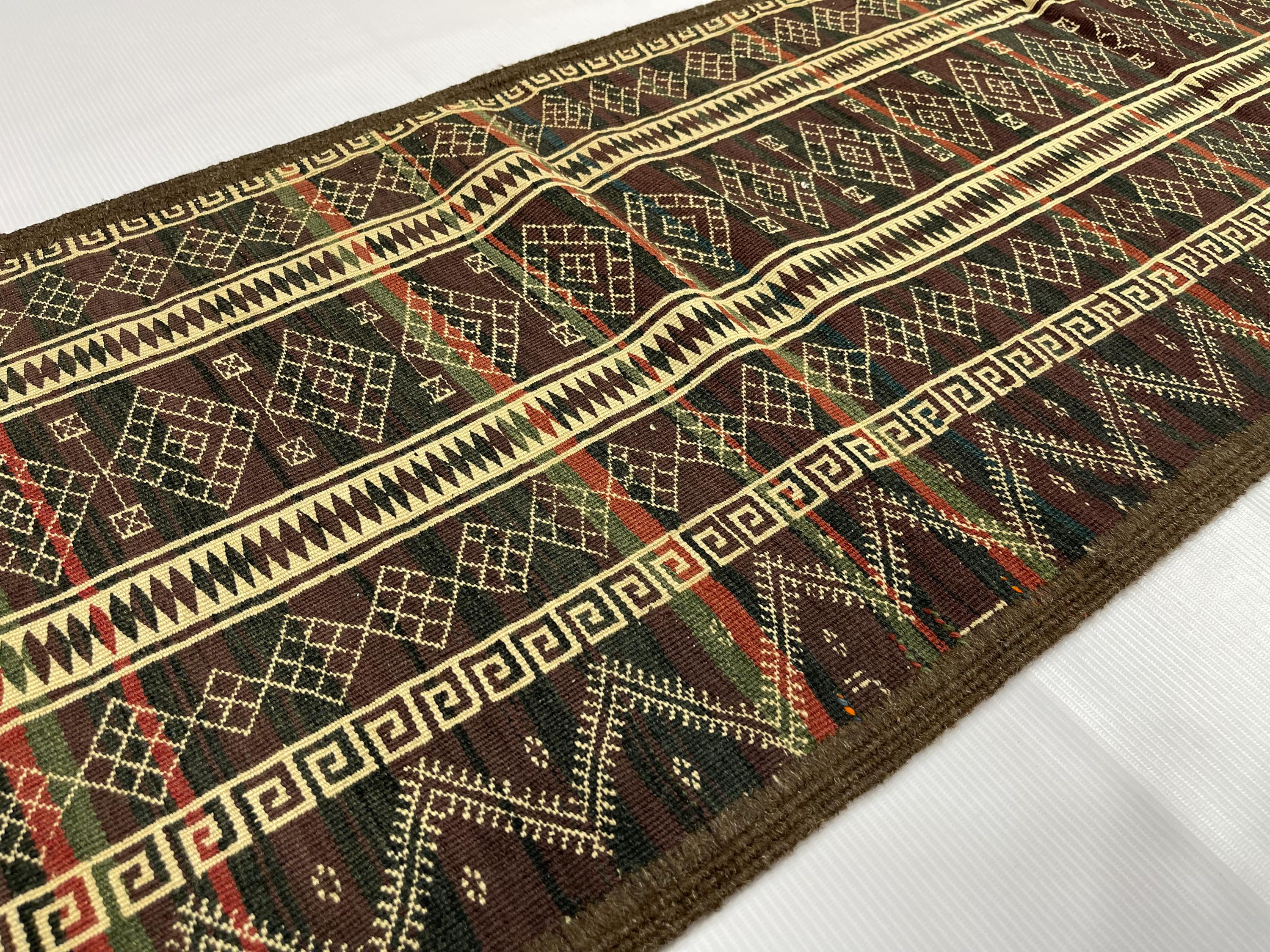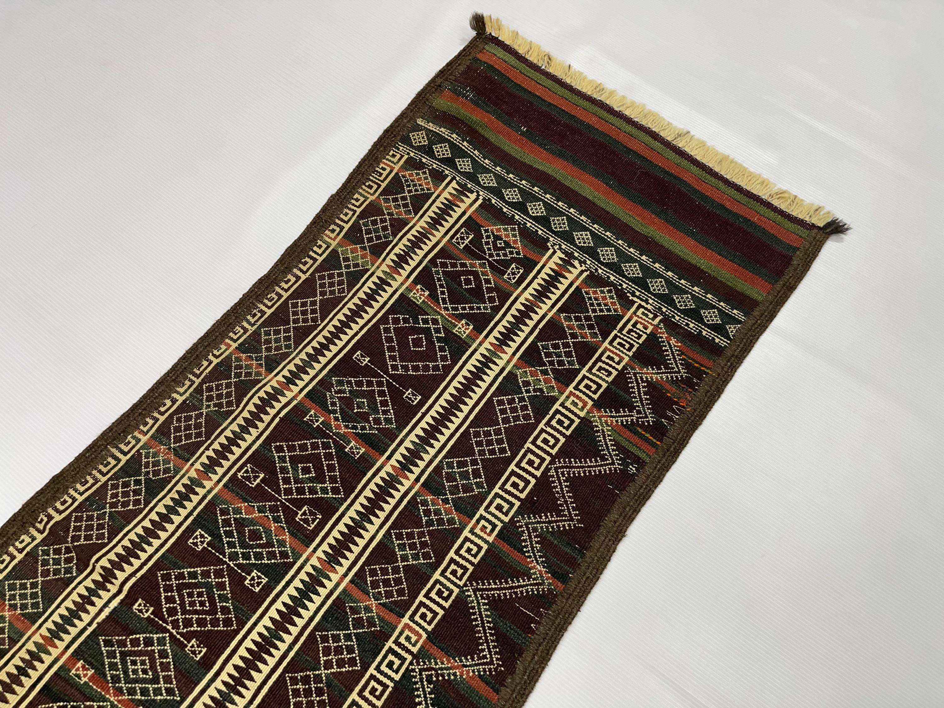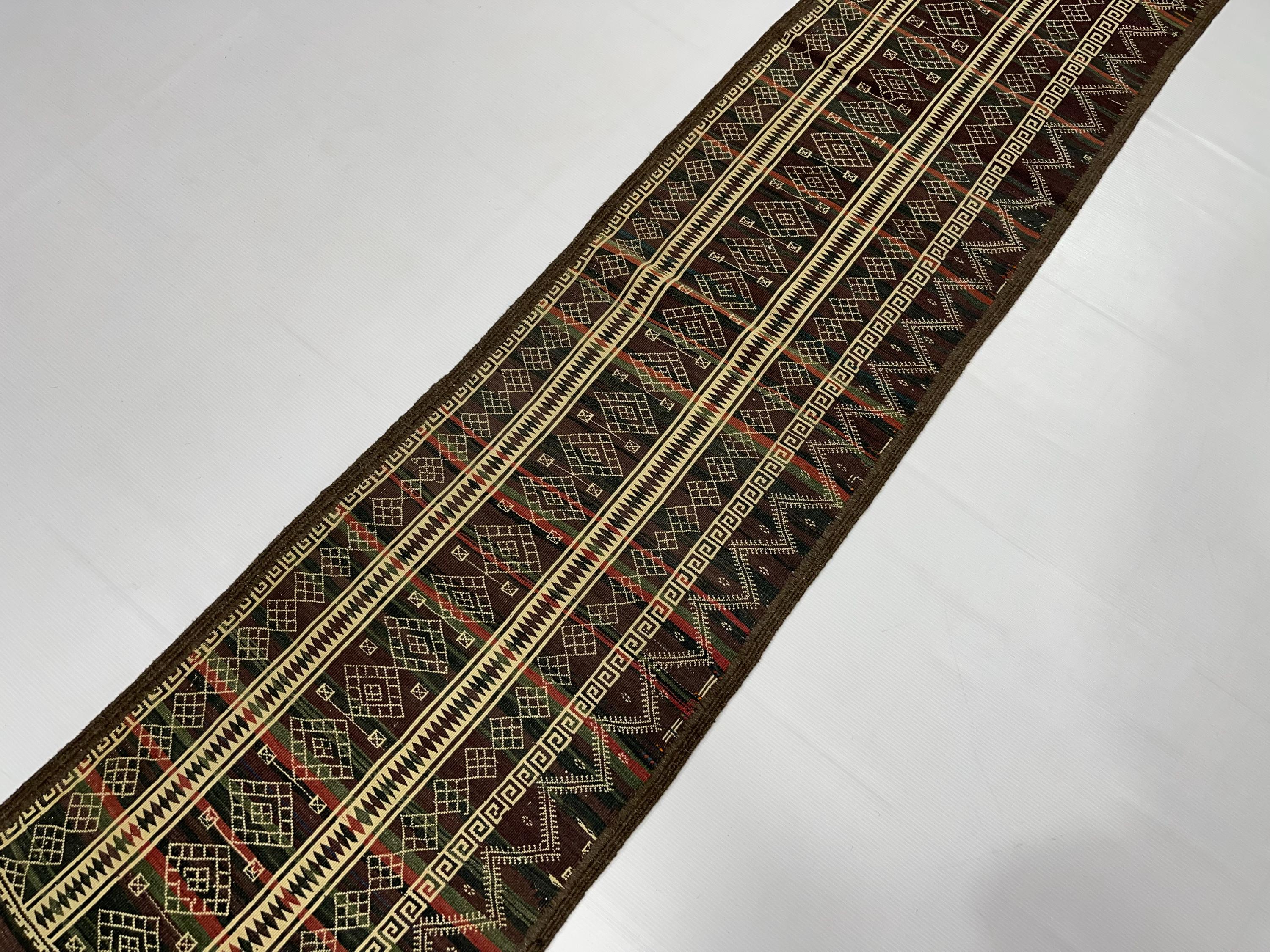 WholeSale Price 2x8 Old Turkmen Soumak Kilim Rug, Baluch Kilim Wool Soumak Embroidery Antique Tribal Rug, Turkmen Hallway Runner 1.7x8.2 ft