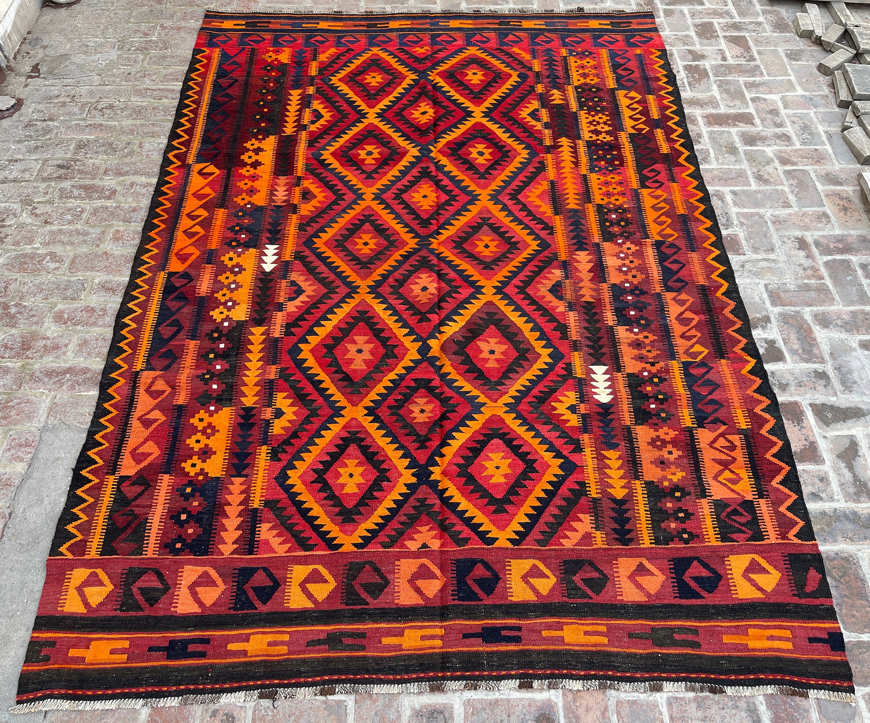8x11 Large Afghan Tribal Organic Natural Veg Dyes Wool Area Rug - Stunning Vintage Old Turkmen Handmade Kilim Rug - Living Room Rug 7'8x11'4