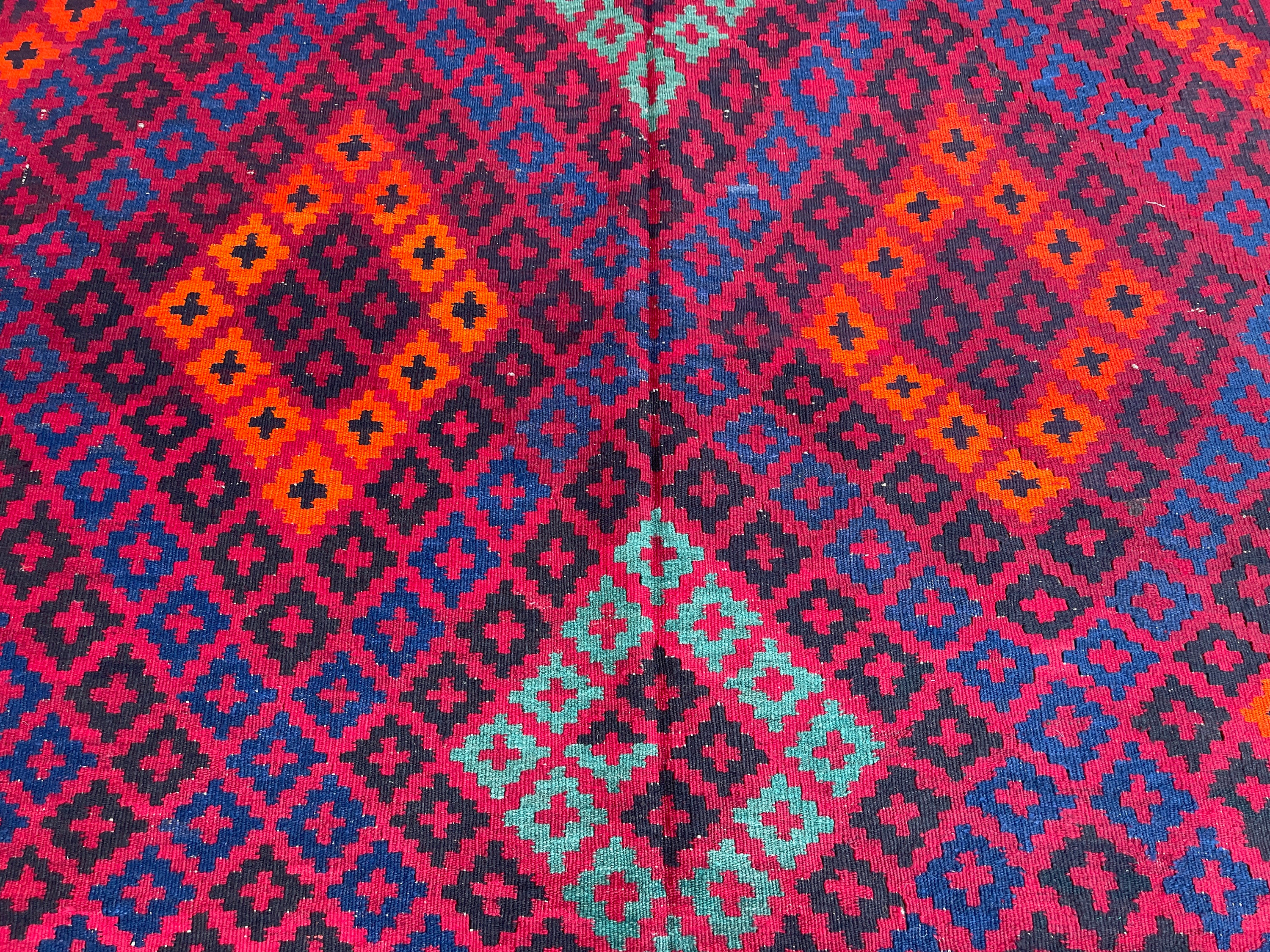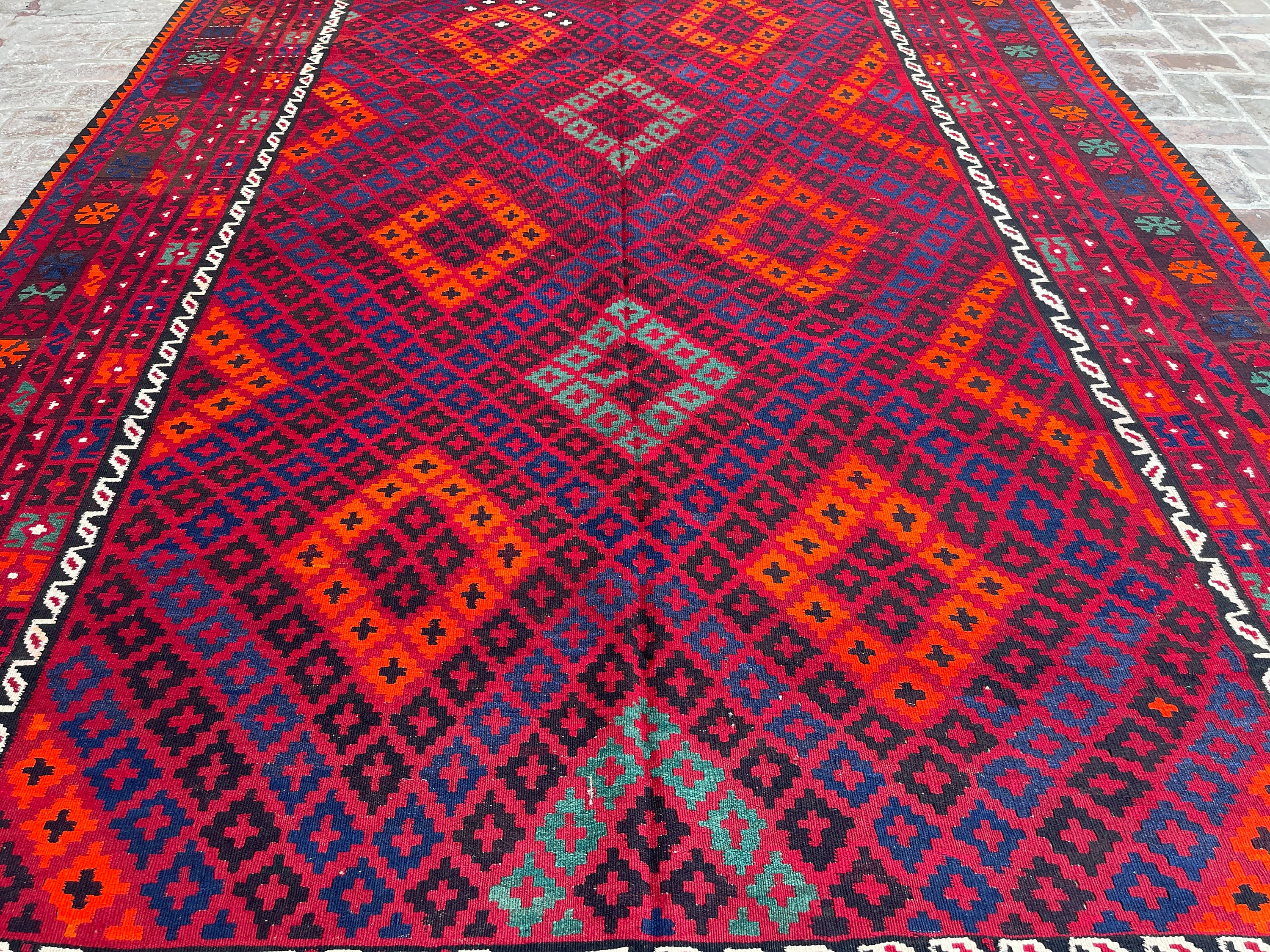 9x14 Turkmen Handmade Kilim Rug - Geometric Oriental Handwoven Veg Dyes Wool Rug - Tribal Flatweave Afghan Medallion Bedroom Rug 8.8x13.9 ft